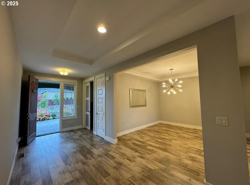 Open house Friday 3:00-5:00 and Saturday from 10:00 until noon. Large one level that backs up to a year-round pond. Watch the ducks and deer from your deck or primary bedroom. Former model home has all the upgrades. Open floor plan with a beautiful and functional kitchen. Double ovens, pantry, stainless steel, gas cooktop and oversized island. High ceilings, large rooms, built-ins, gas fireplace and lots of windows. Formal dining room has room for a large hutch. Primary on the main with walk-in closet, separate shower and tub. Upgraded lighting throughout. Professionally landscaped yard has lots of variety, fruit trees and rare plants which gives nice privacy and an exotic garden feel. The lower level is not counted in the footage but has lots of potential uses.