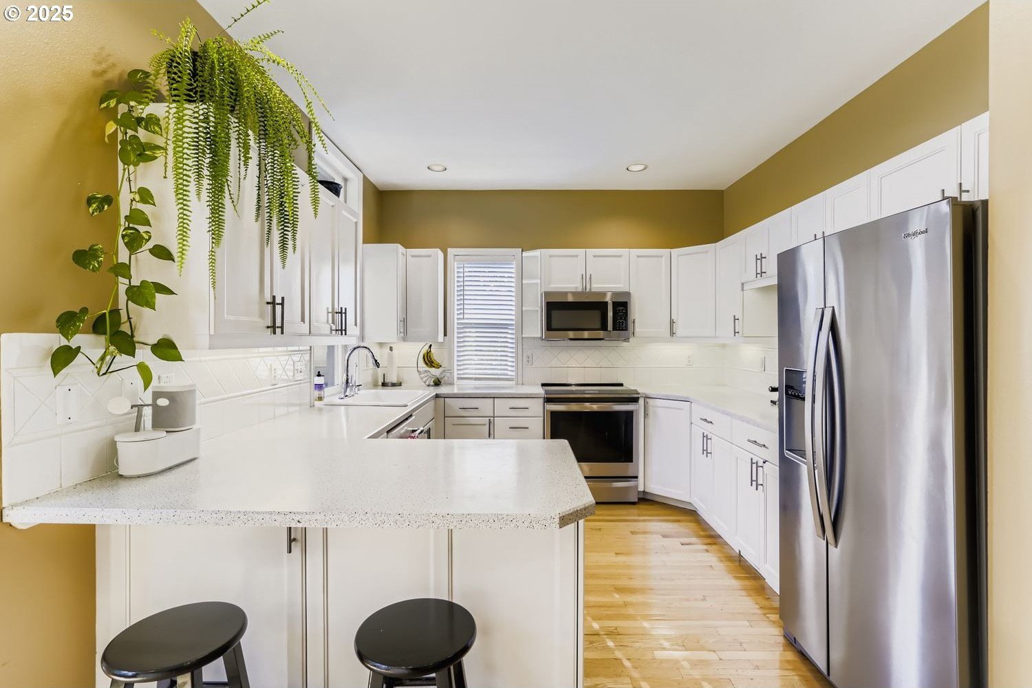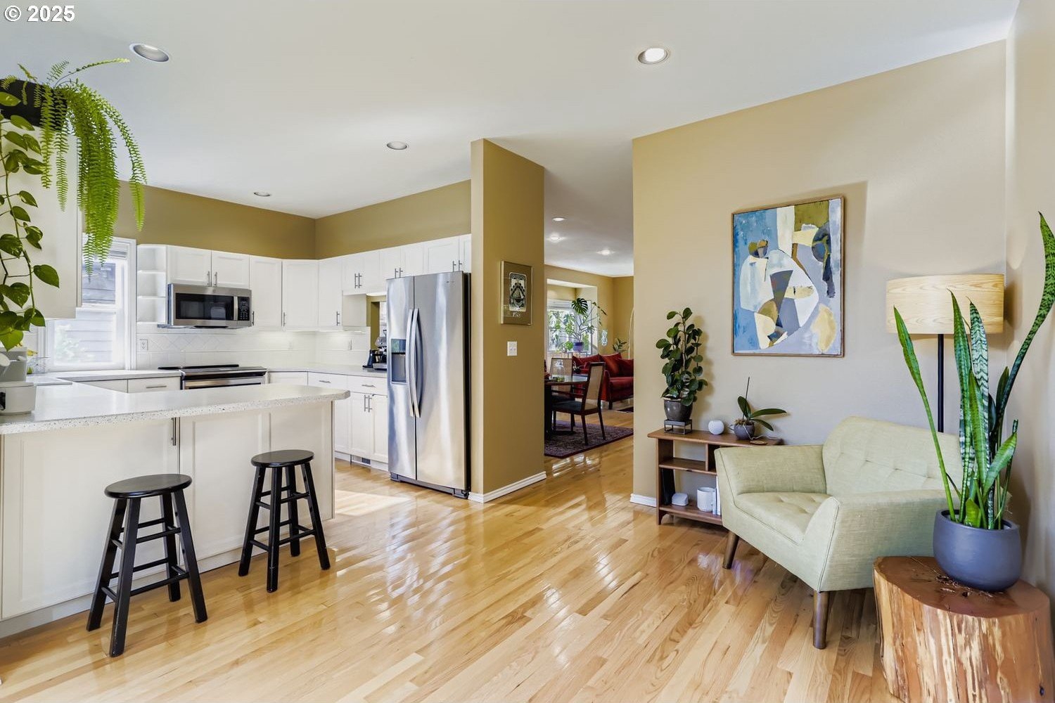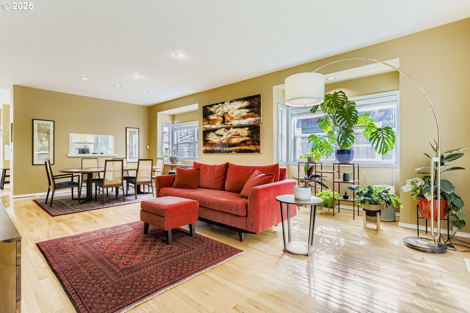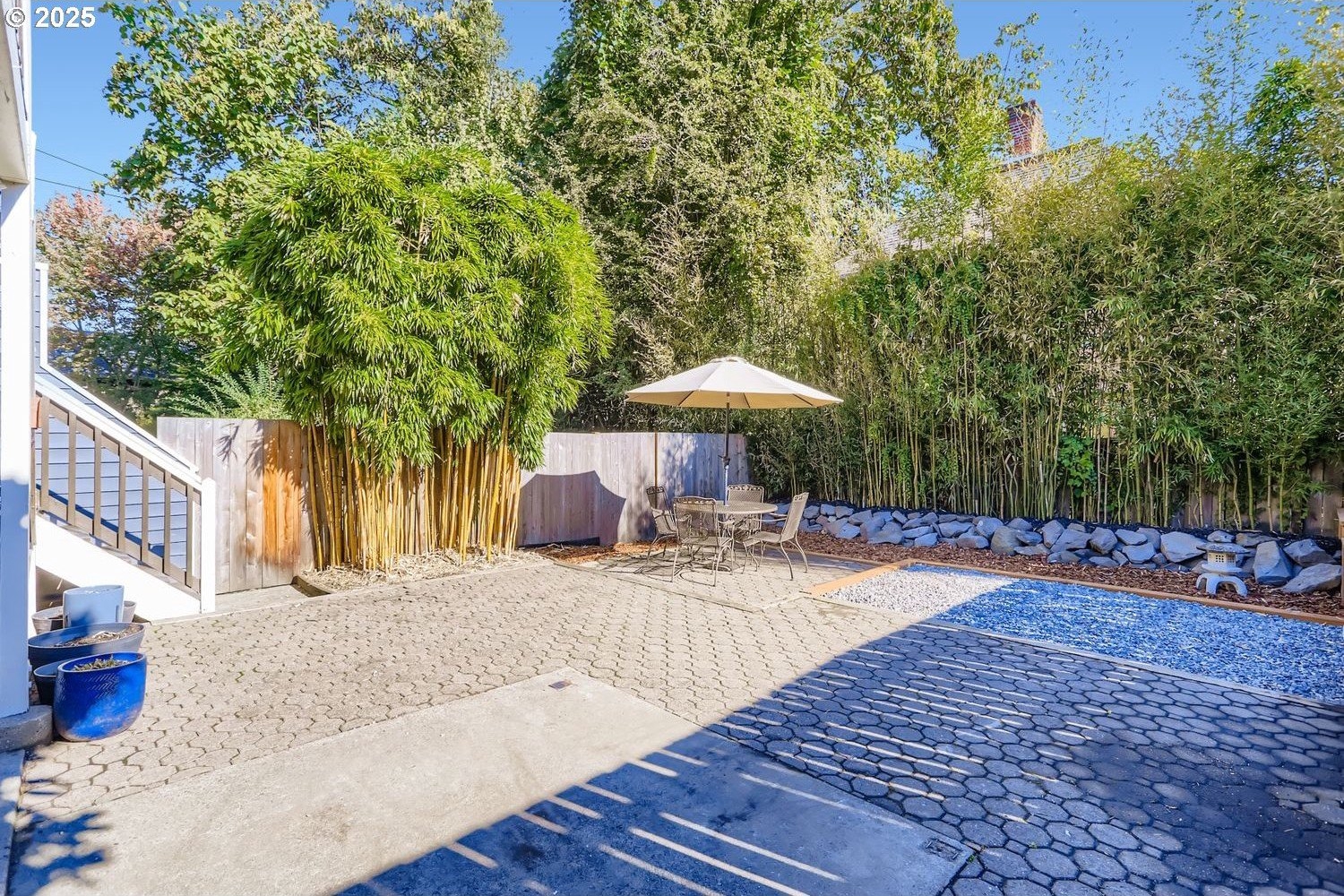 Desirable end-unit townhome in charming Lair Hill historic district. Main level has and open floor plan with lofty highceilings, hardwood floors, southern-exposed windows make a light filled living room/dining room space, and balcony area. Spacious kitchen features stainless steel appliances, eating area, and covered deck. Upper-level features primary-suite with double closet/vanity, steam shower with jetted-bath. Two additional bedrooms are also upstairs, one vaulted ceiling guest bedroom, and a third bedroom or office/bonus room. The lower level has an additional bonus room/office space/entertainment room. Tandem garage with access to private backyard, paver patio, and space for raised beds or other options to envision. Exterior of townhome was painted last year, and has newer furnace & AC. Convenient to OHSU, Southwater Front shopping and restaurants, OHSU tram, and waterfront!