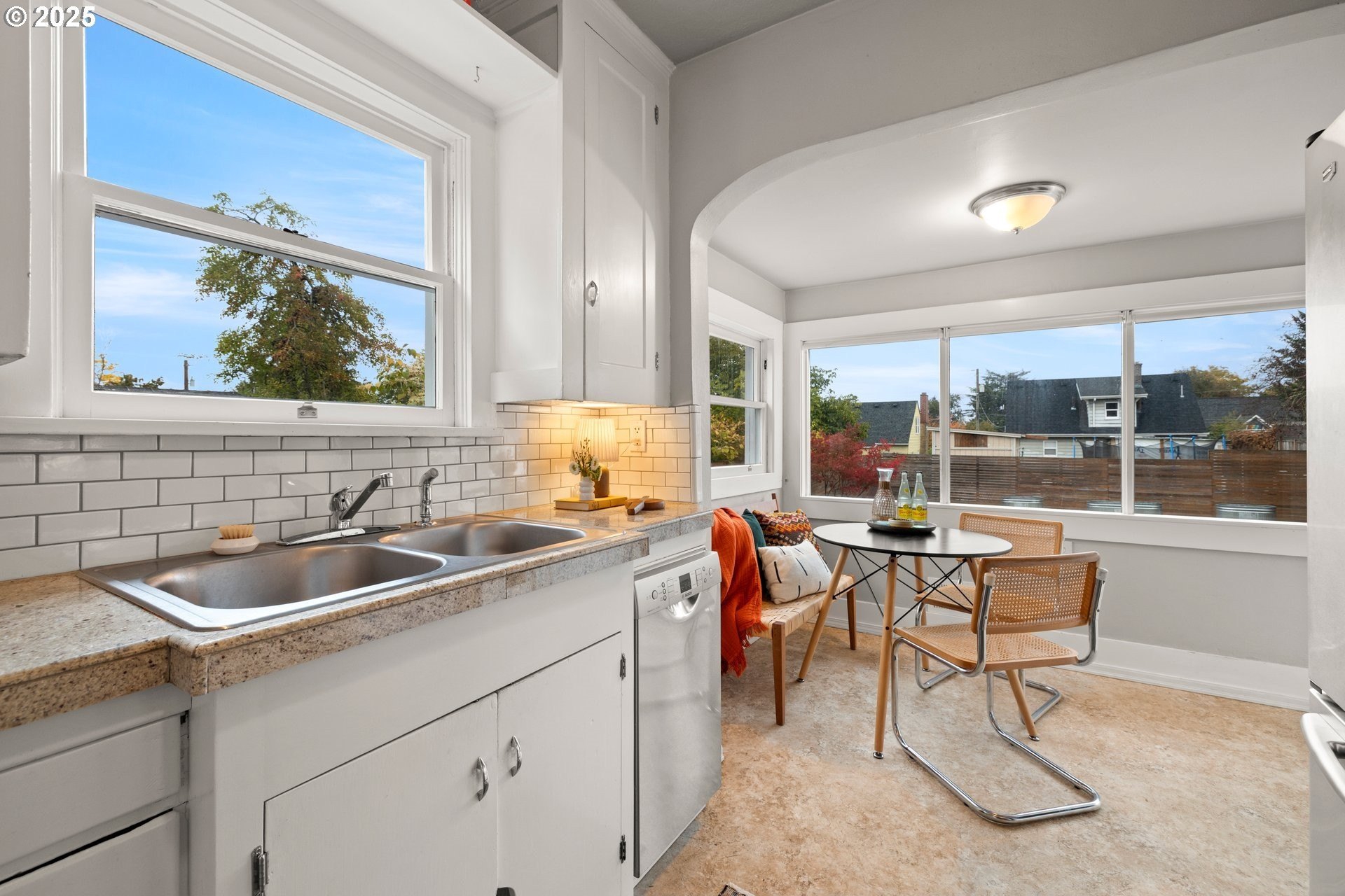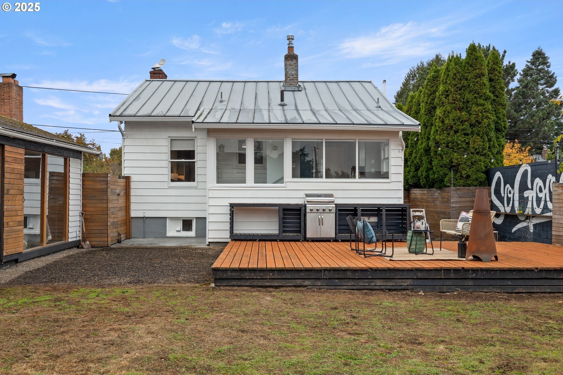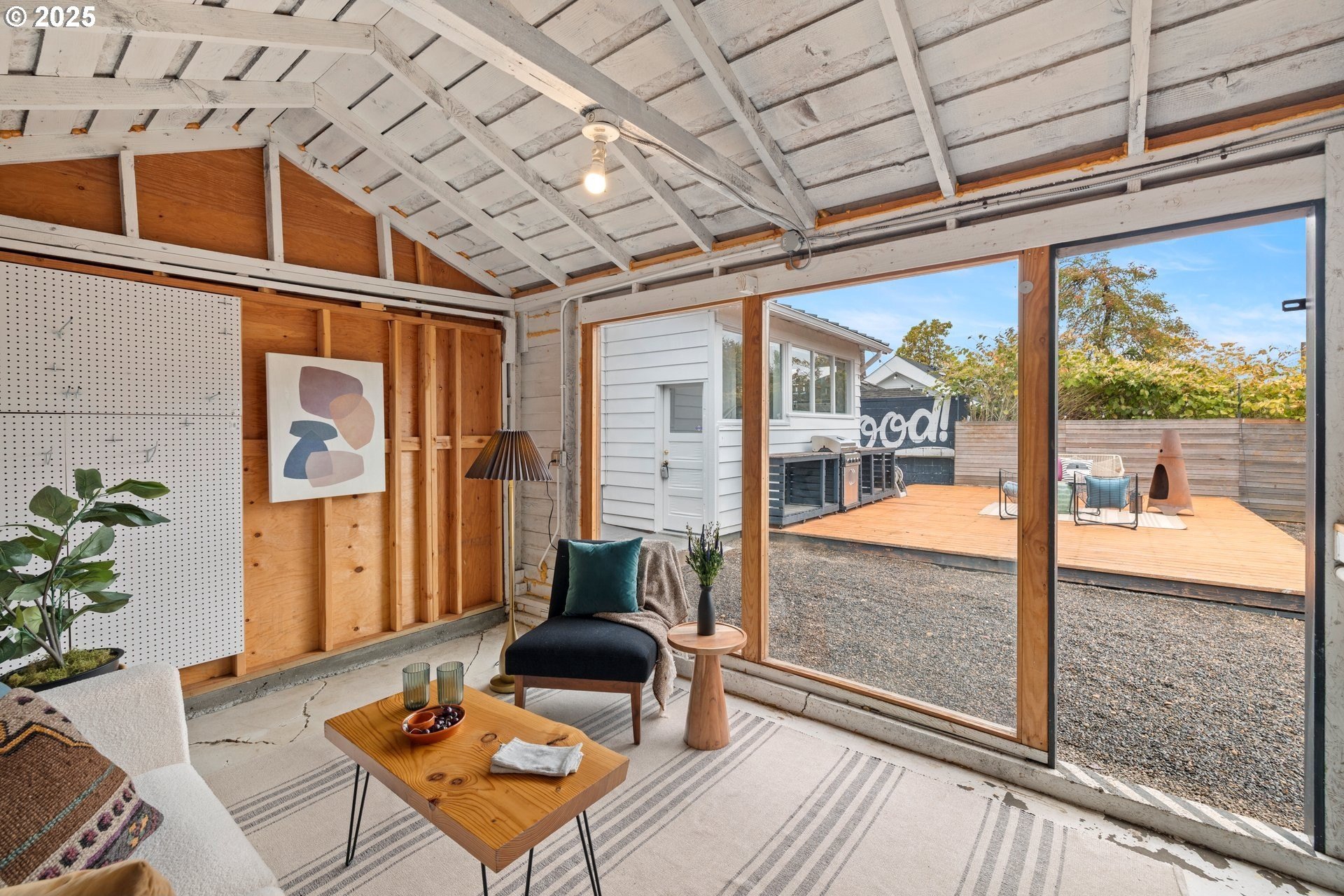 Charming updated bungalow with an A+ outdoor space. This light-filled North Portland home blends timeless character with thoughtful updates inside and out.The cheerful kitchen featuring granite countertops and a sleek tile backsplash, opens to a sunny eating nook with lovely views of the backyard — a perfect spot for morning coffee or casual meals. Enjoy the best of outdoor living with a spacious deck and large lawn area — ideal for gatherings, play, and everyday enjoyment, truly a gardener's open canvas. The main floor bedroom with its high ceilings and custom closet built ins is awaiting your wardrobe and decorating touches!Downstairs, a bright finished lower level offers flexible living—perfect for a media space, home office, or guest space—with a bonus room and laundry area.The converted garage offers even more square footage and flexible space , ideal for a workshop, studio, or outdoor lounge. All of this plus quick and easy access to parks (Penninsula Park and all its glory is just a few blocks away!), convenient shopping, and the Portland foodie scene make this home a 10 out of 10!