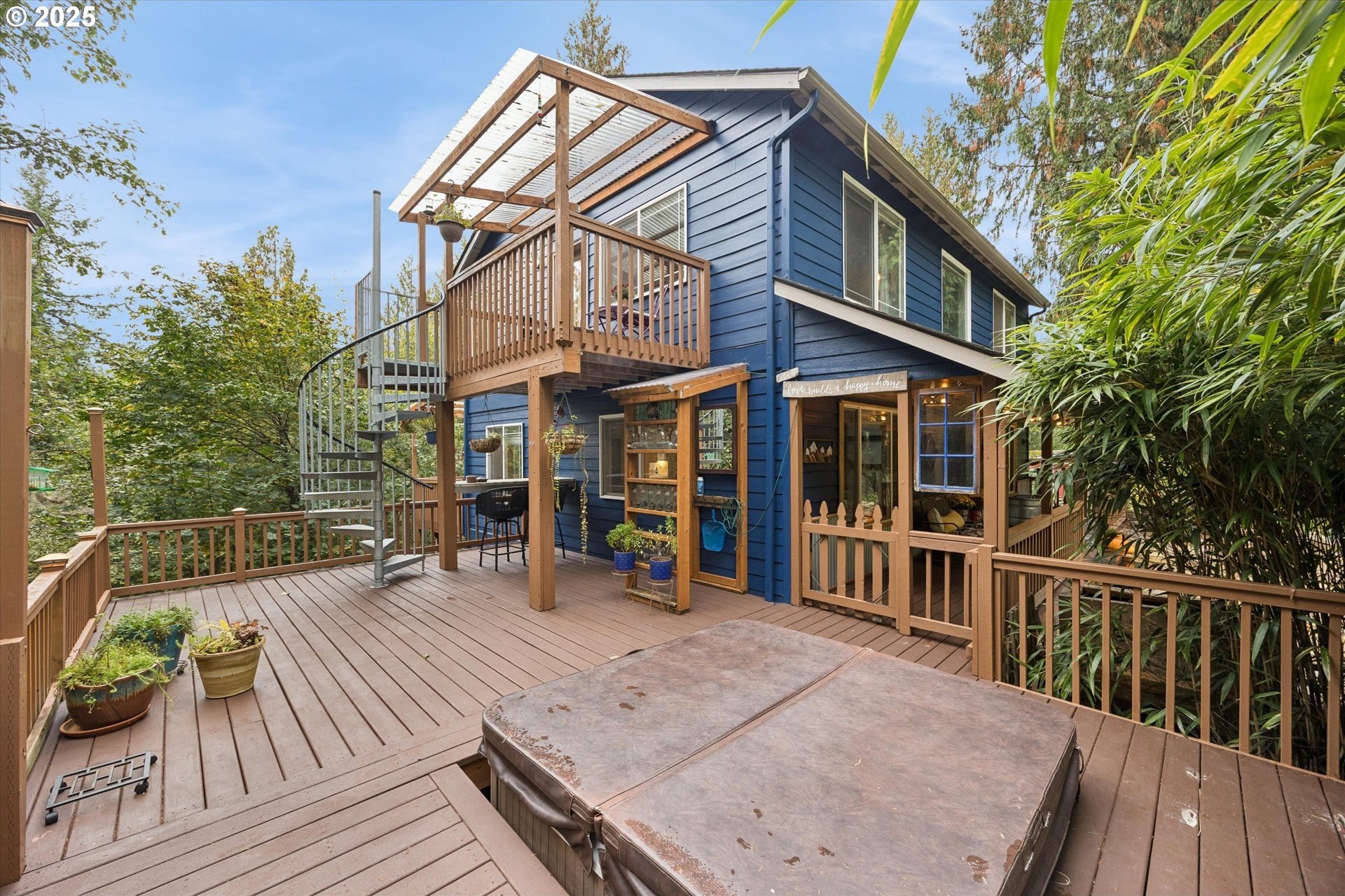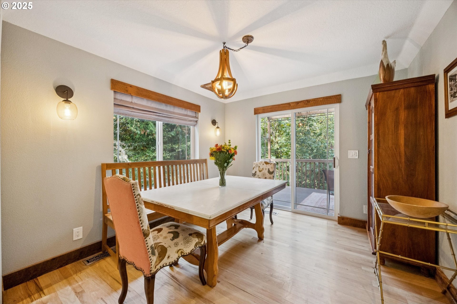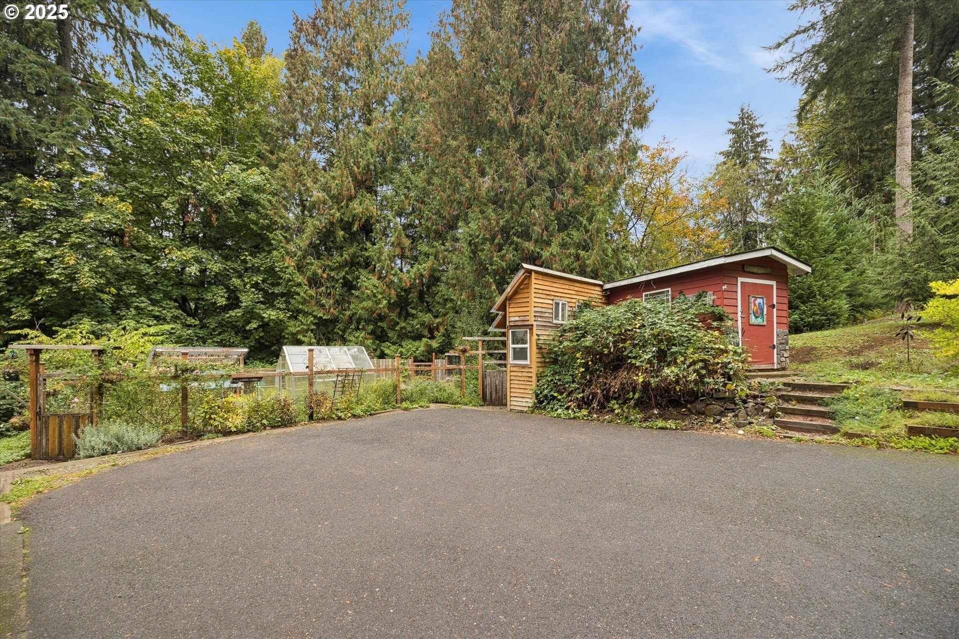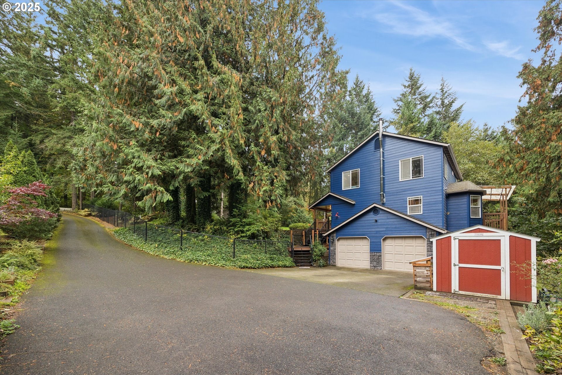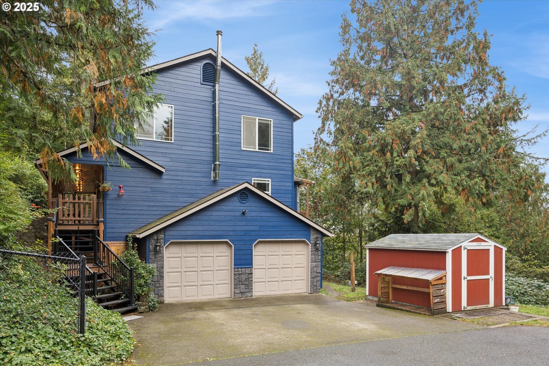 Freshly updated and full of country charm! This 4 bedroom, 3.5 bath home offers 2,200 SF across 3 levels and sits on just over 2.5 wooded acres. Wood floors and unique reclaimed kiln-dried wood trim give the home warm character throughout. The main level features a beautiful kitchen with granite counters, stainless steel appliances, farmhouse sink with Signature faucet, breakfast nook, and access to a private backyard deck. Also on this level is the family room with cozy wood-burning stove, dining and living rooms, and a half bath with laundry combo. Upstairs you’ll find 3 bedrooms, including the primary suite with private deck access. The remodeled primary bath boasts dual sinks, soaking tub, walk-in tiled shower, leathered granite counters, walk-in closet, and Bluetooth speakers. A spiral staircase from the deck leads to your own freestanding hot tub. The lower level offers a private guest suite complete with kitchenette and full bath—perfect for multi-gen living, guests, or rental potential. Recent upgrades include new exterior paint, full home re-pipe, newer hot water heater, heat pump, and water softener. Outside you'll find an oversized garage with workbench, garden space, chicken coop (chickens included!), wood and garden sheds, and a paved driveway. The scenic yard is surrounded by woods with a lightly overgrown trail ready to be shaped into your own path down to a peaceful creek. Country living with modern comforts—move-in ready and waiting to welcome you home!