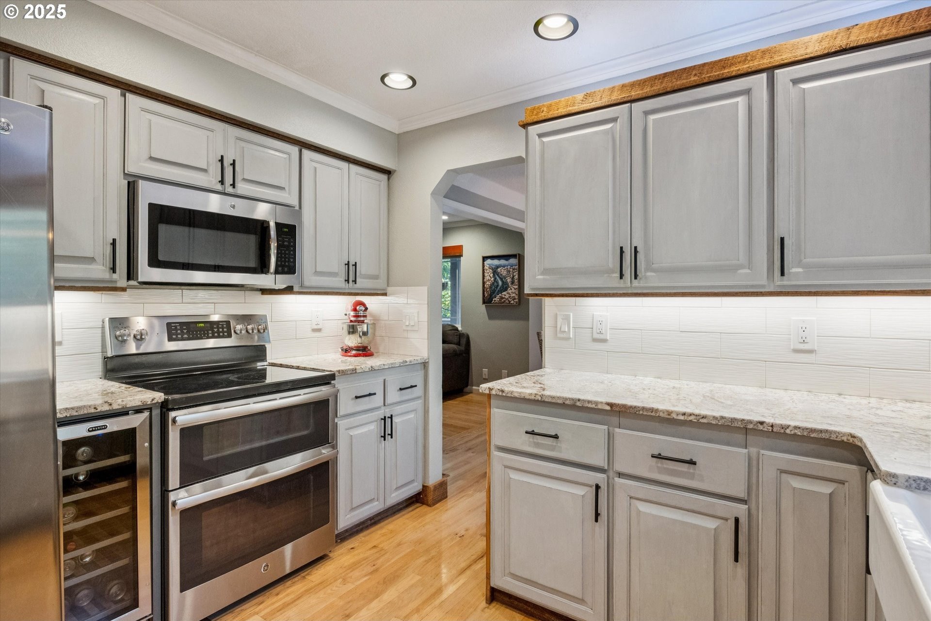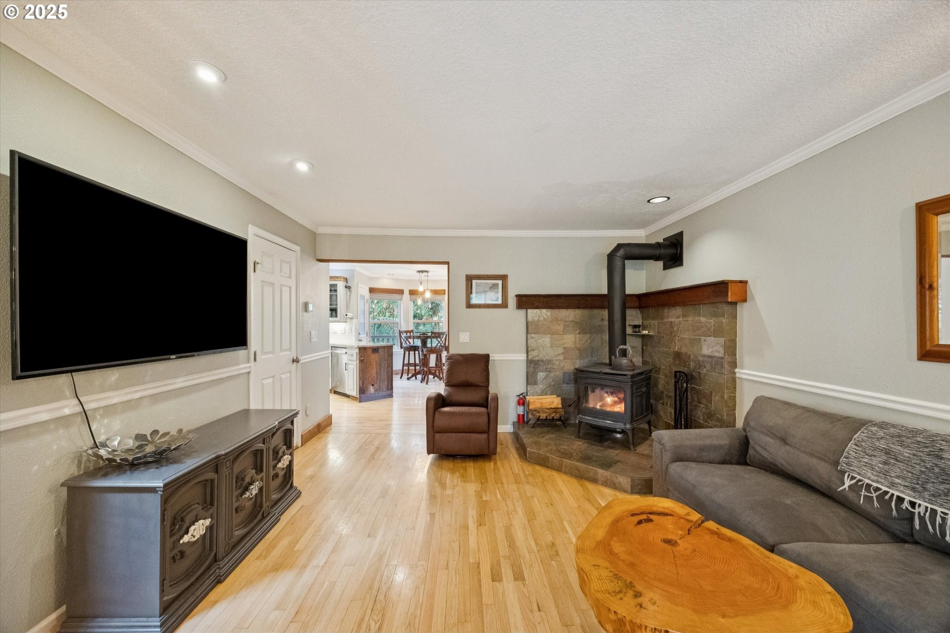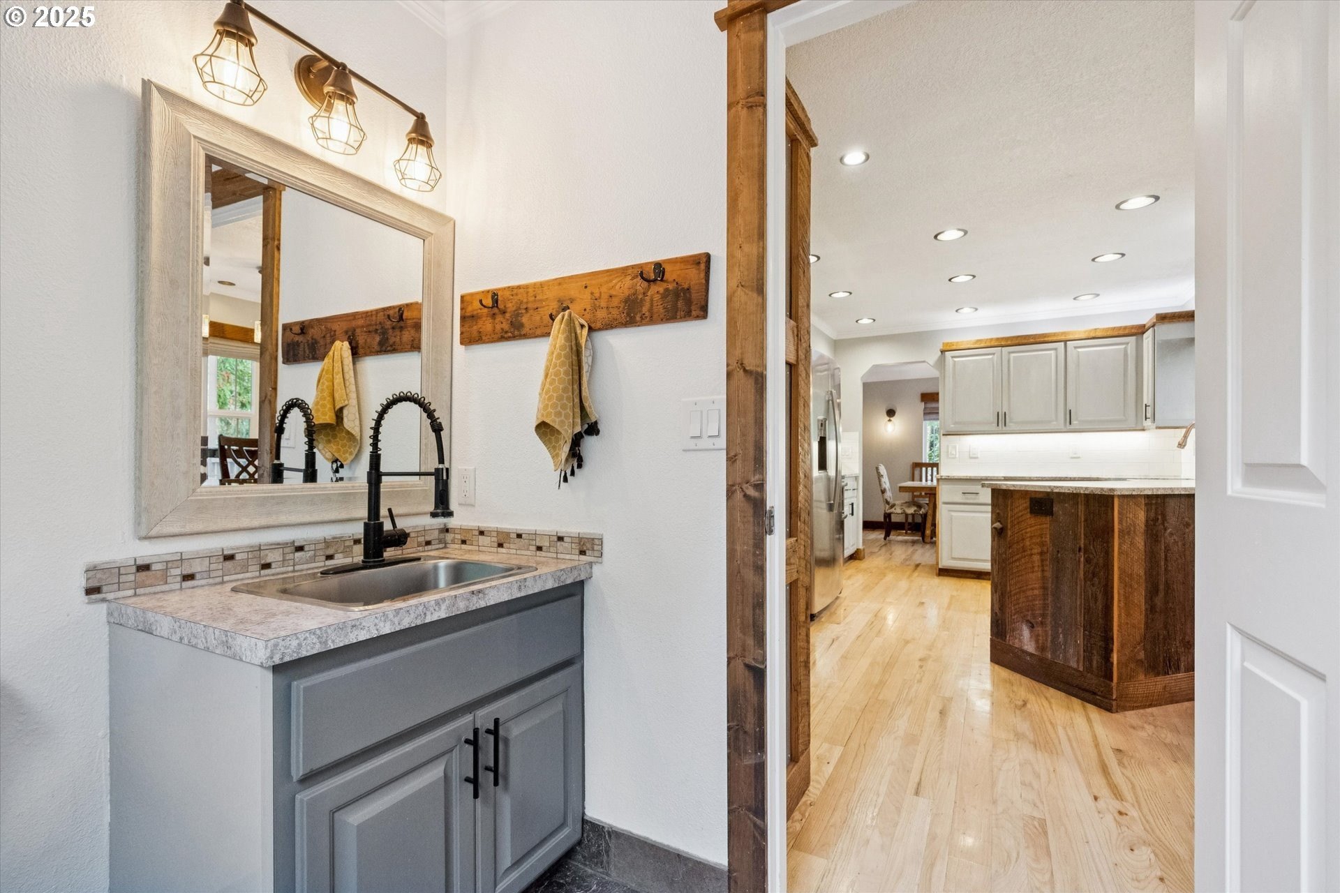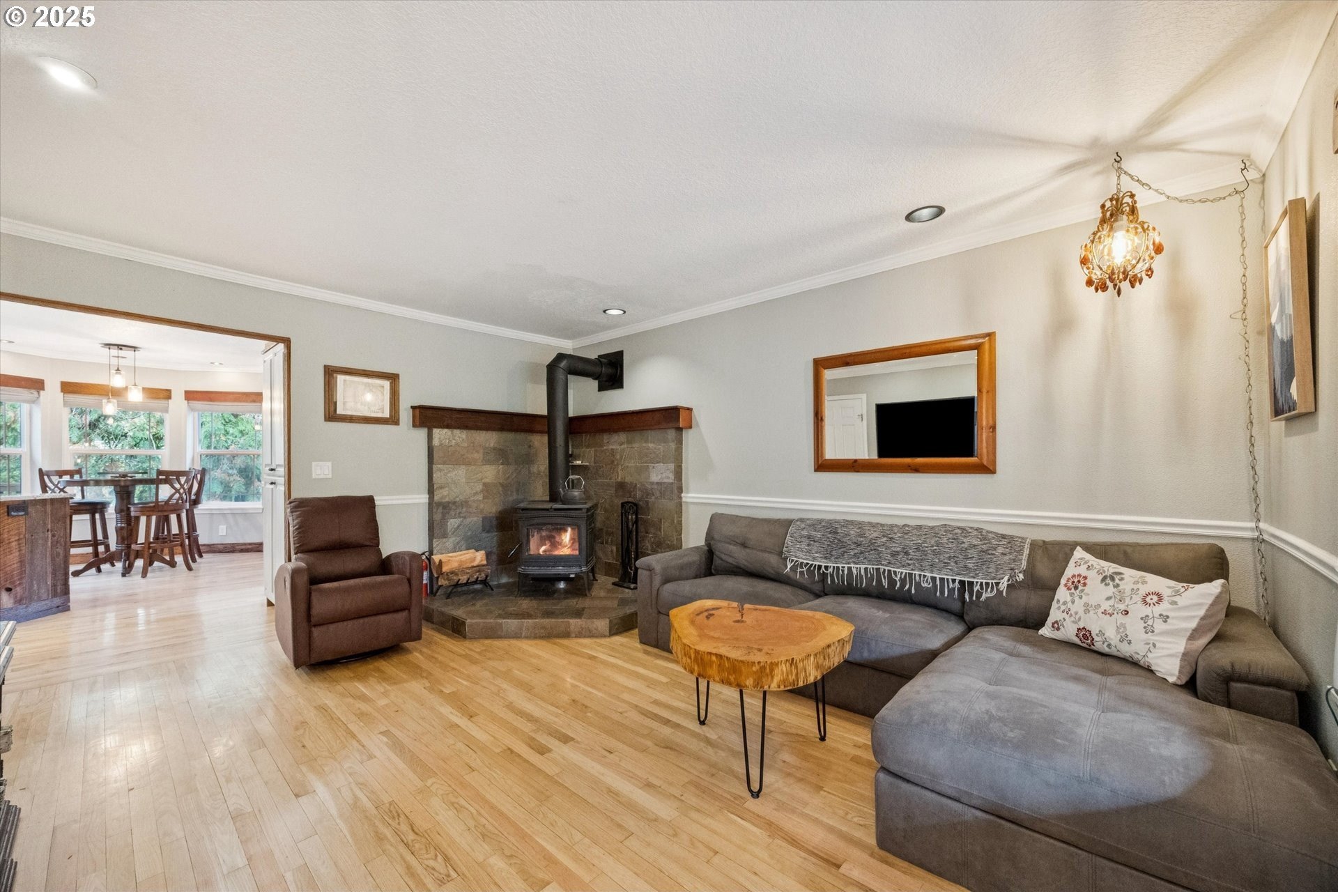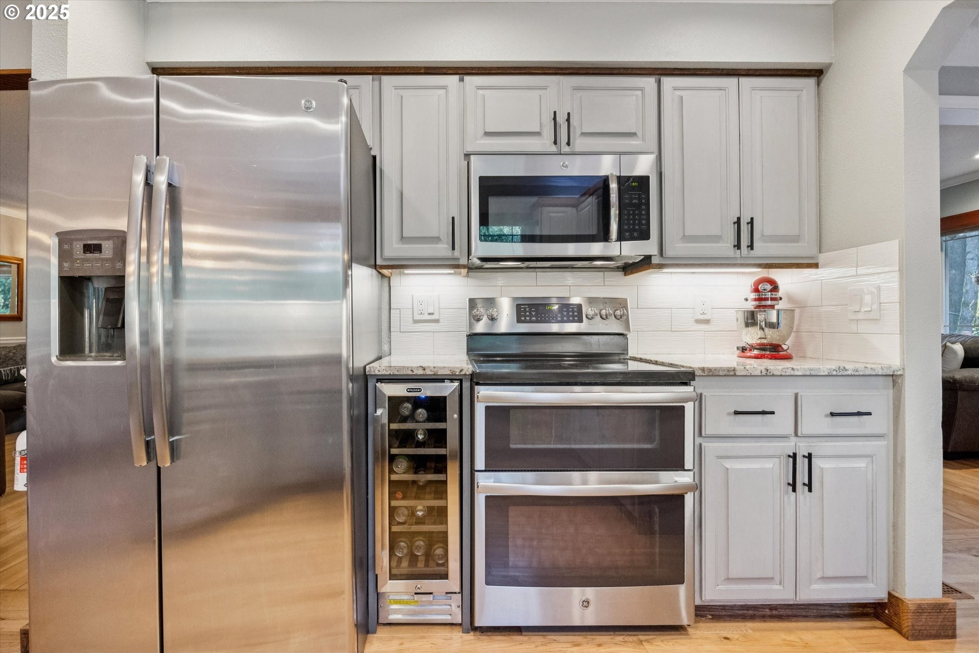 Freshly updated and full of country charm! This 4 bedroom, 3.5 bath home offers 2,200 SF across 3 levels and sits on just over 2.5 wooded acres. Wood floors and unique reclaimed kiln-dried wood trim give the home warm character throughout. The main level features a beautiful kitchen with granite counters, stainless steel appliances, farmhouse sink with Signature faucet, breakfast nook, and access to a private backyard deck. Also on this level is the family room with cozy wood-burning stove, dining and living rooms, and a half bath with laundry combo. Upstairs you’ll find 3 bedrooms, including the primary suite with private deck access. The remodeled primary bath boasts dual sinks, soaking tub, walk-in tiled shower, leathered granite counters, walk-in closet, and Bluetooth speakers. A spiral staircase from the deck leads to your own freestanding hot tub. The lower level offers a private guest suite complete with kitchenette and full bath—perfect for multi-gen living, guests, or rental potential. Recent upgrades include new exterior paint, full home re-pipe, newer hot water heater, heat pump, and water softener. Outside you'll find an oversized garage with workbench, garden space, chicken coop (chickens included!), wood and garden sheds, and a paved driveway. The scenic yard is surrounded by woods with a lightly overgrown trail ready to be shaped into your own path down to a peaceful creek. Country living with modern comforts—move-in ready and waiting to welcome you home!
