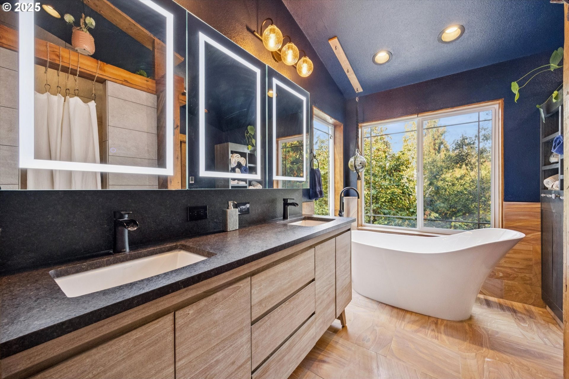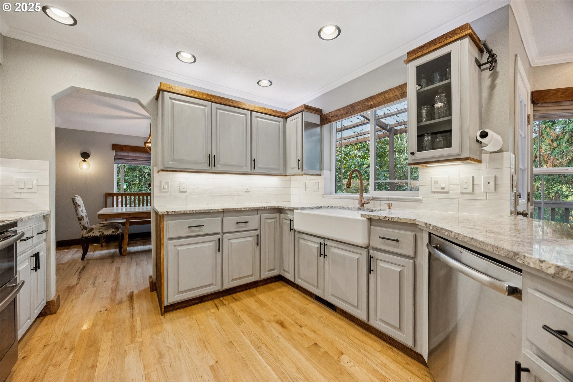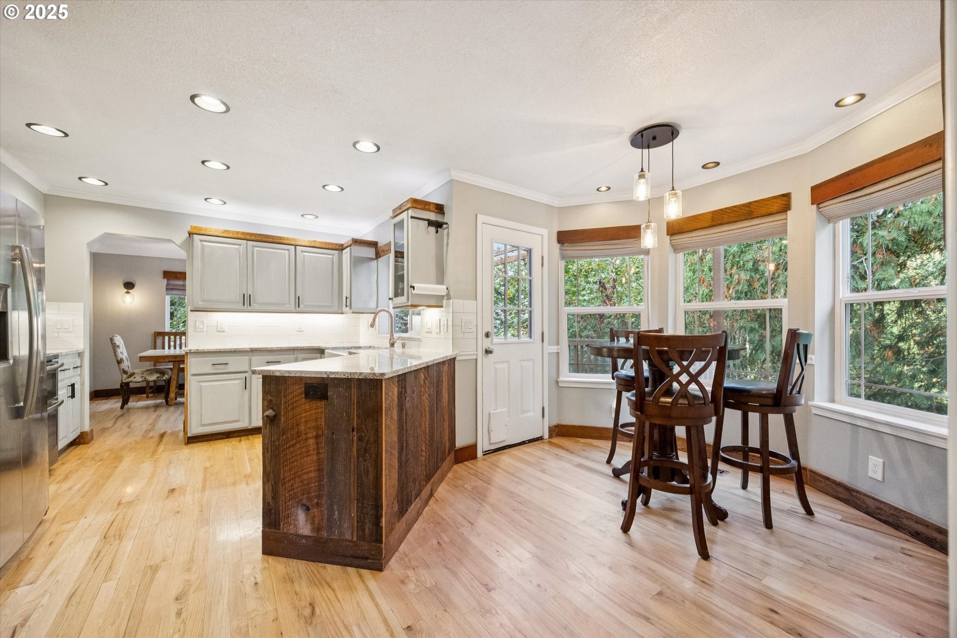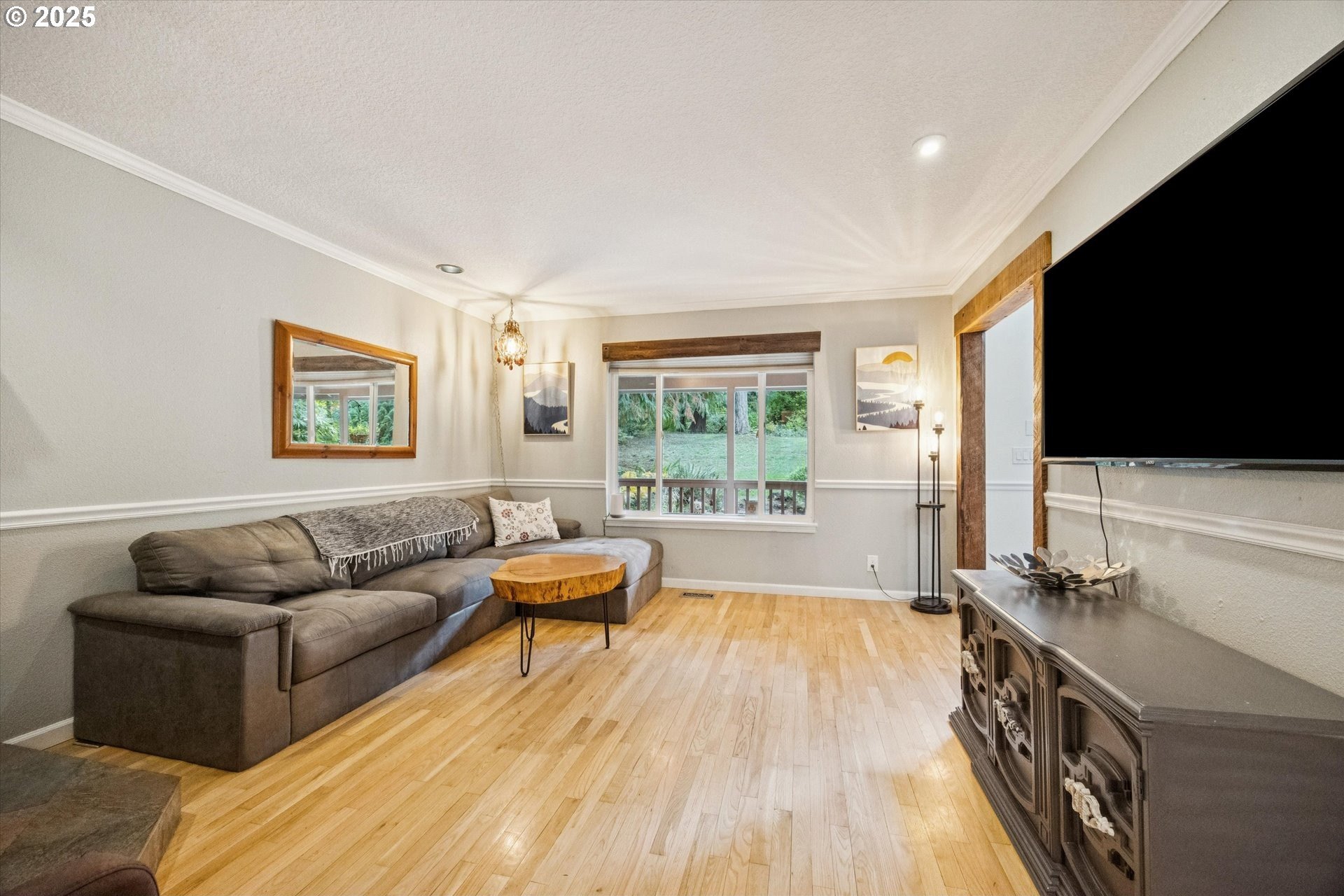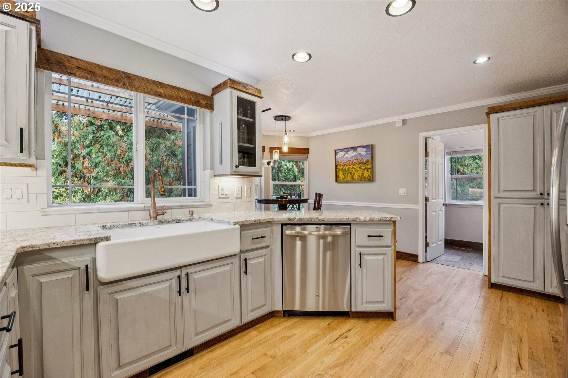 Freshly updated and full of country charm! This 4 bedroom, 3.5 bath home offers 2,200 SF across 3 levels and sits on just over 2.5 wooded acres. Wood floors and unique reclaimed kiln-dried wood trim give the home warm character throughout. The main level features a beautiful kitchen with granite counters, stainless steel appliances, farmhouse sink with Signature faucet, breakfast nook, and access to a private backyard deck. Also on this level is the family room with cozy wood-burning stove, dining and living rooms, and a half bath with laundry combo. Upstairs you’ll find 3 bedrooms, including the primary suite with private deck access. The remodeled primary bath boasts dual sinks, soaking tub, walk-in tiled shower, leathered granite counters, walk-in closet, and Bluetooth speakers. A spiral staircase from the deck leads to your own freestanding hot tub. The lower level offers a private guest suite complete with kitchenette and full bath—perfect for multi-gen living, guests, or rental potential. Recent upgrades include new exterior paint, full home re-pipe, newer hot water heater, heat pump, and water softener. Outside you'll find an oversized garage with workbench, garden space, chicken coop (chickens included!), wood and garden sheds, and a paved driveway. The scenic yard is surrounded by woods with a lightly overgrown trail ready to be shaped into your own path down to a peaceful creek. Country living with modern comforts—move-in ready and waiting to welcome you home!
