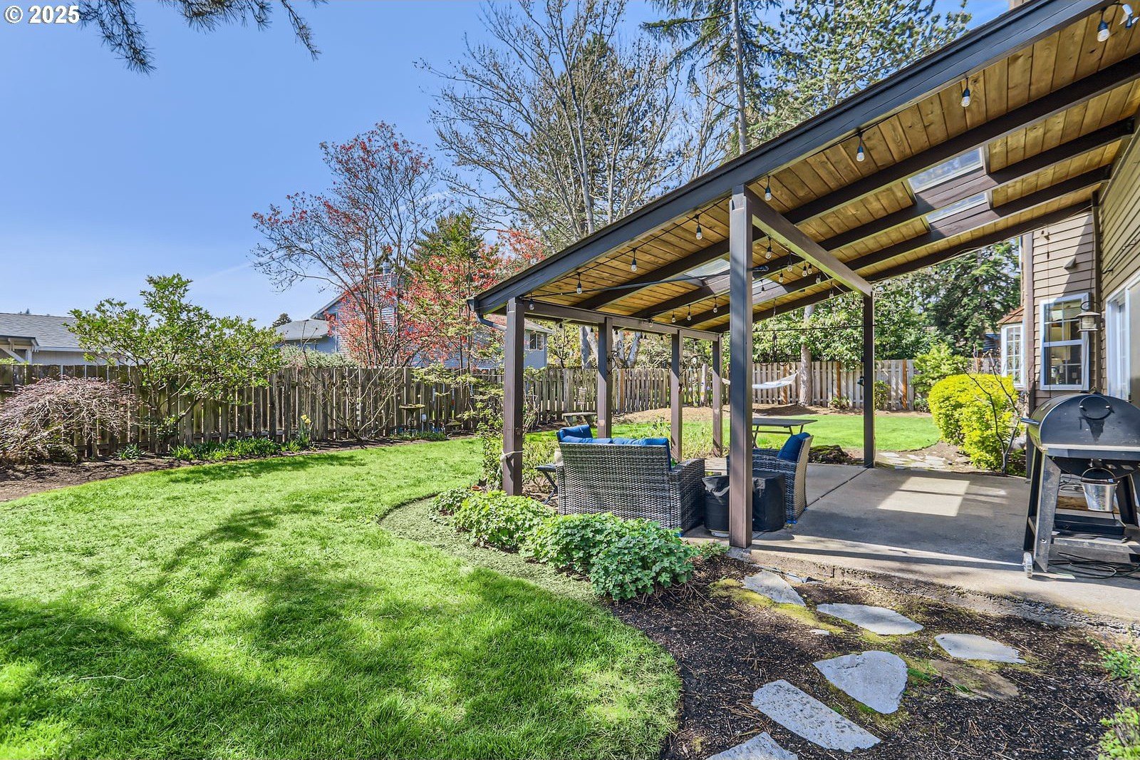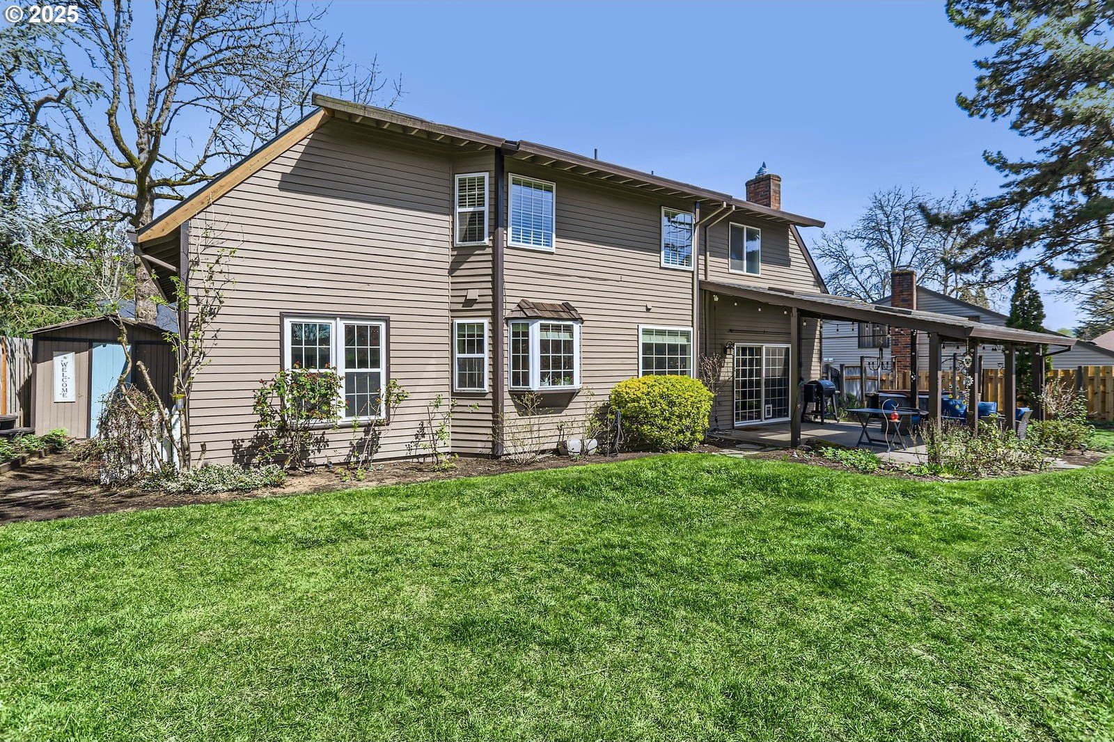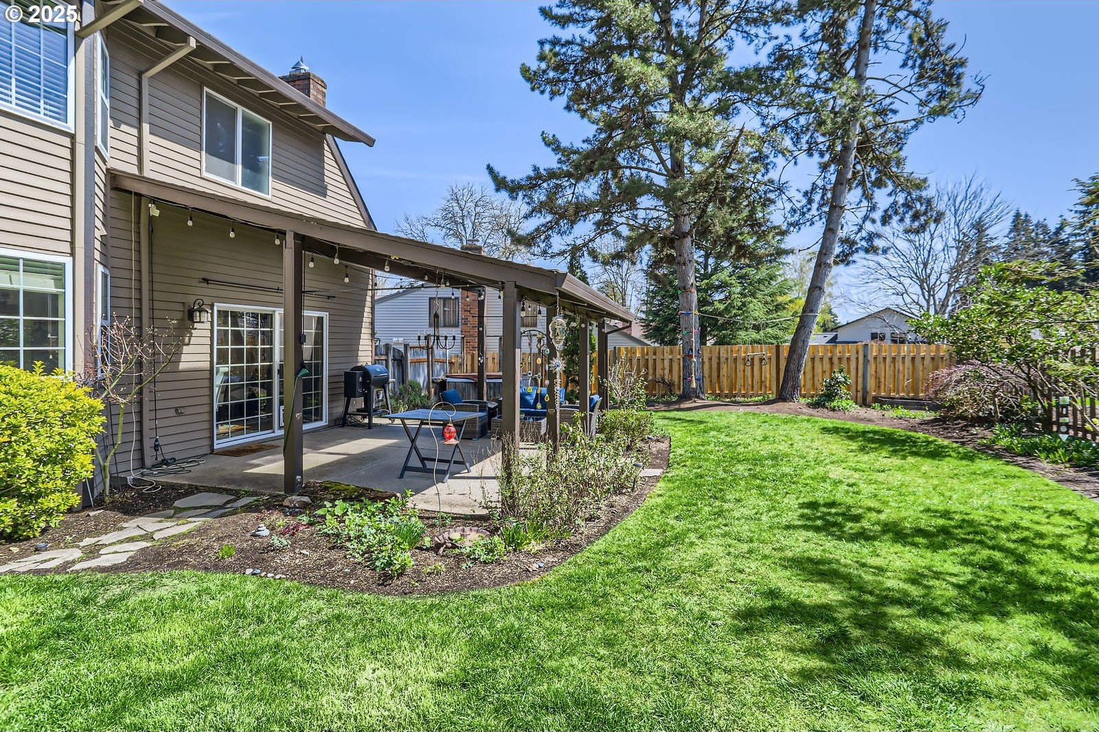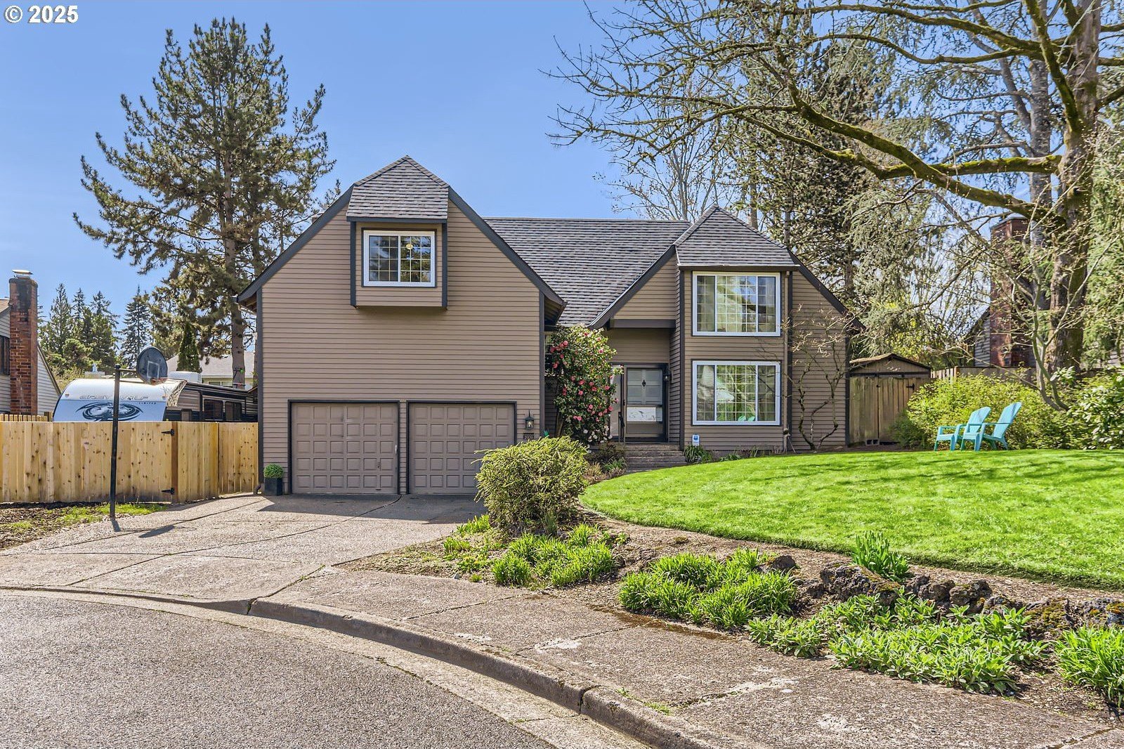 Spectacular Rock Creek Country Club traditional on exceptional cul-de-sac lot! Freshly improved with a brand-new roof, new carpet, all-new interior paint, updated bathrooms, vinyl windows, and more, this home is completely move-in ready. Remodeled kitchen offers custom full-height cabinetry, slab granite counters, stainless steel appliances, huge walk-in pantry, and dining nook with built-in seating. The kitchen is open to the family room, featuring a floor-to-ceiling flagstone fireplace and slider to the covered patio. Upstairs, French doors introduce a deluxe primary suite with a large walk-in closet and updated bathroom with soaking tub and new walk-in shower with frameless door. There are three additional bedrooms upstairs, plus an updated bathroom with new walk-in shower, new tile floors, and updated fixtures. High-quality construction with generous room sizes, extensive hardwood flooring, abundant vinyl windows for excellent natural light. Outstanding lot with sprinklers, RARE RV/boat parking, and an extra-large fenced backyard with raised beds, tool shed, and spacious covered patio with tongue-and-groove ceilings and skylights. Unbeatable location on one of Rock Creek's best streets, with convenient access to Rock Creek Country Club and THPRD's parks and trails!