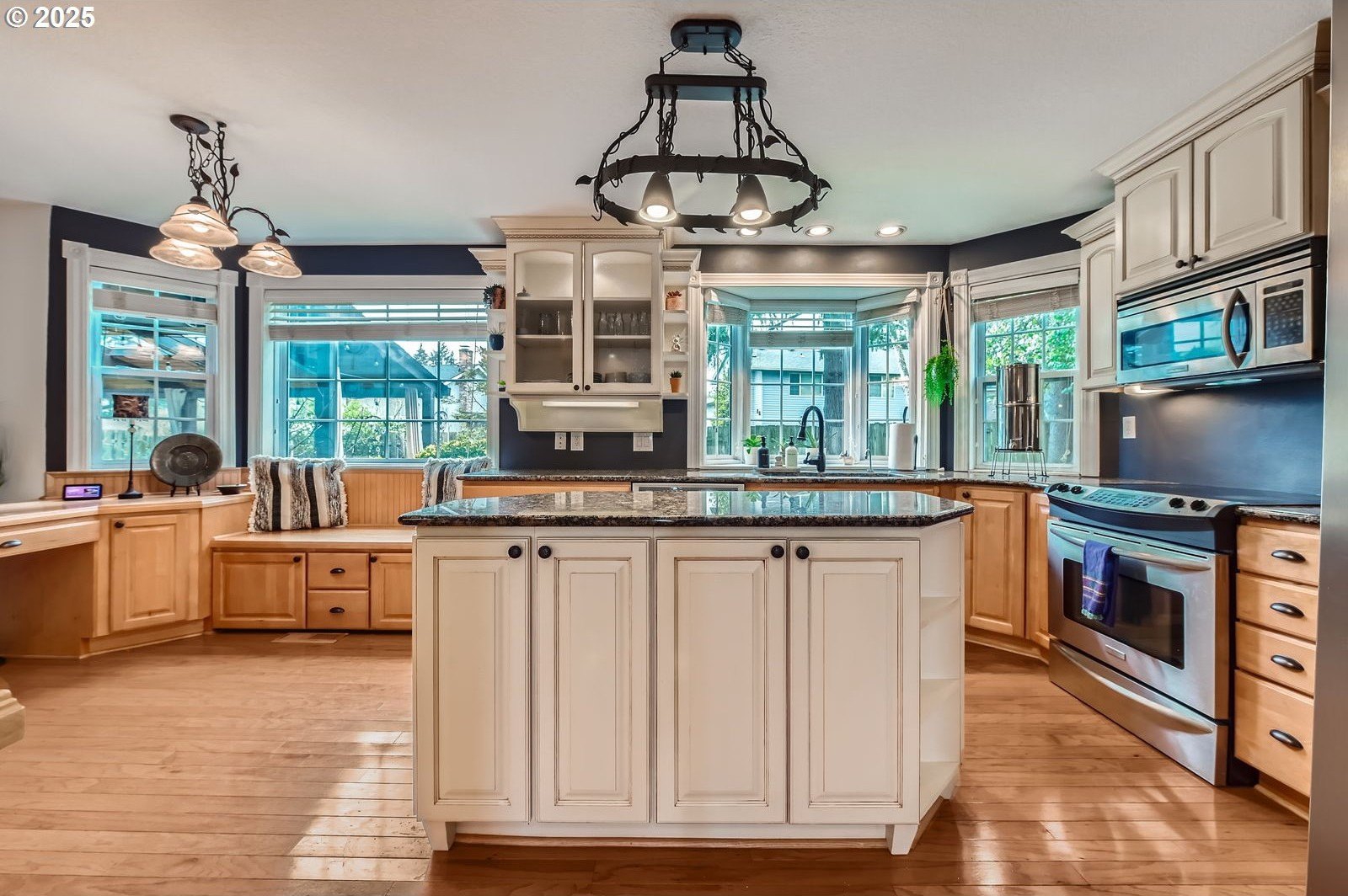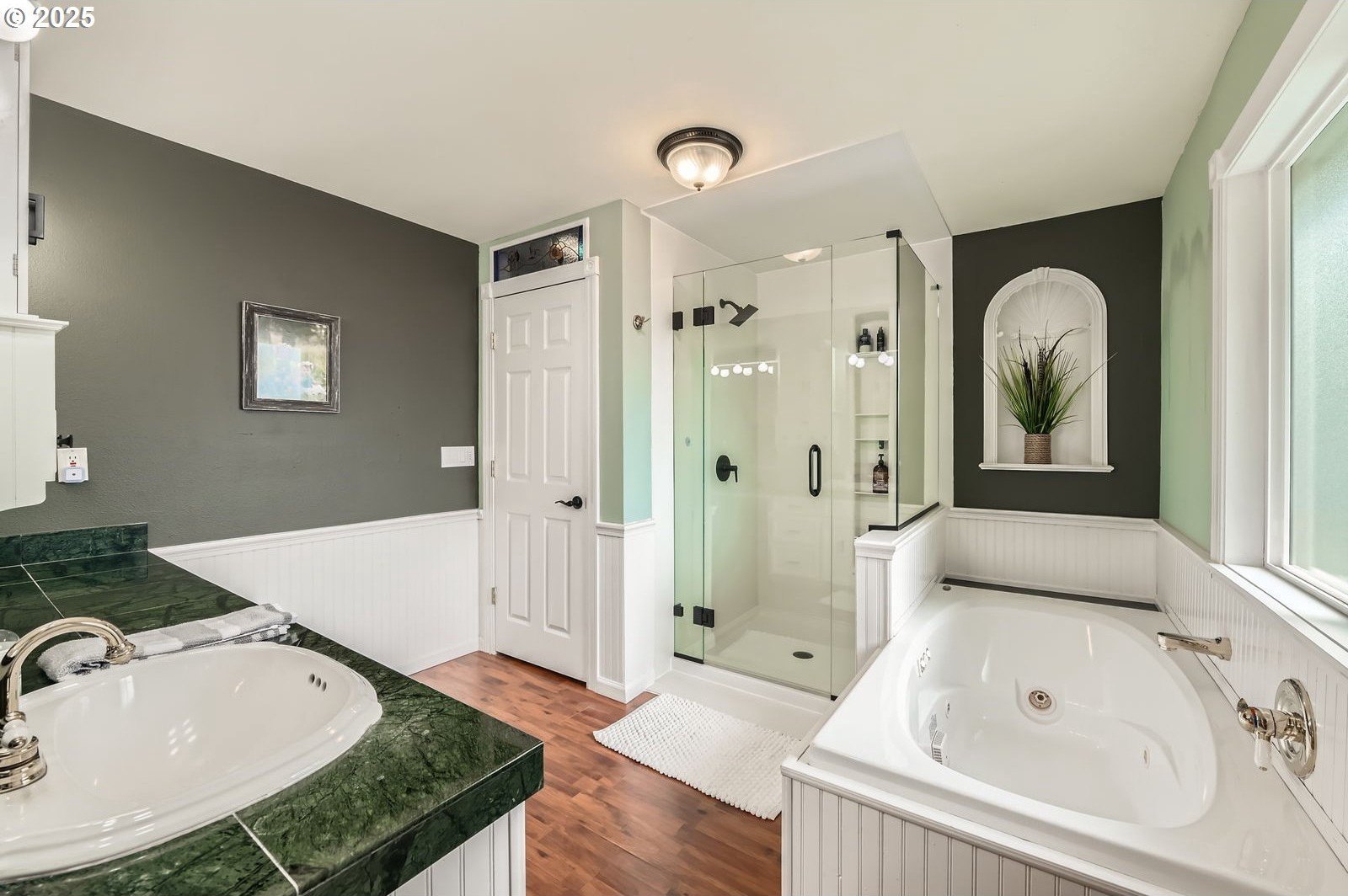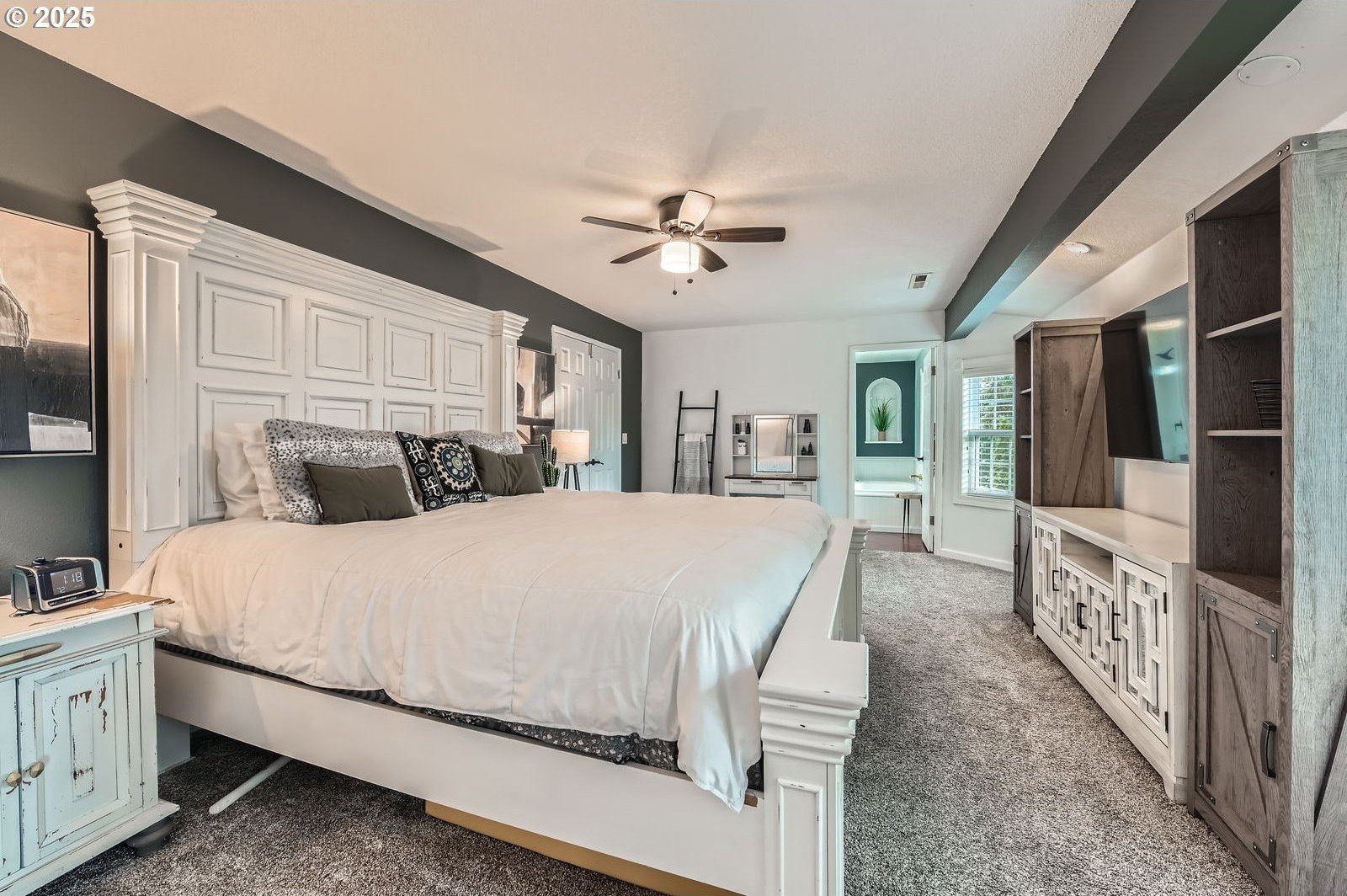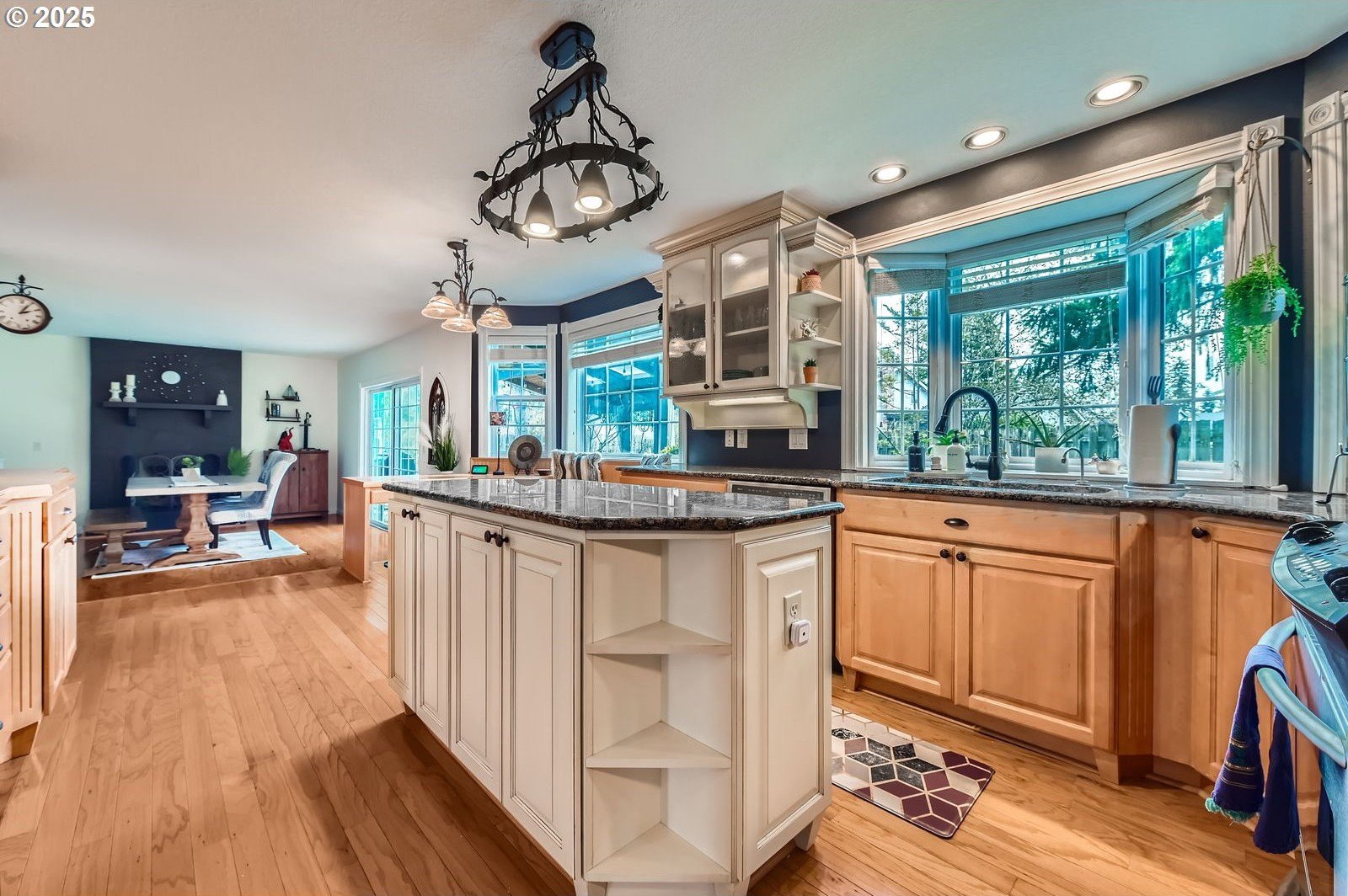 Spectacular Rock Creek Country Club traditional on exceptional cul-de-sac lot! Freshly improved with a brand-new roof, new carpet, all-new interior paint, updated bathrooms, vinyl windows, and more, this home is completely move-in ready. Remodeled kitchen offers custom full-height cabinetry, slab granite counters, stainless steel appliances, huge walk-in pantry, and dining nook with built-in seating. The kitchen is open to the family room, featuring a floor-to-ceiling flagstone fireplace and slider to the covered patio. Upstairs, French doors introduce a deluxe primary suite with a large walk-in closet and updated bathroom with soaking tub and new walk-in shower with frameless door. There are three additional bedrooms upstairs, plus an updated bathroom with new walk-in shower, new tile floors, and updated fixtures. High-quality construction with generous room sizes, extensive hardwood flooring, abundant vinyl windows for excellent natural light. Outstanding lot with sprinklers, RARE RV/boat parking, and an extra-large fenced backyard with raised beds, tool shed, and spacious covered patio with tongue-and-groove ceilings and skylights. Unbeatable location on one of Rock Creek's best streets, with convenient access to Rock Creek Country Club and THPRD's parks and trails!