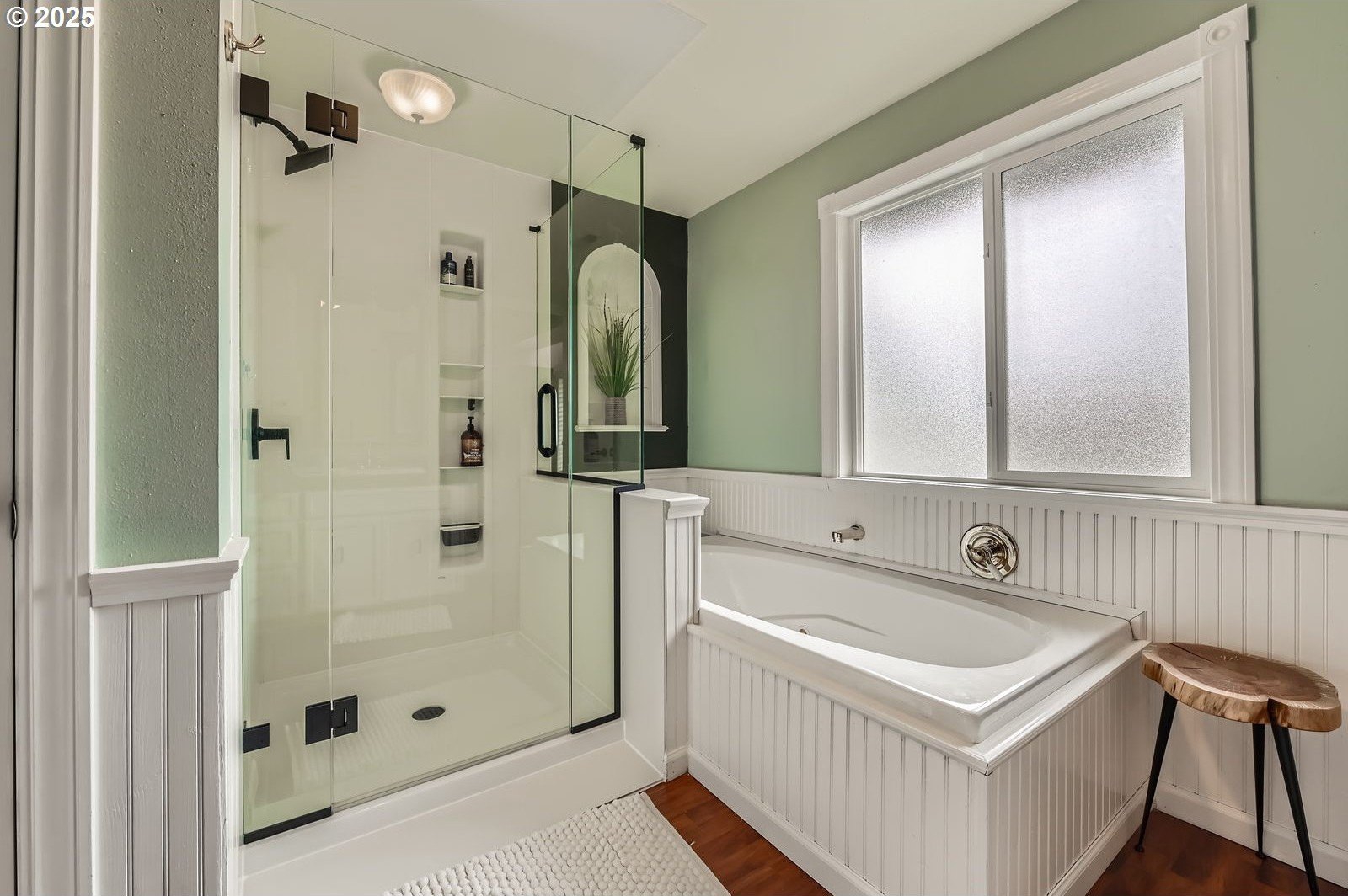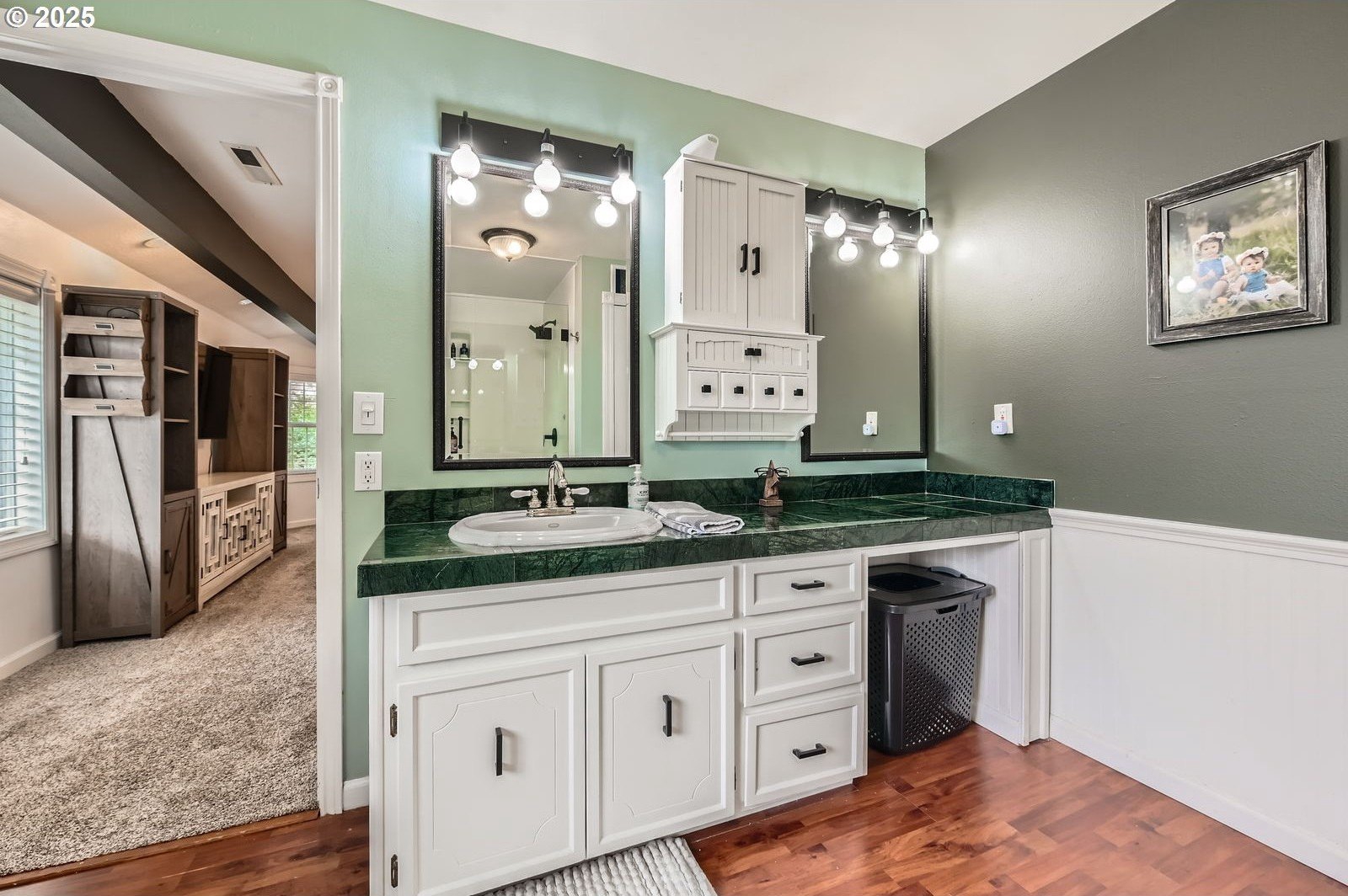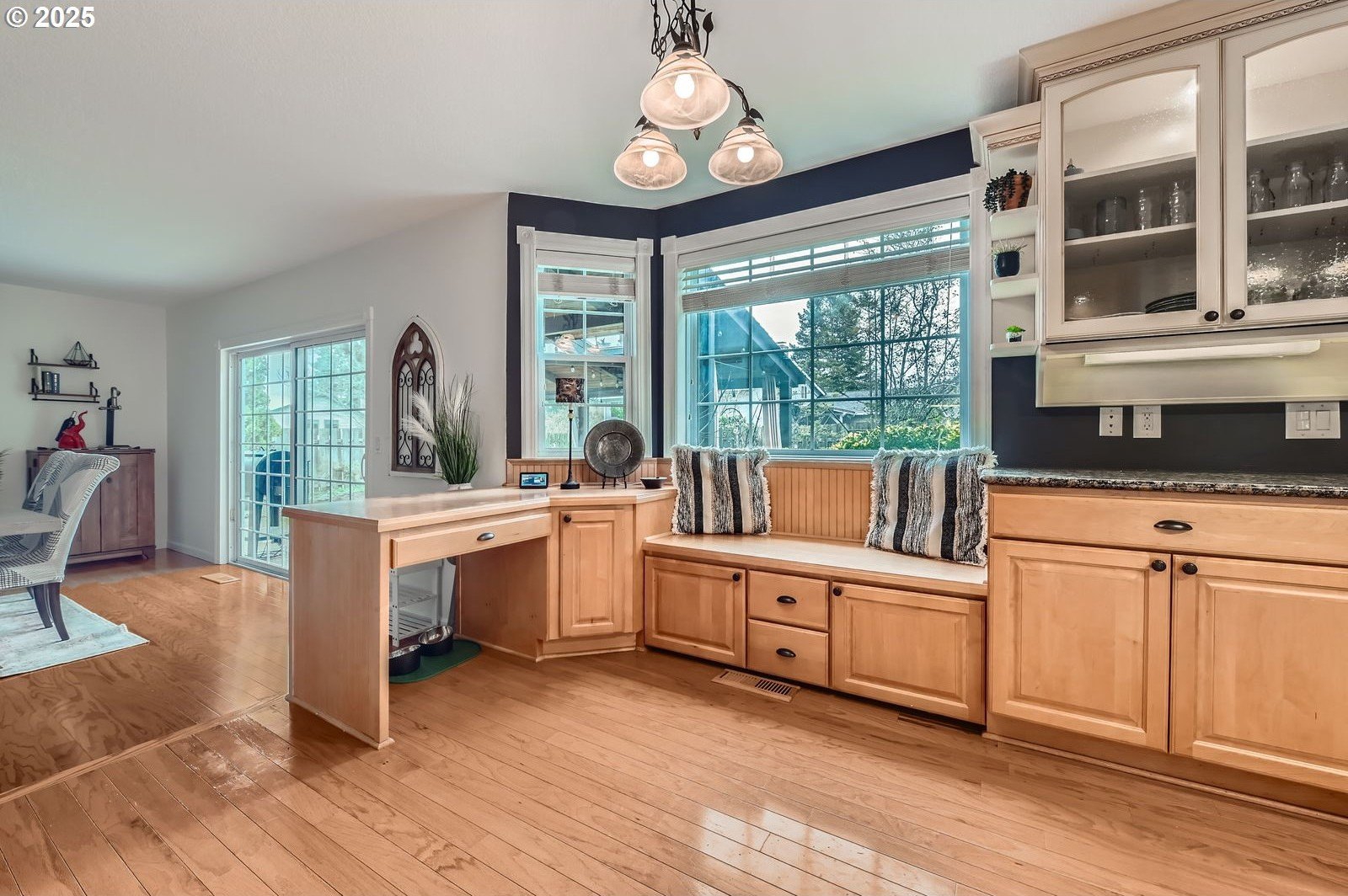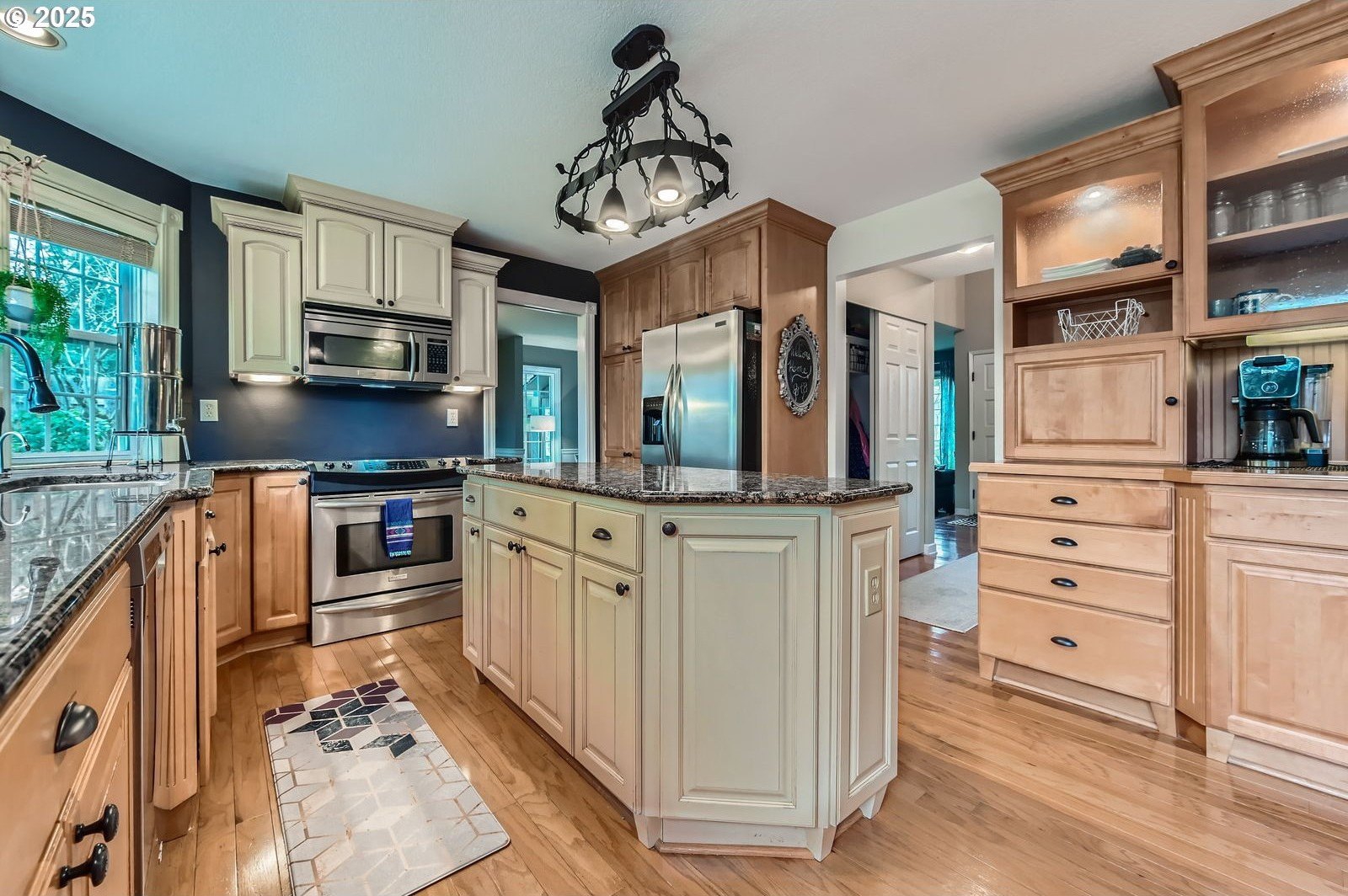 Spectacular Rock Creek Country Club traditional on exceptional cul-de-sac lot! Freshly improved with a brand-new roof, new carpet, all-new interior paint, updated bathrooms, vinyl windows, and more, this home is completely move-in ready. Remodeled kitchen offers custom full-height cabinetry, slab granite counters, stainless steel appliances, huge walk-in pantry, and dining nook with built-in seating. The kitchen is open to the family room, featuring a floor-to-ceiling flagstone fireplace and slider to the covered patio. Upstairs, French doors introduce a deluxe primary suite with a large walk-in closet and updated bathroom with soaking tub and new walk-in shower with frameless door. There are three additional bedrooms upstairs, plus an updated bathroom with new walk-in shower, new tile floors, and updated fixtures. High-quality construction with generous room sizes, extensive hardwood flooring, abundant vinyl windows for excellent natural light. Outstanding lot with sprinklers, RARE RV/boat parking, and an extra-large fenced backyard with raised beds, tool shed, and spacious covered patio with tongue-and-groove ceilings and skylights. Unbeatable location on one of Rock Creek's best streets, with convenient access to Rock Creek Country Club and THPRD's parks and trails!