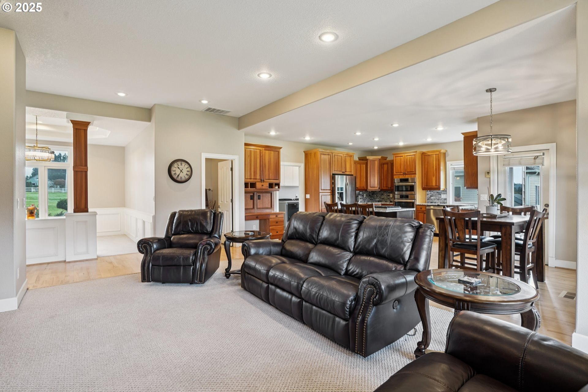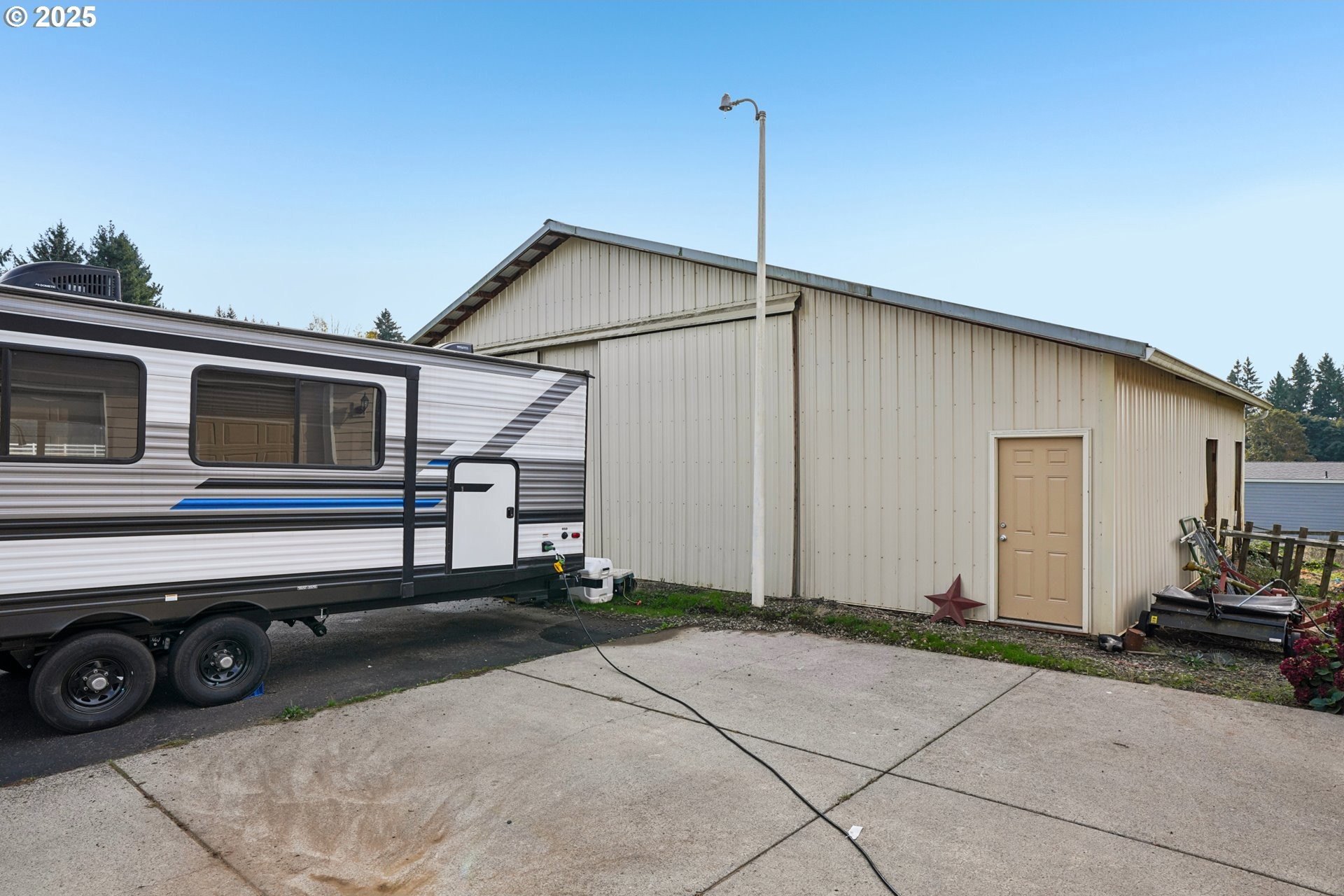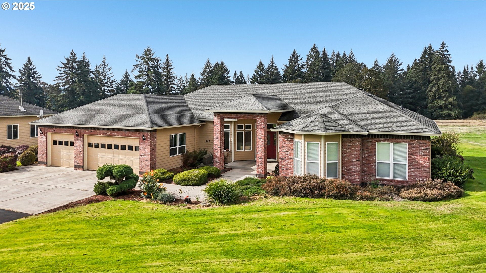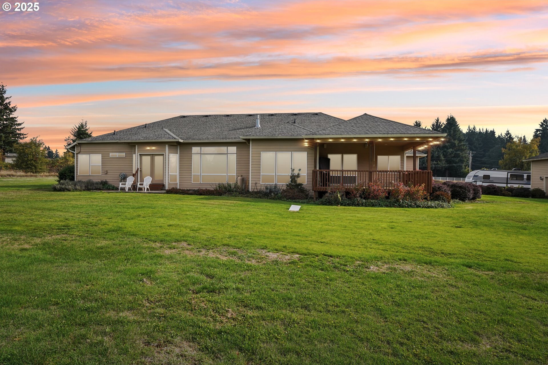 Discover the perfect blend of comfort and country living in this beautiful single-level home set on 5.66 peaceful acres. This spacious property features a 3-car attached garage, a large detached shop/garage, and a barn with 2 12x12 stalls—ideal for horses or hobby farming. The land is cross-fenced, with electric Horse fencing. The home welcomes you with tall ceilings and expansive rooms designed for both everyday living and entertaining. Enjoy the open layout, abundant natural light, and seamless flow to the covered deck—perfect for relaxing or taking in the serene views of the property. With an RV hookup and plenty of room to spread out, this property offers exceptional versatility for equestrian enthusiasts, hobbyists, or anyone seeking space and tranquility just minutes from town.