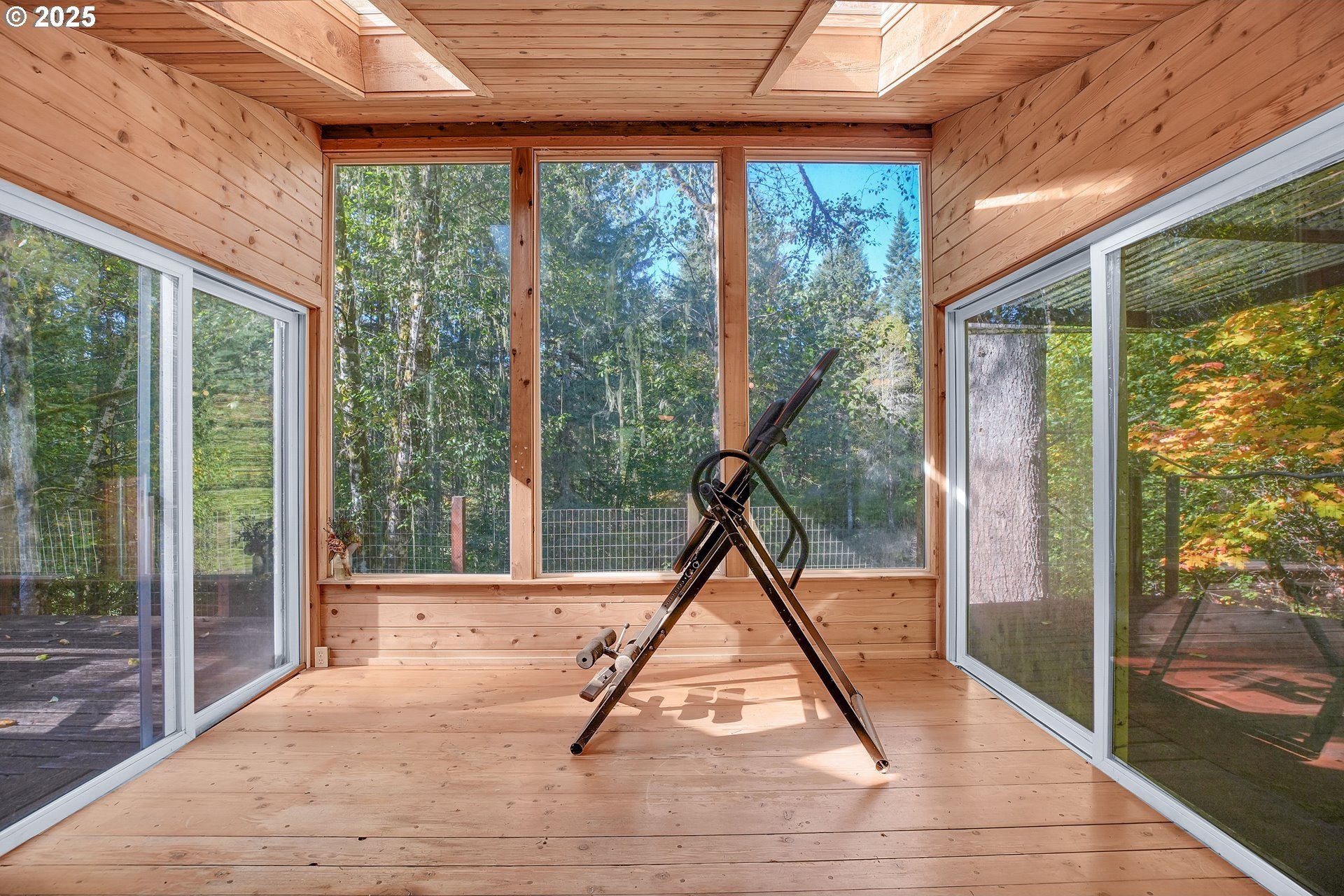 Cozy Woodland Retreat! Tucked away in the woods on beautiful private acreage, this thoughtful 2462sqft floor plan features 4 levels, 3-bedroom, 2.5-bath home nestled in a peaceful escape surrounded by trees and visiting wildlife. Step inside to be welcomed by the inviting living room with a wood-burning stove creating a relaxed atmosphere. The family room overflows with rustic charm and large windows to admire the scenery. The open kitchen features ample cabinet and counter space, flowing seamlessly into the dining room that’s perfect for gatherings. The adjoining sunroom is a true gem — a quiet spot to start your mornings with a cup of coffee or unwind at the end of the day while watching the seasons change. The primary suite is sizeable and comfy with a convenient walk-in shower, plus 2 additional spacious bedrooms, all on the same level. The oversized laundry/ mudroom features sufficient space with cabinets and a sink, great for projects and storage. The full basement boasts high ceilings and is ready for your finishing touches. Outside, enjoy two levels of deck space, convenient ADA-accessible entry ramp — including a wraparound upper deck — ideal for soaking up the quiet beauty of your surroundings. Multiple outbuildings that include a detached 1 car-garage & large pole barn that provides endless possibilities — from a workshop or hobby space to additional storage for outdoor gear or equipment. Plenty of room to explore, garden, or simply roam, this property is ideal for anyone seeking a slower pace and a deeper connection to the outdoors.