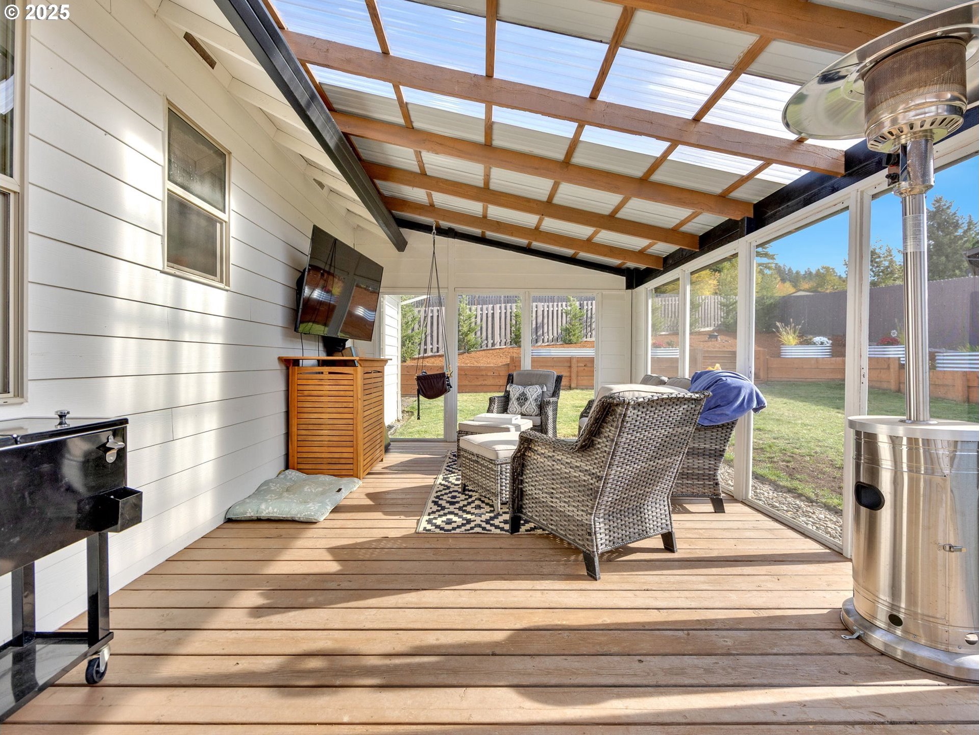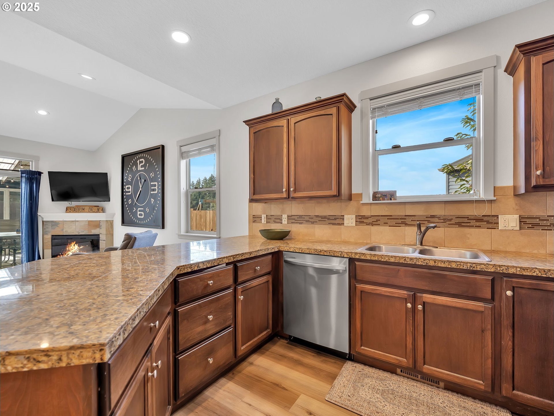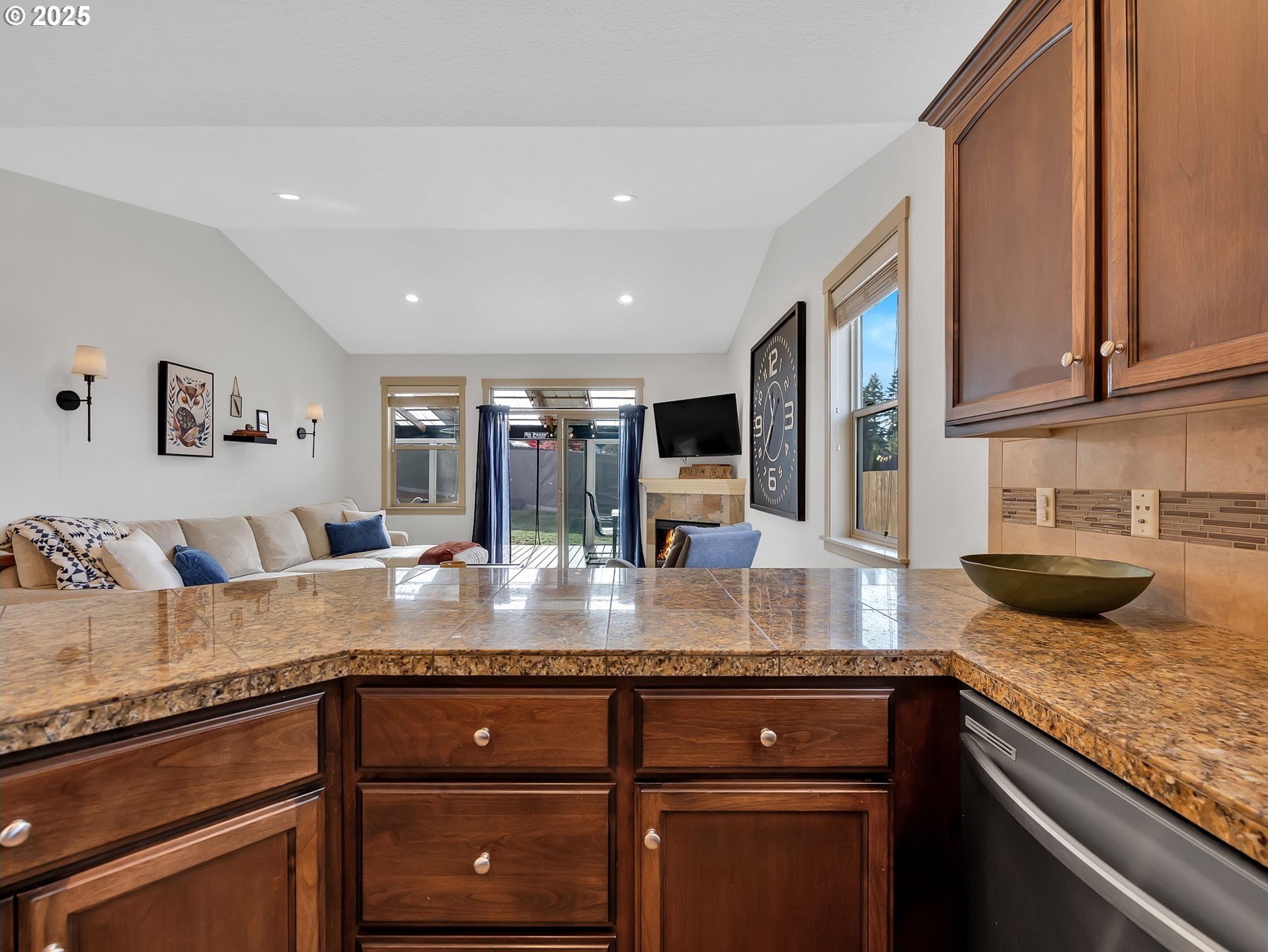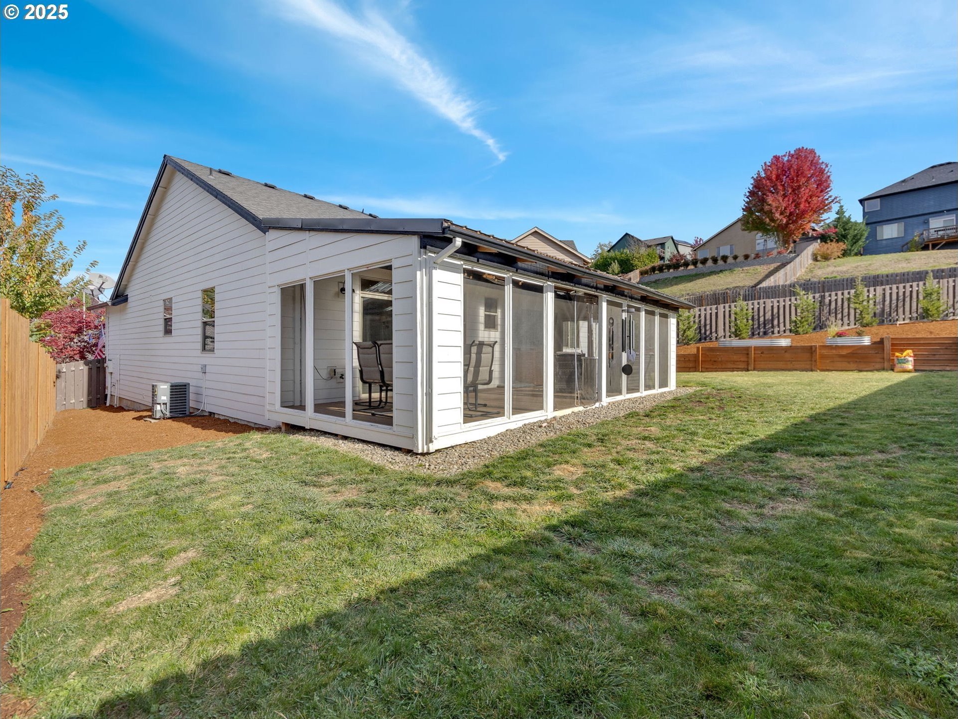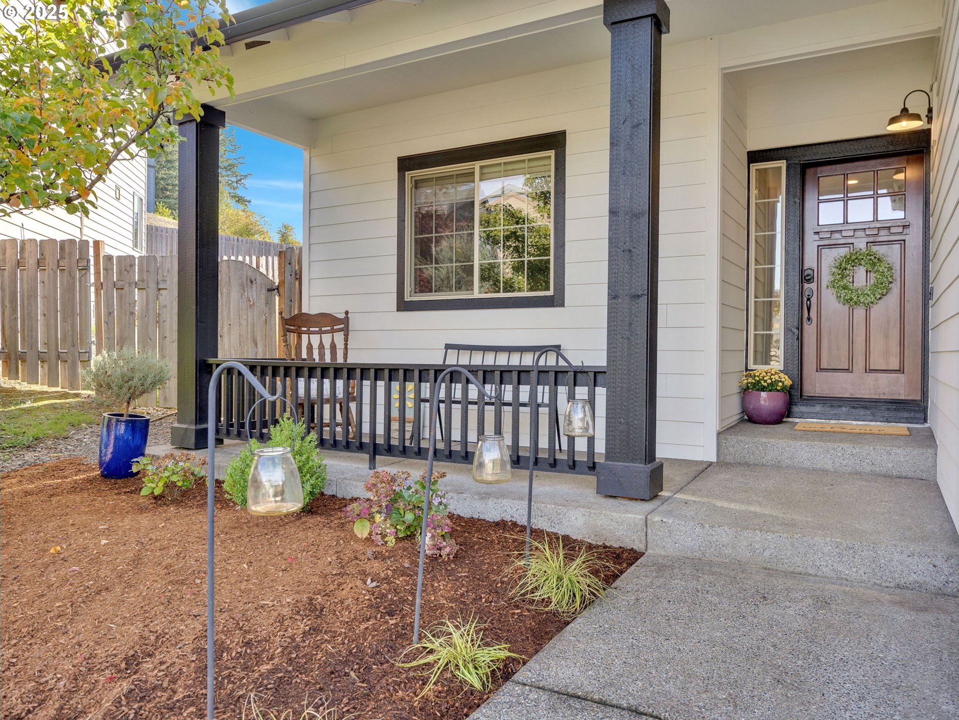 Welcome to this beautifully maintained 3-bedroom, 2-bath ranch-style home with a two-car attached garage, offering comfort, functionality, and modern finishes all on one level. The newer exterior paint and landscaping provide great curb appeal and a warm welcome on approach. Inside, you’ll find fresh interior paint, laminate flooring throughout the main living areas, and cozy carpeted bedrooms for added comfort. The open-concept living room features high ceilings and a fireplace, creating a bright and inviting space for relaxing or entertaining. The kitchen boasts granite countertops, an eat-at bar, and ample cabinetry—perfect for home-cooked meals and casual dining. The primary suite includes a private bathroom and a walk-in closet, offering an ideal retreat at the end of the day. A covered and screened back deck extends from the living room, providing year-round outdoor enjoyment. The large, fenced backyard features multiple tiered raised garden beds—perfect for summer planting, play, or simply unwinding outdoors.
