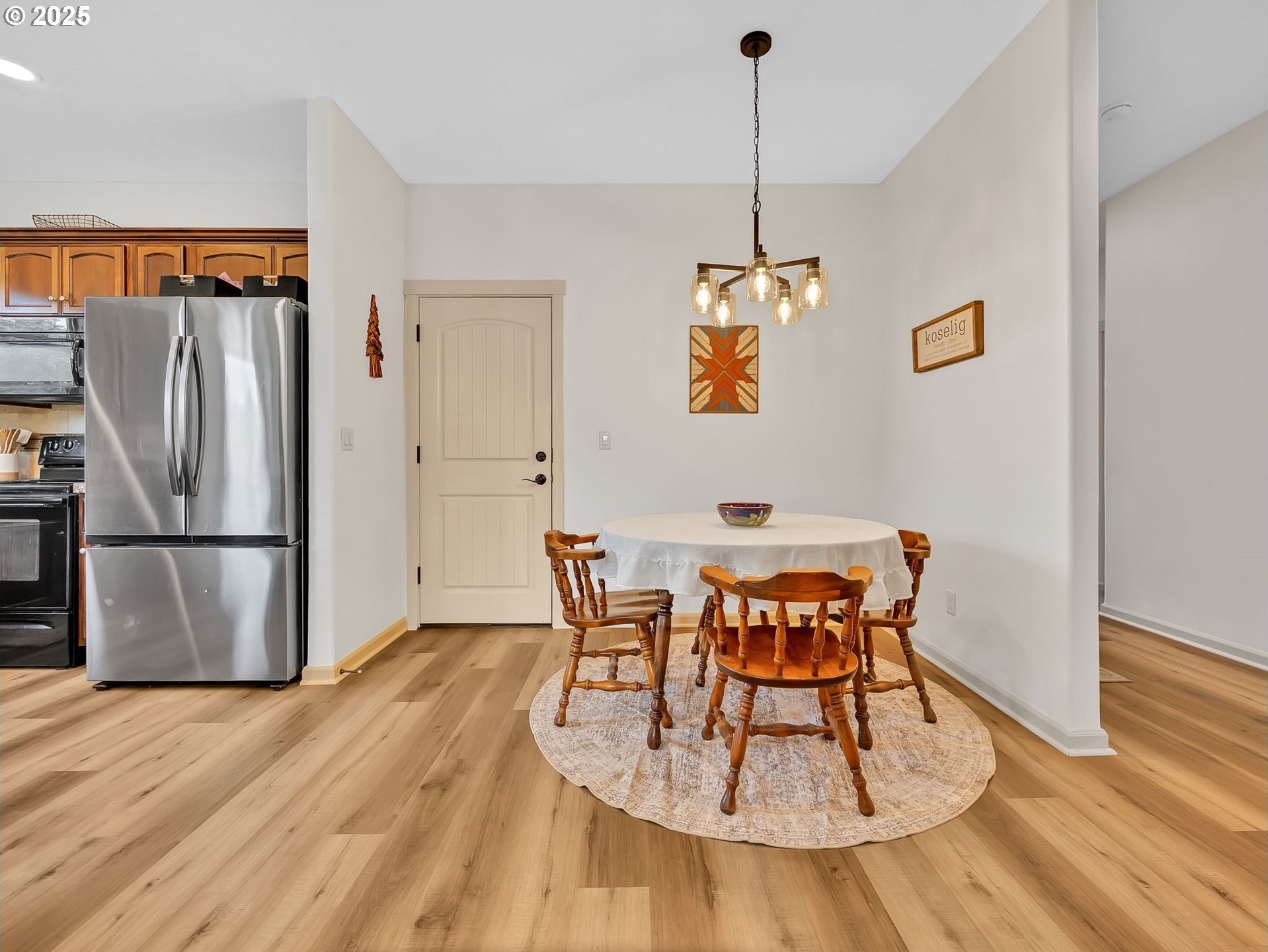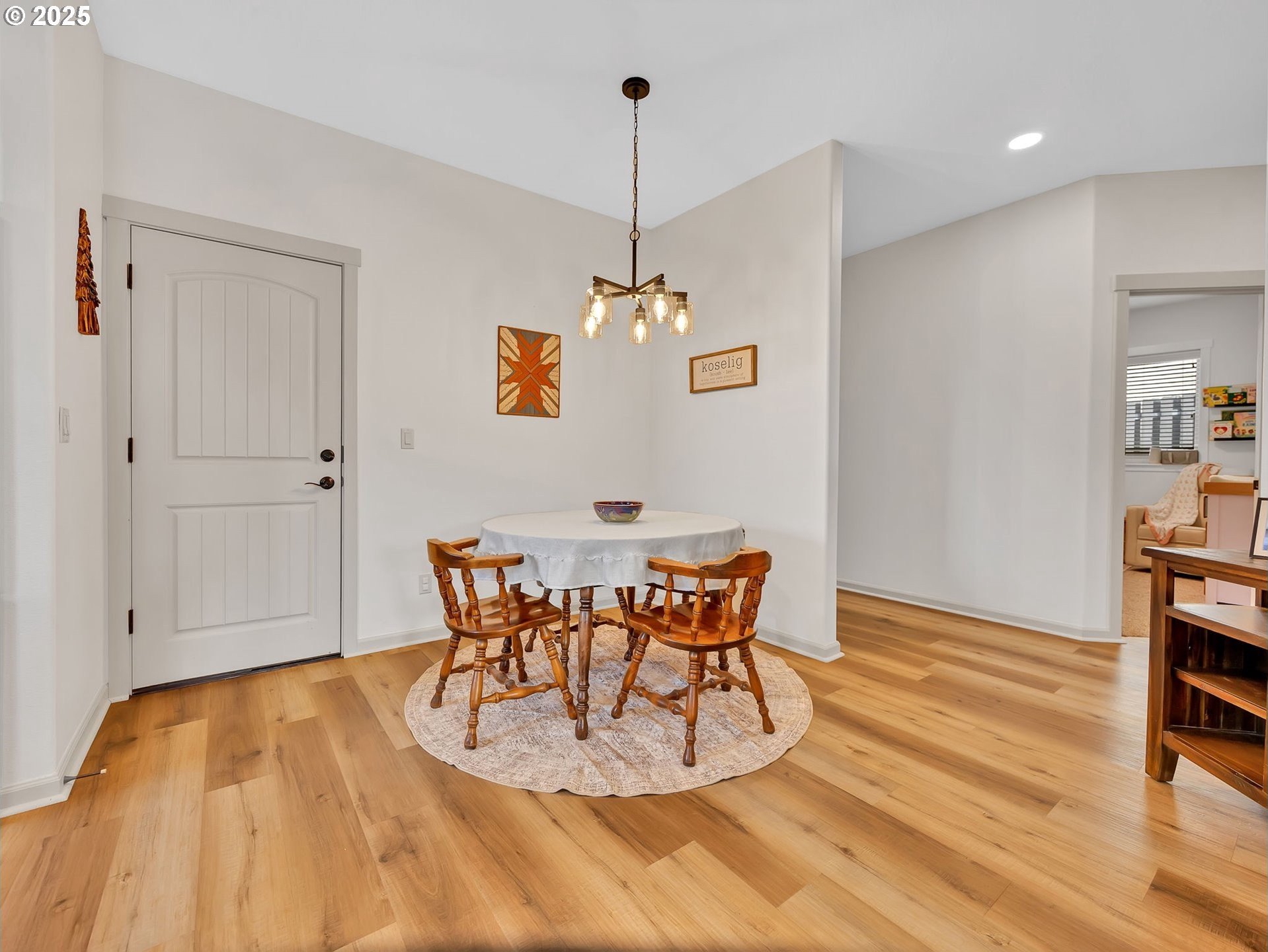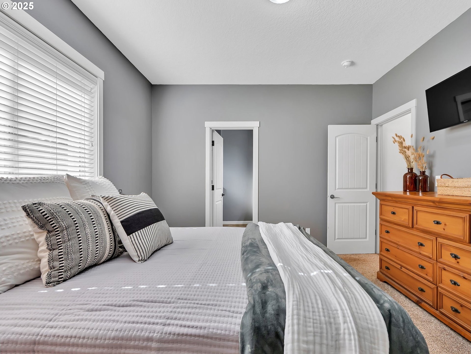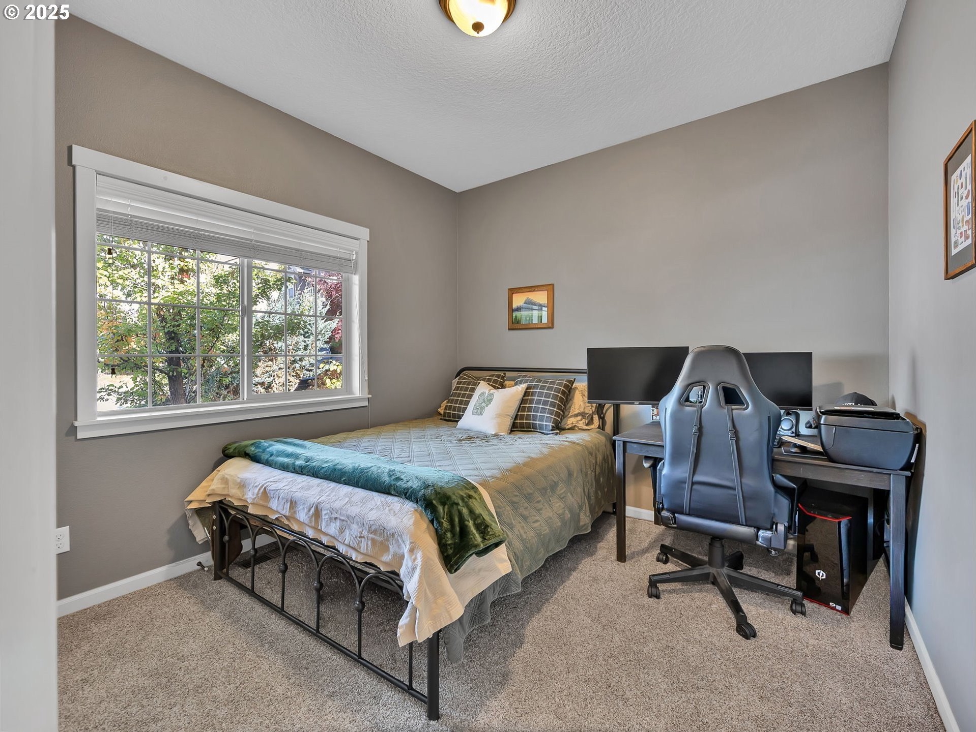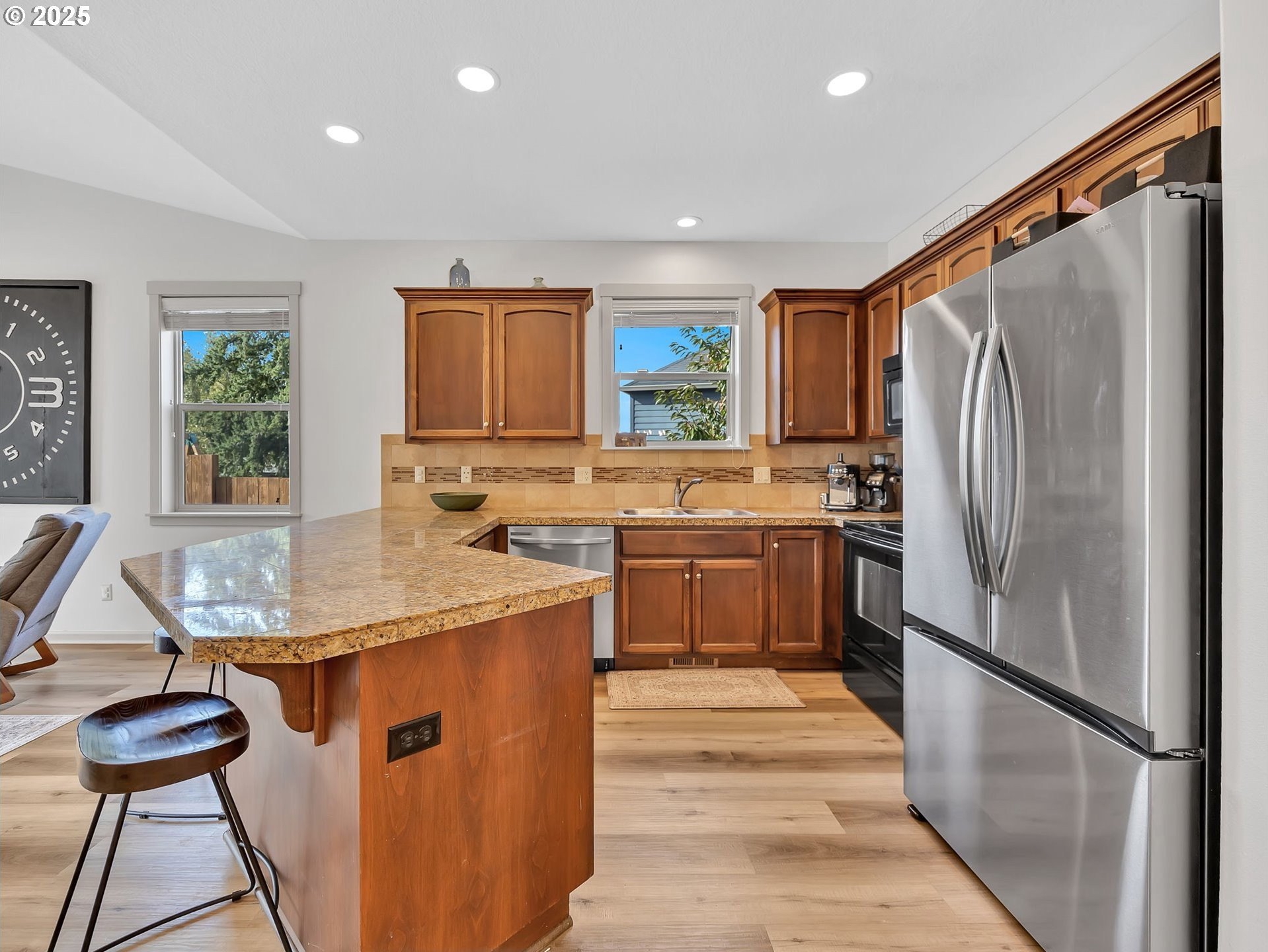 Welcome to this beautifully maintained 3-bedroom, 2-bath ranch-style home with a two-car attached garage, offering comfort, functionality, and modern finishes all on one level. The newer exterior paint and landscaping provide great curb appeal and a warm welcome on approach. Inside, you’ll find fresh interior paint, laminate flooring throughout the main living areas, and cozy carpeted bedrooms for added comfort. The open-concept living room features high ceilings and a fireplace, creating a bright and inviting space for relaxing or entertaining. The kitchen boasts granite countertops, an eat-at bar, and ample cabinetry—perfect for home-cooked meals and casual dining. The primary suite includes a private bathroom and a walk-in closet, offering an ideal retreat at the end of the day. A covered and screened back deck extends from the living room, providing year-round outdoor enjoyment. The large, fenced backyard features multiple tiered raised garden beds—perfect for summer planting, play, or simply unwinding outdoors.