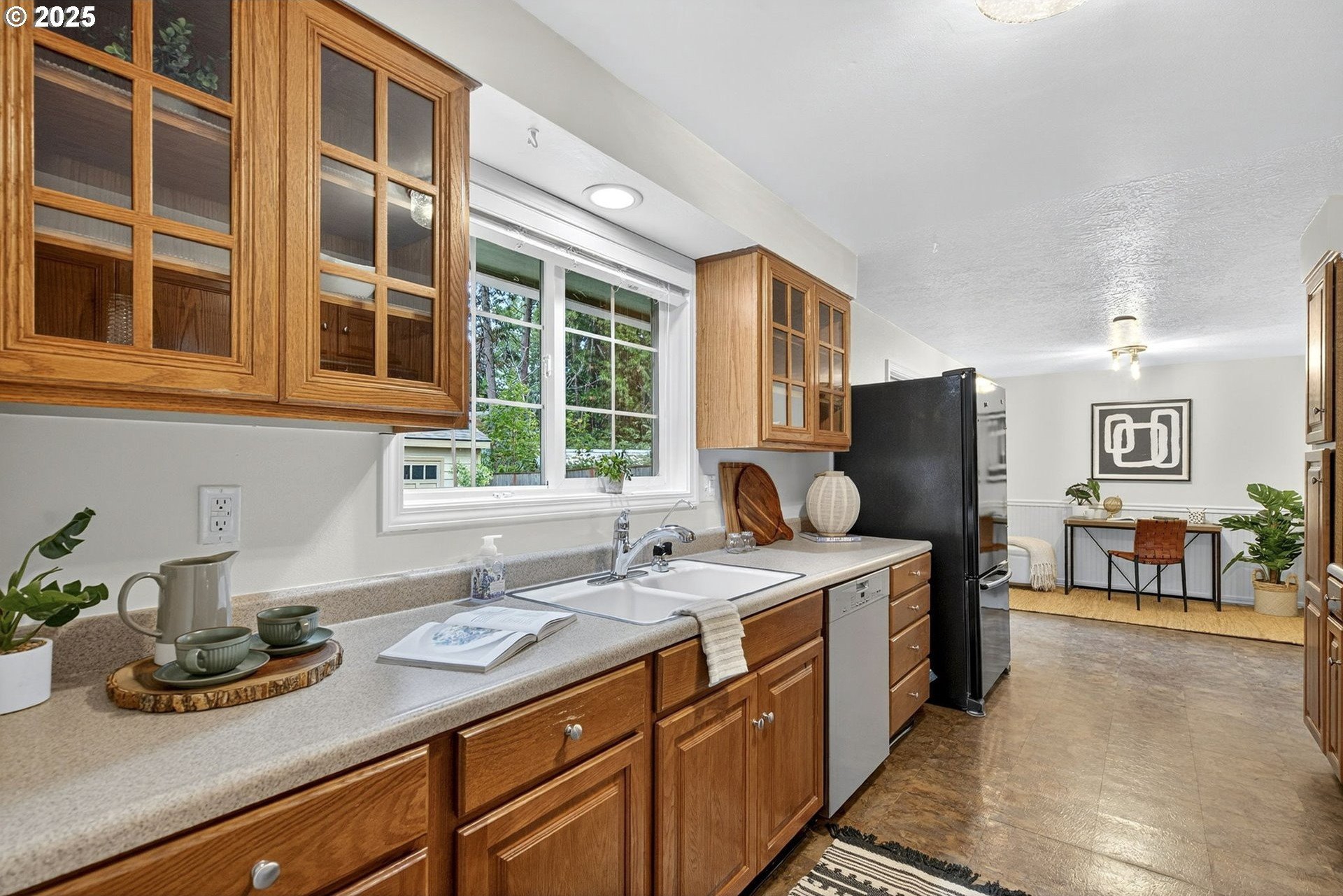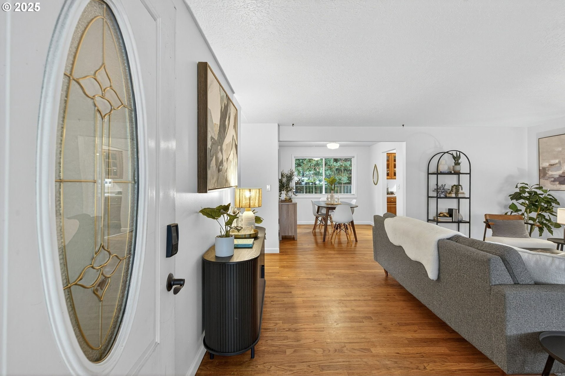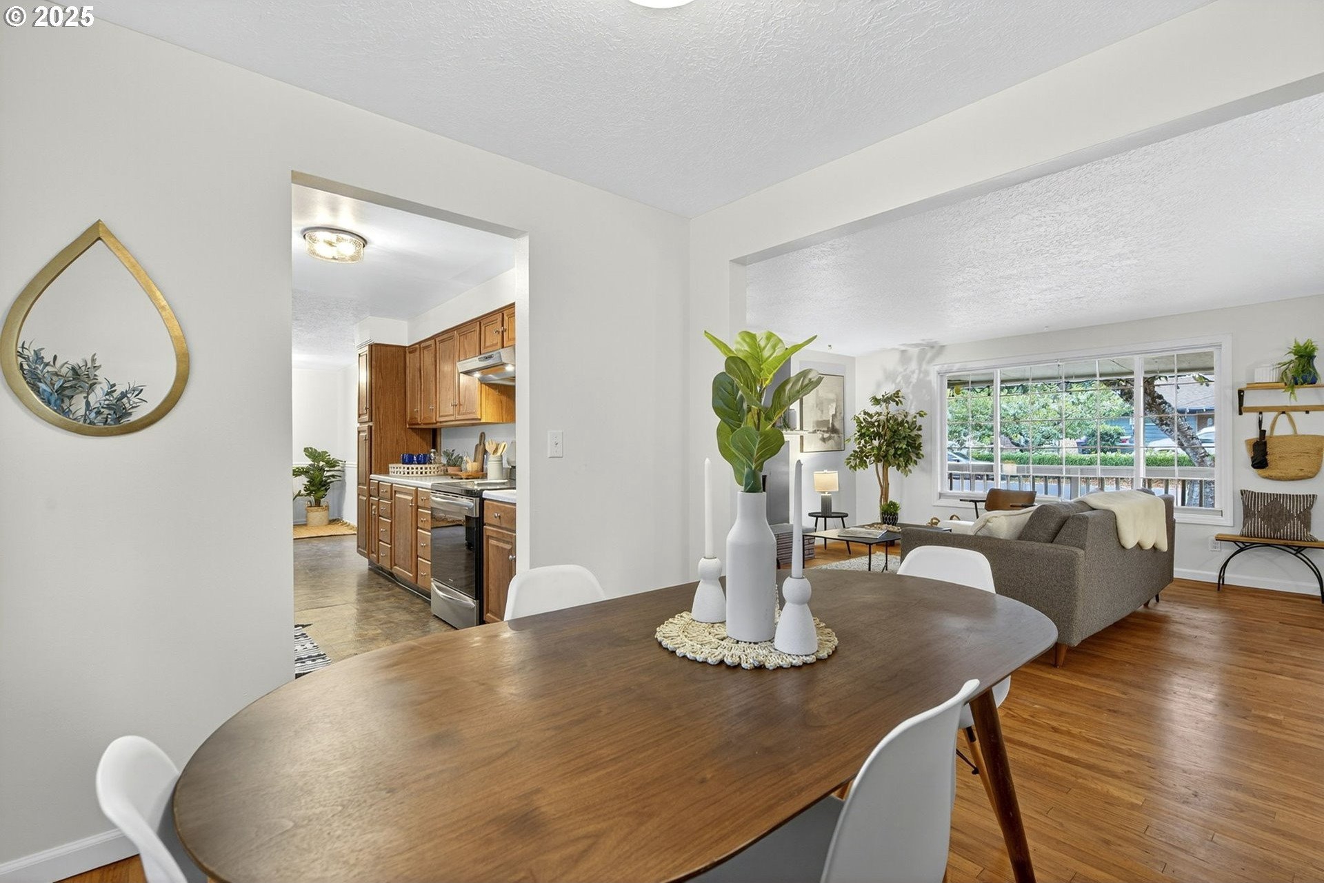 Near Old Town Hillsboro, this inviting 3-bedroom, 1 and 1/2 bath home blends classic warmth with thoughtful updates. Beautiful hardwood floors that flow through bright, welcoming living spaces. A wood-burning fireplace anchors the living room, creating a cozy spot for gatherings. Updated windows fill each room with natural light, while generous closet space keeps everything neatly organized. The kitchen features newer stainless-steel range and dishwasher, lots of counter and cabinet space. A sweet bonus area off the kitchen is ideal for a home office or relaxing retreat. Updated systems with a newer gas furnace, central A/C, 2021 roof and a reinsulated attic for year-round efficiency. Fresh paint, Enjoy a spacious fenced yard with a tool shed, perfect for gardening or hobbies. Entertain or unwind on the back deck, or sip morning coffee on the covered front porch. The attached two-car garage offers convenience and extra storage. Located in a quiet neighborhood minutes from growing downtown Hillsboro’s shops, restaurants, food carts, farmers markets and community events, this home combines comfort and convenience. Near schools, Intel and the Max Line easy access to Portland.