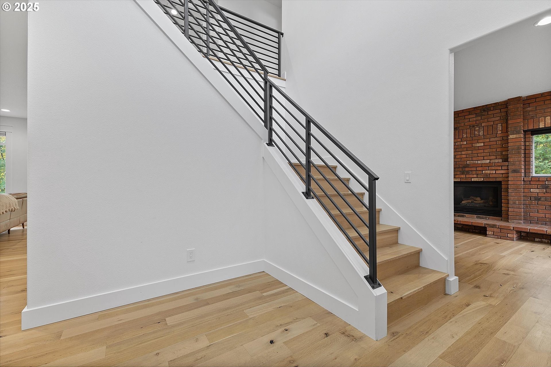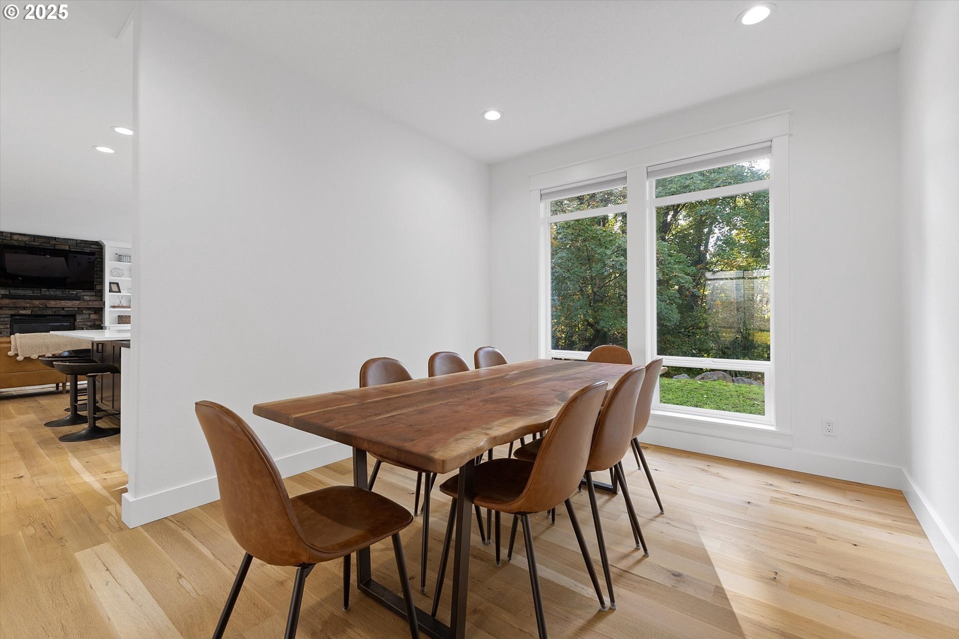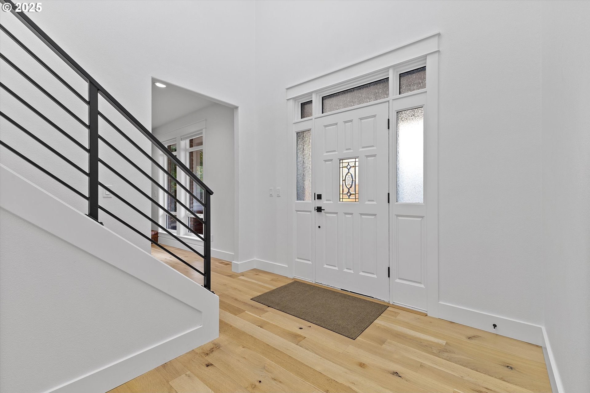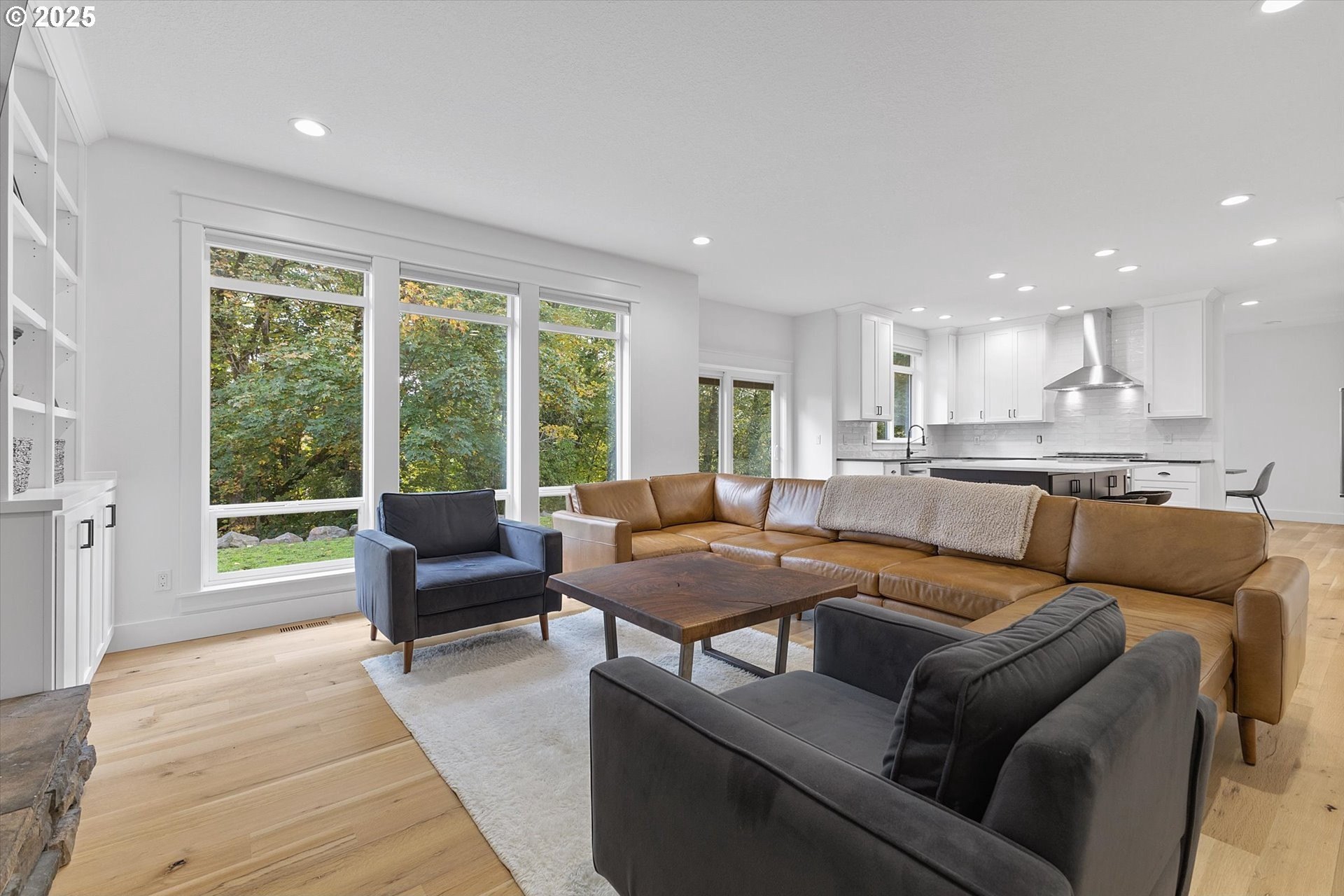 Absolutely stunning, meticulously remodeled home backing to the Willamette River.This contractor-owned residence has been thoughtfully upgraded from top to bottom with premium finishes throughout. Tucked at the end of a quiet cul-de-sac with friendly neighbors and direct access to a beloved community walking trail, the location perfectly balances privacy and convenience, just minutes to I-5, top-rated restaurants, and great shopping. Inside, soaring ceilings and expansive windows flood the home with natural light, creating a warm, open atmosphere. The highly desirable floor plan flows seamlessly from the family room to the kitchen and dining areas, ideal for everyday living and entertaining. The spacious kitchen features custom cabinetry with abundant storage, a beautifully designed island with bar seating, and a high-end stainless steel appliance suite. Gorgeous wide-plank solid oak hardwood floors extend through most of the home, with plush carpeting in the four non-primary bedrooms. Upstairs, you’ll find five generously sized bedrooms, including an impressive primary suite complete with a gas fireplace, spa-like bathroom, and large walk-in closet. A second bedroom also features its own fireplace, adding a touch of luxury and comfort. With four gas fireplaces total, this home offers multiple cozy spaces to relax during the cooler months. The oversized garage is fully finished with a custom epoxy floor and includes an extra-deep bay—providing ample room for two cars plus additional storage, or a workshop. A mix of concrete and asphalt surfaces out front allows parking for 5+ vehicles. The rear lot behind the home was previously part of the property and may present an opportunity to reclaim and expand the parcel to over half an acre with potential river access (buyer to verify). Extremely well insulated and remarkably quiet inside, this is a rare opportunity to own a truly turn-key river-adjacent home that combines quality craftsmanship, comfort, and location.