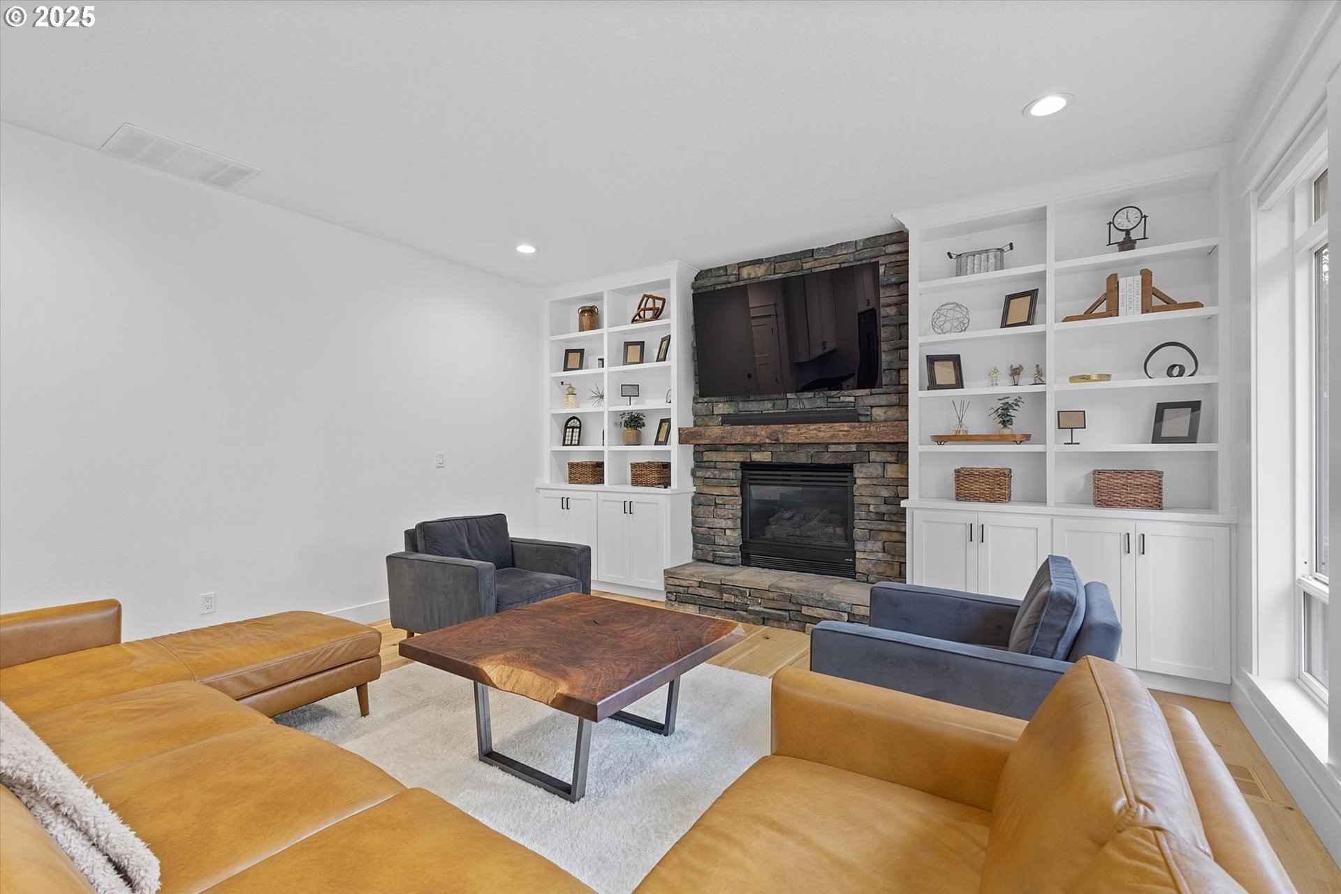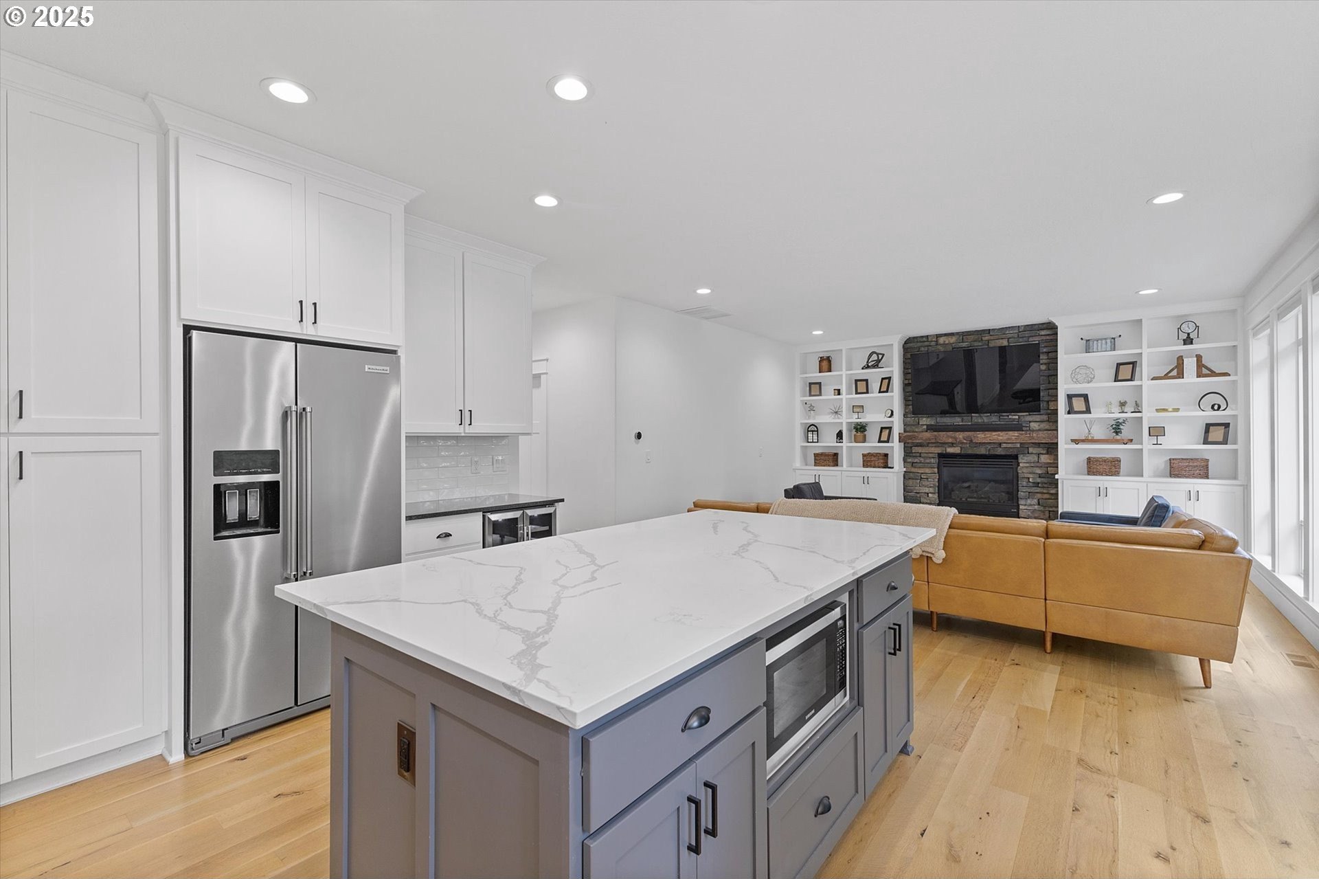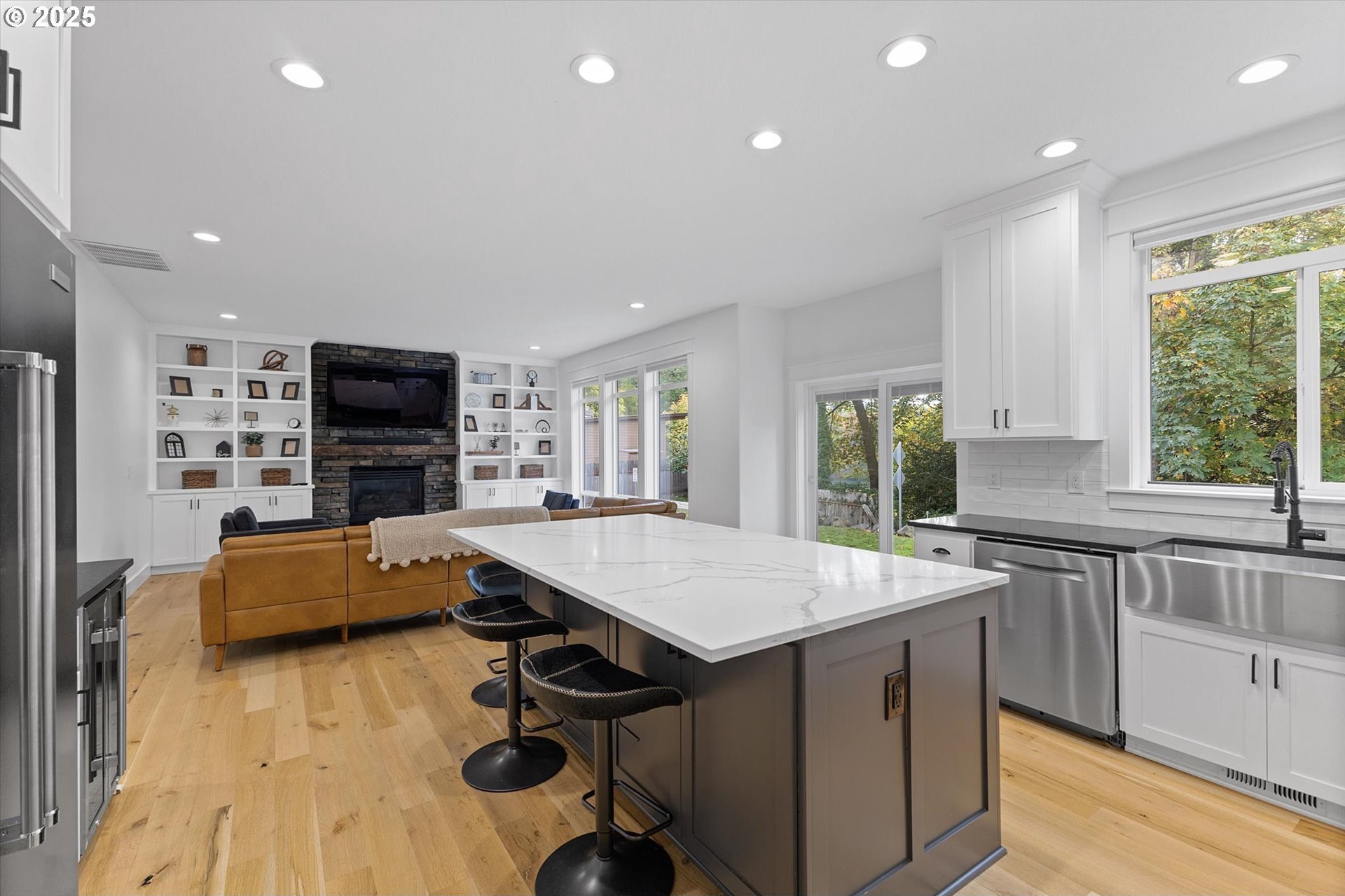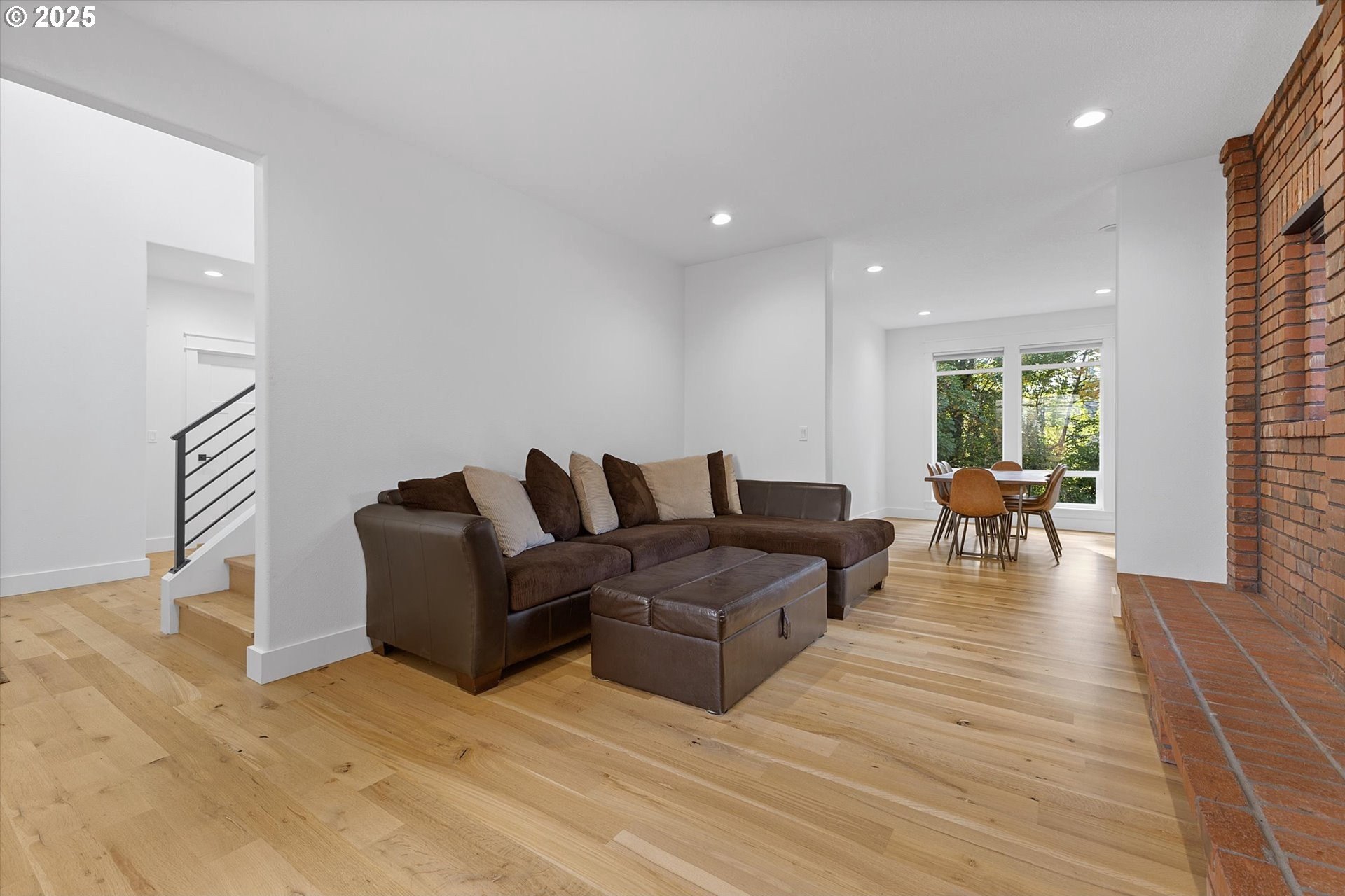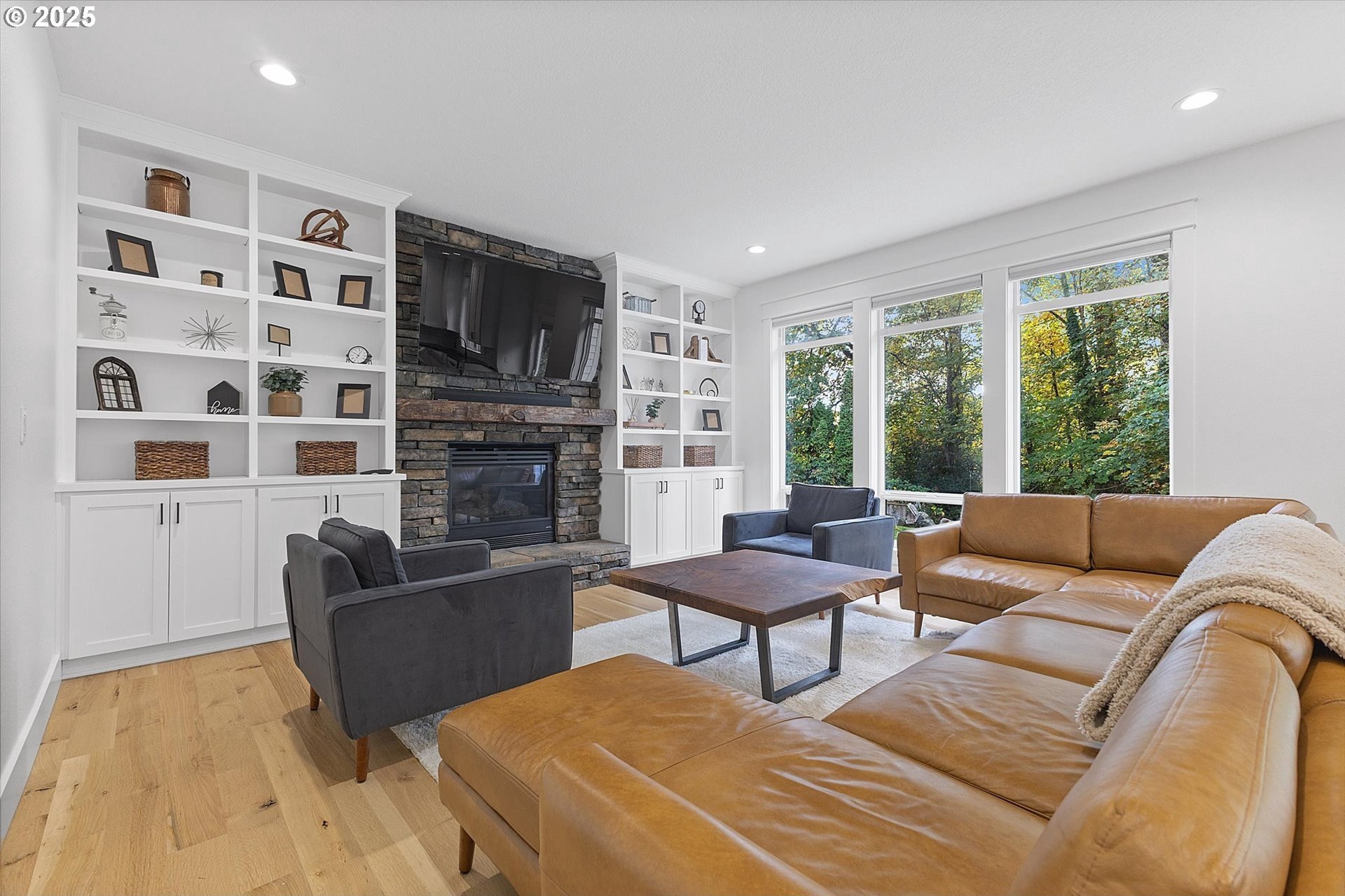 Absolutely stunning, meticulously remodeled home backing to the Willamette River.This contractor-owned residence has been thoughtfully upgraded from top to bottom with premium finishes throughout. Tucked at the end of a quiet cul-de-sac with friendly neighbors and direct access to a beloved community walking trail, the location perfectly balances privacy and convenience, just minutes to I-5, top-rated restaurants, and great shopping. Inside, soaring ceilings and expansive windows flood the home with natural light, creating a warm, open atmosphere. The highly desirable floor plan flows seamlessly from the family room to the kitchen and dining areas, ideal for everyday living and entertaining. The spacious kitchen features custom cabinetry with abundant storage, a beautifully designed island with bar seating, and a high-end stainless steel appliance suite. Gorgeous wide-plank solid oak hardwood floors extend through most of the home, with plush carpeting in the four non-primary bedrooms. Upstairs, you’ll find five generously sized bedrooms, including an impressive primary suite complete with a gas fireplace, spa-like bathroom, and large walk-in closet. A second bedroom also features its own fireplace, adding a touch of luxury and comfort. With four gas fireplaces total, this home offers multiple cozy spaces to relax during the cooler months. The oversized garage is fully finished with a custom epoxy floor and includes an extra-deep bay—providing ample room for two cars plus additional storage, or a workshop. A mix of concrete and asphalt surfaces out front allows parking for 5+ vehicles. The rear lot behind the home was previously part of the property and may present an opportunity to reclaim and expand the parcel to over half an acre with potential river access (buyer to verify). Extremely well insulated and remarkably quiet inside, this is a rare opportunity to own a truly turn-key river-adjacent home that combines quality craftsmanship, comfort, and location.