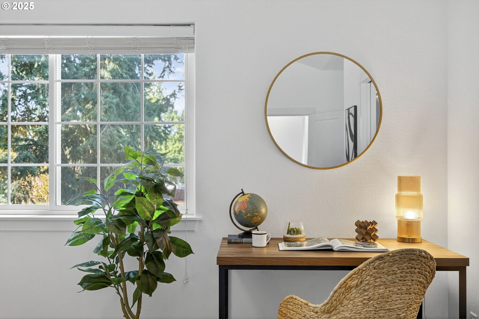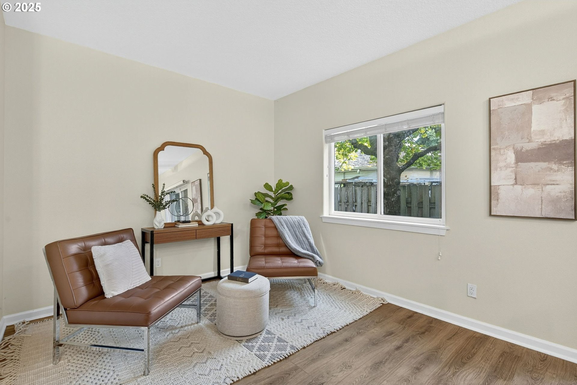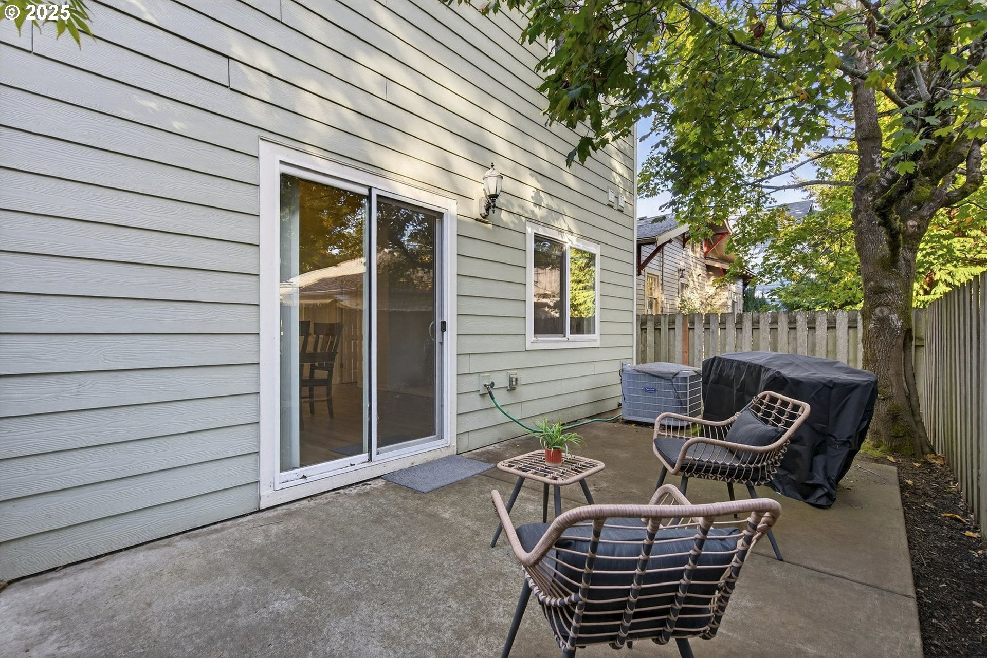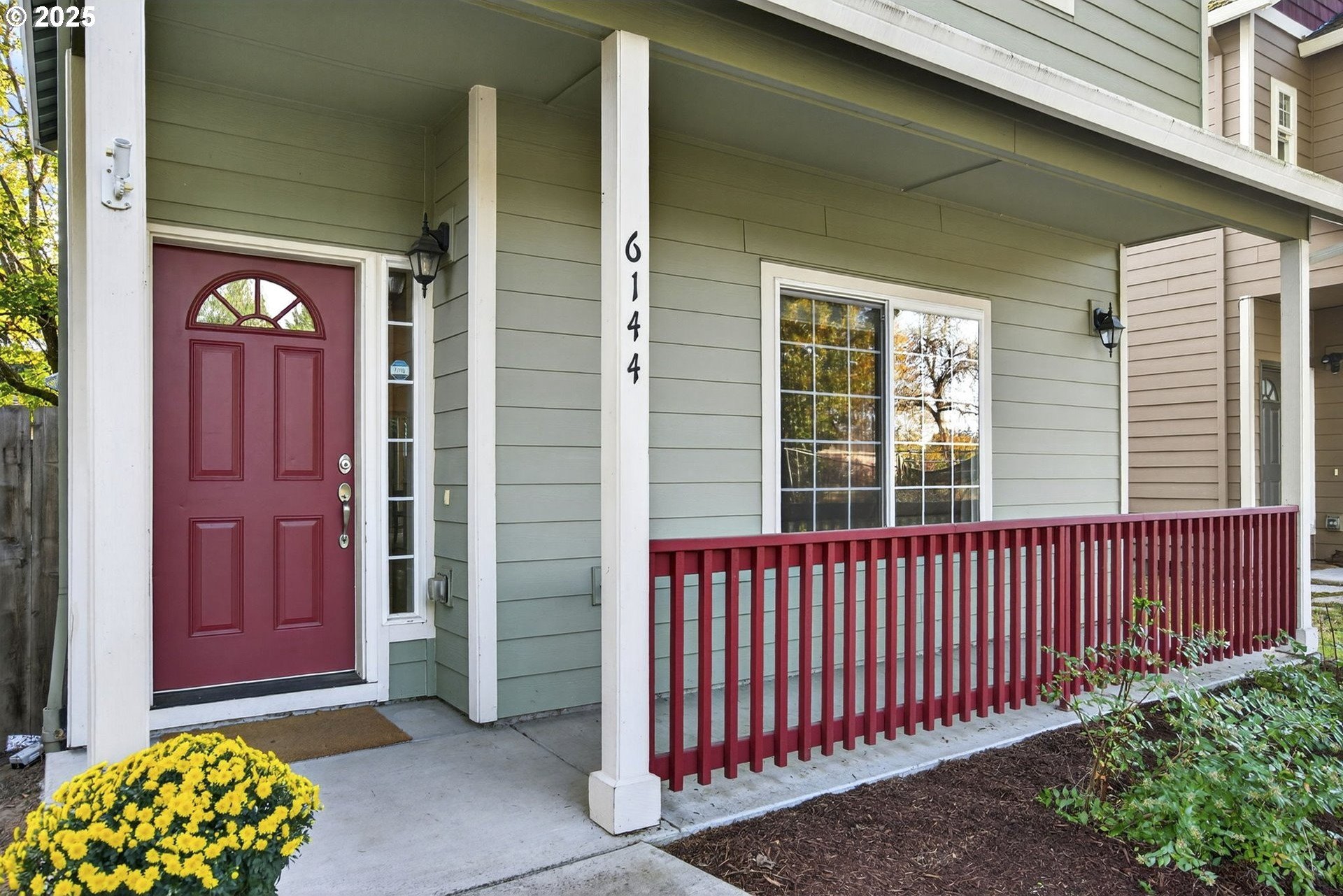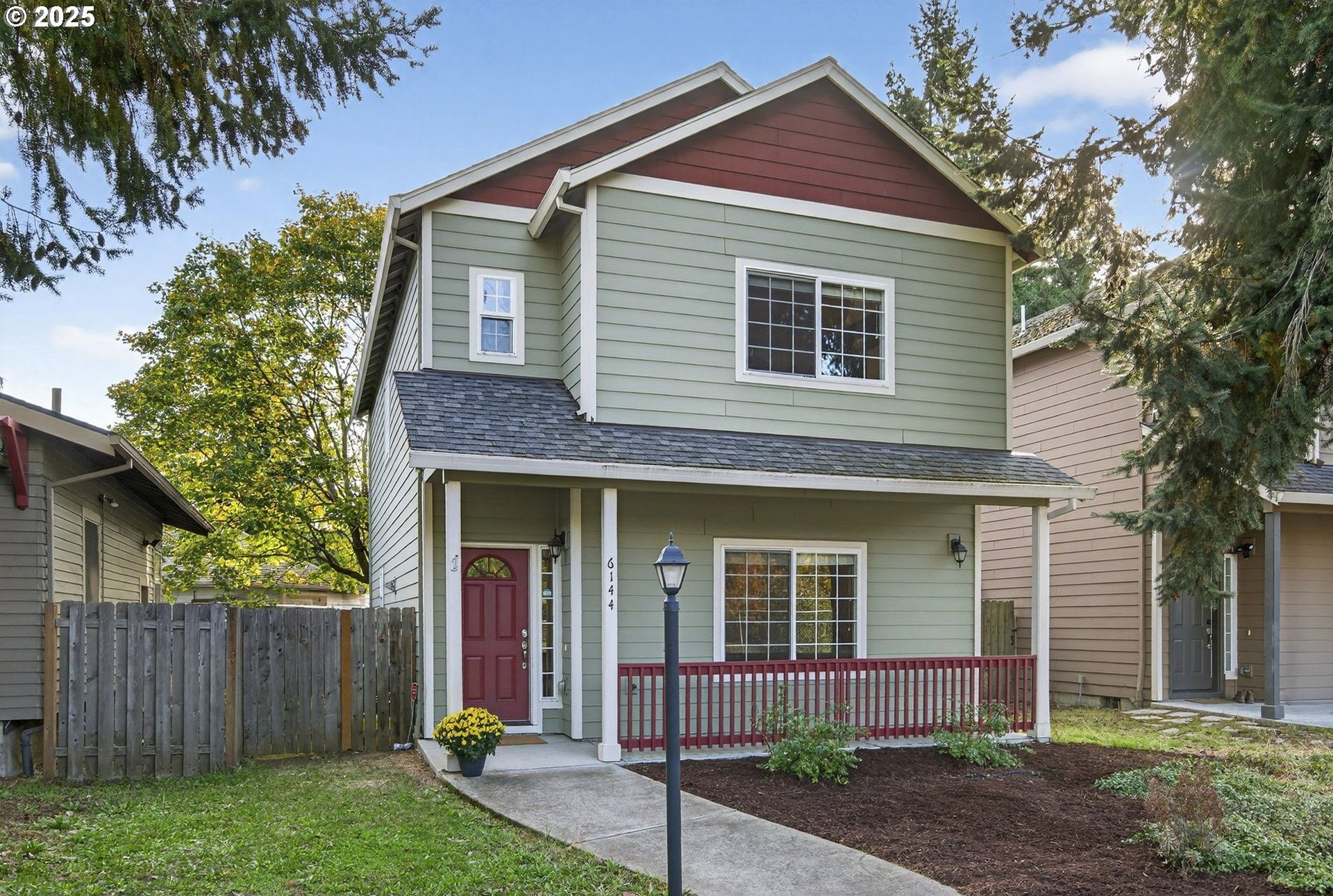 Tucked back off of Duke in a quiet community of 4 homes (without an HOA) this easy-to-love 3 bed/ 2.5 bath contemporary makes modern living feel inviting. From the moment you spot the pop of red trim and bold front door, you know this home has personality and practicality. Step inside to find high ceilings that make the home feel larger than its sq footage. In the living room sunshine streams through a large picture window and then flows to the open kitchen/dining and a charming nook/home office/playroom space. Style meets function in the kitchen, with sleek gray cabinetry, quartz countertops, and stainless-steel appliances ready for anything from Sunday pancakes to full-blown dinner parties. There’s plenty of prep space, smart storage, and a roomy breakfast bar that naturally draws everyone together. The adjacent dining area opens to the backyard, making it easy to keep the conversation flowing indoors and out. Laundry room with included large-capacity washer/dryer is also on the main.Upstairs is your large primary suite with a walk-in closet that overlooks the park. Two additional bedrooms are upstairs as well as a shared bath. Outside, the private fenced patio and side yard also offer a storage shed and just enough space for the dog, the BBQ and a bit of outdoor living. Each home has a its own front yard space too. Steps to Brentwood City Park, 14 acres of soccer and football fields, dog park and more. Blocks to schools, shops, restaurants. Biker's Paradise score = 93. [Home Energy Score = 6. HES Report at https://rpt.greenbuildingregistry.com/hes/OR10185658]