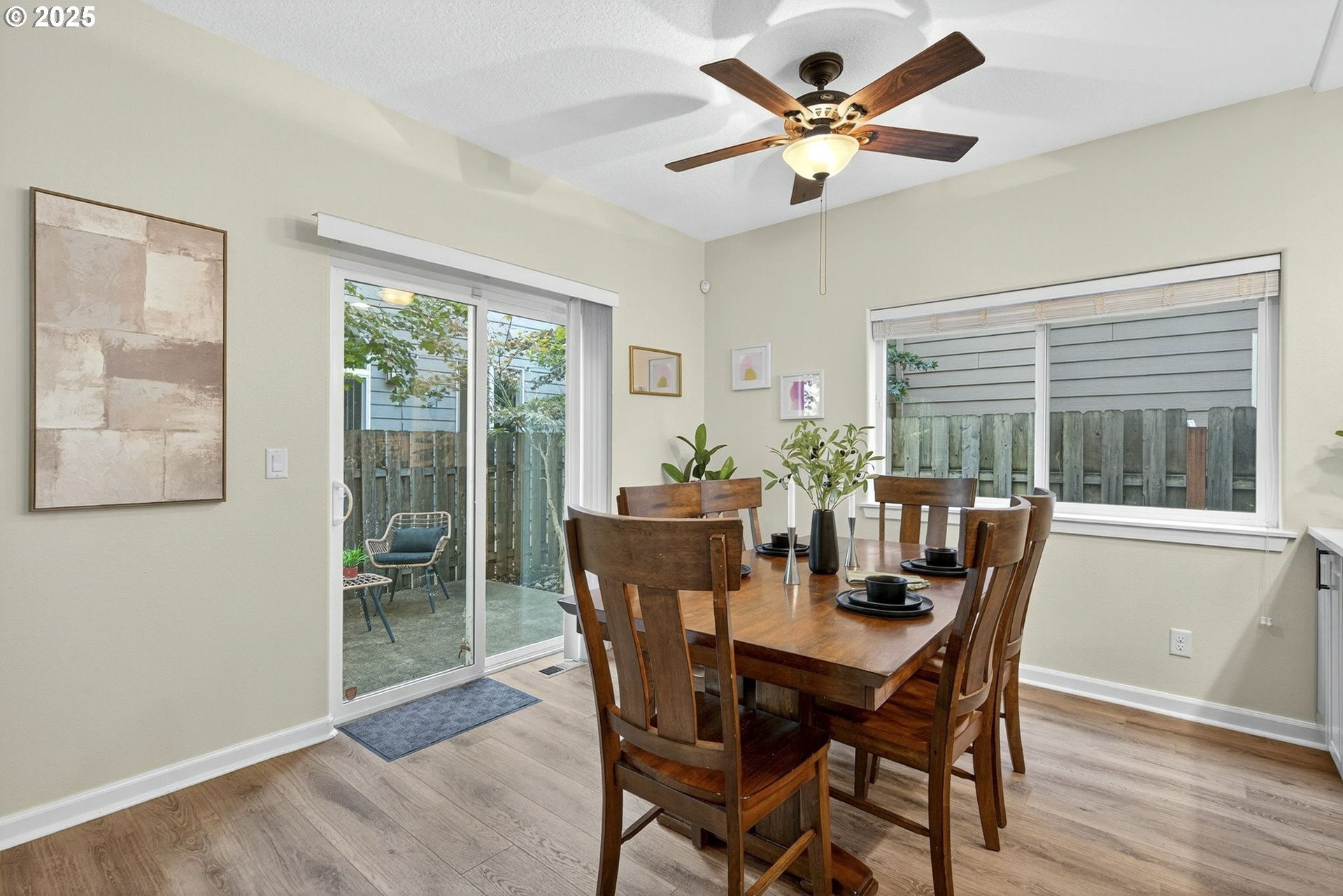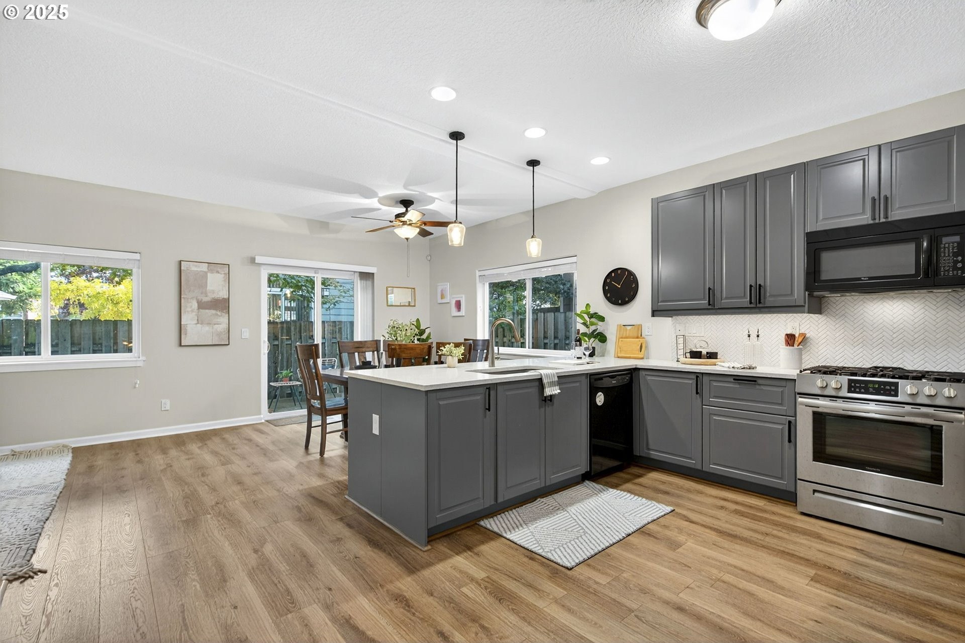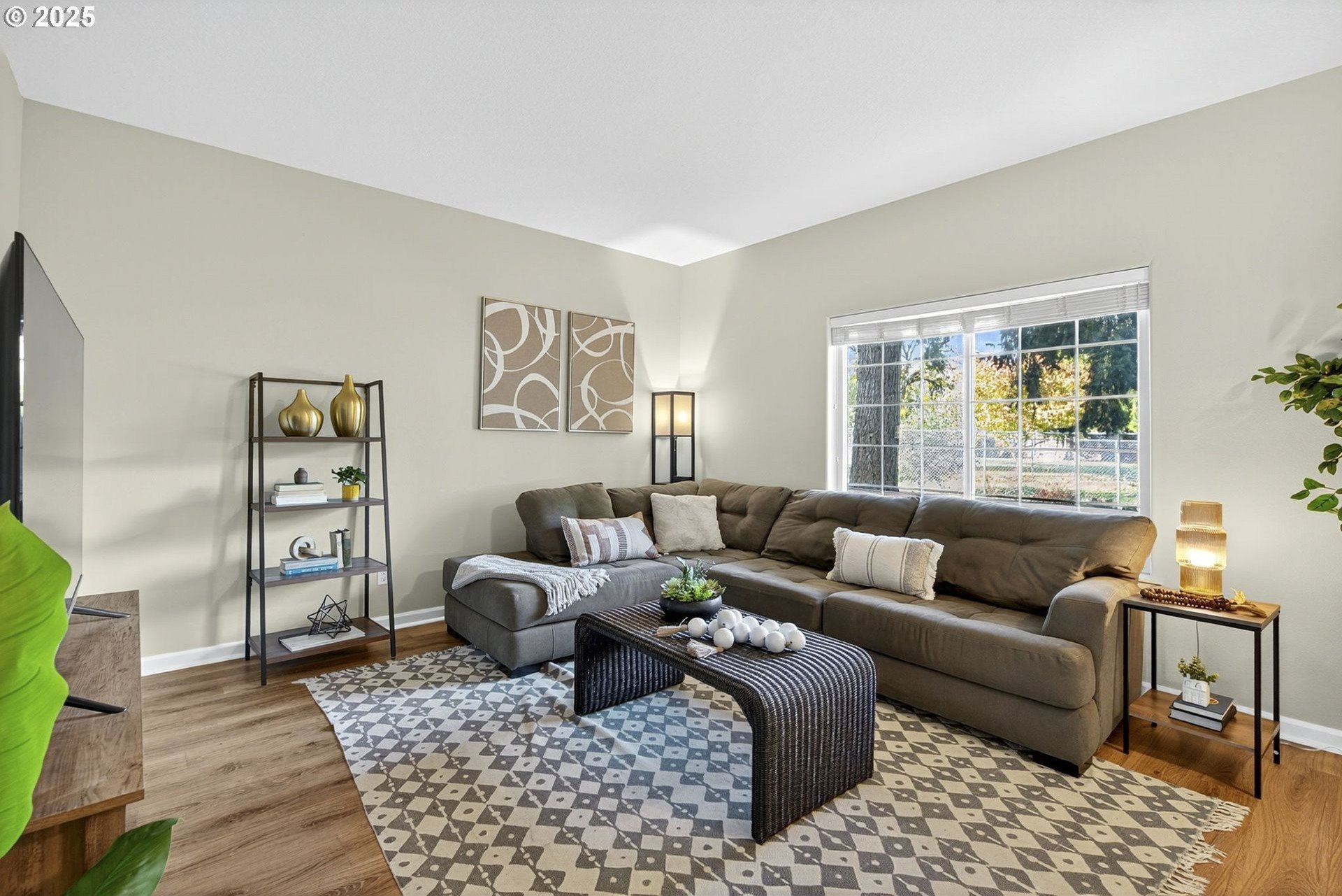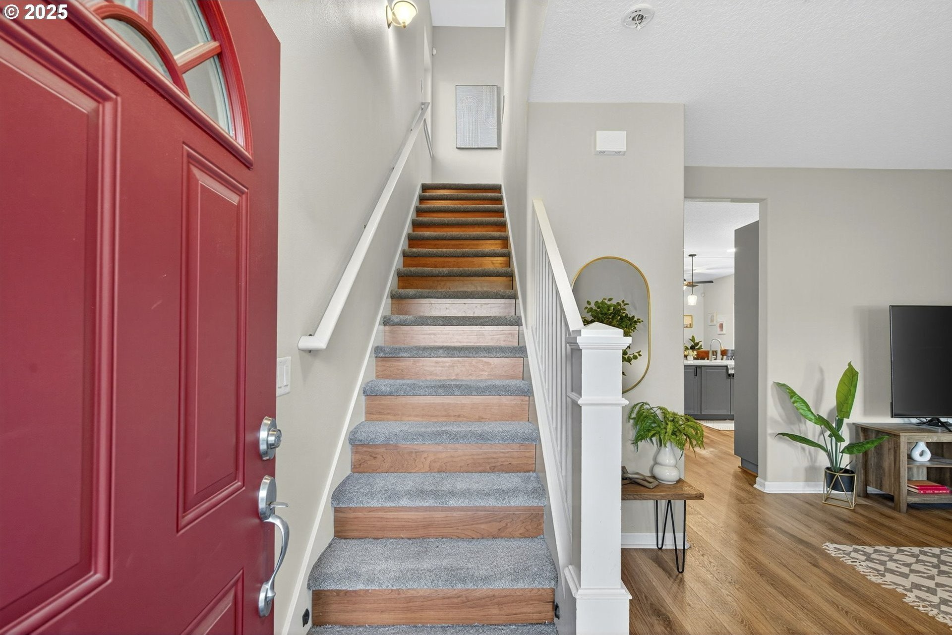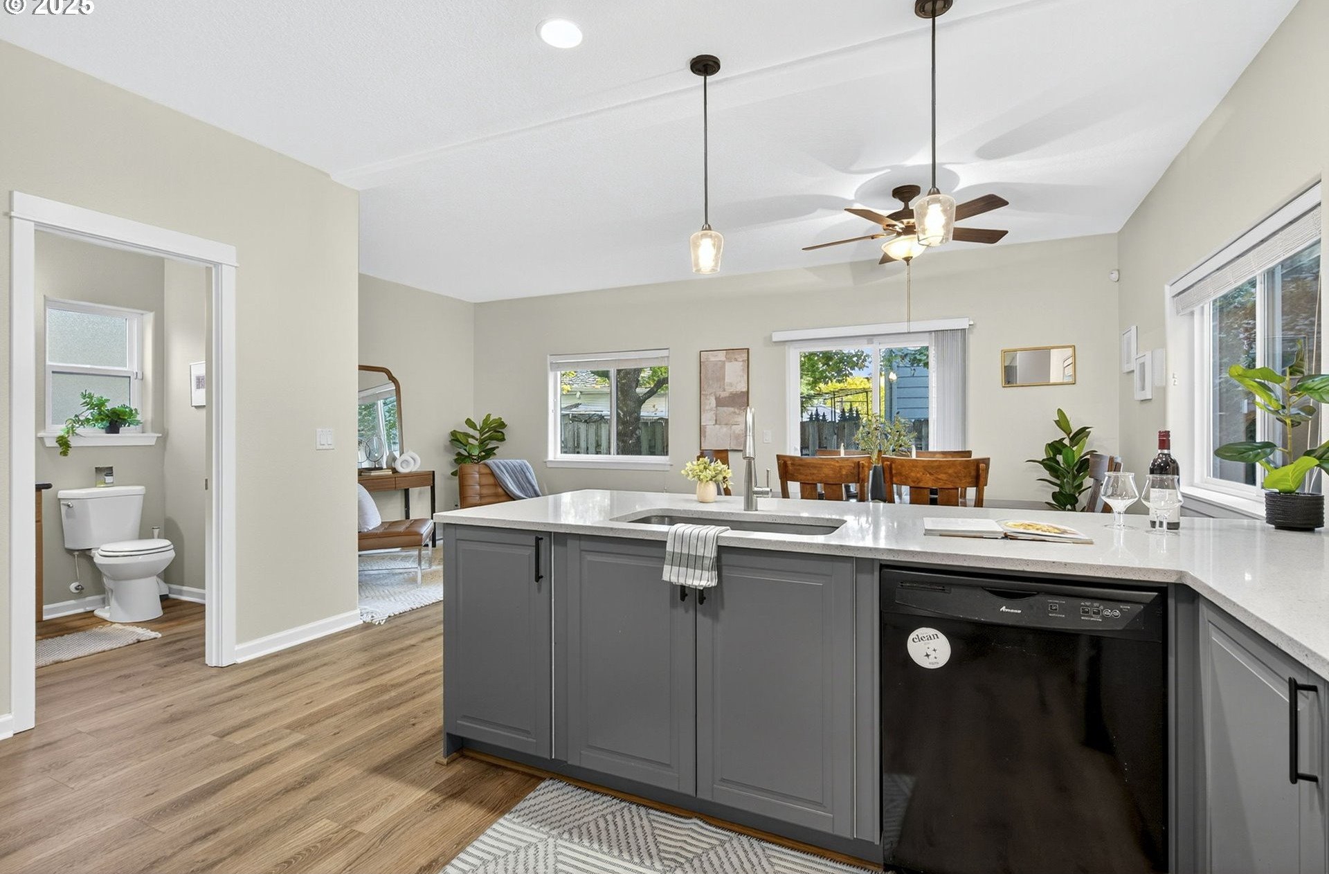 Tucked back off of Duke in a quiet community of 4 homes (without an HOA) this easy-to-love 3 bed/ 2.5 bath contemporary makes modern living feel inviting. From the moment you spot the pop of red trim and bold front door, you know this home has personality and practicality. Step inside to find high ceilings that make the home feel larger than its sq footage. In the living room sunshine streams through a large picture window and then flows to the open kitchen/dining and a charming nook/home office/playroom space. Style meets function in the kitchen, with sleek gray cabinetry, quartz countertops, and stainless-steel appliances ready for anything from Sunday pancakes to full-blown dinner parties. There’s plenty of prep space, smart storage, and a roomy breakfast bar that naturally draws everyone together. The adjacent dining area opens to the backyard, making it easy to keep the conversation flowing indoors and out. Laundry room with included large-capacity washer/dryer is also on the main.Upstairs is your large primary suite with a walk-in closet that overlooks the park. Two additional bedrooms are upstairs as well as a shared bath. Outside, the private fenced patio and side yard also offer a storage shed and just enough space for the dog, the BBQ and a bit of outdoor living. Each home has a its own front yard space too. Steps to Brentwood City Park, 14 acres of soccer and football fields, dog park and more. Blocks to schools, shops, restaurants. Biker's Paradise score = 93. [Home Energy Score = 6. HES Report at https://rpt.greenbuildingregistry.com/hes/OR10185658]
