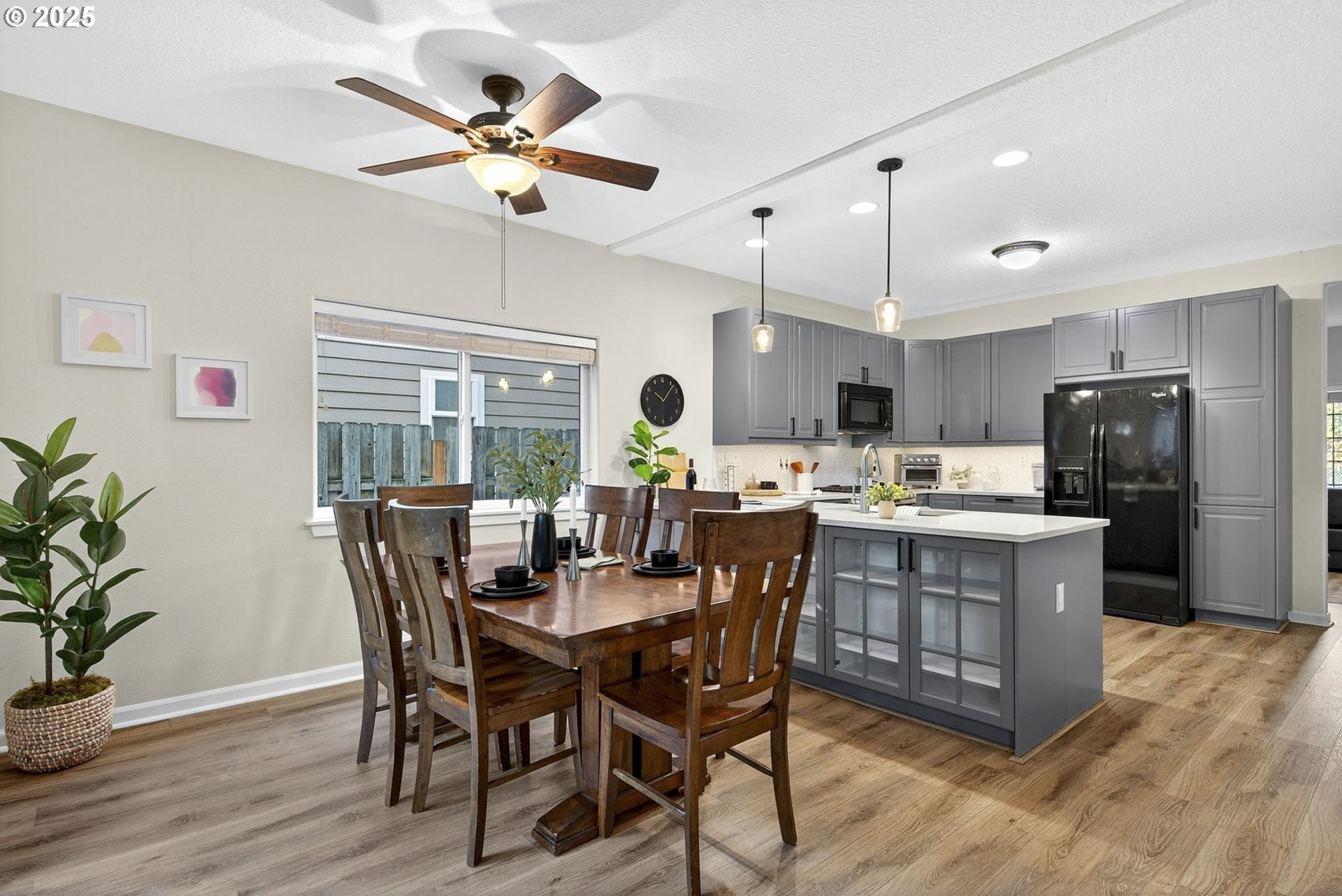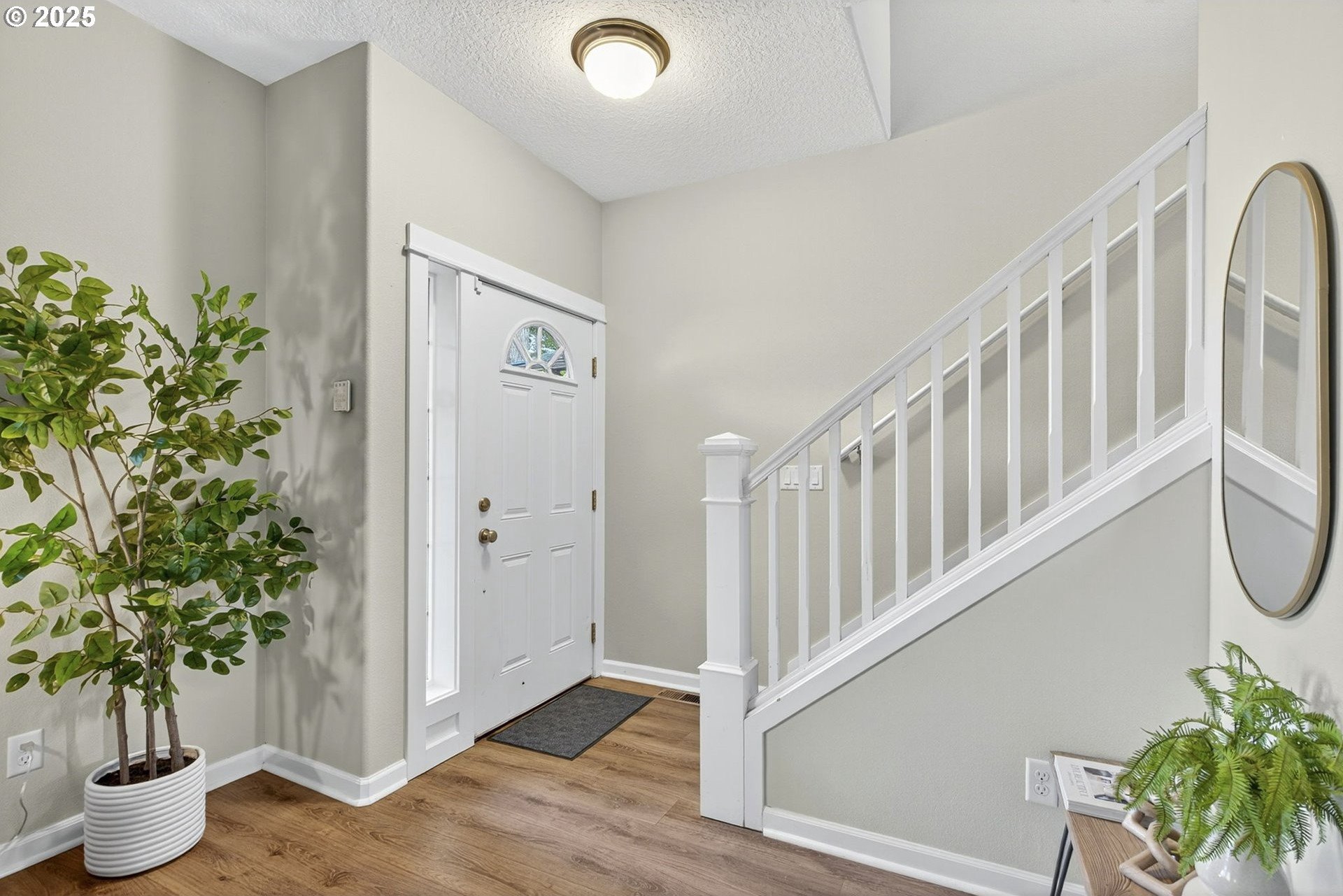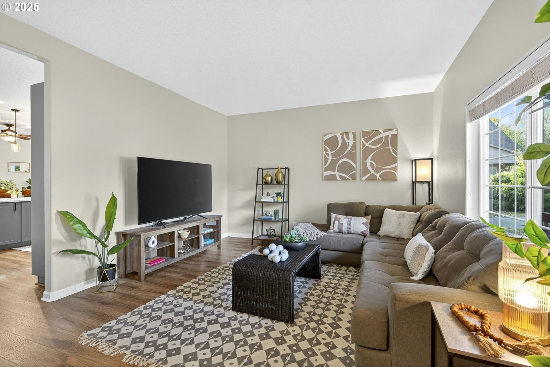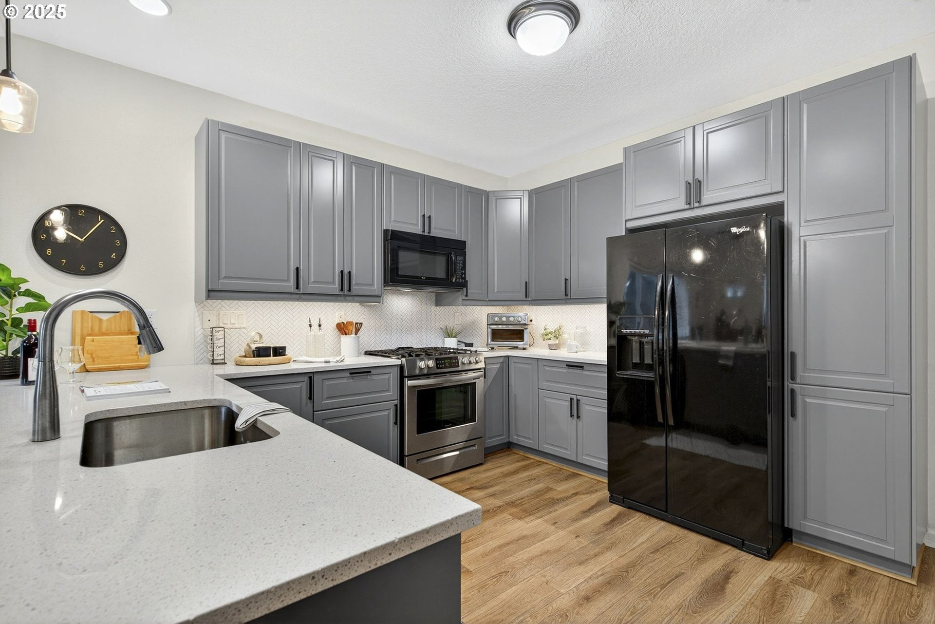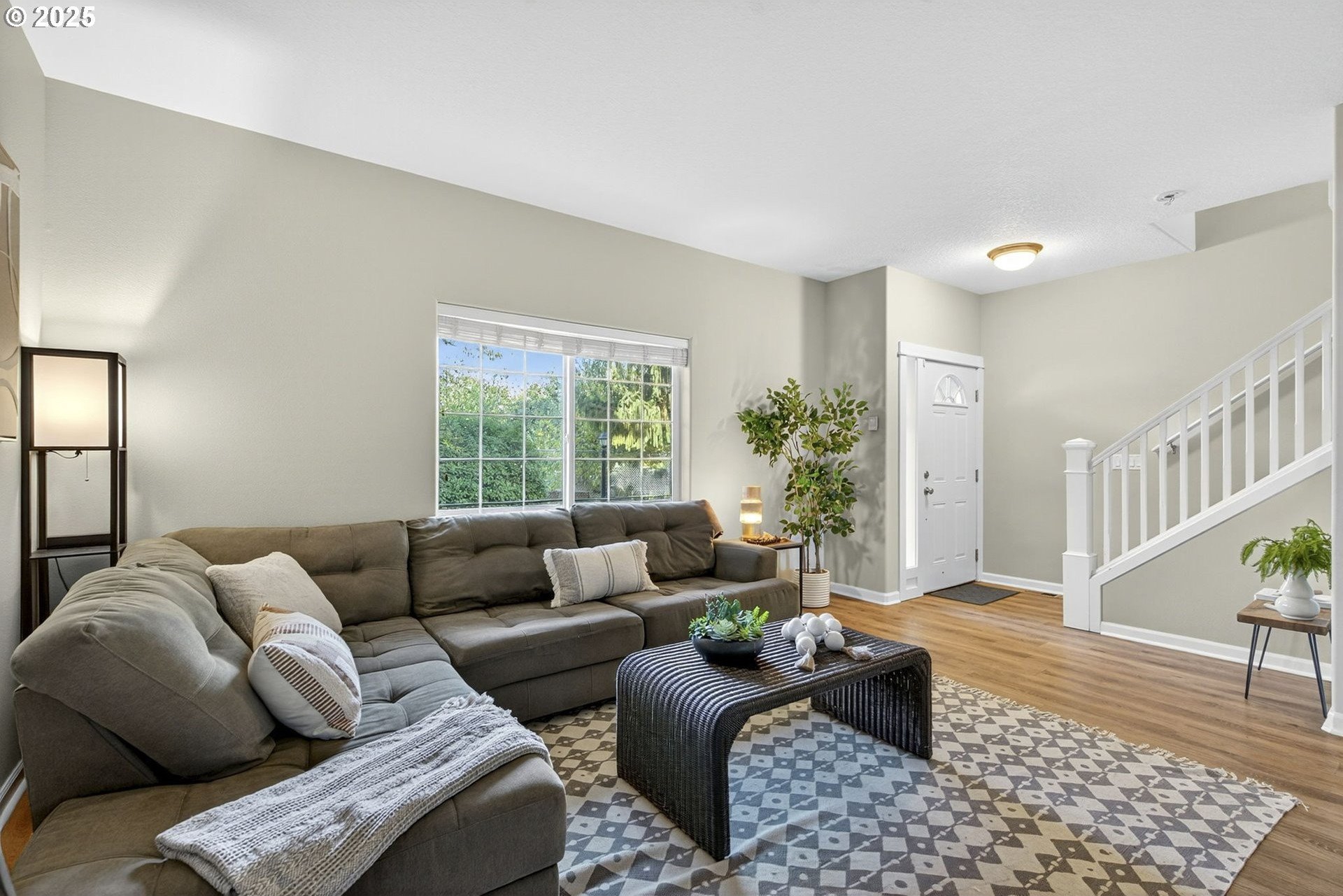 Tucked back off of Duke in a quiet community of 4 homes (without an HOA) this easy-to-love 3 bed/ 2.5 bath contemporary makes modern living feel inviting. From the moment you spot the pop of red trim and bold front door, you know this home has personality and practicality. Step inside to find high ceilings that make the home feel larger than its sq footage. In the living room sunshine streams through a large picture window and then flows to the open kitchen/dining and a charming nook/home office/playroom space. Style meets function in the kitchen, with sleek gray cabinetry, quartz countertops, and stainless-steel appliances ready for anything from Sunday pancakes to full-blown dinner parties. There’s plenty of prep space, smart storage, and a roomy breakfast bar that naturally draws everyone together. The adjacent dining area opens to the backyard, making it easy to keep the conversation flowing indoors and out. Laundry room with included large-capacity washer/dryer is also on the main.Upstairs is your large primary suite with a walk-in closet that overlooks the park. Two additional bedrooms are upstairs as well as a shared bath. Outside, the private fenced patio and side yard also offer a storage shed and just enough space for the dog, the BBQ and a bit of outdoor living. Each home has a its own front yard space too. Steps to Brentwood City Park, 14 acres of soccer and football fields, dog park and more. Blocks to schools, shops, restaurants. Biker's Paradise score = 93. [Home Energy Score = 6. HES Report at https://rpt.greenbuildingregistry.com/hes/OR10185658]