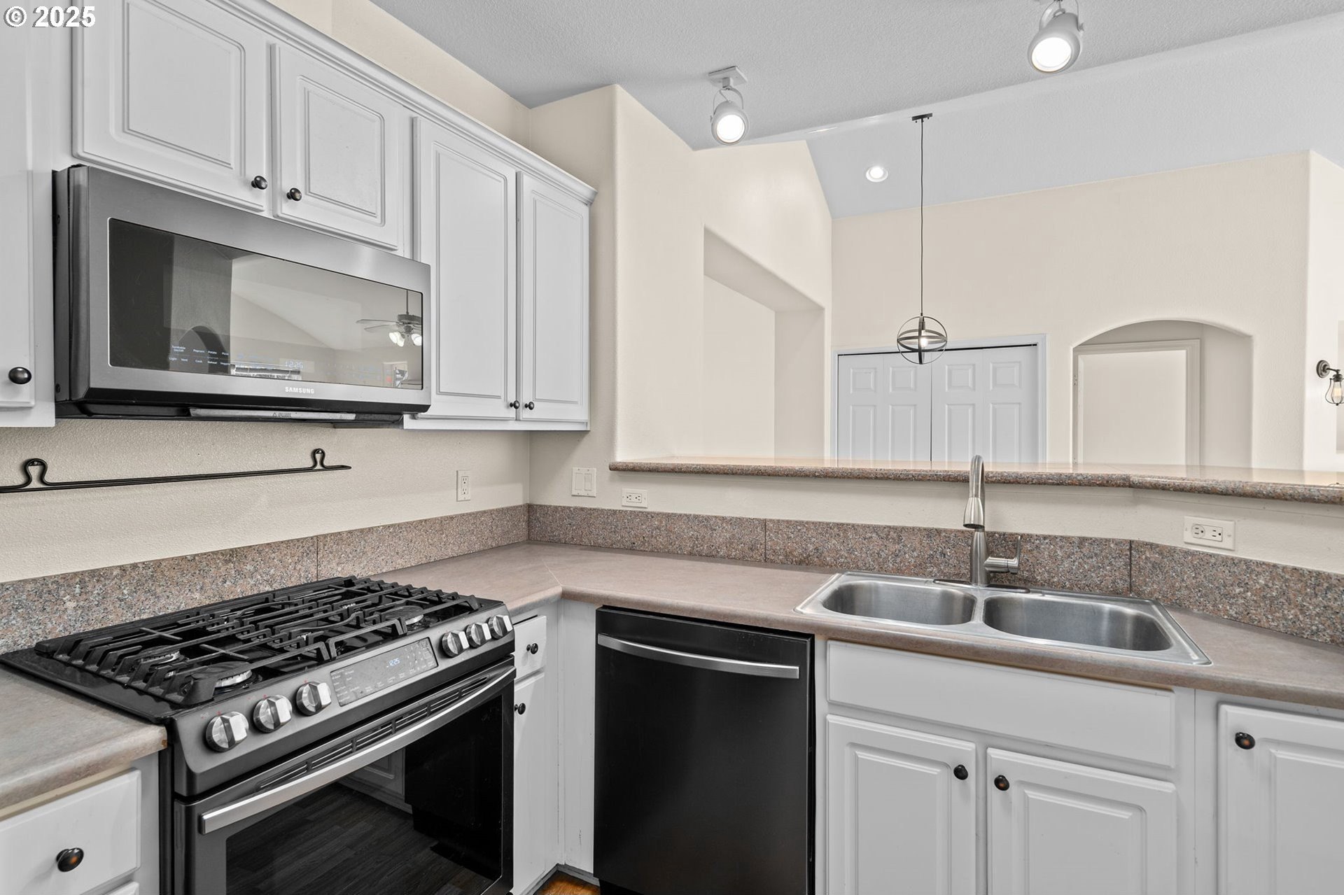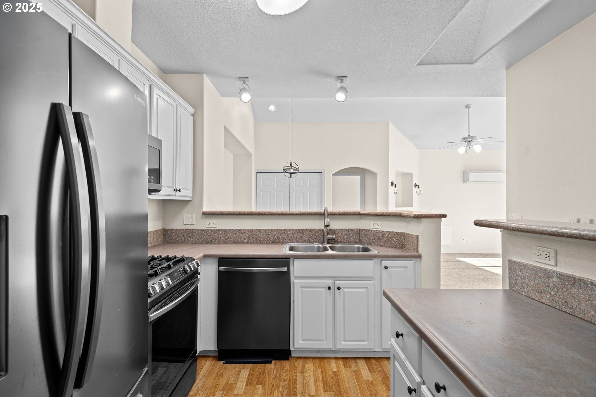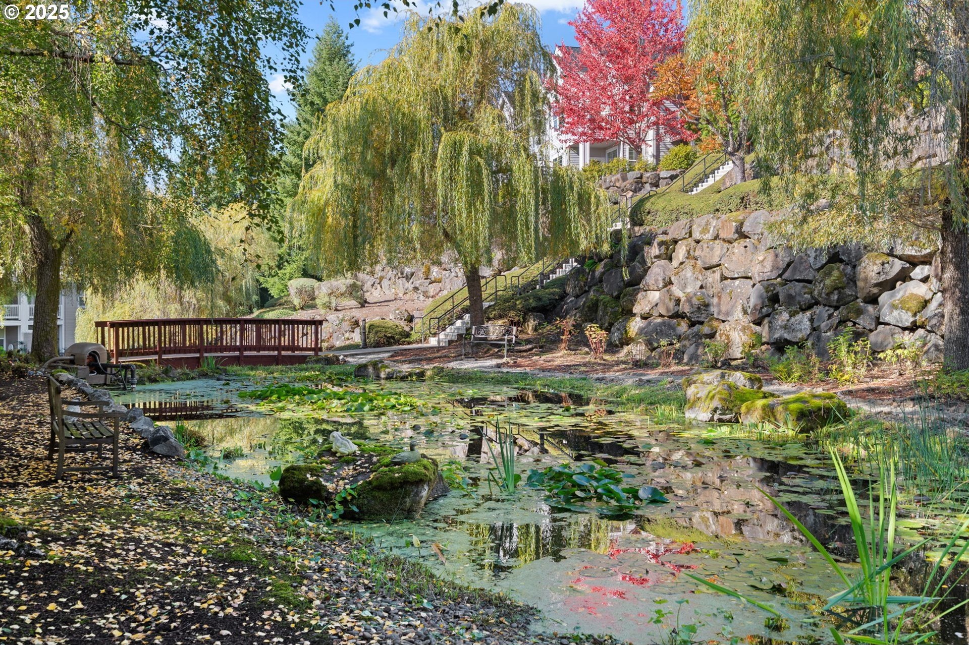 Welcome to this inviting townhome-style condo in the heart of West Linn, just moments from downtown Willamette’s shops, restaurants, coffee spots, and riverfront park. The open floor plan features vaulted ceilings, a gas fireplace, and built-ins in the dining area. Enjoy cooking and entertaining in the open kitchen with eating bar and high-end Tuscan stainless steel appliances. The primary suite offers a beautifully upgraded bathroom with a newer soaking tub. Both bedrooms include walk-in closets, and the freshly painted interior opens to a newly replaced balcony off the living room and primary bedroom—perfect for plants and plenty of natural light. Stay comfortable year-round with a mini-split system for heating and cooling. This home features an attached single car garage with a private driveway space, providing two designated parking areas. Directly behind the building you will find a lovely community koi pond featuring a waterfall, footbridge and benches for relaxing. You'll often find some ducks and an occasional heron enjoying the pond. Come and tour today!