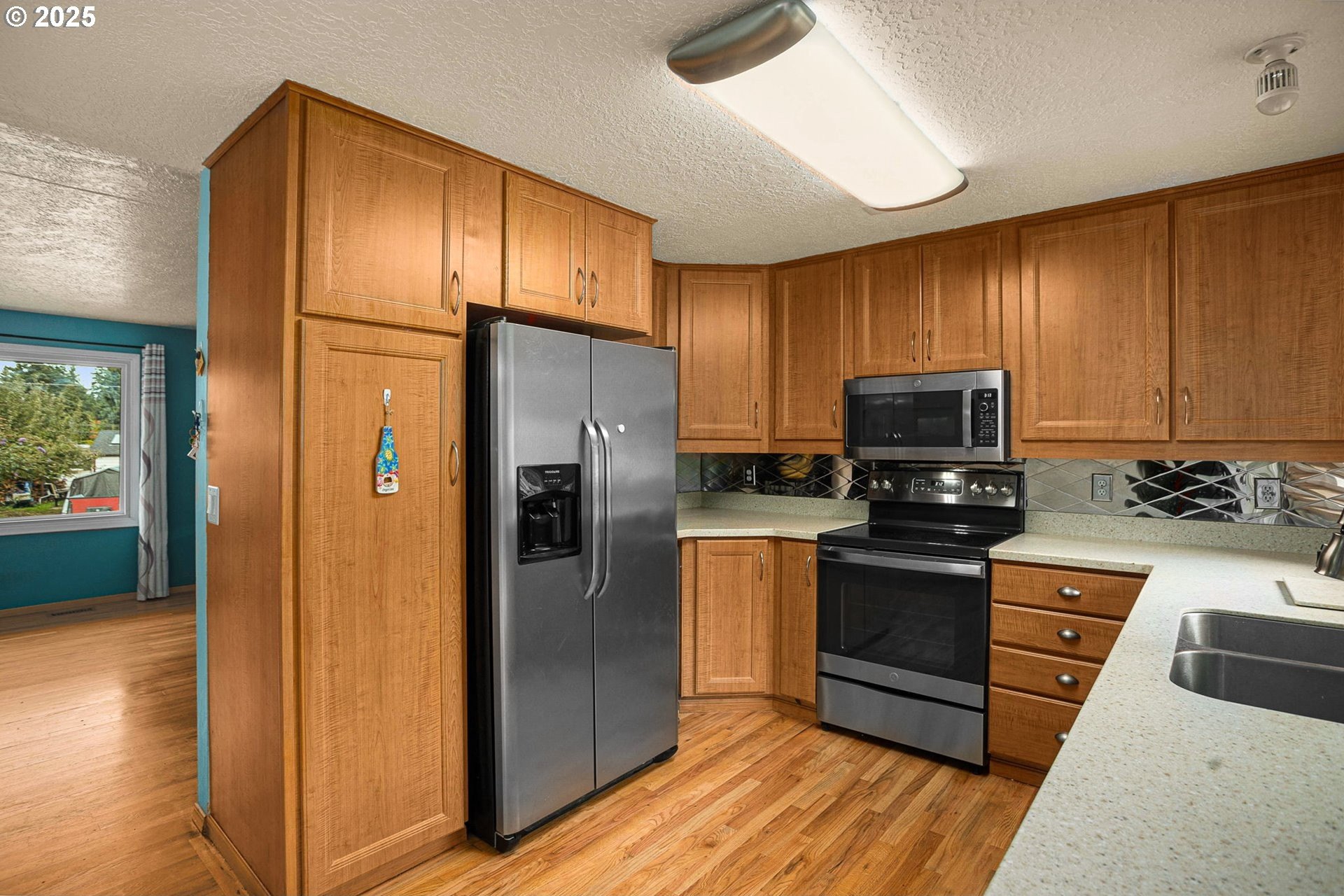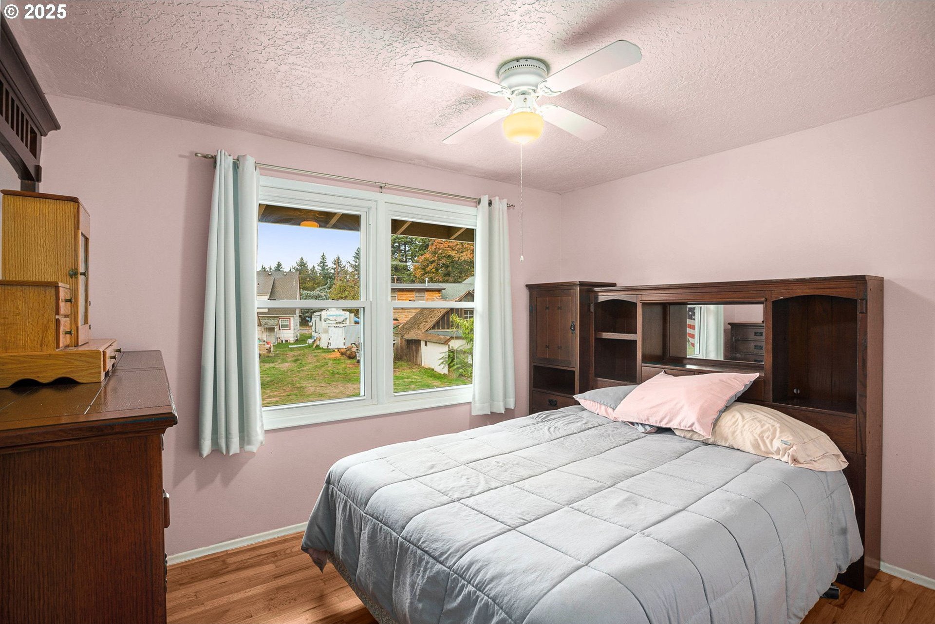 Beautiful split level with view of Powell Butte - updated, clean and move-in ready with an enormous attached 3+ car garage or shop with 240 volt electrical service. No need to worry about maintenance, this one has new furnace, water heater, electrical panel and newer appliances in the kitchen, plus updated cabinets, solid surface countertops, refinished real hardwood floors, and vinyl windows. Great for multigenerational living, with two bedrooms and one bathroom on each level (upstairs bathroom recently updated), plus a living area and spacious laundry room that has access to the backyard. Freshly painted deck off kitchen overlooks spacious backyard with beautiful Powell Butte just beyond. Driveway features RV parking.