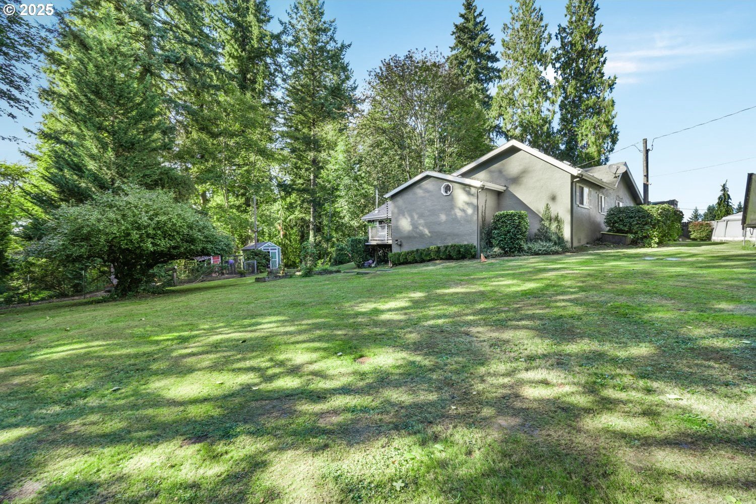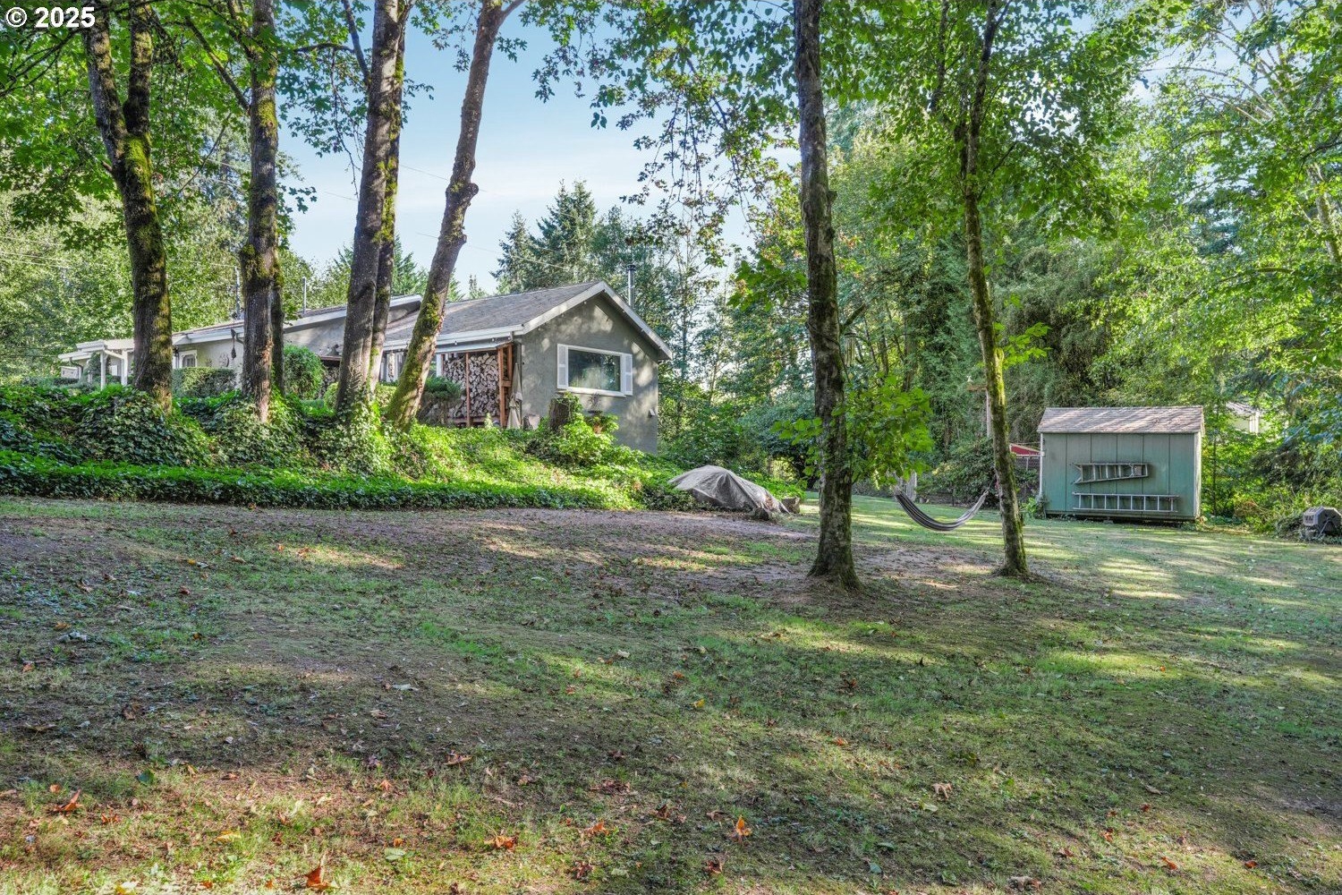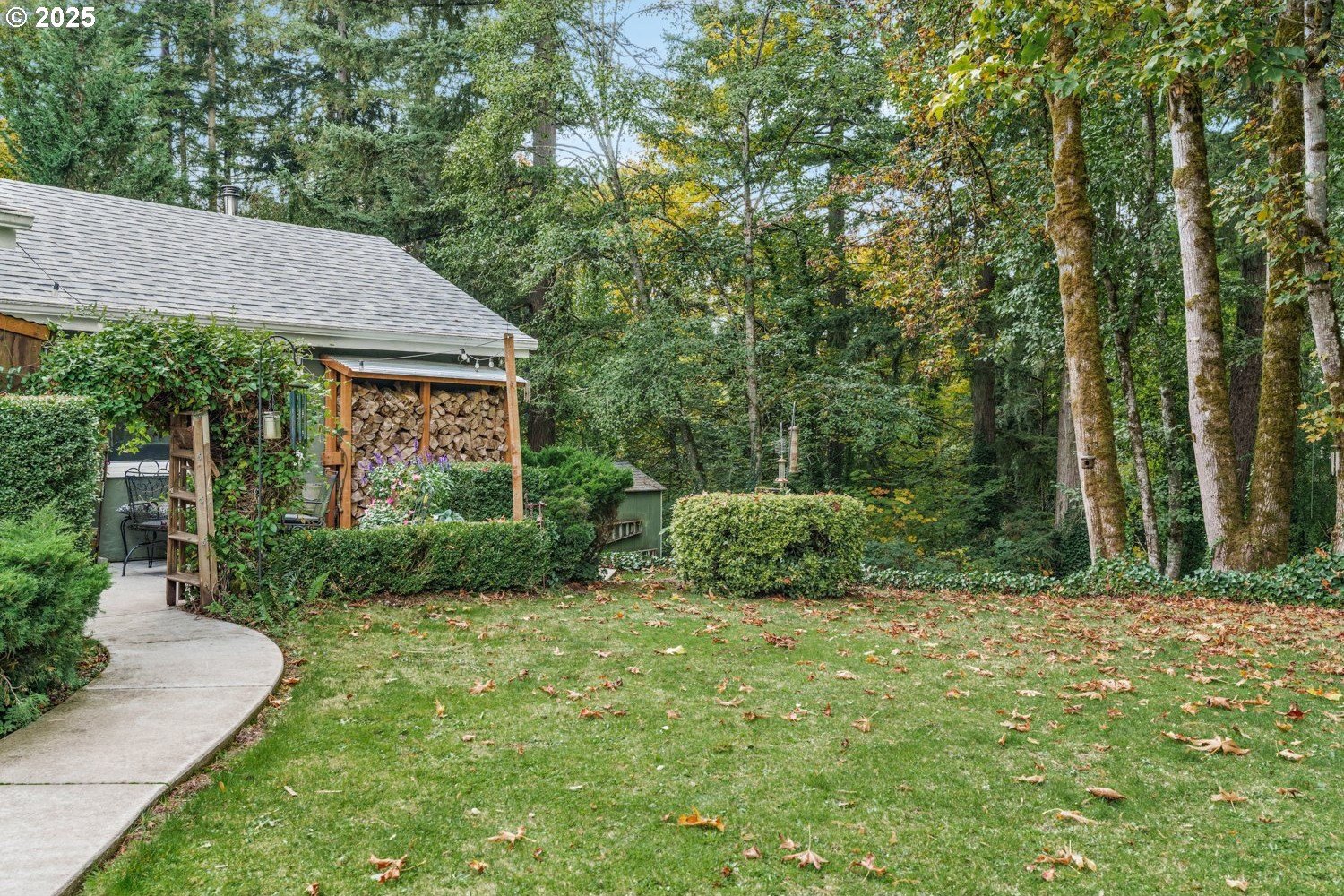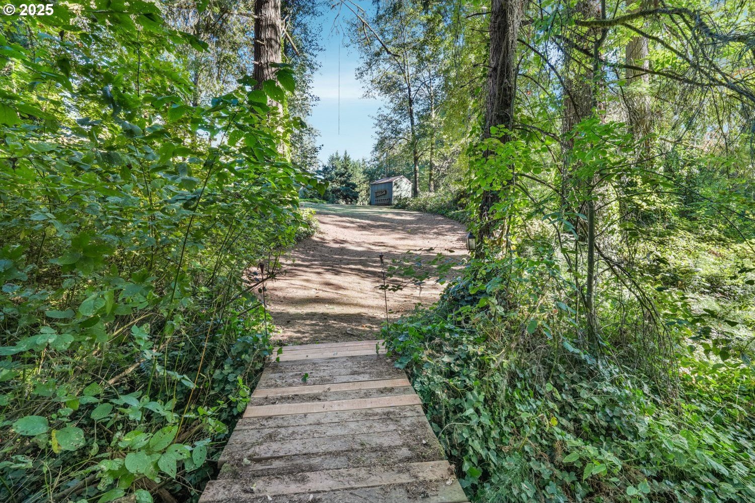 Experience peaceful country living at its finest in this beautiful 4-bedroom, 2-bath home on 2.5 serene acres surrounded by majestic shade trees. The immaculately maintained grounds feature meandering walking trails, a seasonal creek that runs through the property in winter, and a charming footbridge that adds to the picturesque setting. Enjoy outdoor living with a spacious deck and patio, raised garden beds, two storage sheds, and an above-ground pool that all stay with the home. There’s plenty of room to roam, relax, and watch the local wildlife in this peaceful natural retreat. Inside, the home offers a large living room with vaulted, beamed ceilings and a cozy wood-burning stove. The dining area opens to the deck through sliding doors, creating a seamless indoor-outdoor flow perfect for entertaining. The kitchen sits at the heart of the home, and a dedicated office provides space for remote work or hobbies. The primary suite includes a private bath and double closets, while three additional bedrooms, a full hall bath, and a laundry room complete the interior layout. An RV parking pad with plug-in adds convenience, and despite the country setting, you’re just 10 minutes to shopping, dining, and I-5 access. Private, peaceful, and move-in ready, this property truly offers the best of Northwest living!