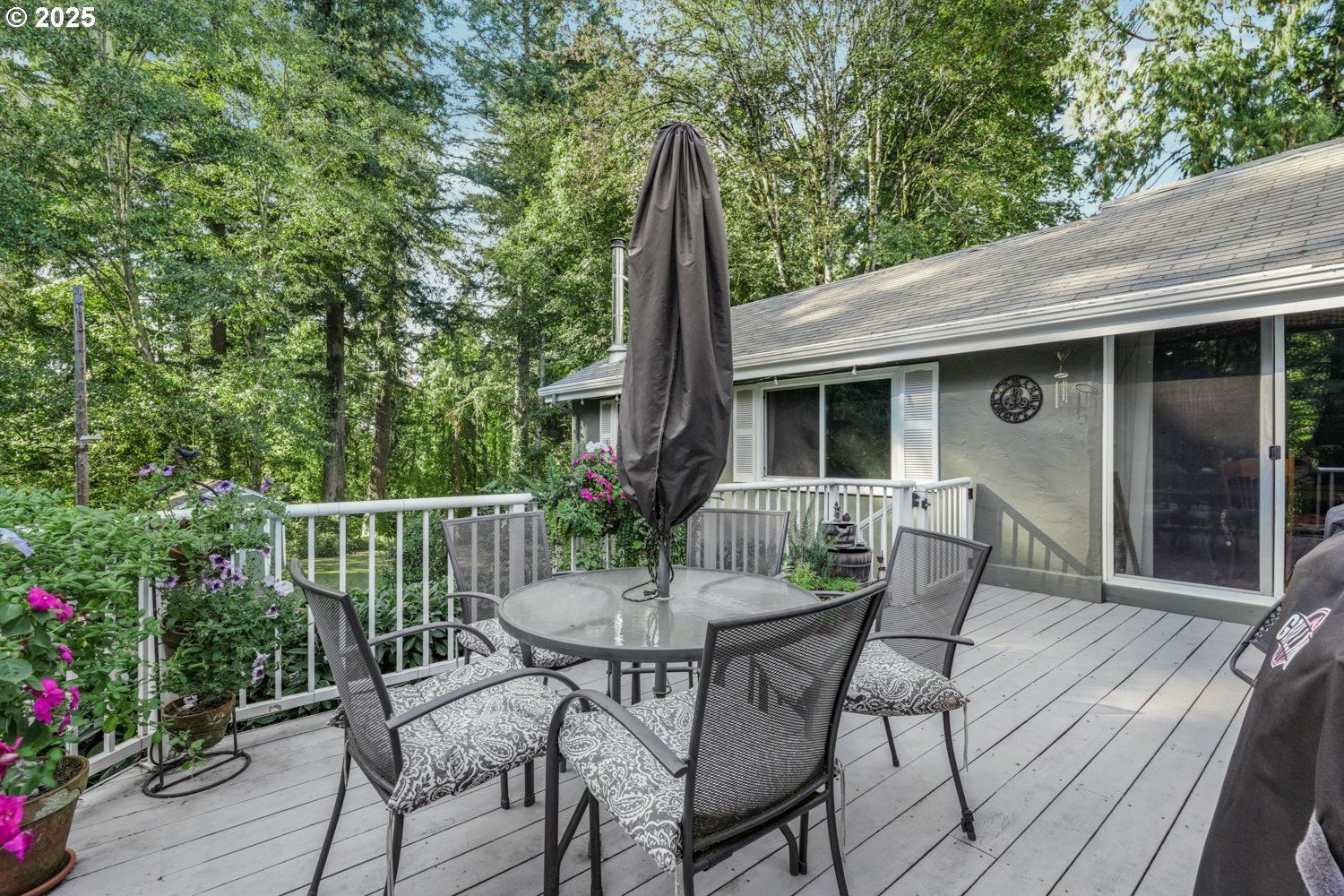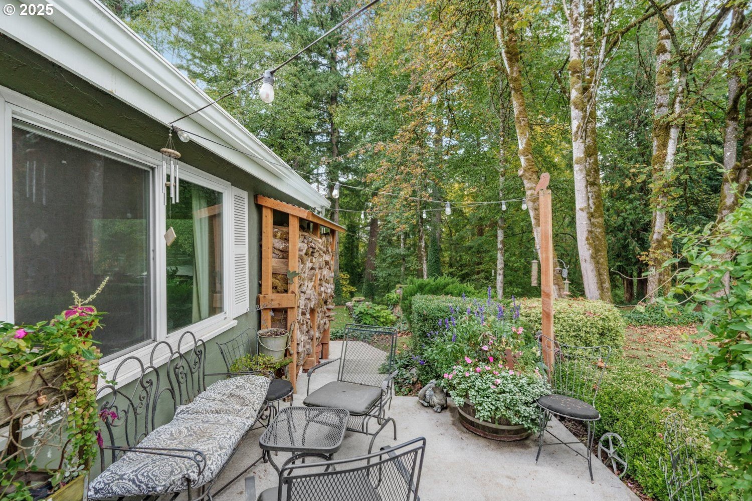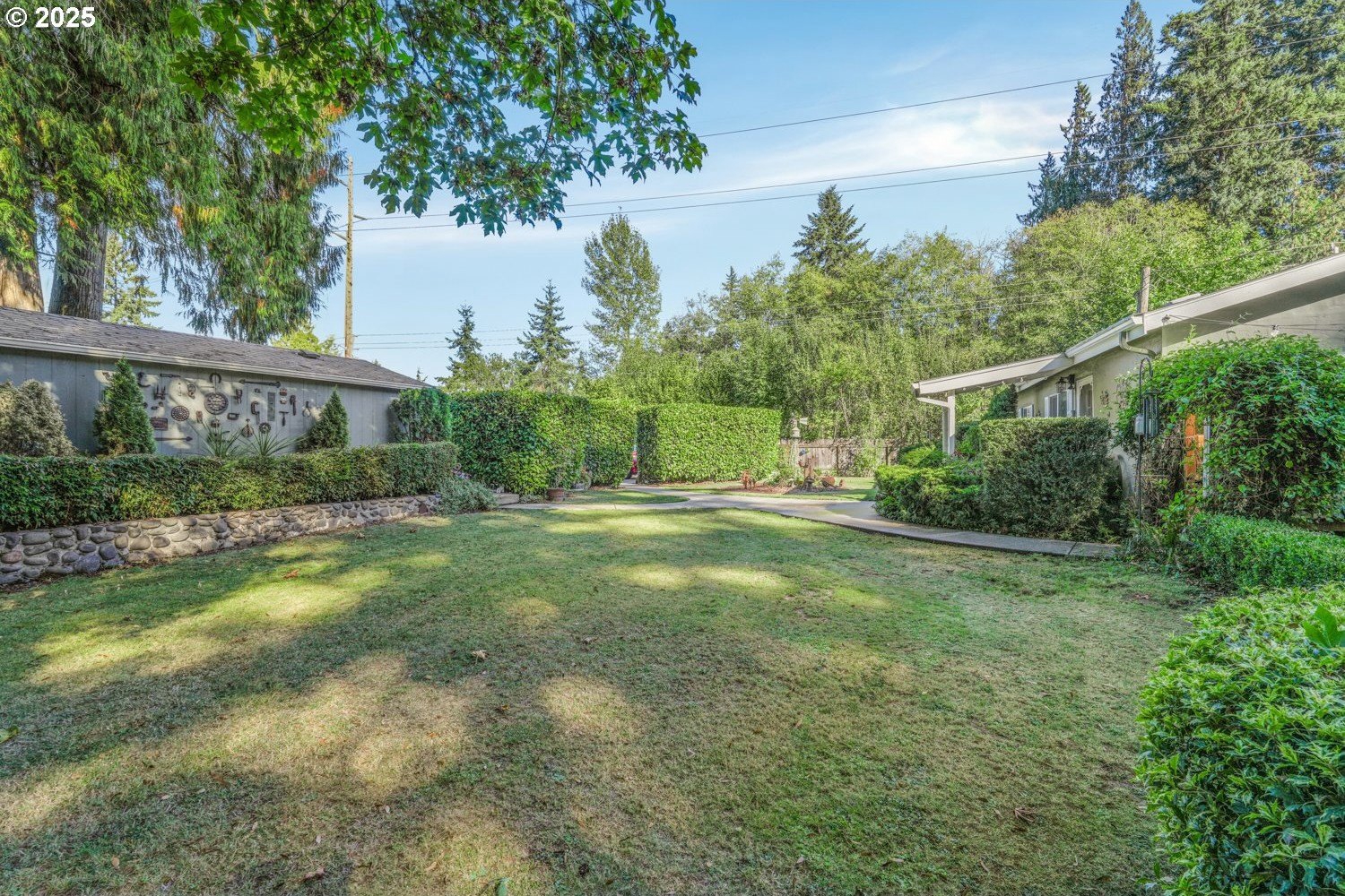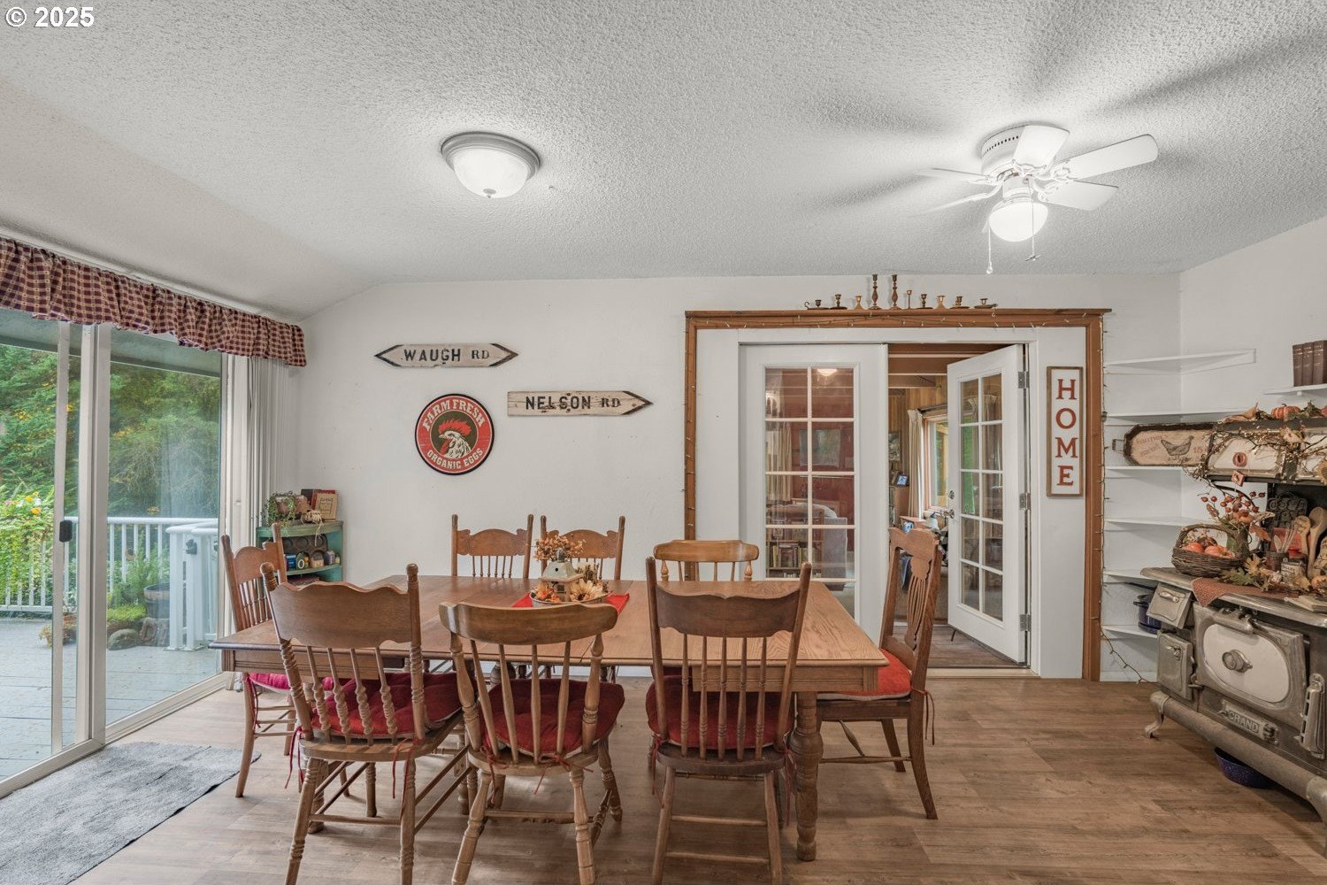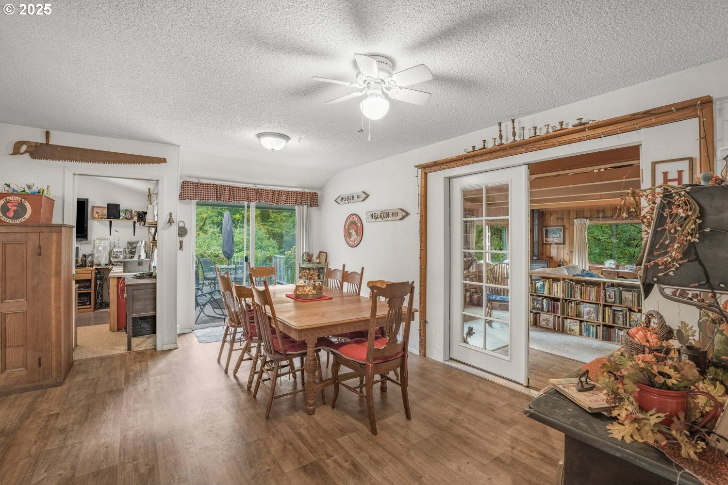 Experience peaceful country living at its finest in this beautiful 4-bedroom, 2-bath home on 2.5 serene acres surrounded by majestic shade trees. The immaculately maintained grounds feature meandering walking trails, a seasonal creek that runs through the property in winter, and a charming footbridge that adds to the picturesque setting. Enjoy outdoor living with a spacious deck and patio, raised garden beds, two storage sheds, and an above-ground pool that all stay with the home. There’s plenty of room to roam, relax, and watch the local wildlife in this peaceful natural retreat. Inside, the home offers a large living room with vaulted, beamed ceilings and a cozy wood-burning stove. The dining area opens to the deck through sliding doors, creating a seamless indoor-outdoor flow perfect for entertaining. The kitchen sits at the heart of the home, and a dedicated office provides space for remote work or hobbies. The primary suite includes a private bath and double closets, while three additional bedrooms, a full hall bath, and a laundry room complete the interior layout. An RV parking pad with plug-in adds convenience, and despite the country setting, you’re just 10 minutes to shopping, dining, and I-5 access. Private, peaceful, and move-in ready, this property truly offers the best of Northwest living!