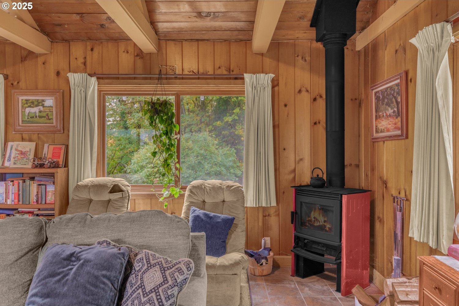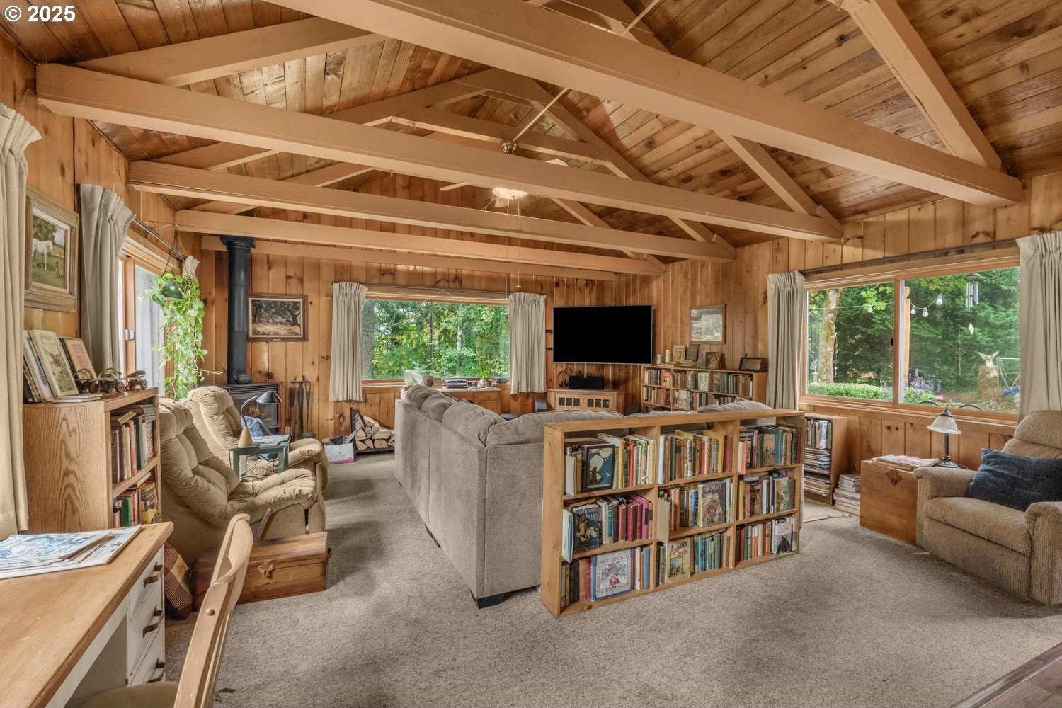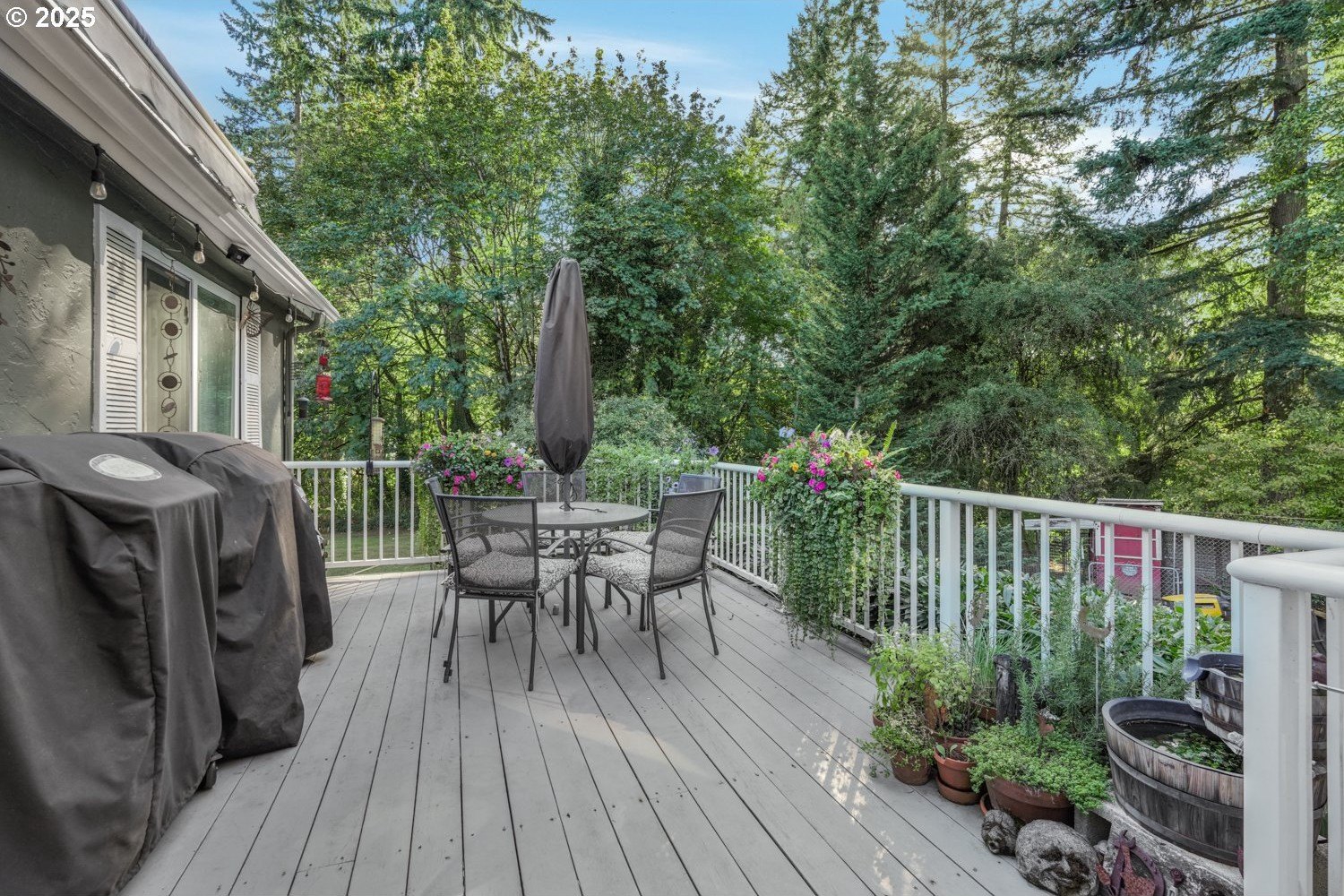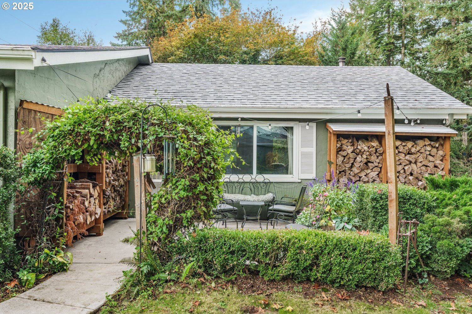 Experience peaceful country living at its finest in this beautiful 4-bedroom, 2-bath home on 2.5 serene acres surrounded by majestic shade trees. The immaculately maintained grounds feature meandering walking trails, a seasonal creek that runs through the property in winter, and a charming footbridge that adds to the picturesque setting. Enjoy outdoor living with a spacious deck and patio, raised garden beds, two storage sheds, and an above-ground pool that all stay with the home. There’s plenty of room to roam, relax, and watch the local wildlife in this peaceful natural retreat. Inside, the home offers a large living room with vaulted, beamed ceilings and a cozy wood-burning stove. The dining area opens to the deck through sliding doors, creating a seamless indoor-outdoor flow perfect for entertaining. The kitchen sits at the heart of the home, and a dedicated office provides space for remote work or hobbies. The primary suite includes a private bath and double closets, while three additional bedrooms, a full hall bath, and a laundry room complete the interior layout. An RV parking pad with plug-in adds convenience, and despite the country setting, you’re just 10 minutes to shopping, dining, and I-5 access. Private, peaceful, and move-in ready, this property truly offers the best of Northwest living!