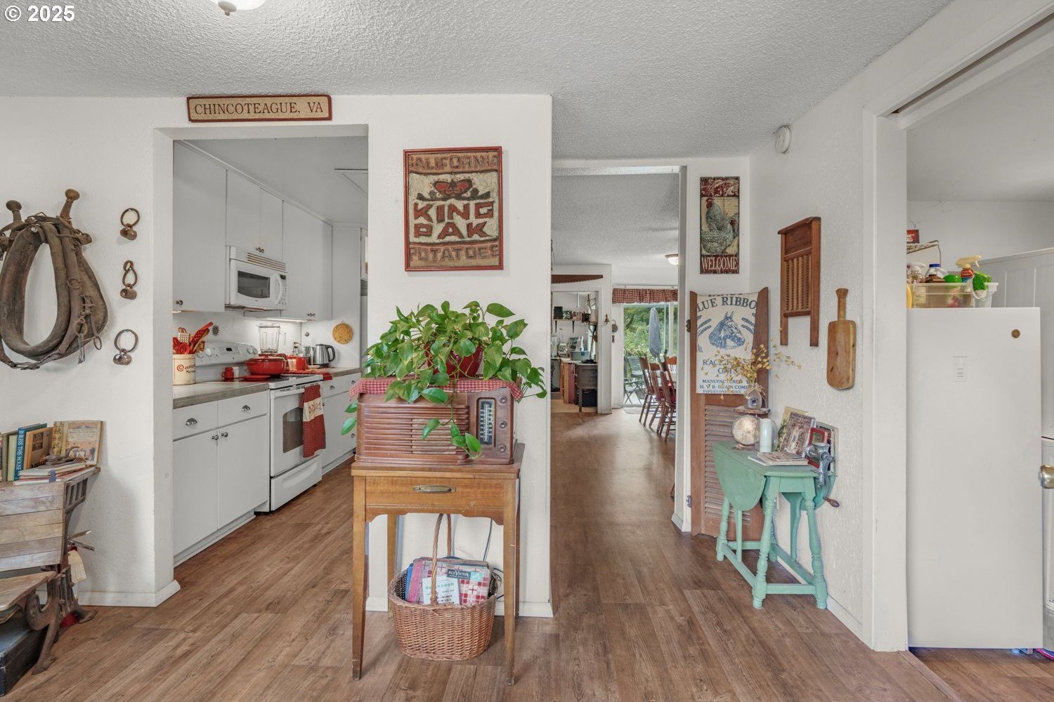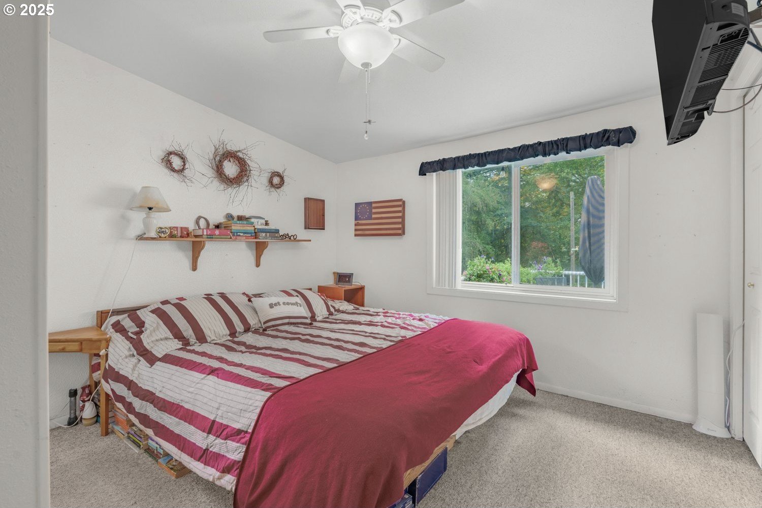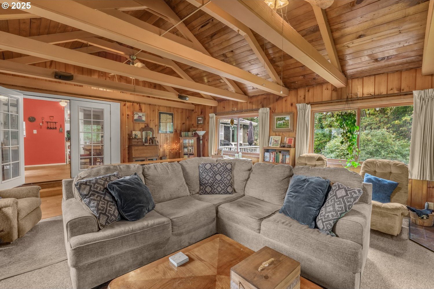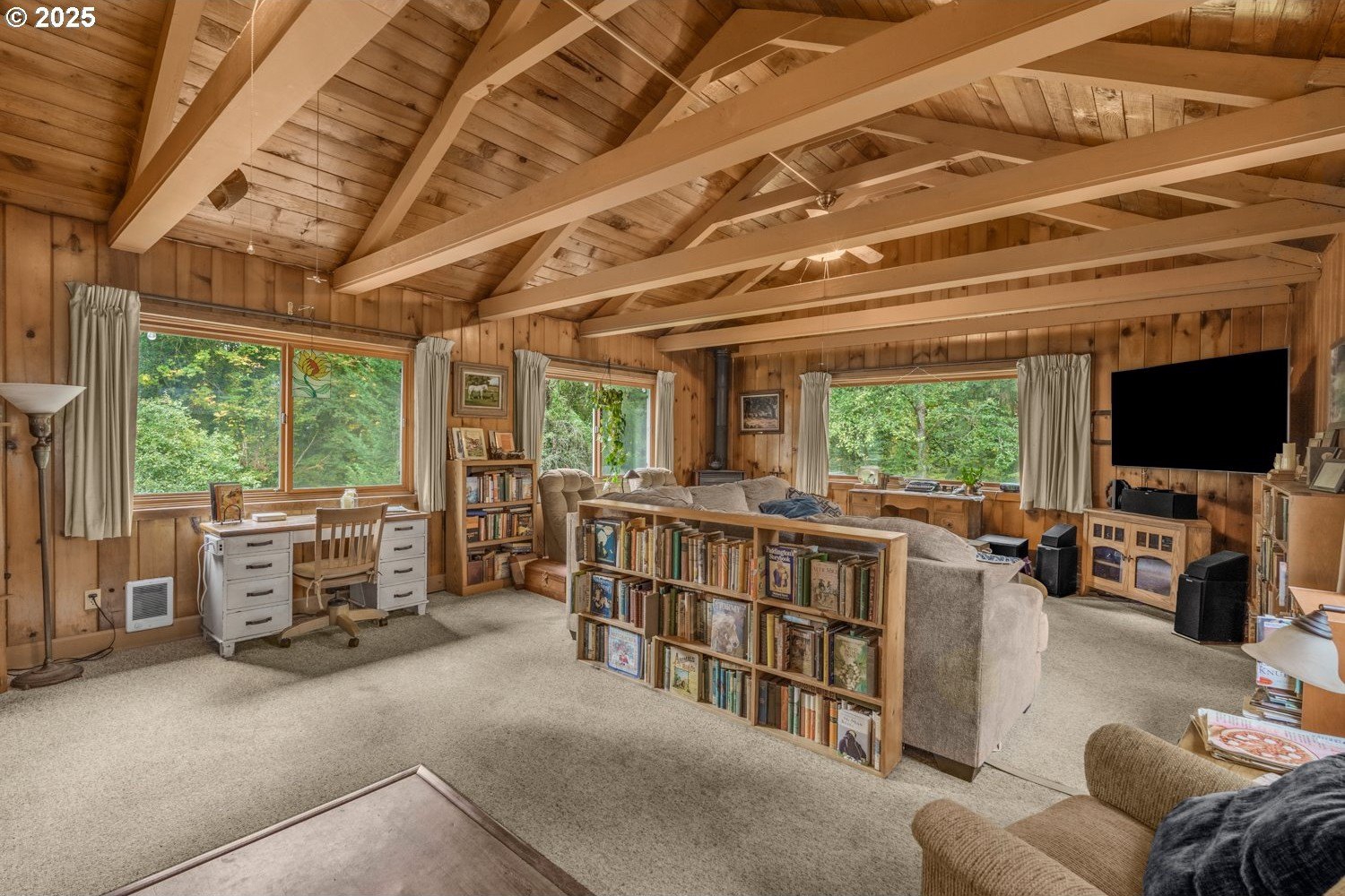 Experience peaceful country living at its finest in this beautiful 4-bedroom, 2-bath home on 2.5 serene acres surrounded by majestic shade trees. The immaculately maintained grounds feature meandering walking trails, a seasonal creek that runs through the property in winter, and a charming footbridge that adds to the picturesque setting. Enjoy outdoor living with a spacious deck and patio, raised garden beds, two storage sheds, and an above-ground pool that all stay with the home. There’s plenty of room to roam, relax, and watch the local wildlife in this peaceful natural retreat. Inside, the home offers a large living room with vaulted, beamed ceilings and a cozy wood-burning stove. The dining area opens to the deck through sliding doors, creating a seamless indoor-outdoor flow perfect for entertaining. The kitchen sits at the heart of the home, and a dedicated office provides space for remote work or hobbies. The primary suite includes a private bath and double closets, while three additional bedrooms, a full hall bath, and a laundry room complete the interior layout. An RV parking pad with plug-in adds convenience, and despite the country setting, you’re just 10 minutes to shopping, dining, and I-5 access. Private, peaceful, and move-in ready, this property truly offers the best of Northwest living!