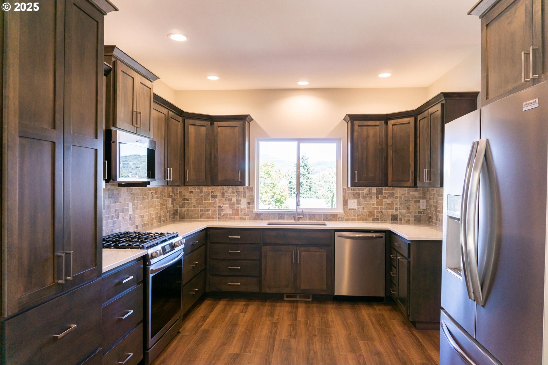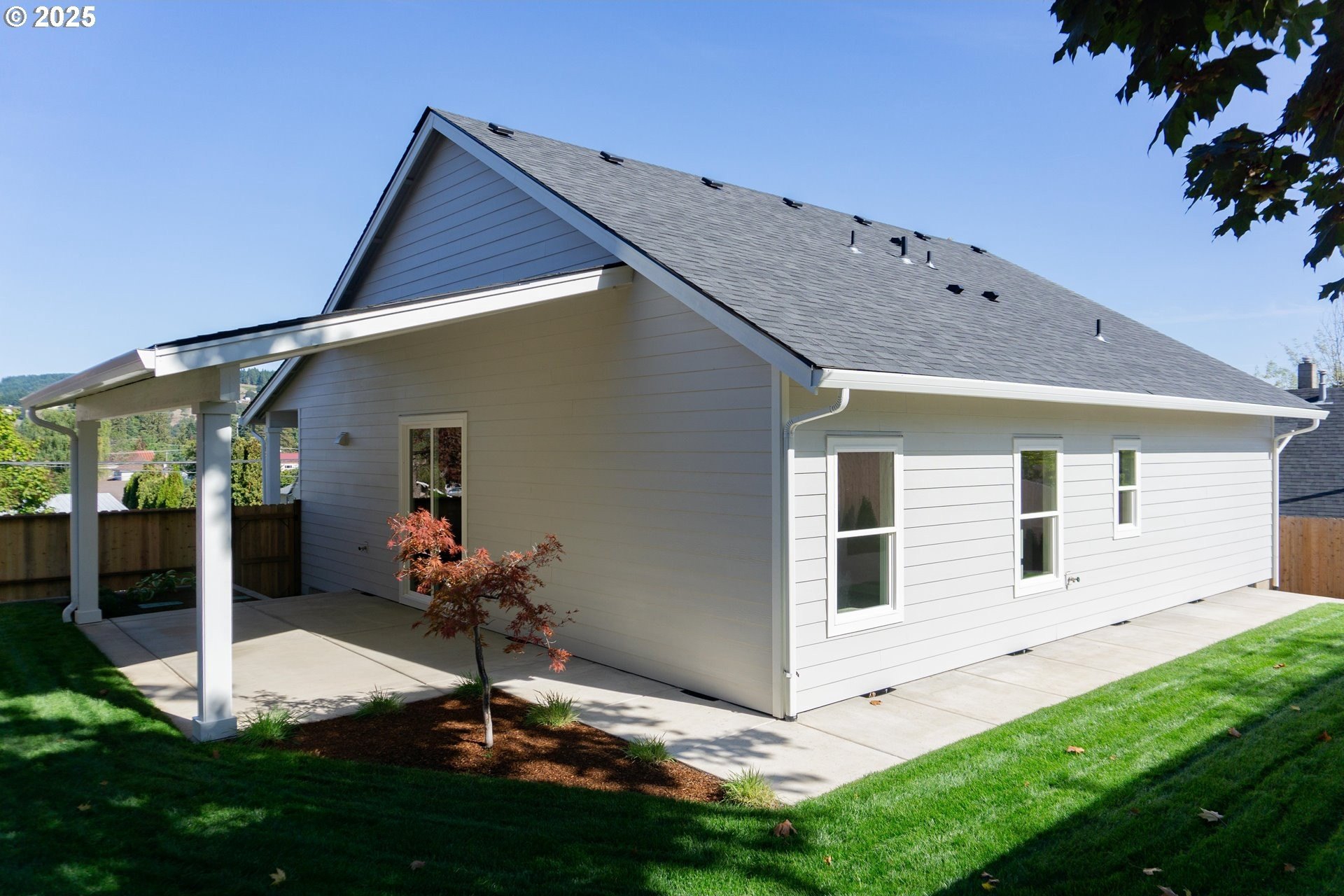 Beautiful custom-built home with a view. A troubled lot turned into a stunning masterpiece. 1714 sq ft, 3 bedroom, 2 baths, including 5'X20' indoor storage room. Spacious floorplan with 9-foot ceilings. Custom cabinets with quartz countertops throughout. Natural gas range, water heater and HVAC system. Enjoy a fully landscaped yard with sidewalks, garden planters and lawn, all on an automatic watering system, while sitting under a large, covered patio. Completely fenced backyard for privacy. Trex decking front porch. Generac generator connected to natural gas for automatic power during outages. RV parking with 50-amp service. Concrete pad for future outdoor storage shed.