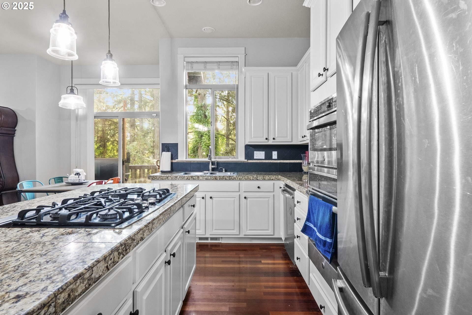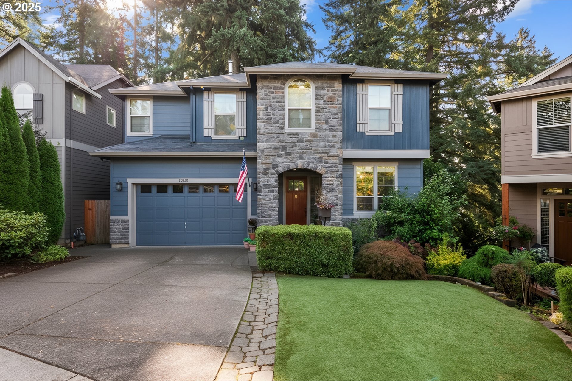 Fantastic Tualatin location near Ibach Park and Tualatin High School! This beautifully maintained home backs to private property, offering a serene view and excellent privacy with limited rear neighbors. The well designed floor plan features a grand open great room with built-ins, hardwood floors, and high ceilings, perfect for comfortable living and entertaining. The expansive primary suite welcomes you through double doors and includes a cozy fireplace, soaking tub, walk-in shower, generous walk-in closet, and a lovely view of the open space behind the home. All five bedrooms are conveniently located on the same level, providing both functionality and ease. The lower level offers incredible versatility with an additional separate bedroom, full bath, fireplace, and deck ideal for a home business, multi-generational living, game room or guest quarters. There’s also an additional 640 square feet (not included in total SF) of storage or gym space. Recent updates include a brand-new roof, fresh interior paint, newly painted cabinetry, and a fully refreshed deck. The swim spa will be retained by the seller. A truly special home in a desirable Tualatin neighborhood move in ready and full of potential!