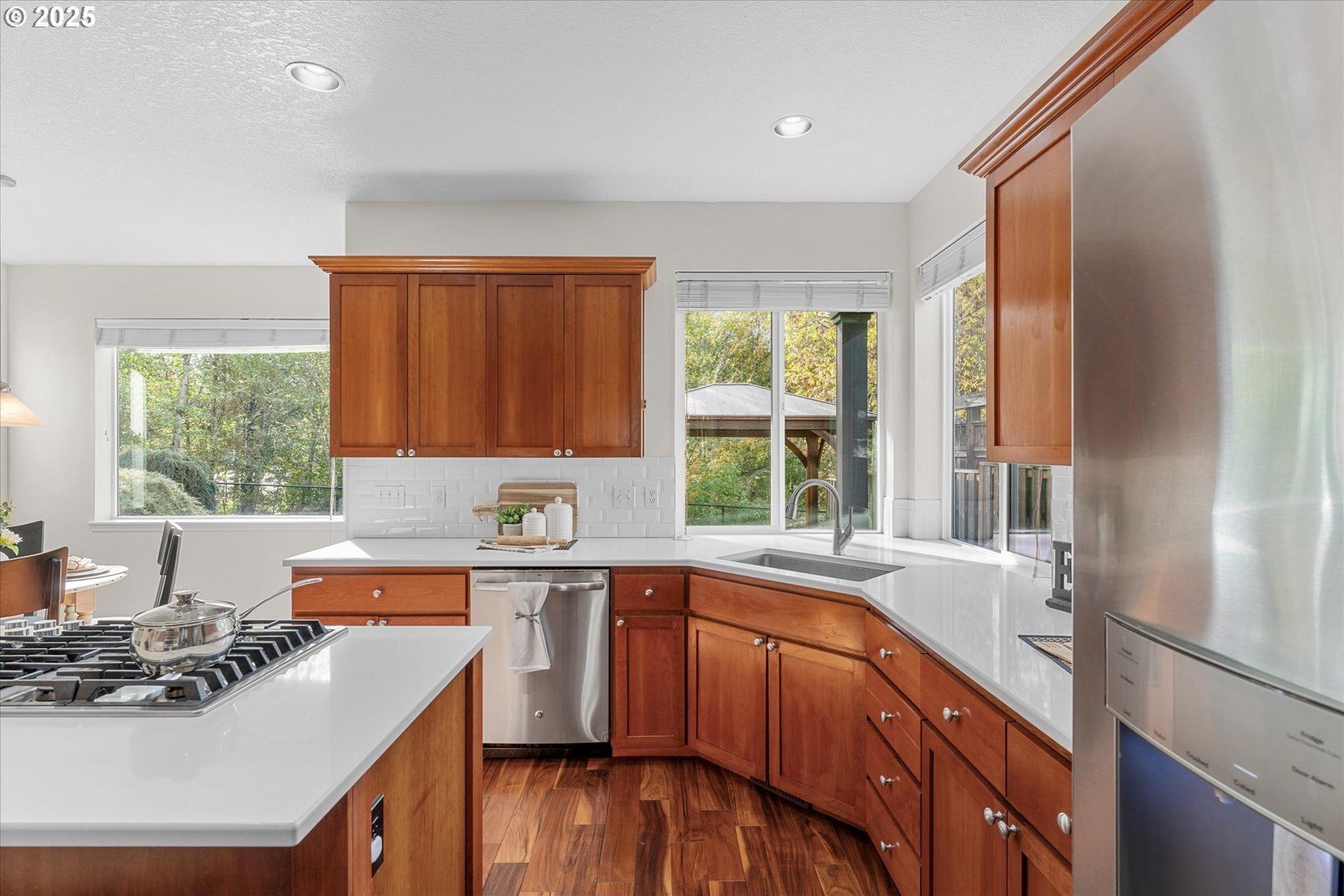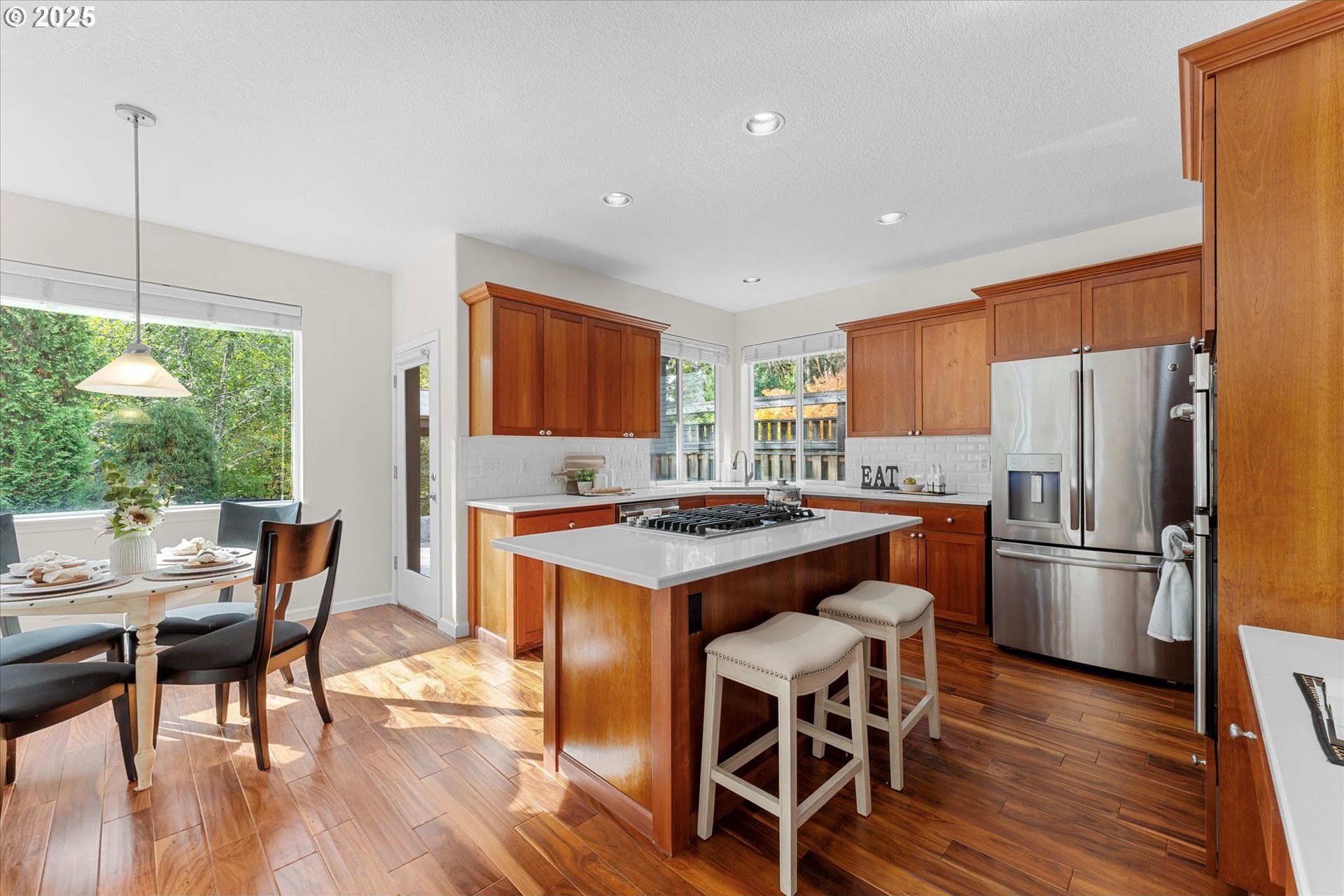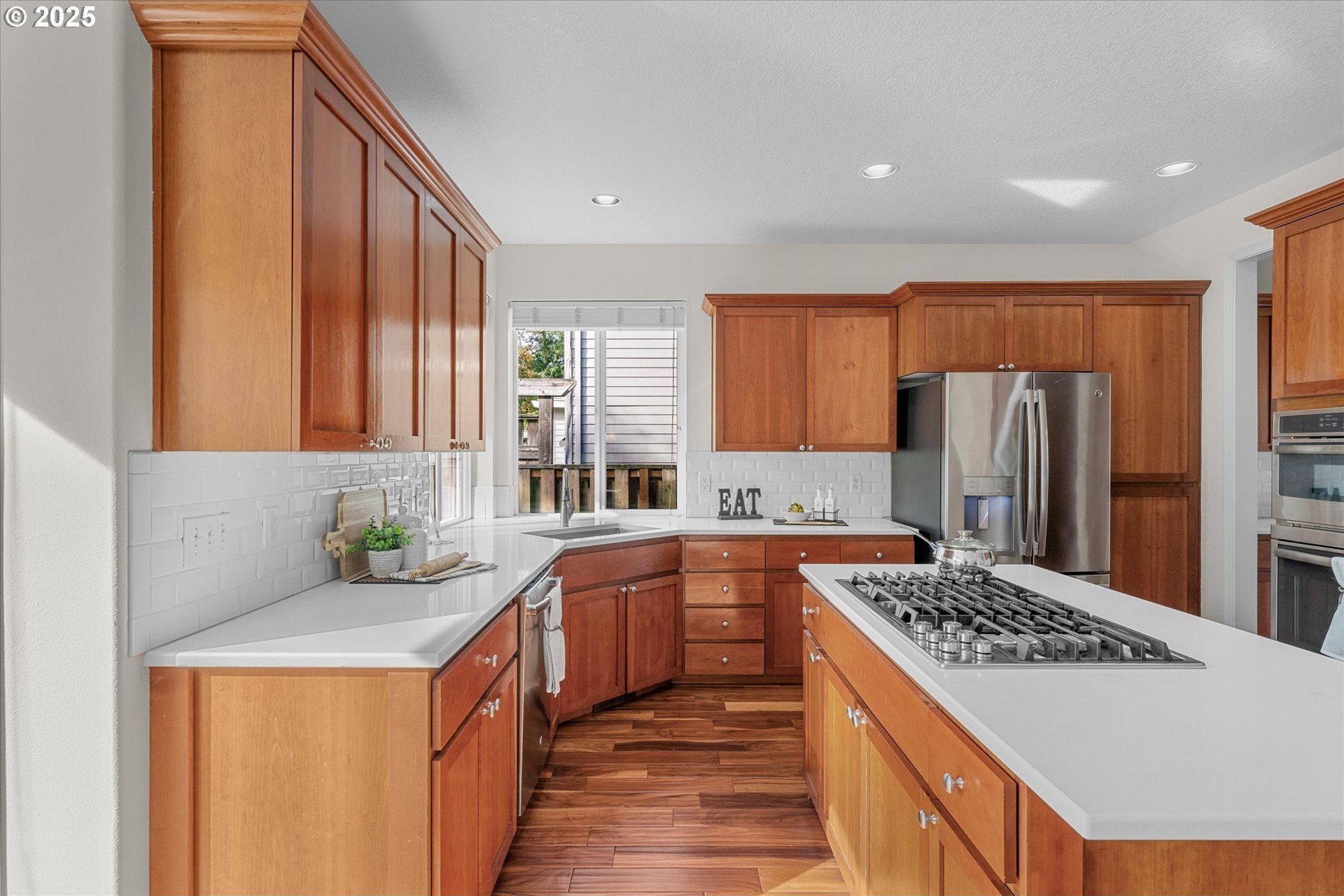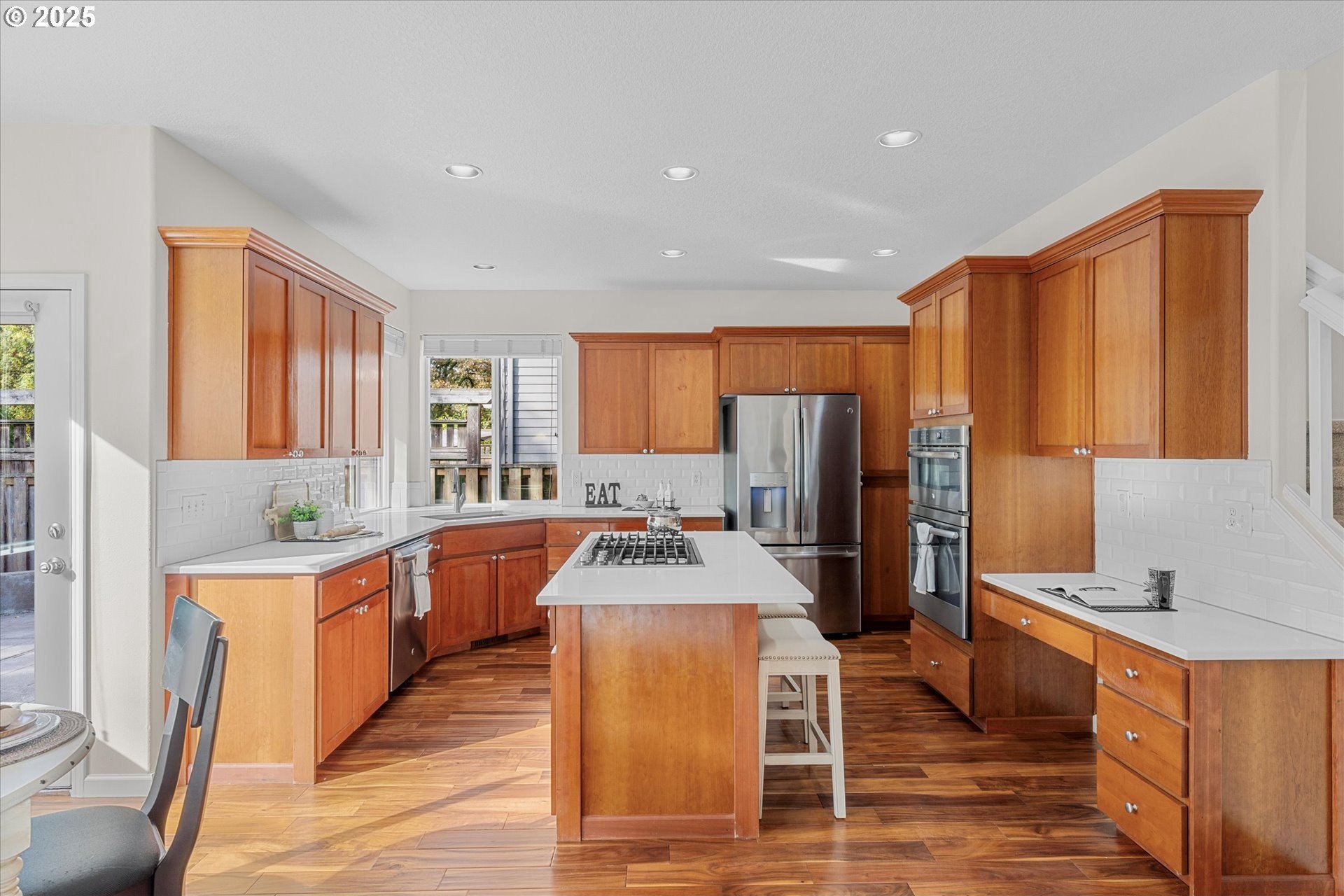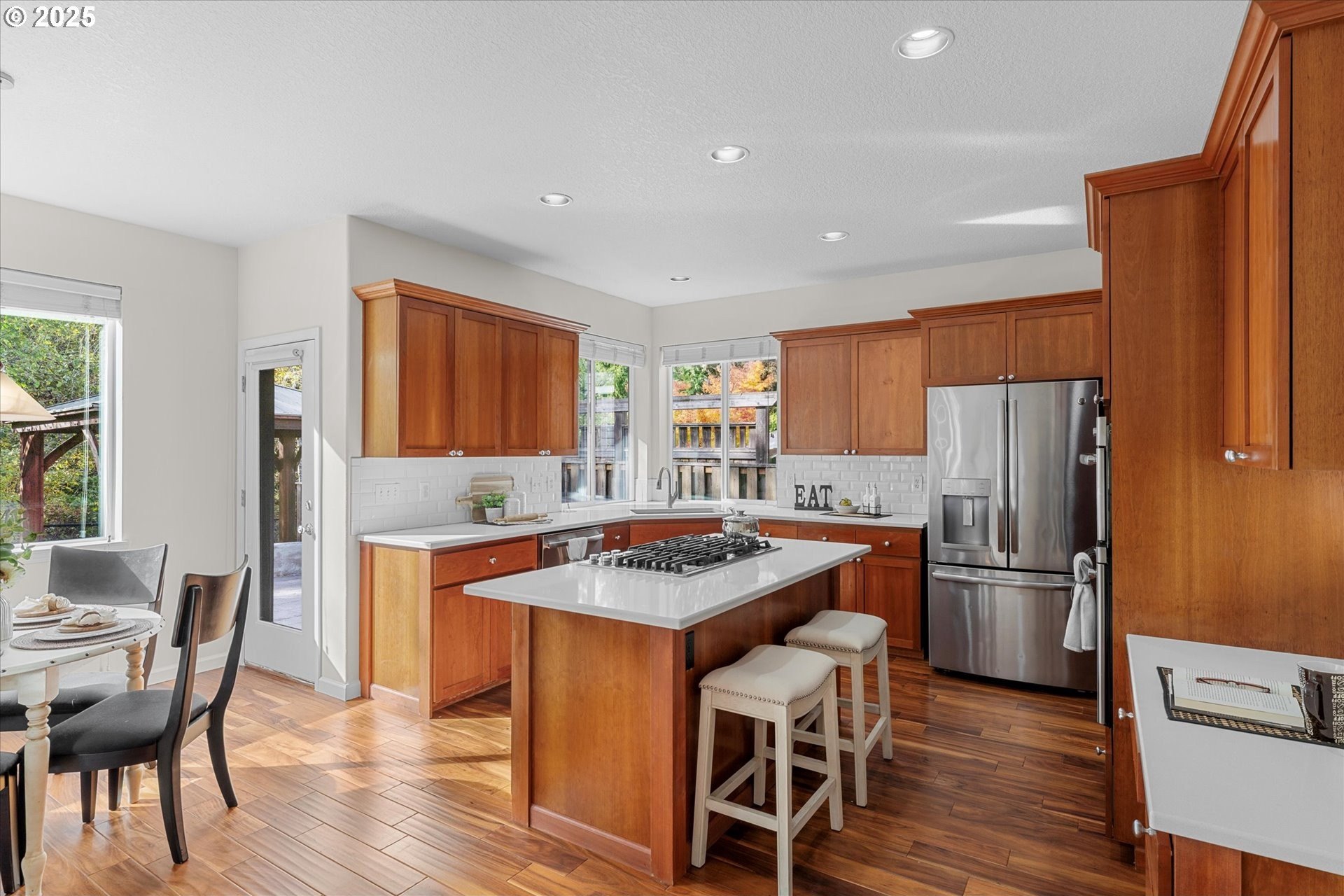 OPEN SUNDAY 12-2!!!! Perfectly situated on one of the best lots in Arbor Crossing, backing to and adjacent to greenspace. 2025 updates include: interior paint including millwork, doors & walls, exterior paint, a new roof with a transferable warranty, and carpeting throughout. Open-main level features wood floors, vaulted ceilings, a gas fireplace, and a beautifully updated kitchen with quartz countertops, updated appliances, 6-burner gas cooktop, eat-at island, and a butler’s pantry. Upstairs, the spacious primary suite offers a jetted soaking tub, walk-in shower, and generous walk-in closet. Enjoy the private, level fenced yard backing to a lush greenbelt with an extended patio & gazebo. In the sought after West Linn / Wilsonville School District.