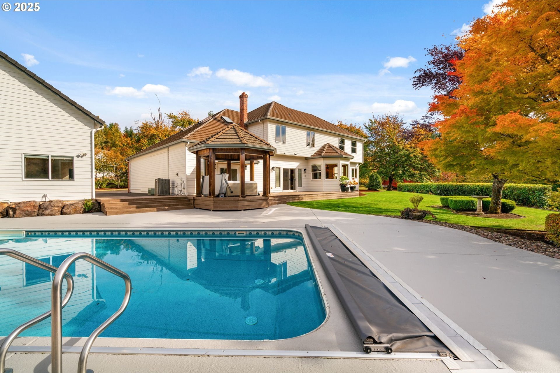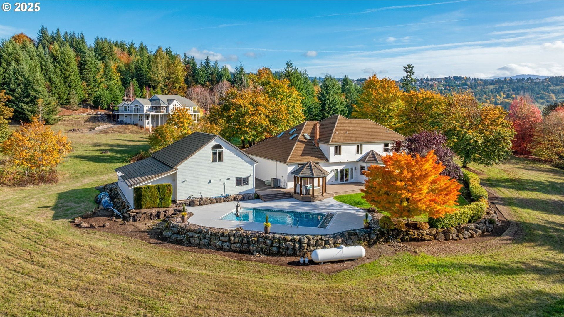 This is more than a home—it’s a legacy. Nestled in the prestigious Hockinson Highlands neighborhood, this impeccably maintained estate sprawls across over five flat acres of pristine land. Lovingly cared for by its original owners since its construction, the main residence, encompassing 4,569 square feet, features four bedrooms and three bathrooms. This property offers a rare blend of timeless elegance, modern functionality, and serene privacy, creating a sanctuary that feels both close in and worlds away in its tranquil seclusion.Step into the main home, where refined craftsmanship shines in every detail. The heart of the residence is a gourmet kitchen, adorned with Dacor & Bosch appliances, custom pine cabinetry, rich hardwood floors, and granite countertops. This space flows effortlessly into expansive living areas, ideal for hosting grand gatherings or intimate evenings. A media room, complete with a wet bar, invites cozy movie nights or entertaining, while a spacious bonus room, bathed in natural light offers endless possibilities for creativity or relaxation.Beyond the main home, the estate transforms into a private retreat. An in-ground pool and soothing hot tub beckon for leisurely afternoons, surrounded by lush landscaping that enhances the sense of seclusion. The grounds invite dreams of animals, gardens or adventures, offering space to craft your vision. The shop, equipped with a car lift and enclosed lean-to, caters to automotive enthusiasts or hobbyists, while the 1,048-square-foot ADU, complete with its own bedroom and bathroom, provides a welcoming space for guests, extended family, or potential rental income.This extraordinary property is a canvas for a life well-lived, where every moment is an opportunity to entertain to your heart’s desire or savor quiet solitude.For qualified buyers, the rare opportunity of owner financing makes this dream within reach, a chance to claim a legacy that rarely comes to market.