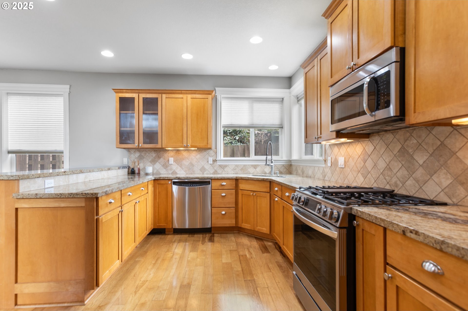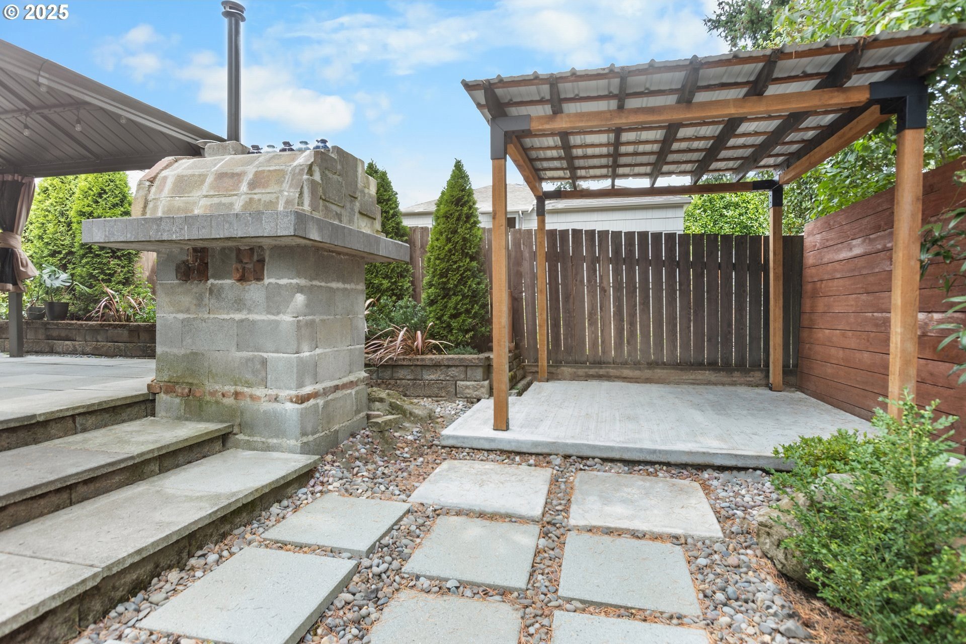 Welcome to this beautiful 3-bedroom, 2.5-bathroom home in the heart of West Linn, OR! Step inside and enjoy the open-concept layout that connects the kitchen and living room—perfect for everyday living and entertaining. The updated kitchen features sleek appliances, a breakfast bar, ample countertop and pantry space. Upstairs, the spacious primary suite feels like a retreat with vaulted ceilings, a cozy fireplace, walk-in closet, and a spa-like en suite with dual vanities, walk-in shower, jetted tub, and private water closet. Outside, the low-maintenance yard is designed for comfort and fun. The covered entertainment area includes a built-in natural gas grill, a wood-burning pizza oven, and a pad ready for a covered Jacuzzi. The private backyard patio is the ideal spot to relax and enjoy peace and privacy.Additional highlights include a shared private driveway that feels safe and provides extra parking. The location is hard to beat—just minutes from I-205, with easy access to top-rated schools, the library, restaurants, shops, and more.This home blends comfort, convenience, and lifestyle—ready for its next chapter!