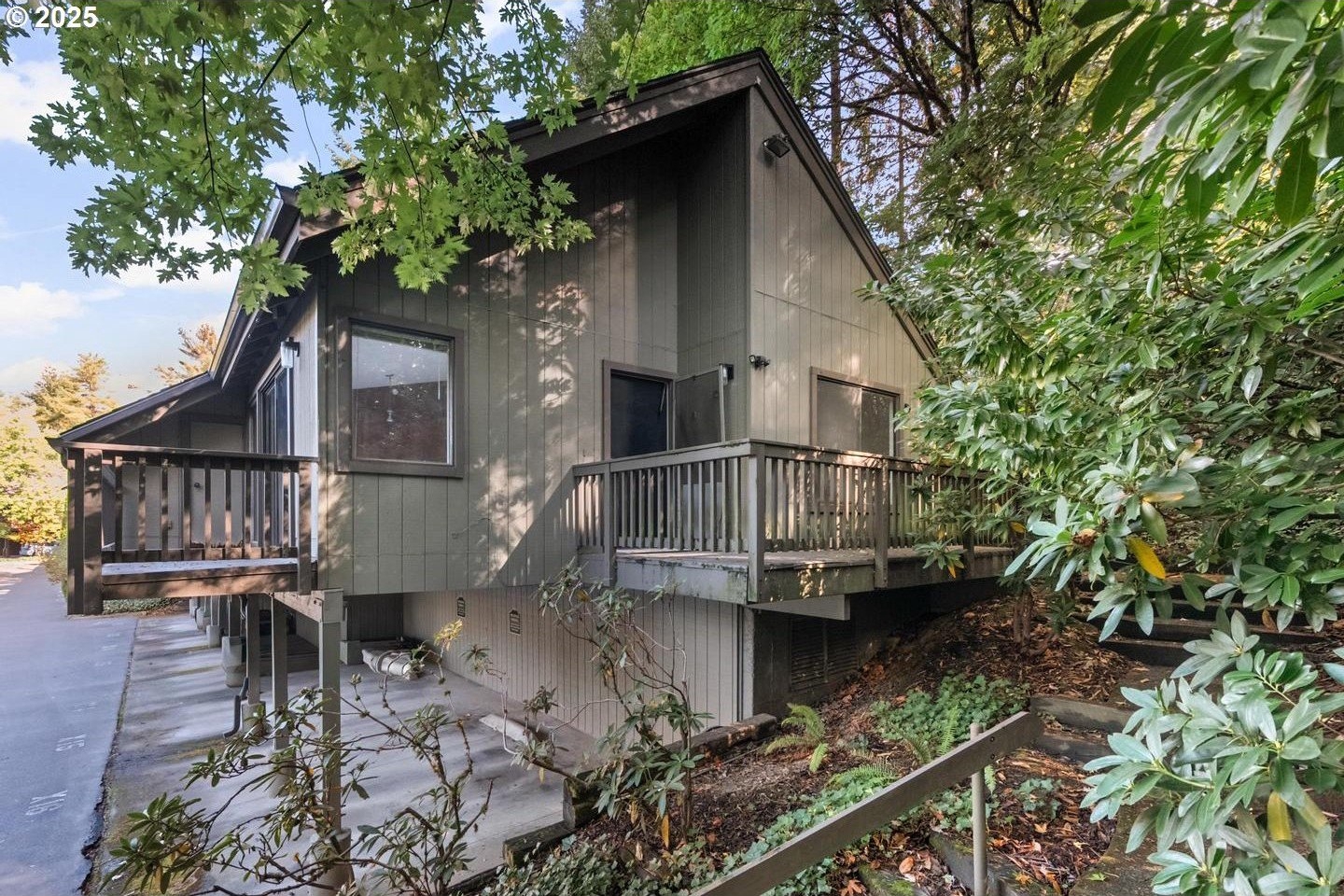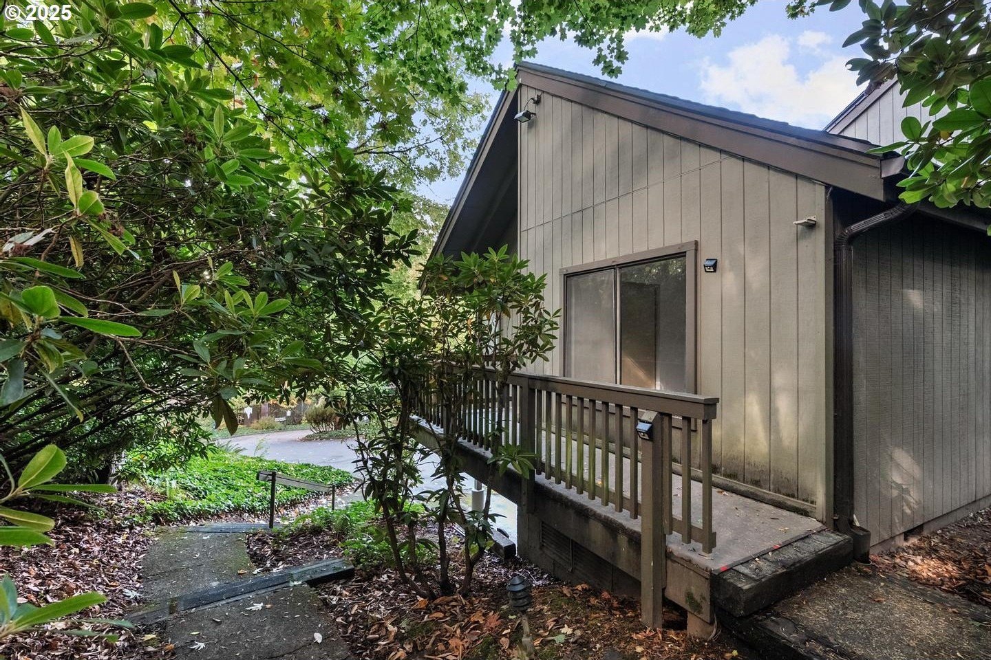 First time this Sylvan Heights Condo has been available to the market in 45 years! One bedroom end unit tucked perfectly at the end of one of the development's tree lined streets! A private pathway leads you up to the elevated front porch which draws you into the condominium's expansive, open living room with vaulted ceilings, new wall to wall carpet and expansive glass windows and doors to the west! Tucked perfectly and opening seamlessly to the living room is the kitchen which stands today as a classic time capsule and testament to efficiency. A separate bedroom with en suite bathroom rounds out the interior spaces while an expansive deck with territorial views of the lush grounds and an outdoor toolshed/closet highlight the exterior. With a sought after location off Barnes Road and amenities that include a pool, tennis courts and curated common areas you don't want to miss this rare opportunity to own your own property for only $155,000!