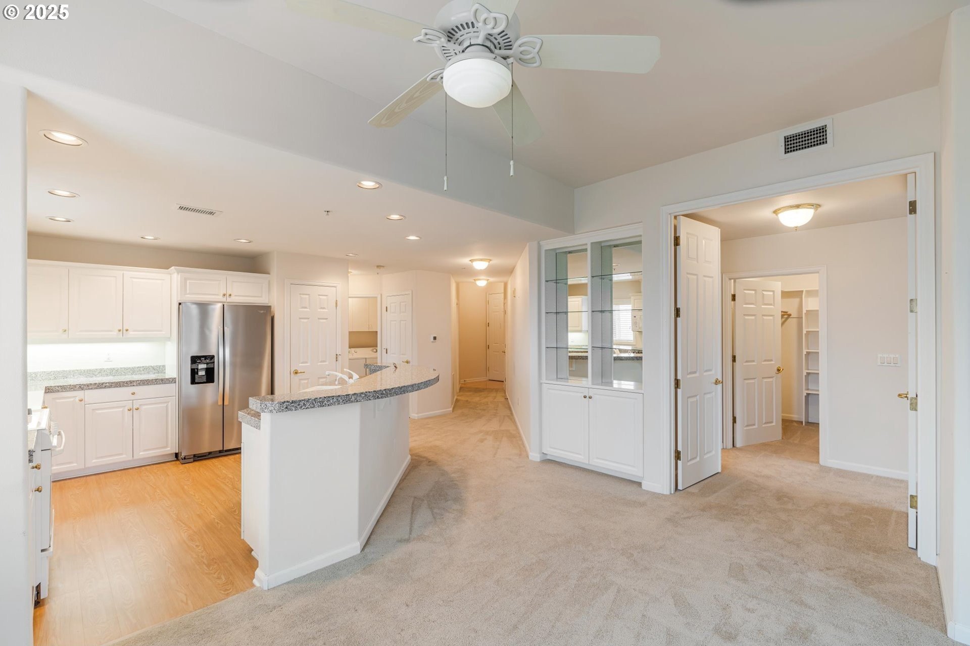 Stylish End Unit Condo with Elevator Access and Stunning Light! Enjoy comfort and convenience in this beautiful 3rd-floor end unit condominium with secure key fob entry and elevator access. Offering 1,256 sq. ft. of thoughtfully designed living space, this home combines modern finishes with an open, light-filled layout. The inviting living room features a gas fireplace, abundant natural light, and a French door leading to a private deck/balcony with a lovely view. The dining area with ceiling fan provides the perfect setting for entertaining or quiet evenings at home. The kitchen is a chef’s delight with granite countertops, gas range, built-in microwave, pantry, and built-in glass shelving for stylish display. Retreat to the spacious primary suite featuring a luxurious bath with separate tub and shower, dual sinks, and a walk-in closet. A comfortable second bedroom offers flexibility for guests or a home office. Additional features include underground parking in a secure garage and extra storage space. All appliances including washer & dryer remain at closing. Photos with furniture are virtually staged. This is the perfect blend of style, security, and low-maintenance living—schedule your showing today!