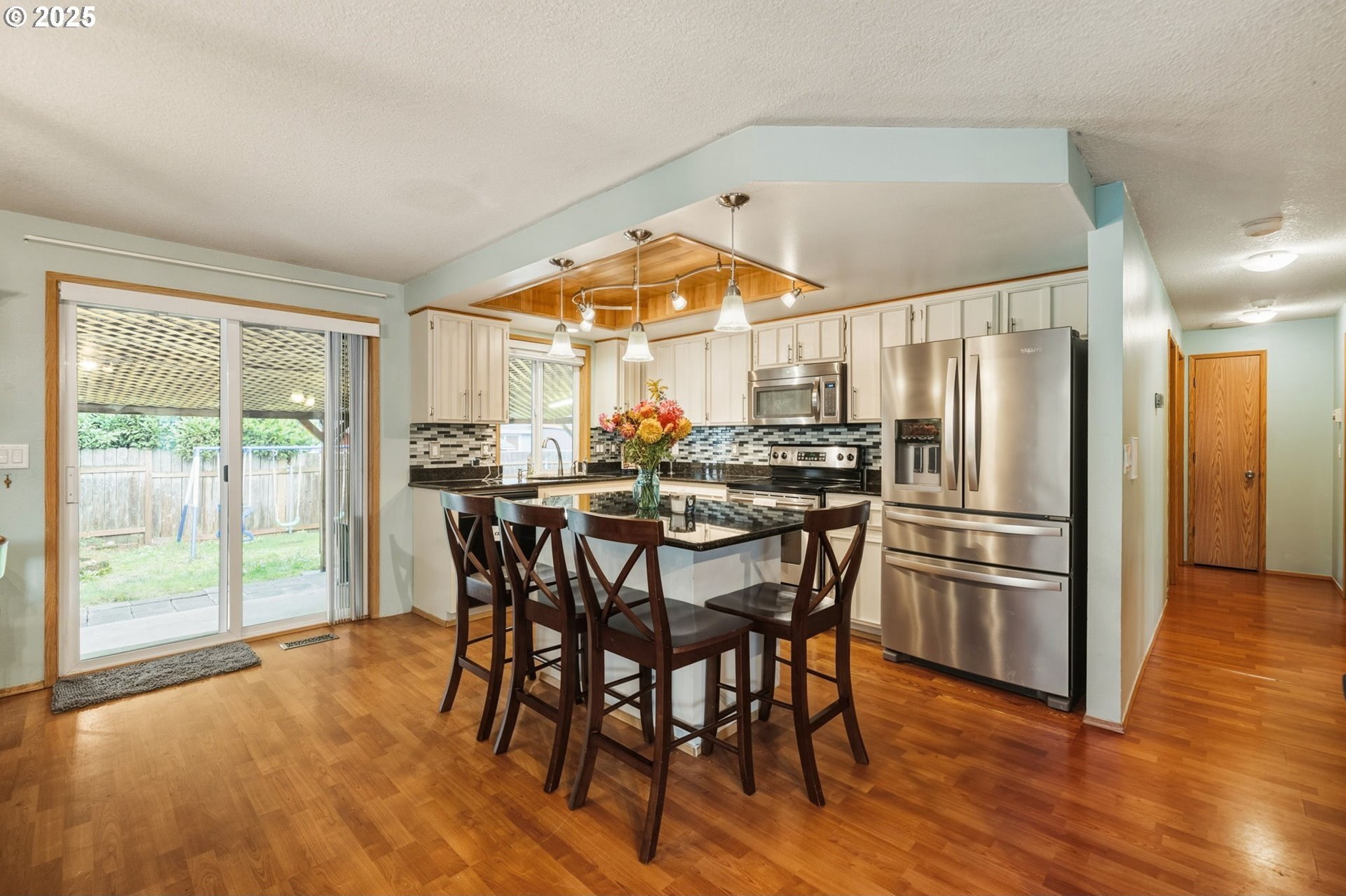 Beautifully maintained single-level home in a desirable east side neighborhood! The kitchen is a cook’s delight with granite counters, island, stainless steel appliances, and a wine cooler. Main living area features durable laminate flooring, while the bedrooms have brand new carpet. Outdoors, enjoy a covered patio, behind-fence RV parking, and a fantastic 2-level shed/playhouse complete with power and light. Swing set can stay or go! Home also includes central vac and refrigerator. Major updates done with a new roof and HVAC in 2018. Sparkling clean and move-in ready — this home is the total package! Peace of mind comes with 1 Year Home Warranty provided. Open houses Saturday & Sunday, November 1st & 2nd 11am-2pm. See you there!