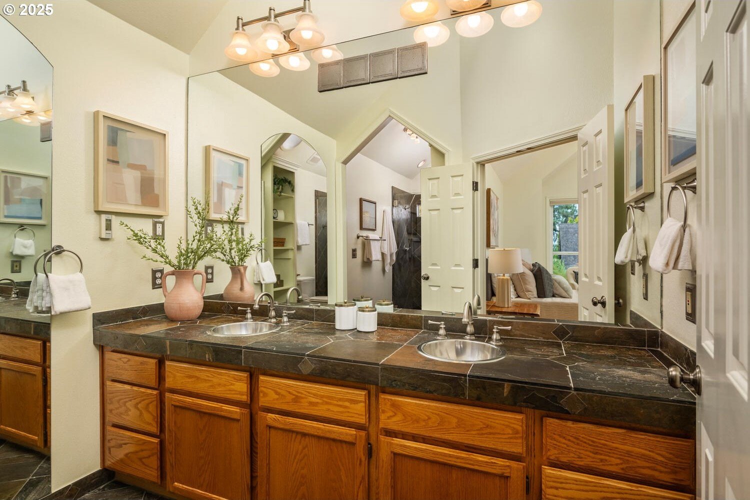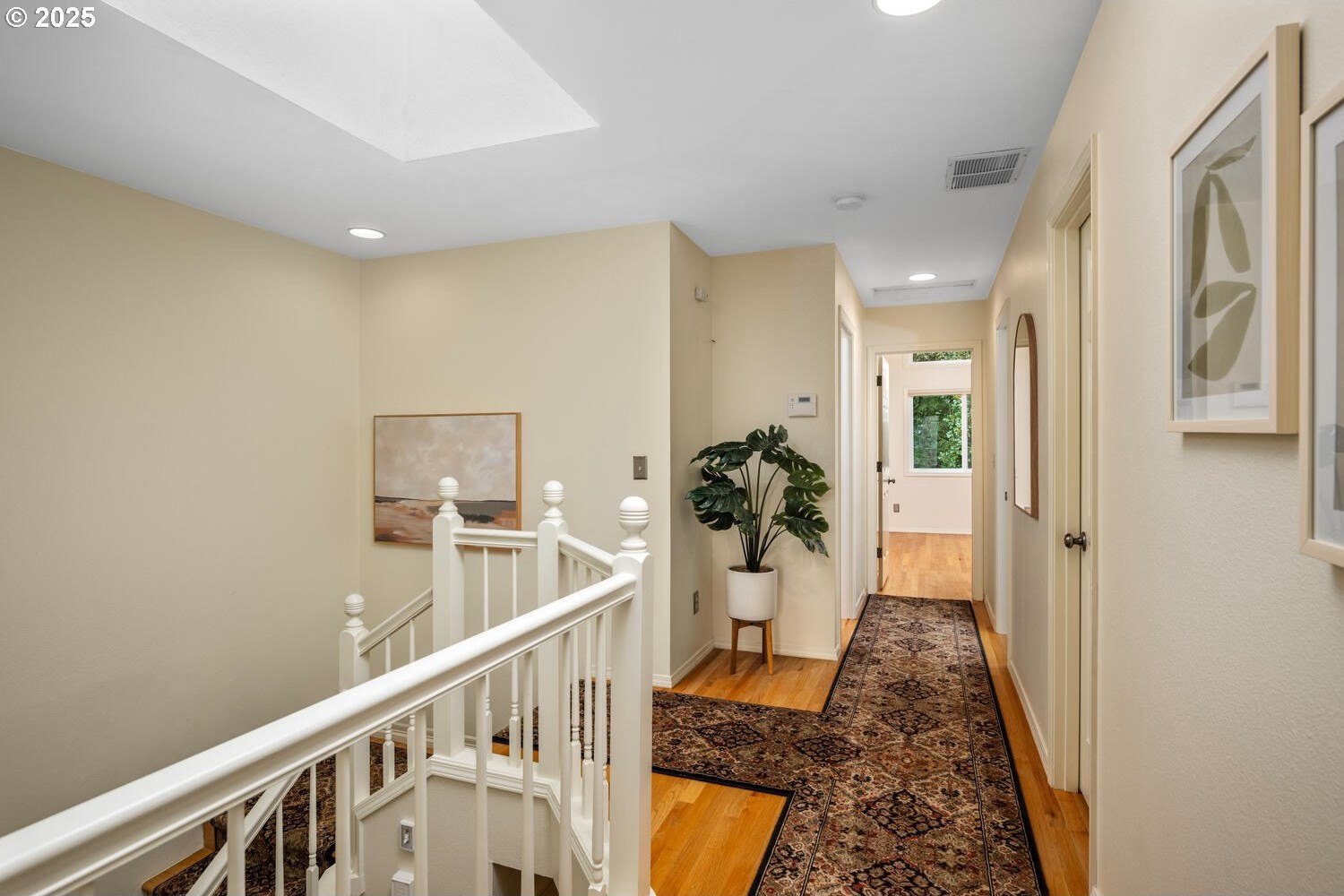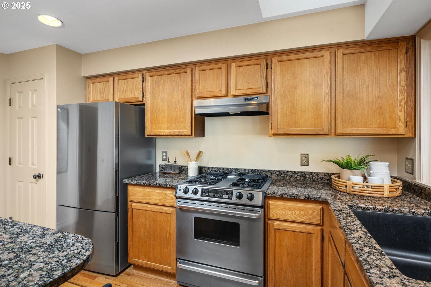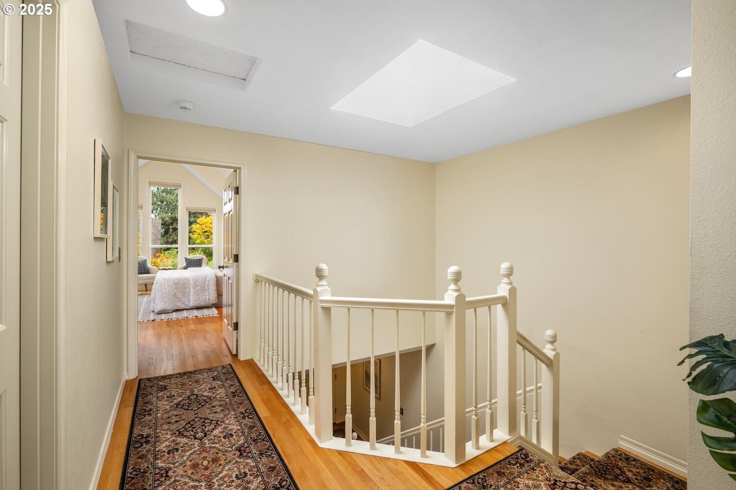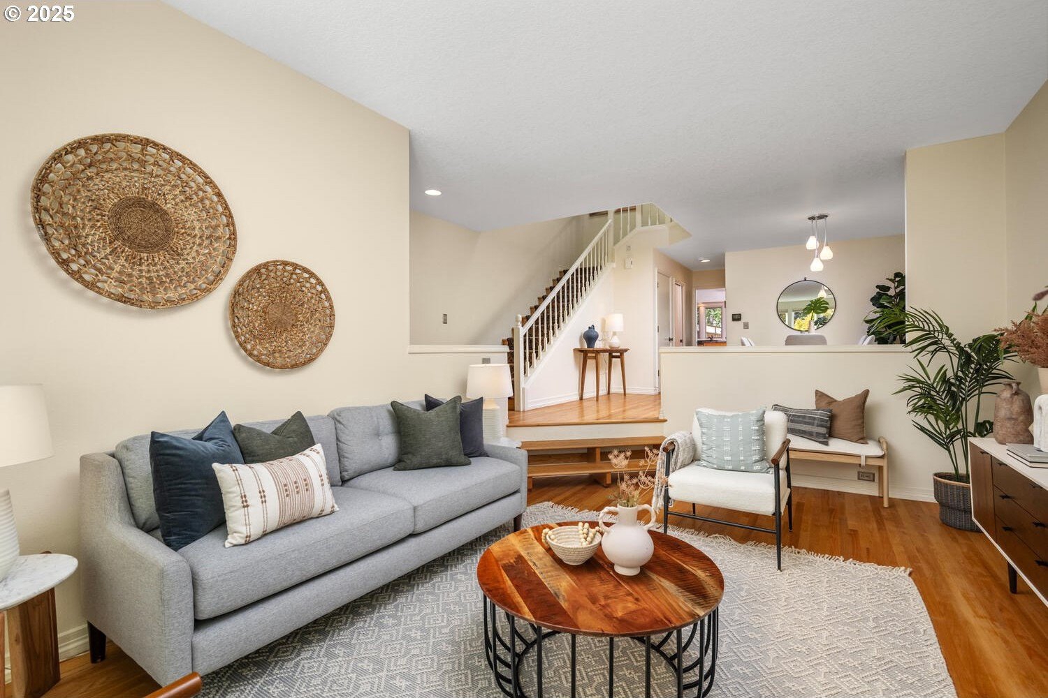 HOSTED OPEN Tues 10/28, 11-1. Rarely available end-unit at the Joann’s Place Rowhomes in NW Portland’s Nob Hill and just blocks from vibrant NW 23rd Avenue. This exceptional home features expansive walls of windows, a fully fenced private backyard with easy care Trex deck and an extra deep garage that accommodates two tandem cars in addition to driveway parking. With its brick and cedar façade, these townhomes pay homage to the character of the century-old neighborhood. The inviting, open layout features red oak hardwood floors that transition to the sunken living room with 11'8" ceiling and oversized window frame the neighboring historic homes and stately trees. The warm glow of the gas fireplace creates a cozy living space on a crisp Autumn evening. The living and dining room seamlessly connect and flow into each other for easy entertaining. The well appointed kitchen includes stainless appliances: Bosch dishwasher, GE refrigerator, 4 burner gas Maytag range with Braun hood that vents out, a double sink with Insta hot and Insinkerator disposal. A main floor family room is conveniently located off the kitchen and sliding doors offer pleasant garden views of the thoughtfully landscaped backyard including a majestic magnolia tree. The upper level primary bedroom, with dramatic cathedral ceiling, is a full suite with a private bathroom and walk-in closet. Oversized East facing windows allow sunrise views from bed, glimpses of Mt St Helens and Mt Adams as well as the surrounding historic neighborhood. Rounding out the 2nd floor are two additional bedrooms with red oak floors, a walk-in linen closet and a hall bath with tub/shower. A fully finished and permitted bonus room is off the garage and ideal as an office, media room, workout or yoga space. Located on the cusp of the NW Alphabet District, Slabtown, and the Pearl District - endless opportunities are minutes from your front door. Street car, MAX line and bus stops are nearby or use your feet- walk score is 92! [Home Energy Score = 7. HES Report at https://rpt.greenbuildingregistry.com/hes/OR10242077]