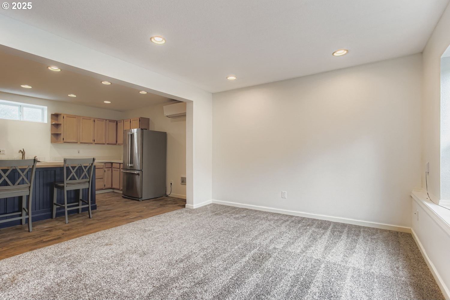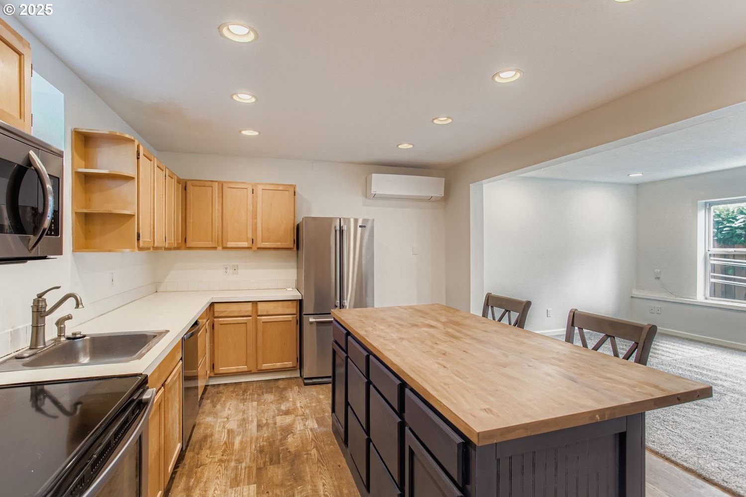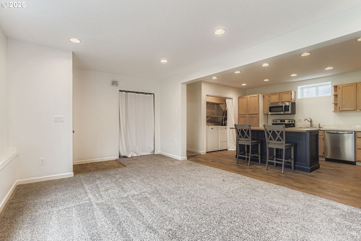 Welcome home to this inviting 2-bedroom condo in the heart of Gladstone. An ADA-compliant ramp provides convenient, step-free access from the private driveway to the front door. Just beyond, you'll find an enclosed brick patio, a perfect spot for container gardening or enjoying a quiet moment outside. Situated on the lower level of a classic home converted in 2004, this 1,028 sq. ft. space offers a perfect blend of efficiency and convenience. The main living area is filled with southern sunlight from large windows and is kept comfortable year-round with an efficient mini-split. The open layout flows seamlessly into the kitchen, where you'll find stainless steel appliances, ample counter space, and a large eating island that’s perfect for morning coffee or casual dinners. The laundry is conveniently located just off the kitchen. Retreat to the primary bedroom, a bright space also featuring large, sunlit windows, complete with soft carpeting and a spacious walk-in closet. The second bedroom is a flexible space with durable laminate flooring, ideal for a home office or guest room. With zonal electric heating, you can control the temperature in each room. The monthly HOA fee of $285 includes your water, sewer, insurance, and interior fixtures. Ask your agent for details!