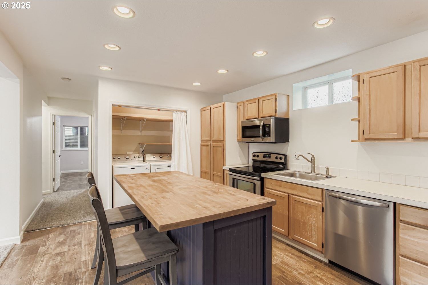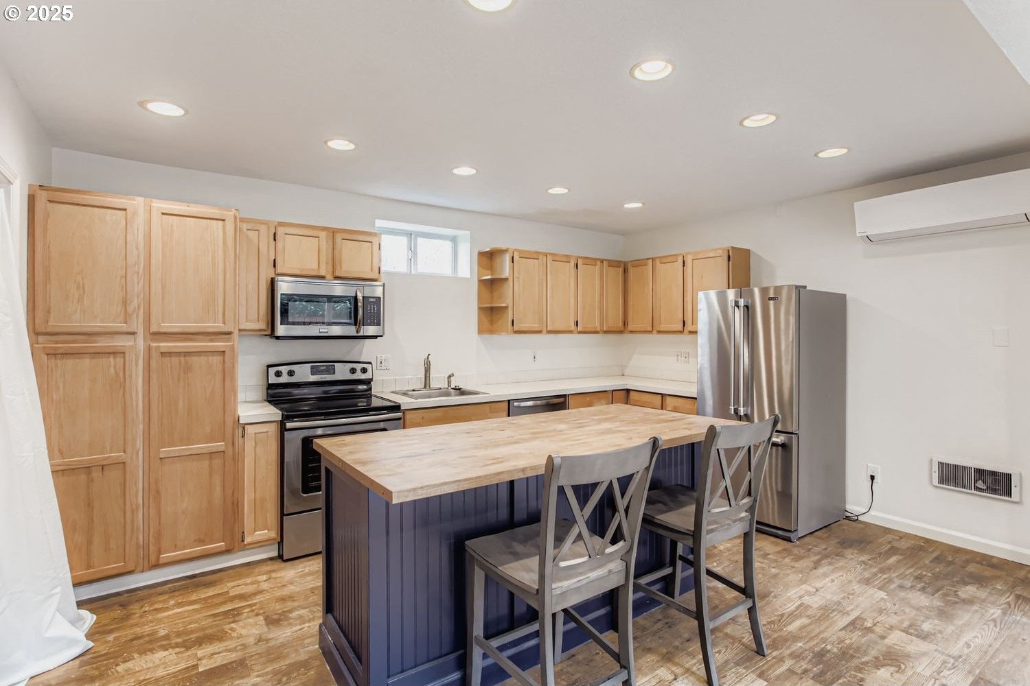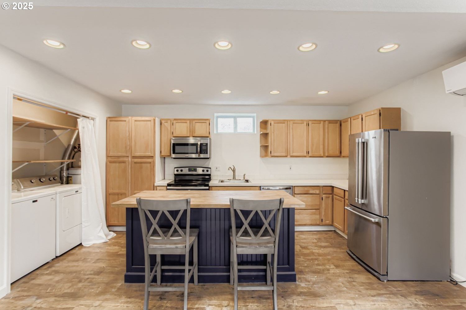 Welcome home to this inviting 2-bedroom condo in the heart of Gladstone. An ADA-compliant ramp provides convenient, step-free access from the private driveway to the front door. Just beyond, you'll find an enclosed brick patio, a perfect spot for container gardening or enjoying a quiet moment outside. Situated on the lower level of a classic home converted in 2004, this 1,028 sq. ft. space offers a perfect blend of efficiency and convenience. The main living area is filled with southern sunlight from large windows and is kept comfortable year-round with an efficient mini-split. The open layout flows seamlessly into the kitchen, where you'll find stainless steel appliances, ample counter space, and a large eating island that’s perfect for morning coffee or casual dinners. The laundry is conveniently located just off the kitchen. Retreat to the primary bedroom, a bright space also featuring large, sunlit windows, complete with soft carpeting and a spacious walk-in closet. The second bedroom is a flexible space with durable laminate flooring, ideal for a home office or guest room. With zonal electric heating, you can control the temperature in each room. The monthly HOA fee of $285 includes your water, sewer, insurance, and interior fixtures. Ask your agent for details!
