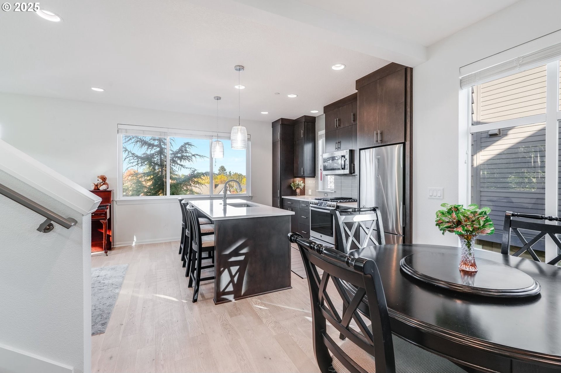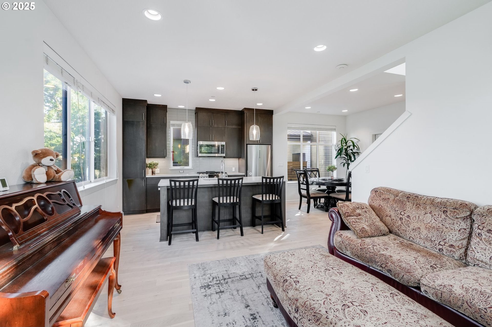 Light-filled three-story condo offering 1,418 square feet of thoughtfully designed living space on a desirable corner lot in Northeast Portland. The entry level features a private bedroom with direct access to a fully fenced yard, perfect for pets, gardening, or private outdoor enjoyment. The second level is the heart of the home, showcasing an open-concept living area with large windows, a gas fireplace, spacious dining area, and kitchen with ample cabinetry and breakfast bar seating. The third level is dedicated to the primary suite, complete with a private bath and walk-in closet for added privacy and convenience.Additional highlights include in-unit laundry, an attached garage, and low-maintenance outdoor space. Situated in a quiet neighborhood close to parks, cafés, and major commuting routes, this home offers comfort, flexibility, and urban convenience. [Home Energy Score = 10. HES Report at https://rpt.greenbuildingregistry.com/hes/OR10177505]