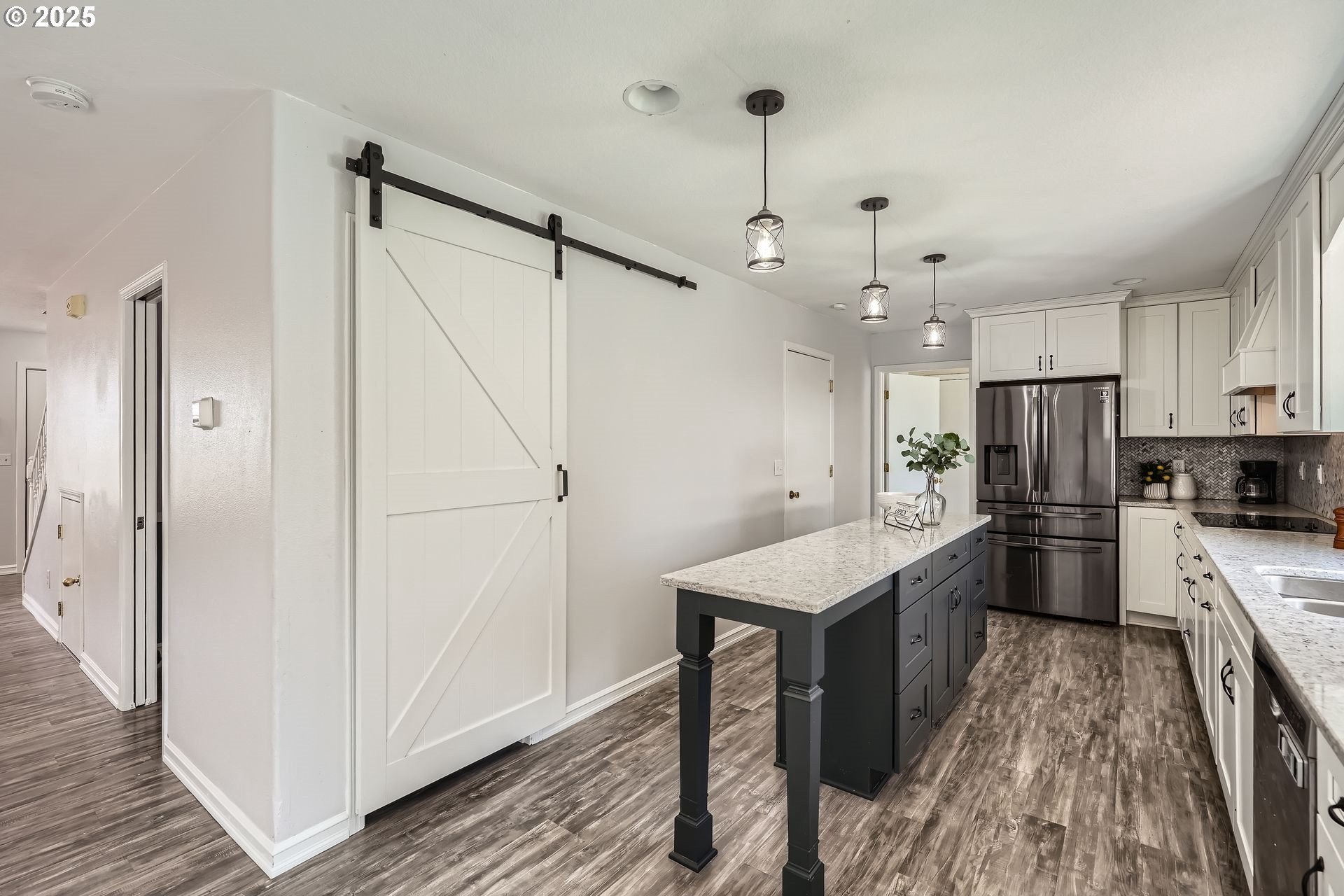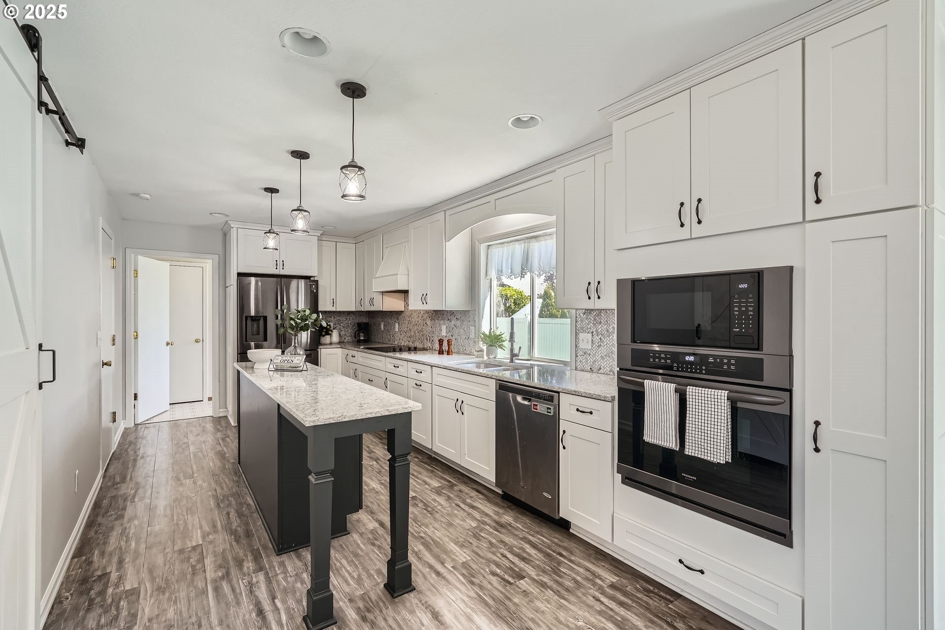 Welcome to 7217 NE 130th Avenue, a beautifully updated two-story home nestled in a quiet neighborhood just minutes from parks, shopping, and I-205. This spacious 4-bedroom, 2.5-bath home offers just under 2,000 square feet of comfortable living space with modern updates and thoughtful design throughout. Inside, you’ll love the freshly painted doors and trim and the luxury vinyl plank flooring that runs throughout the entire home, creating a clean and cohesive feel. The heart of the home is the stunning remodeled kitchen designed for both everyday living and entertaining. Featuring custom cabinetry, quartz countertops, tile backsplash, a large island and a pantry tucked behind a stylish barn door, this kitchen offers the perfect blend of form and function. The adjacent dining space opens to the backyard patio through sliding glass doors, making indoor-outdoor living a breeze and perfect for entertaining. The spacious living room includes a cozy gas fireplace and large window that fills the space with natural light. Upstairs, the primary suite is a peaceful retreat with vaulted ceilings, a beautiful arched window, walk-in closet, and a full en suite bathroom with dual sinks. Three additional bedrooms, a full hall bath and upstairs laundry provide all the space you need for guests, family, or working from home. Outside, the fully fenced backyard is ready for your summer plans—whether that’s gardening, relaxing, or gathering with friends. There’s also a two-car garage and plenty of driveway space for parking. With tasteful updates and a location that’s both peaceful and convenient, this home is truly move-in ready and waiting for its next chapter. Newer water heater (4 years). Call to schedule your private showing today.
