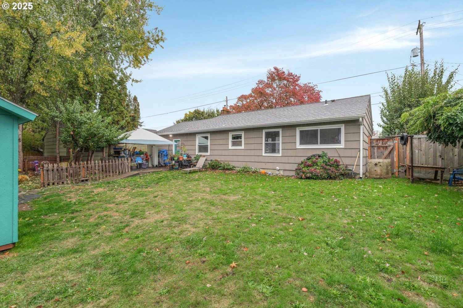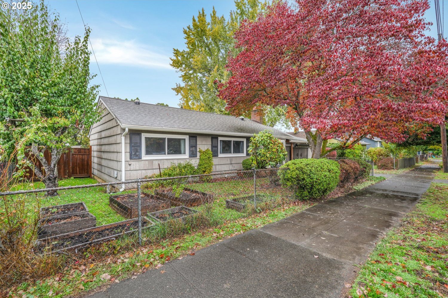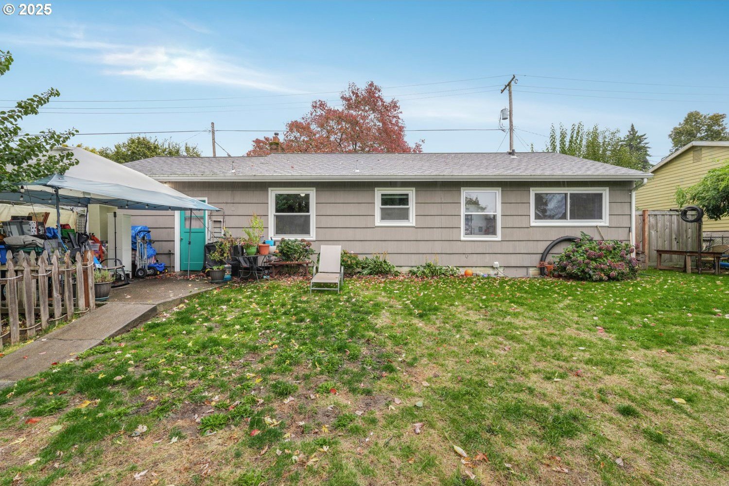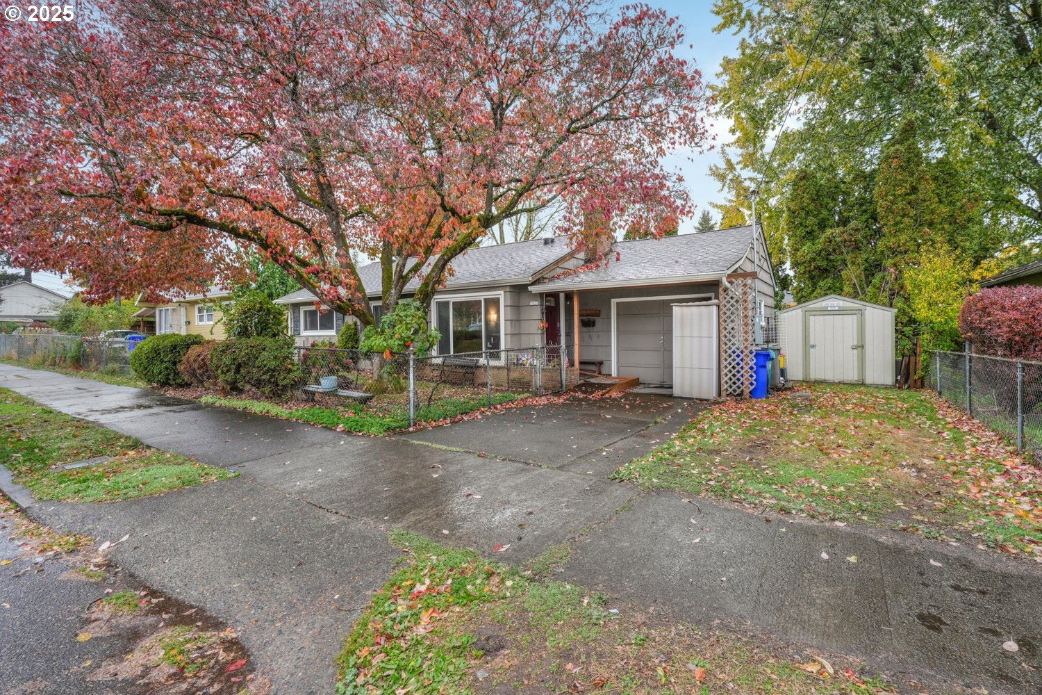 Move-In Ready Ranch in Prime Location! Welcome to this charming 3-bedroom, 1-bath ranch-style home set in a desirable neighborhood close to dining, shopping (Fred Meyer, Safeway, Grocery Outlet, New Seasons), parks, and schools. With fantastic walk and bike scores, this location is perfect for those who love an active lifestyle and it’s only 10 minutes from the University of Portland! Step inside to a bright living room featuring a cozy pellet stove and a large picture window that fills the space with natural light. The open layout flows seamlessly into the dining area, ideal for everyday living or entertaining. The main bedroom includes generous double built-in closets, while two additional bedrooms and a full bath with walk-in shower complete the interior. The original hardwood floors can be found under the carpeted areas. Recent improvements include a newer roof (less than 10 years old), updated windows, gutter guards, a remodeled bathroom, upgraded heating with a pellet stove and electric system, and tube lights in the living room and bathroom that provide great lighting, all providing comfort and peace of mind. A delightful bonus awaits in the backyard: a 10x20 tiny home with permitted electricity, vaulted ceiling and laminate flooring that would be perfect as a guest suite, home office, creative studio, or private retreat; the possibilities are endless! The large fenced backyard has a patio for relaxing outdoors, established plum and pear trees, and a 10x12 shed with a 4 ft covered porch that has insulation and drywall and would make a wonderful craft space. The front yard has raised garden boxes and an 8x10 shed nearby for storing your tools. In addition, there's a 5x7 shed in front of the garage for added storage space. The attic and under the home have been insulated for added peace of mind. This home combines comfort, updates, and versatility in a convenient location.