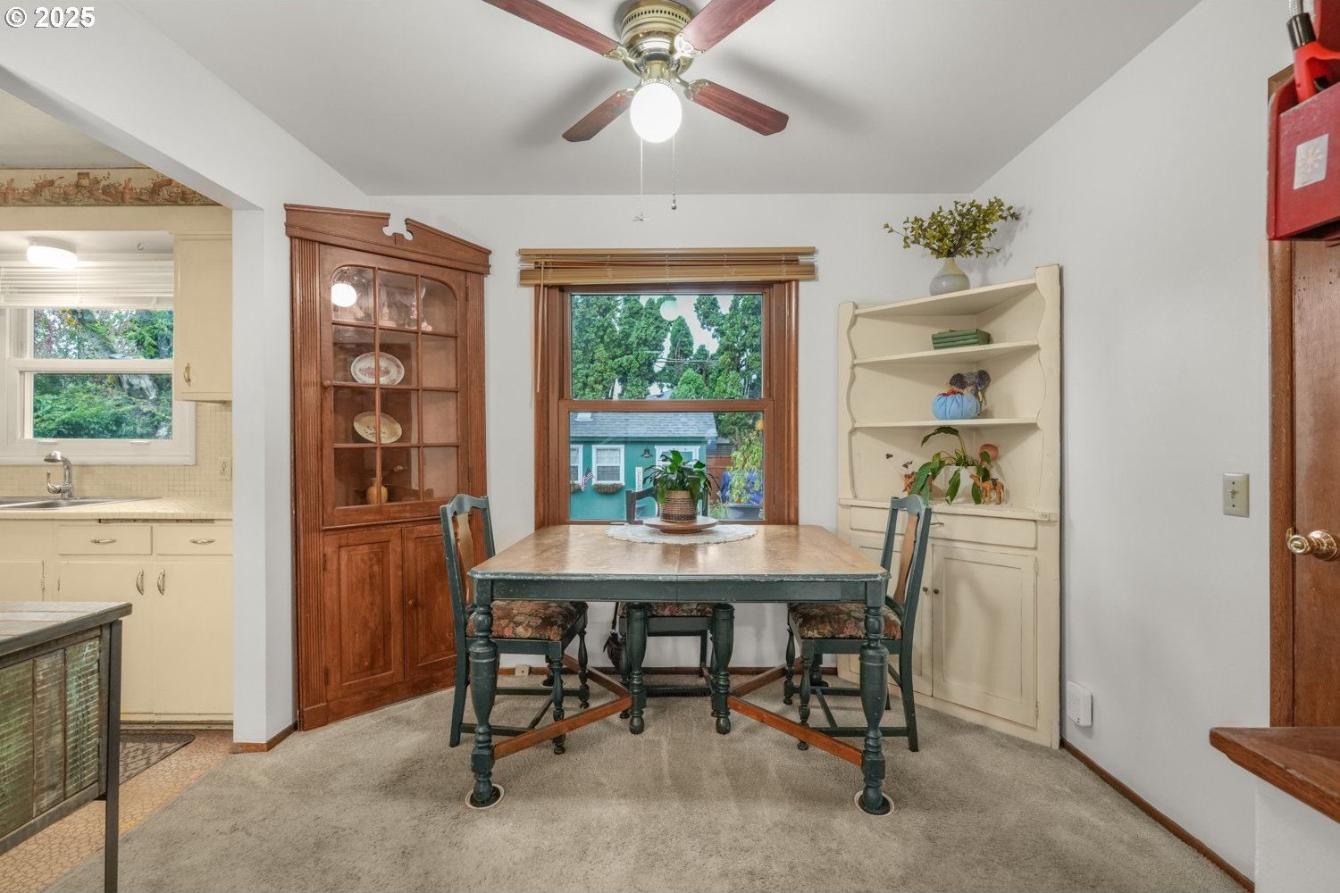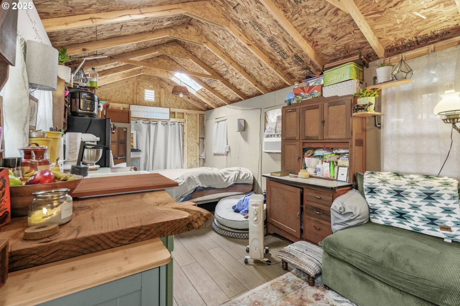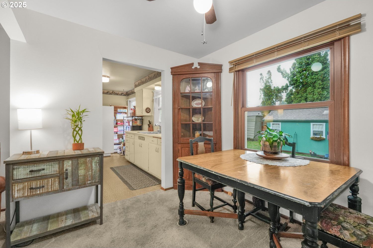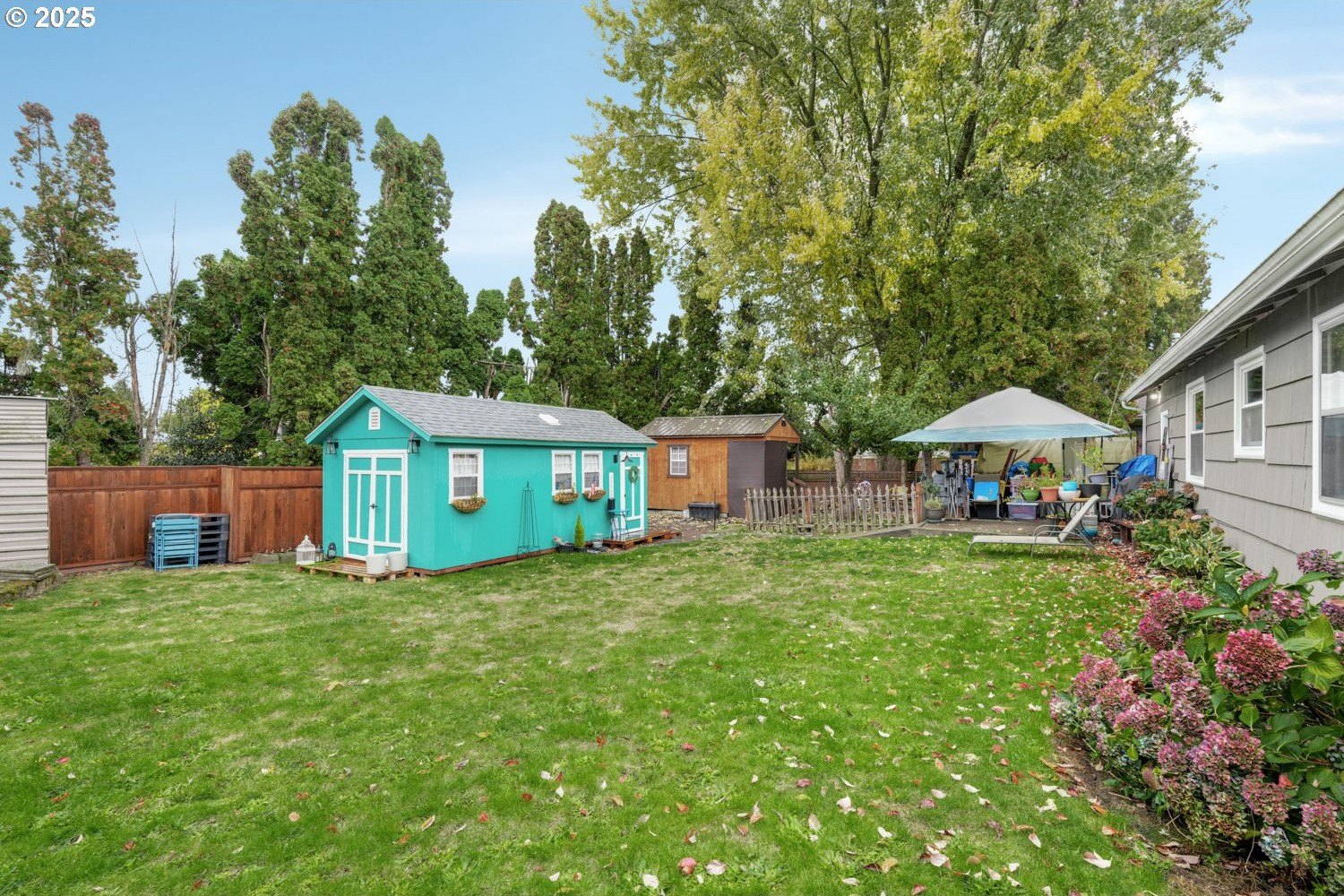 Move-In Ready Ranch in Prime Location! Welcome to this charming 3-bedroom, 1-bath ranch-style home set in a desirable neighborhood close to dining, shopping (Fred Meyer, Safeway, Grocery Outlet, New Seasons), parks, and schools. With fantastic walk and bike scores, this location is perfect for those who love an active lifestyle and it’s only 10 minutes from the University of Portland! Step inside to a bright living room featuring a cozy pellet stove and a large picture window that fills the space with natural light. The open layout flows seamlessly into the dining area, ideal for everyday living or entertaining. The main bedroom includes generous double built-in closets, while two additional bedrooms and a full bath with walk-in shower complete the interior. The original hardwood floors can be found under the carpeted areas. Recent improvements include a newer roof (less than 10 years old), updated windows, gutter guards, a remodeled bathroom, upgraded heating with a pellet stove and electric system, and tube lights in the living room and bathroom that provide great lighting, all providing comfort and peace of mind. A delightful bonus awaits in the backyard: a 10x20 tiny home with permitted electricity, vaulted ceiling and laminate flooring that would be perfect as a guest suite, home office, creative studio, or private retreat; the possibilities are endless! The large fenced backyard has a patio for relaxing outdoors, established plum and pear trees, and a 10x12 shed with a 4 ft covered porch that has insulation and drywall and would make a wonderful craft space. The front yard has raised garden boxes and an 8x10 shed nearby for storing your tools. In addition, there's a 5x7 shed in front of the garage for added storage space. The attic and under the home have been insulated for added peace of mind. This home combines comfort, updates, and versatility in a convenient location.