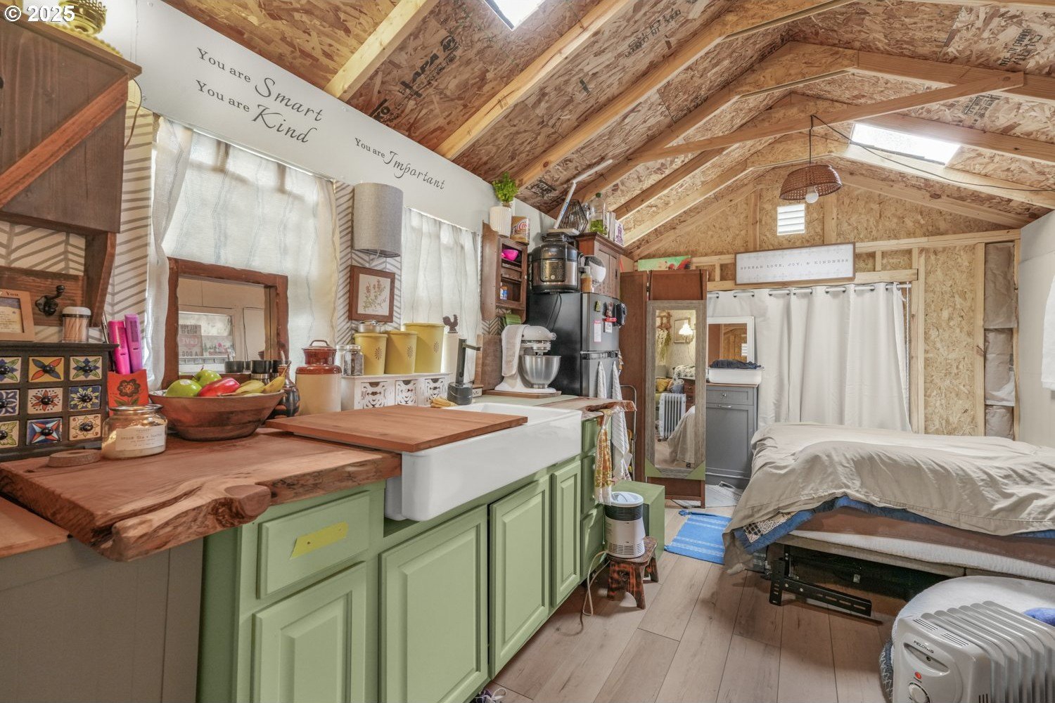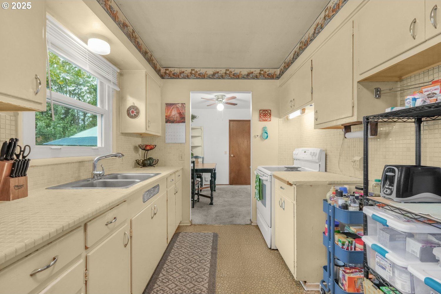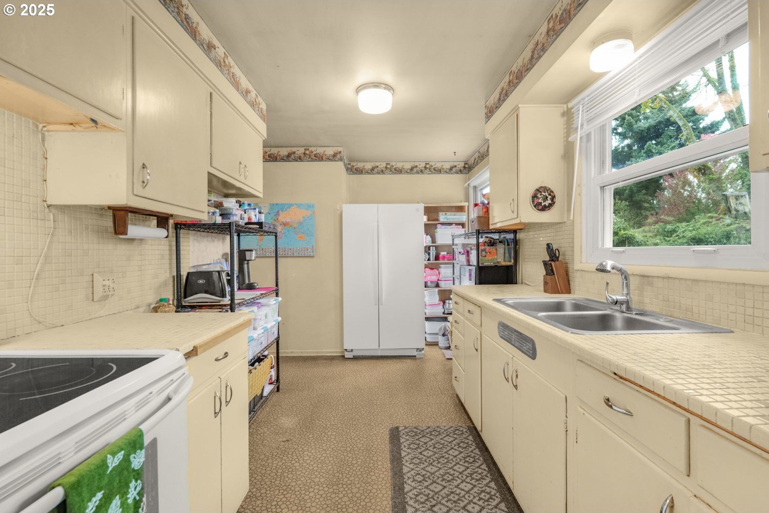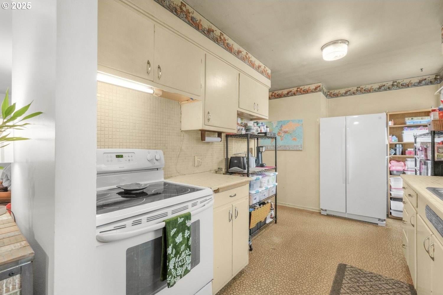 Move-In Ready Ranch in Prime Location! Welcome to this charming 3-bedroom, 1-bath ranch-style home set in a desirable neighborhood close to dining, shopping (Fred Meyer, Safeway, Grocery Outlet, New Seasons), parks, and schools. With fantastic walk and bike scores, this location is perfect for those who love an active lifestyle and it’s only 10 minutes from the University of Portland! Step inside to a bright living room featuring a cozy pellet stove and a large picture window that fills the space with natural light. The open layout flows seamlessly into the dining area, ideal for everyday living or entertaining. The main bedroom includes generous double built-in closets, while two additional bedrooms and a full bath with walk-in shower complete the interior. The original hardwood floors can be found under the carpeted areas. Recent improvements include a newer roof (less than 10 years old), updated windows, gutter guards, a remodeled bathroom, upgraded heating with a pellet stove and electric system, and tube lights in the living room and bathroom that provide great lighting, all providing comfort and peace of mind. A delightful bonus awaits in the backyard: a 10x20 tiny home with permitted electricity, vaulted ceiling and laminate flooring that would be perfect as a guest suite, home office, creative studio, or private retreat; the possibilities are endless! The large fenced backyard has a patio for relaxing outdoors, established plum and pear trees, and a 10x12 shed with a 4 ft covered porch that has insulation and drywall and would make a wonderful craft space. The front yard has raised garden boxes and an 8x10 shed nearby for storing your tools. In addition, there's a 5x7 shed in front of the garage for added storage space. The attic and under the home have been insulated for added peace of mind. This home combines comfort, updates, and versatility in a convenient location.