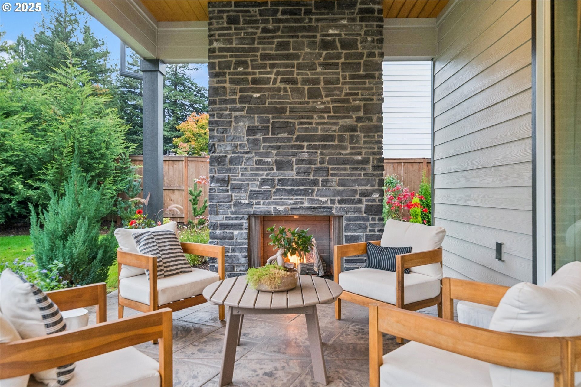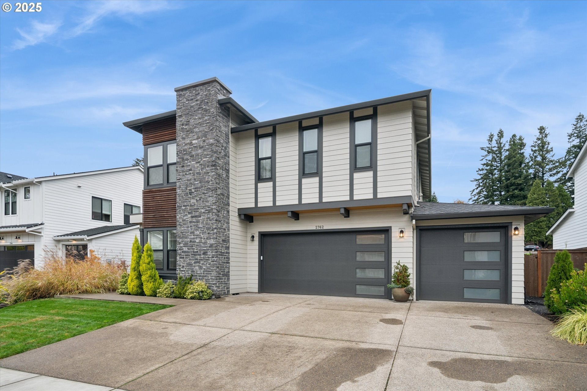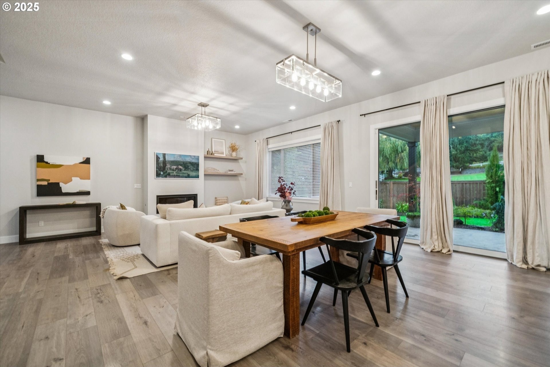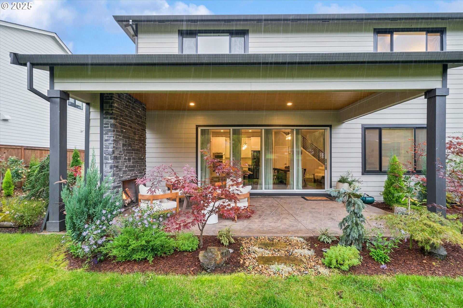 Rare opportunity! Like-new contemporary build in coveted West Linn Meadows! No detail was missed with over $139,000 in upgrades during new construction including stylish engineered hardwood floors throughout both levels, high-gloss slab cabinetry, and a showstopping 15 ft wide stacking sliding door which elegantly ties together the great room with the expansive outdoor living area. Inside, the home features high ceilings on both levels, high-end finishes in every room, and a sought-after main level bedroom with adjacent full bathroom. Tastefully designed, the open kitchen will impress with its gleaming quartz counters and matching backsplash, Wolf appliances, sprawling island with eating bar, and spacious pantry. Upstairs, the central family room smartly connects the surrounding bedroom spaces including the lavish primary suite with its spa-like bathroom, enormous shower, and double walk-in closet. Outside, great care was put into the extensive landscaping, and you will love the covered living area complete with handsome stone fireplace, exposed wood ceilings, & stamped concrete floors. Energy efficient design including 95% efficiency furnace, tankless water heater, and Energy Star rated appliances. Conveniently located near shopping, restaurants, parks, and top-rated West Linn schools!