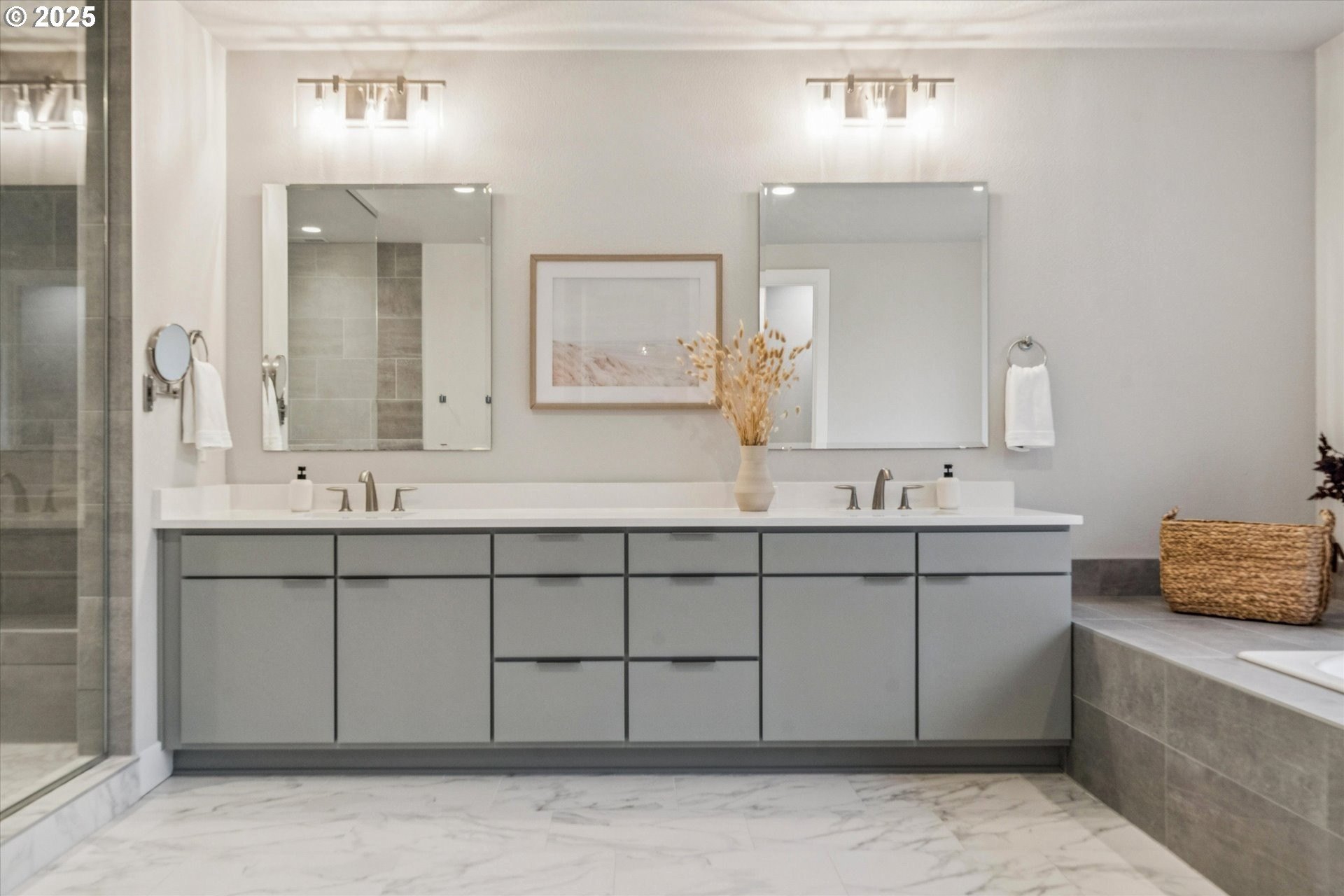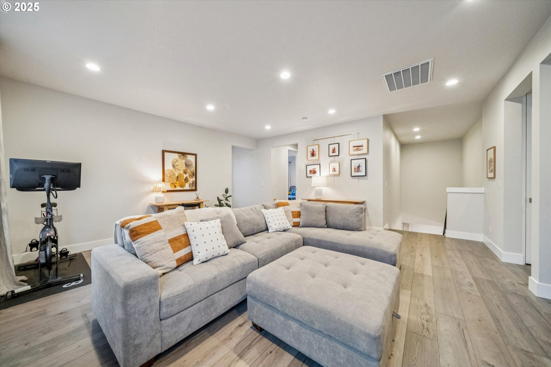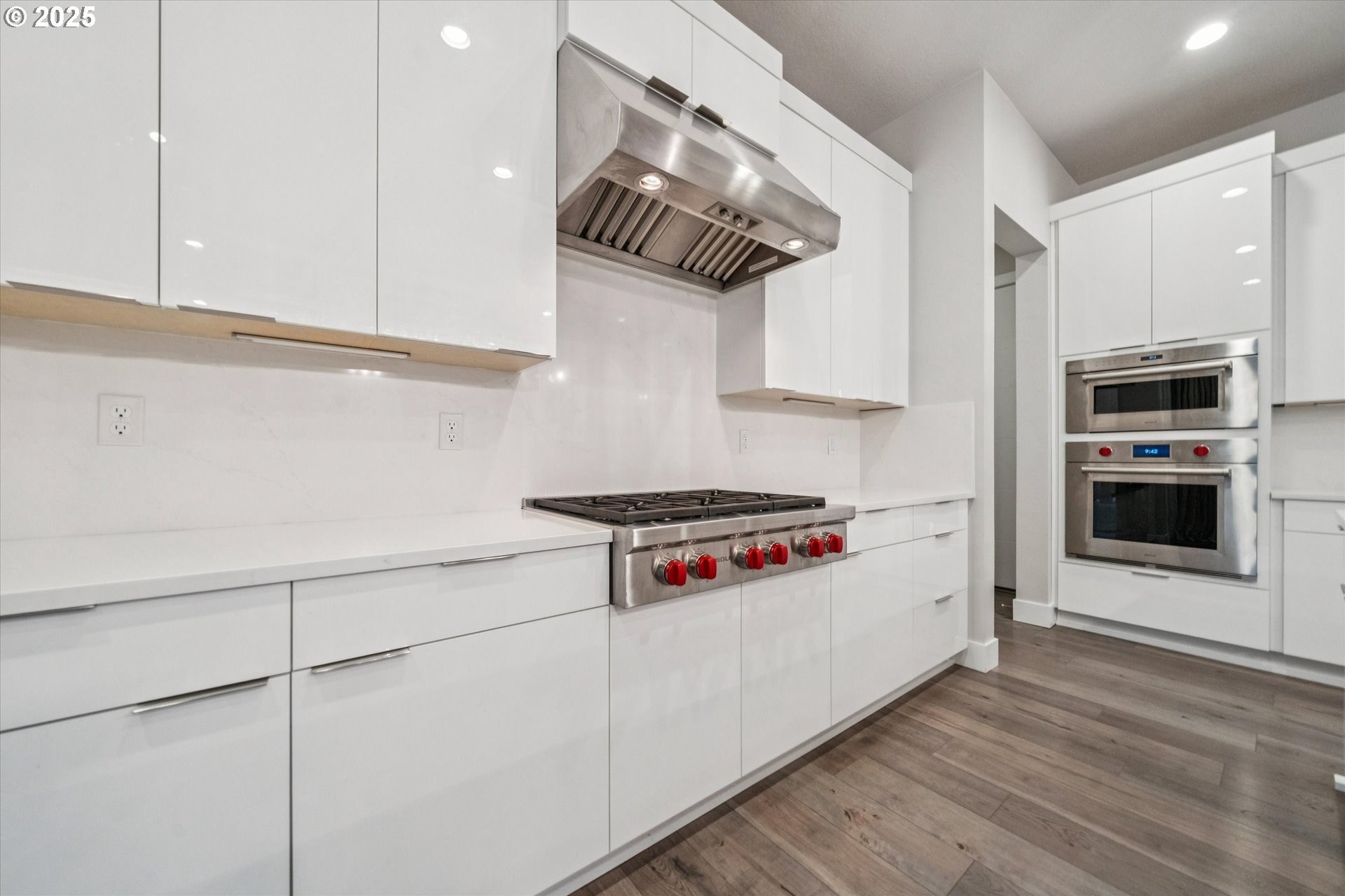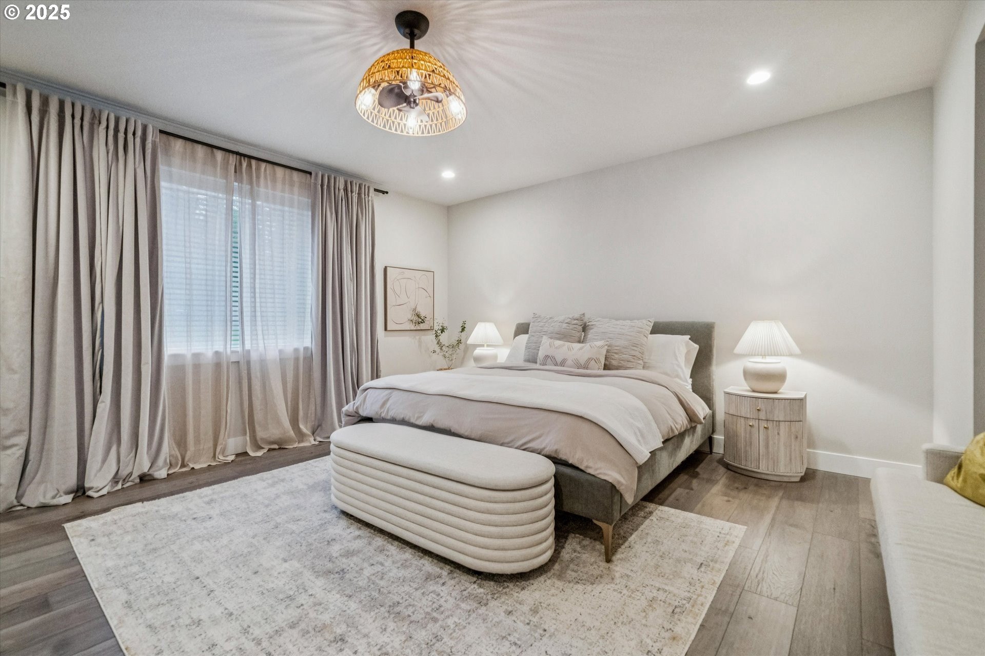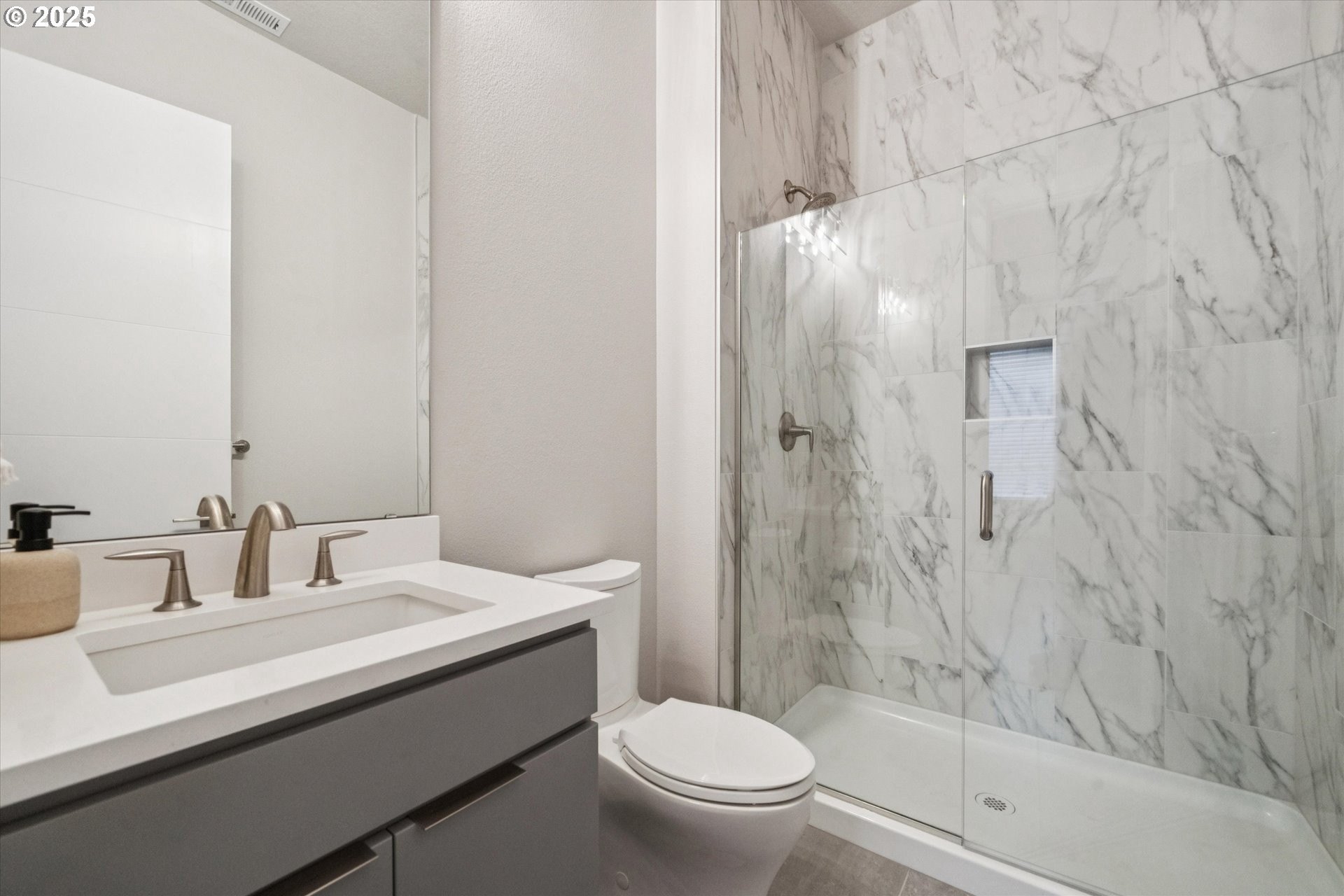 Rare opportunity! Like-new contemporary build in coveted West Linn Meadows! No detail was missed with over $139,000 in upgrades during new construction including stylish engineered hardwood floors throughout both levels, high-gloss slab cabinetry, and a showstopping 15 ft wide stacking sliding door which elegantly ties together the great room with the expansive outdoor living area. Inside, the home features high ceilings on both levels, high-end finishes in every room, and a sought-after main level bedroom with adjacent full bathroom. Tastefully designed, the open kitchen will impress with its gleaming quartz counters and matching backsplash, Wolf appliances, sprawling island with eating bar, and spacious pantry. Upstairs, the central family room smartly connects the surrounding bedroom spaces including the lavish primary suite with its spa-like bathroom, enormous shower, and double walk-in closet. Outside, great care was put into the extensive landscaping, and you will love the covered living area complete with handsome stone fireplace, exposed wood ceilings, & stamped concrete floors. Energy efficient design including 95% efficiency furnace, tankless water heater, and Energy Star rated appliances. Conveniently located near shopping, restaurants, parks, and top-rated West Linn schools!