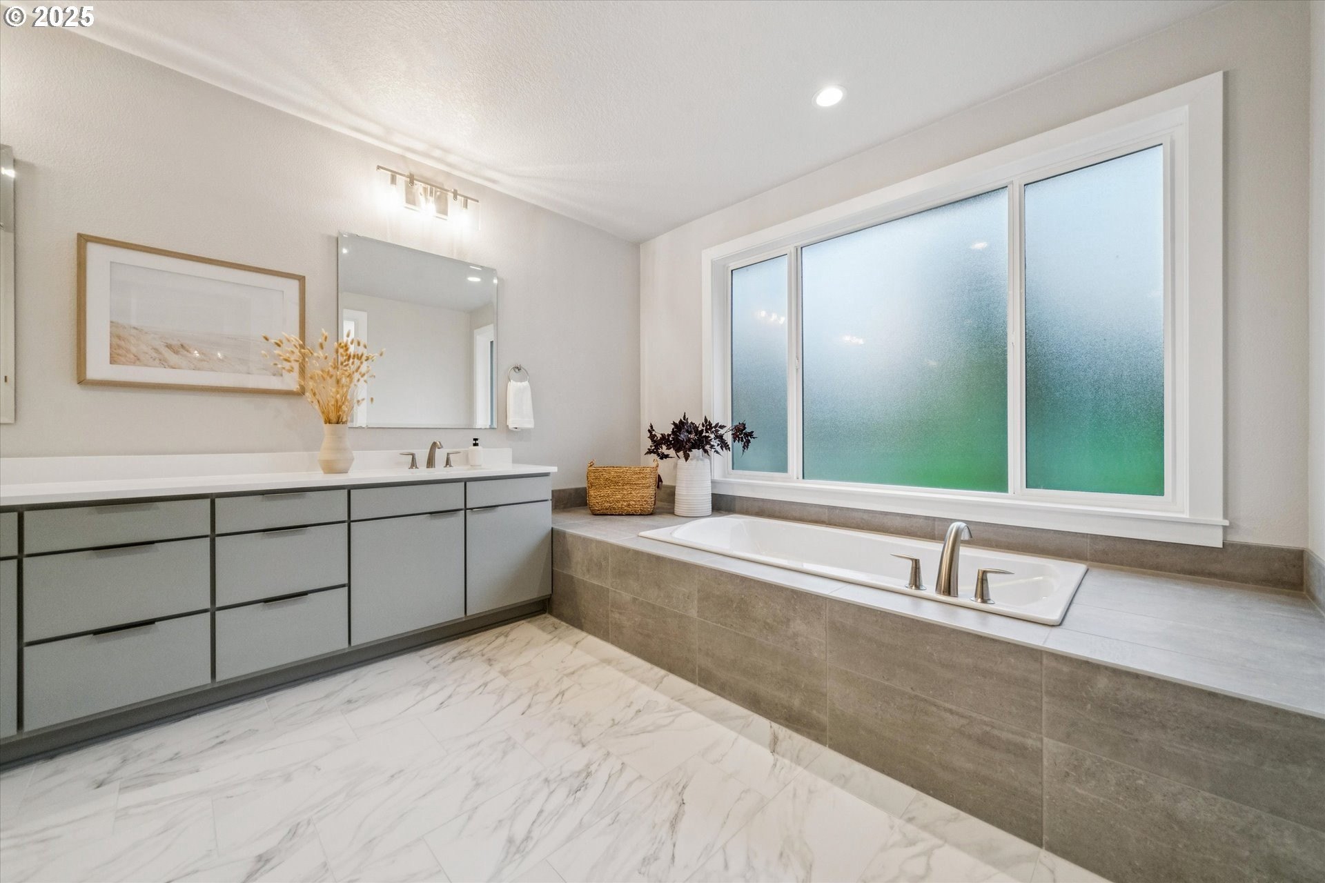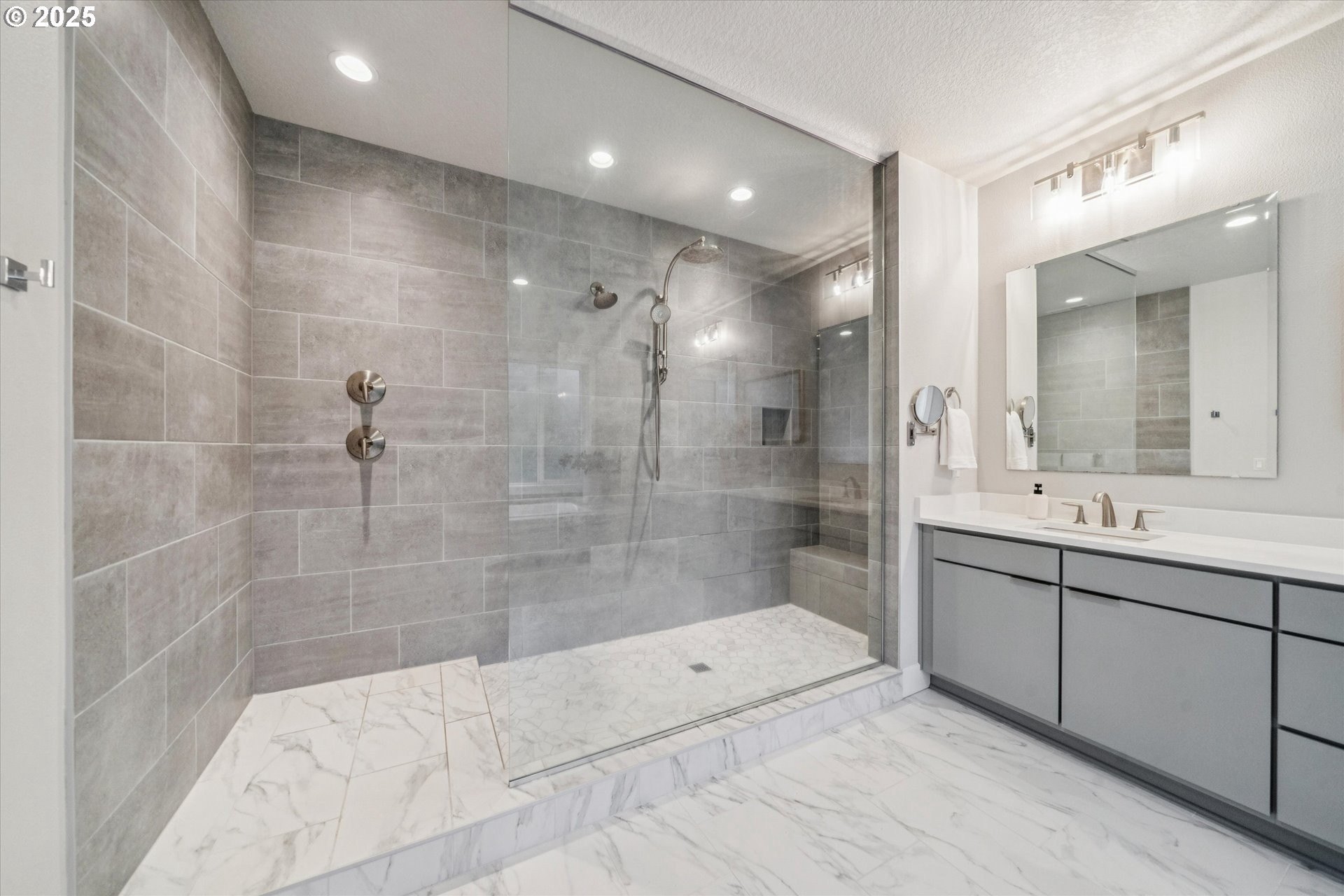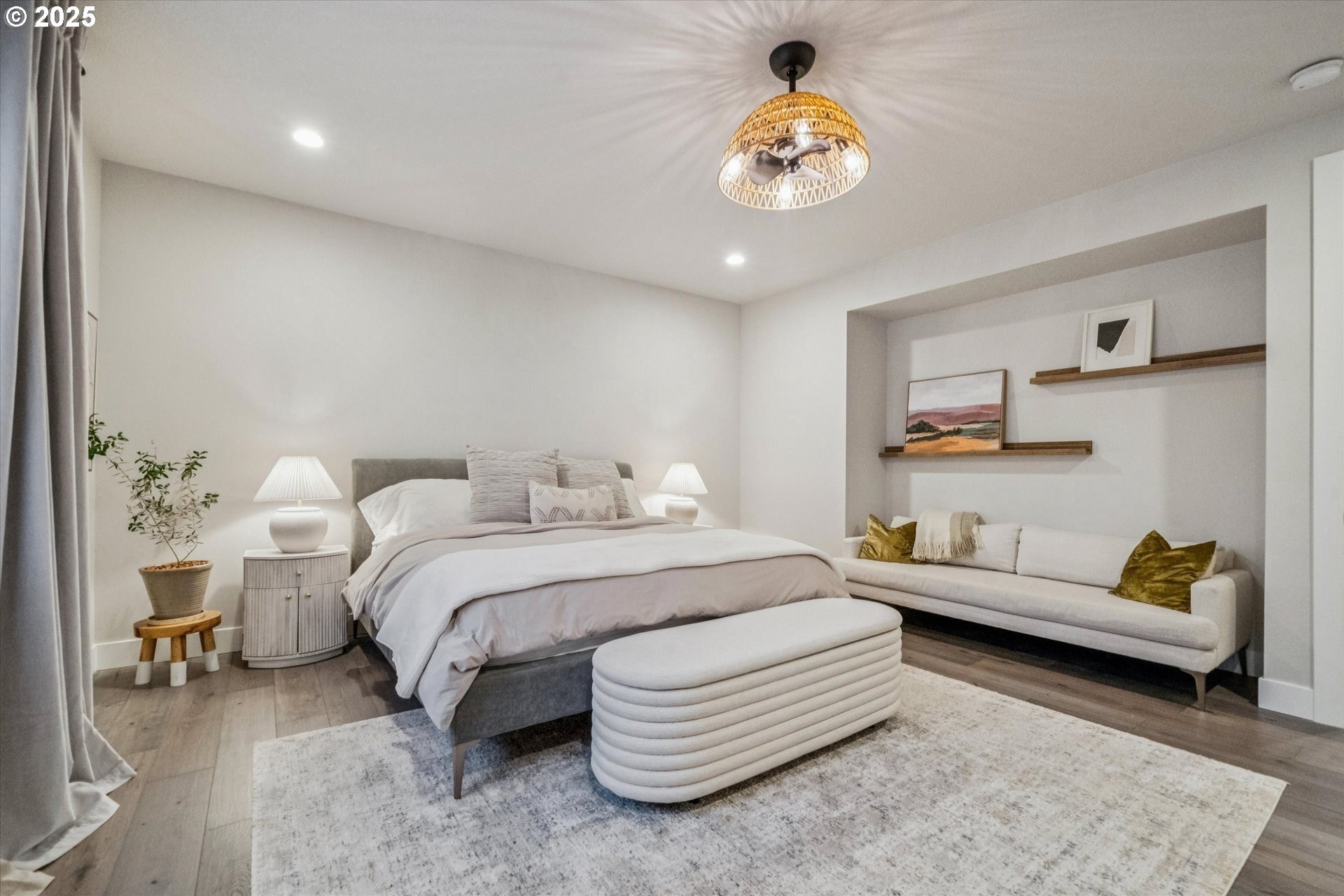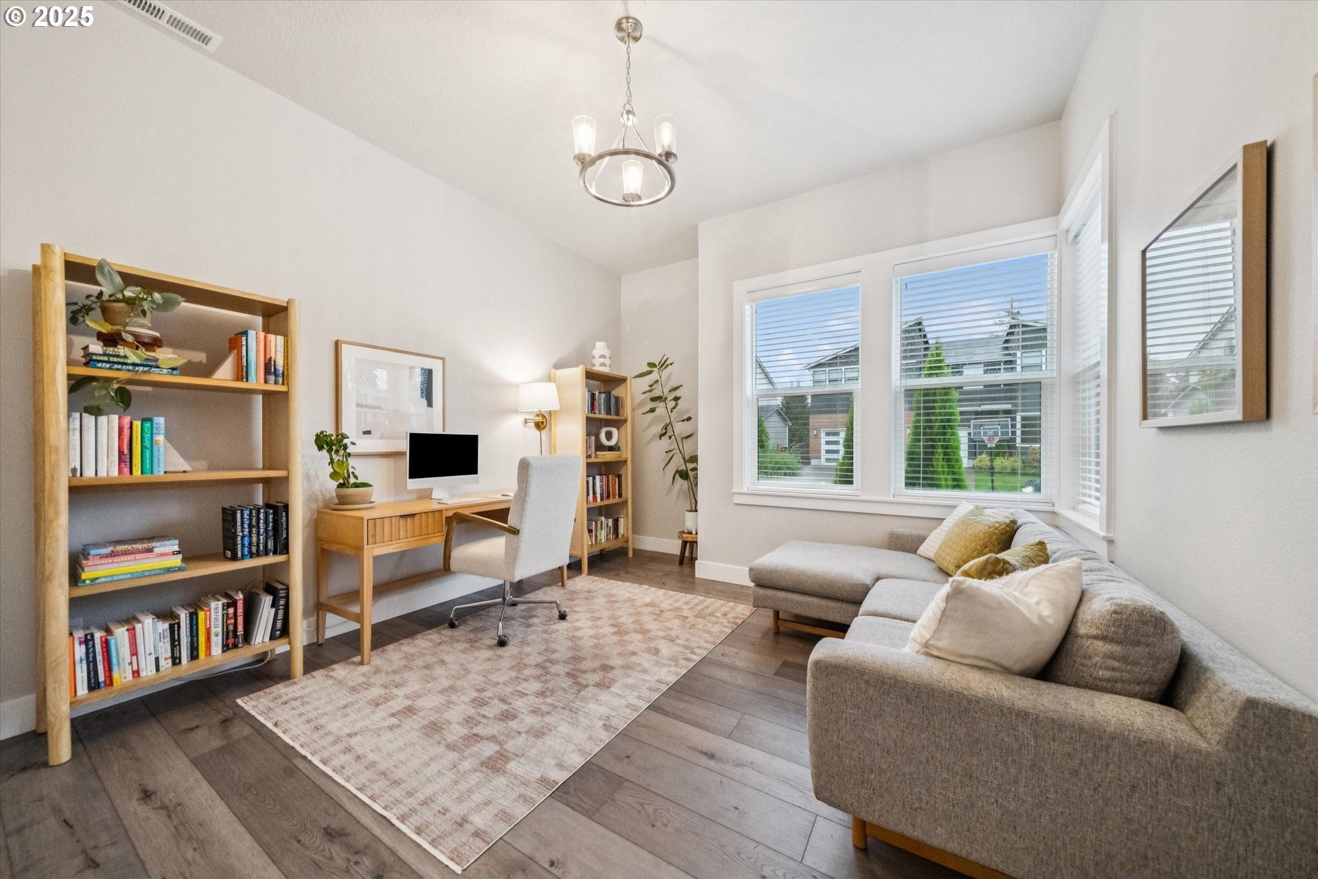 Rare opportunity! Like-new contemporary build in coveted West Linn Meadows! No detail was missed with over $139,000 in upgrades during new construction including stylish engineered hardwood floors throughout both levels, high-gloss slab cabinetry, and a showstopping 15 ft wide stacking sliding door which elegantly ties together the great room with the expansive outdoor living area. Inside, the home features high ceilings on both levels, high-end finishes in every room, and a sought-after main level bedroom with adjacent full bathroom. Tastefully designed, the open kitchen will impress with its gleaming quartz counters and matching backsplash, Wolf appliances, sprawling island with eating bar, and spacious pantry. Upstairs, the central family room smartly connects the surrounding bedroom spaces including the lavish primary suite with its spa-like bathroom, enormous shower, and double walk-in closet. Outside, great care was put into the extensive landscaping, and you will love the covered living area complete with handsome stone fireplace, exposed wood ceilings, & stamped concrete floors. Energy efficient design including 95% efficiency furnace, tankless water heater, and Energy Star rated appliances. Conveniently located near shopping, restaurants, parks, and top-rated West Linn schools!