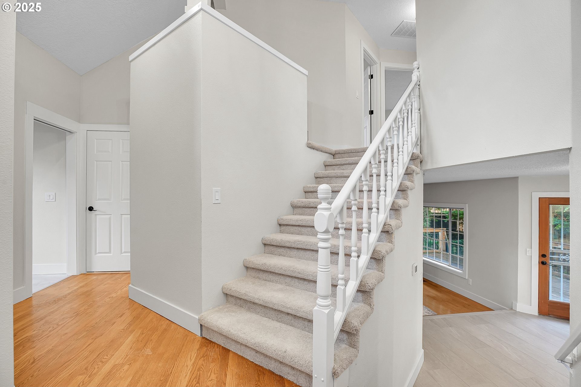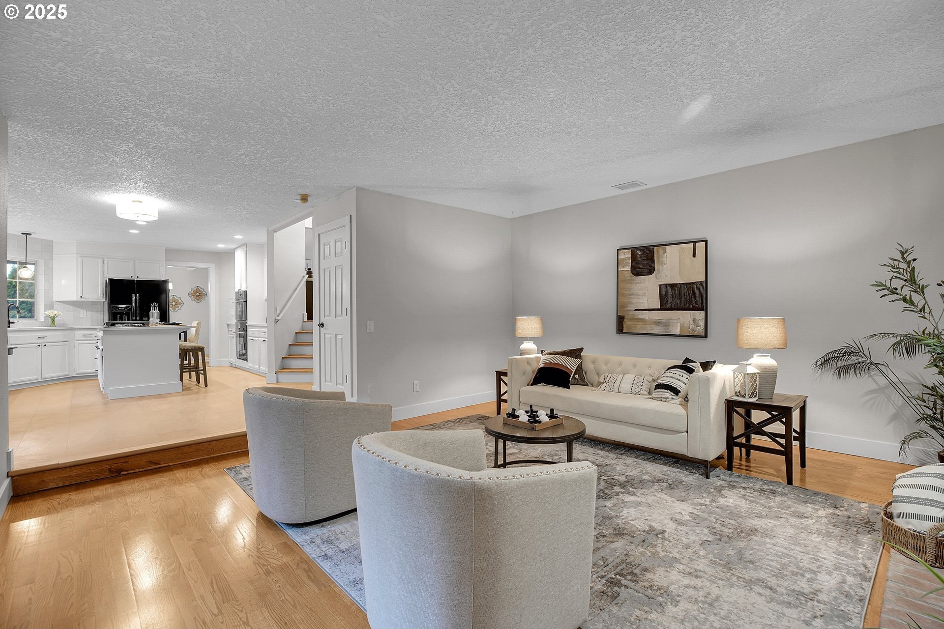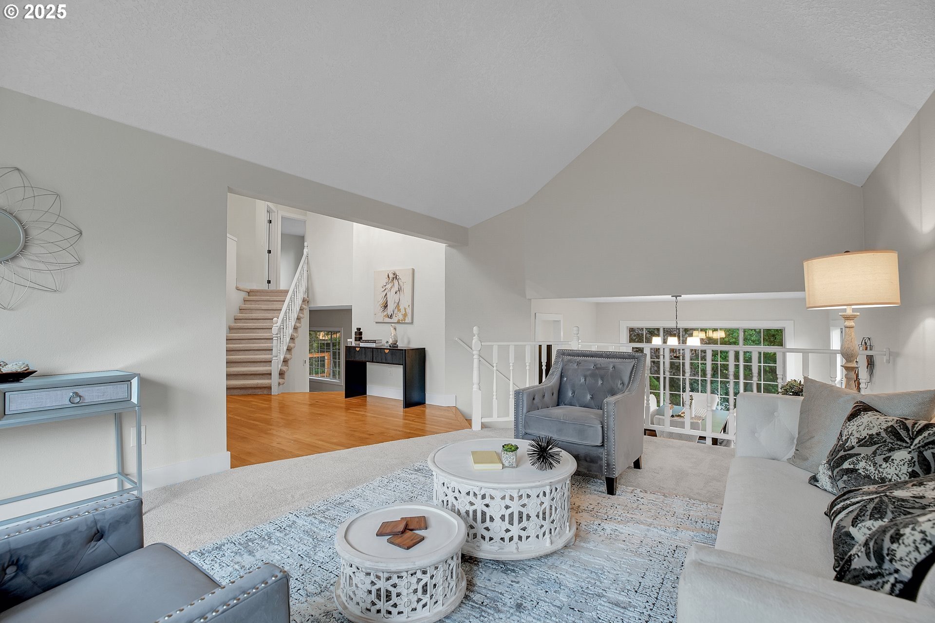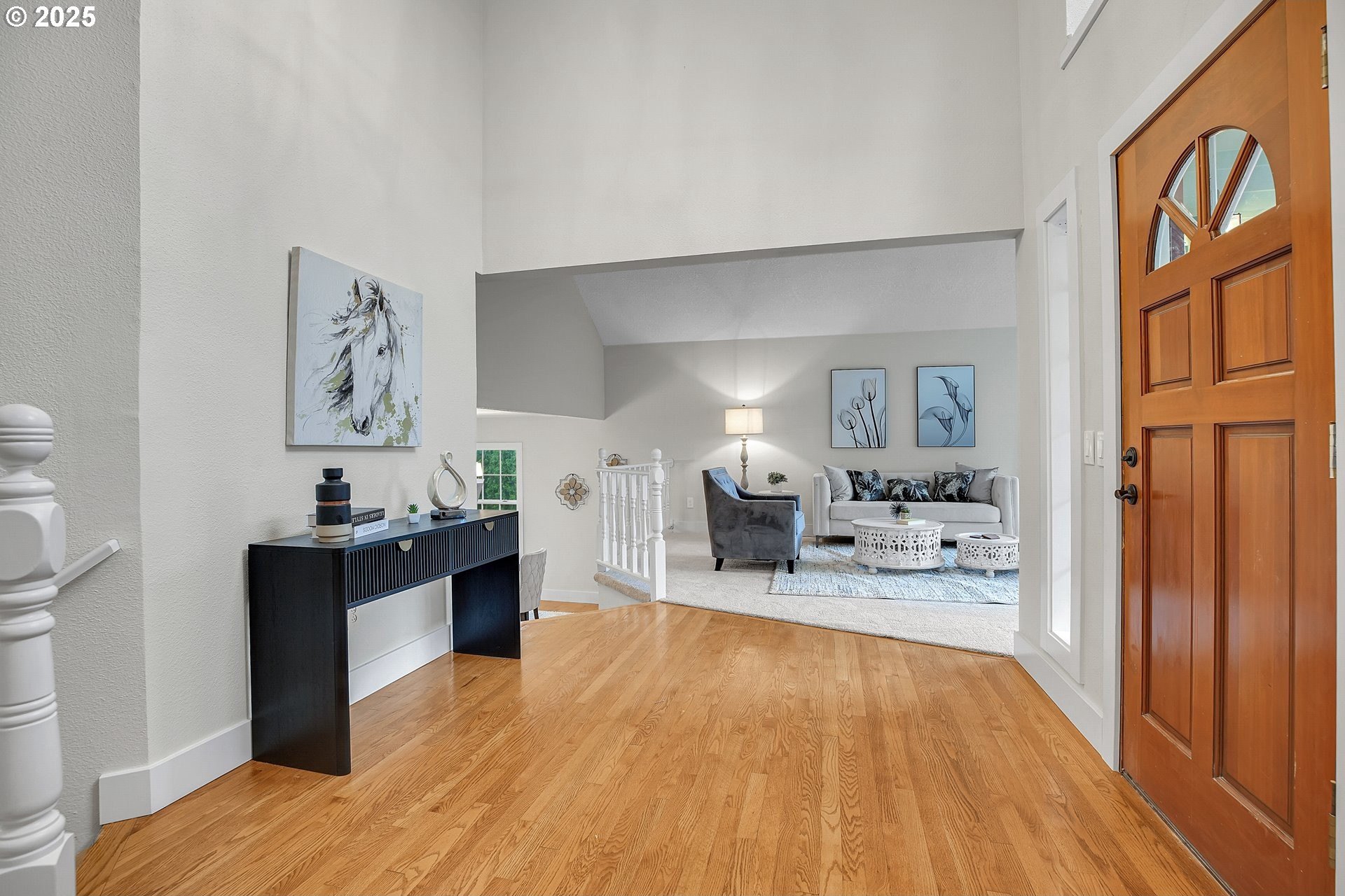 Located atop Cooper Mountain Natural Area, this stunning Barberry Heights home offers space, light, and flexibility with picturesque views from its perch above the valley. Fresh interior paint, new millwork, brand-new carpet, and original hardwoods bring a clean, refreshed feel throughout. Large windows fill the home with natural light and connect the interior to its tree-lined surroundings. The spacious kitchen features quartz countertops, a double oven, and generous counter space, flowing easily into the dining and family areas for comfortable everyday living. A separate formal living room adds flexibility for entertaining or quiet relaxation. The primary suite includes a jetted tub and walk-in shower, while the dedicated laundry room adds convenience. Gas furnace and AC provide year-round comfort, and the oversized garage offers ample space for storage or projects. An unfinished basement with exterior access is ideal for future expansion, a workshop, or private storage. Peaceful and private, this property sits close to parks, shops, and schools, blending convenience with a sense of calm.