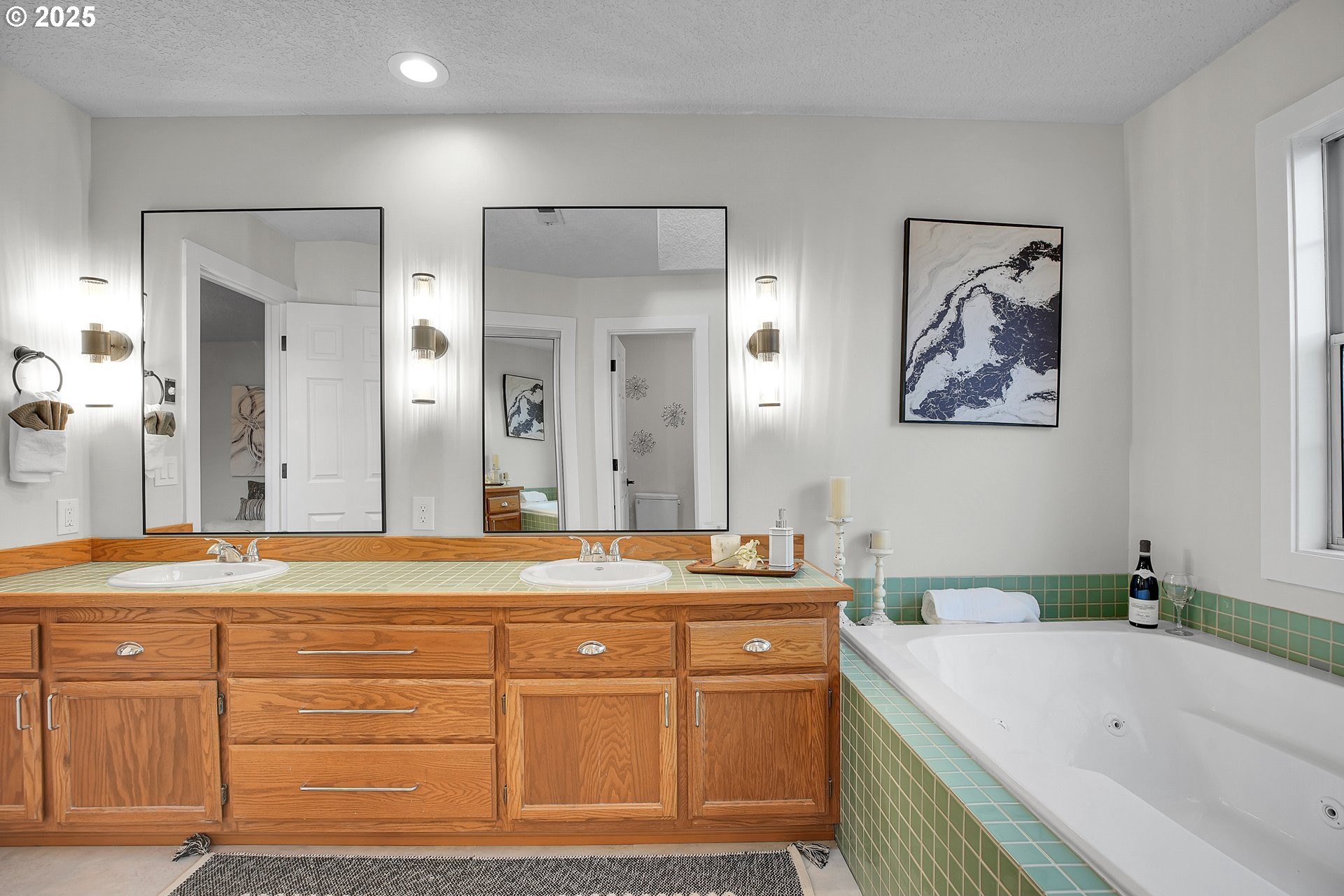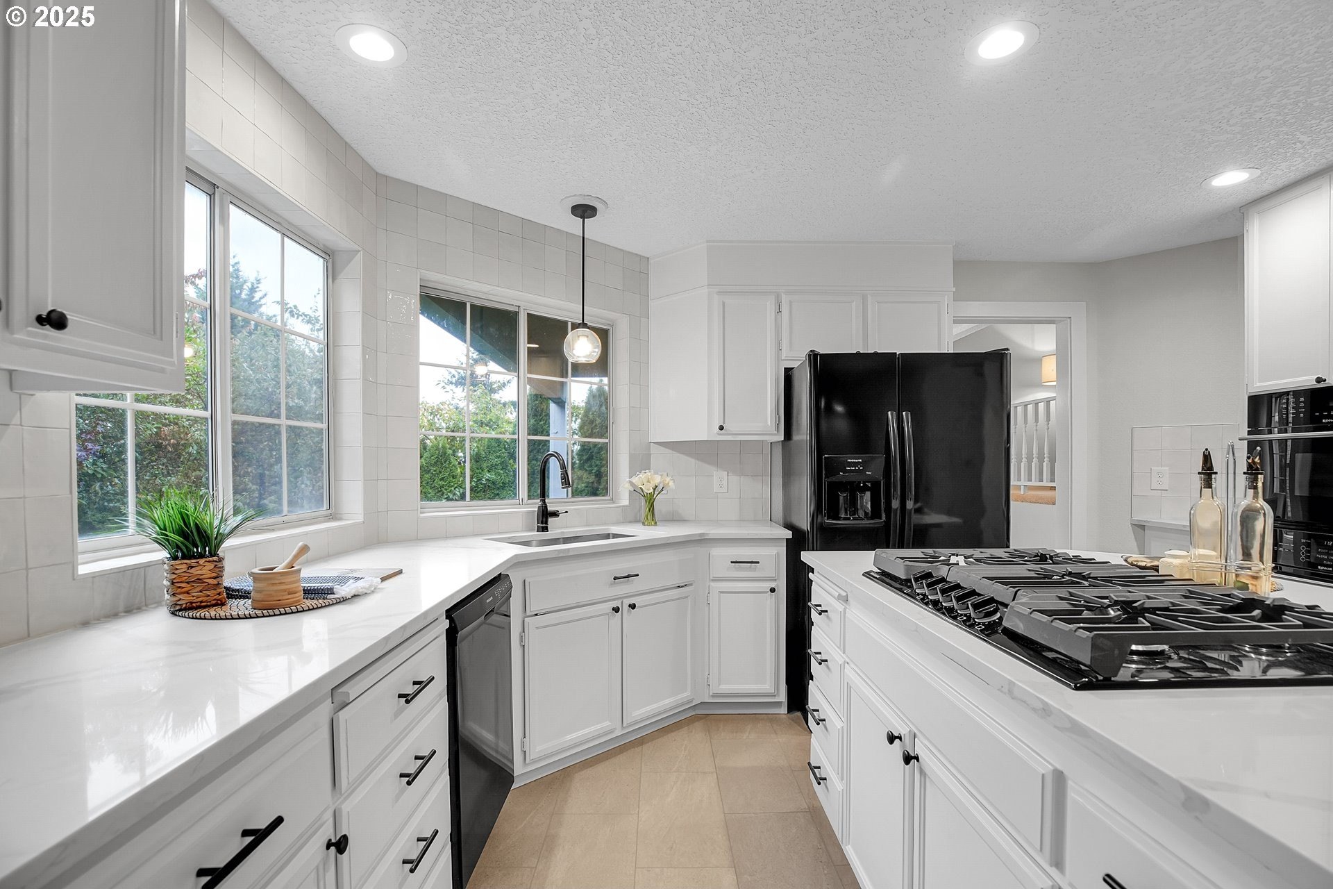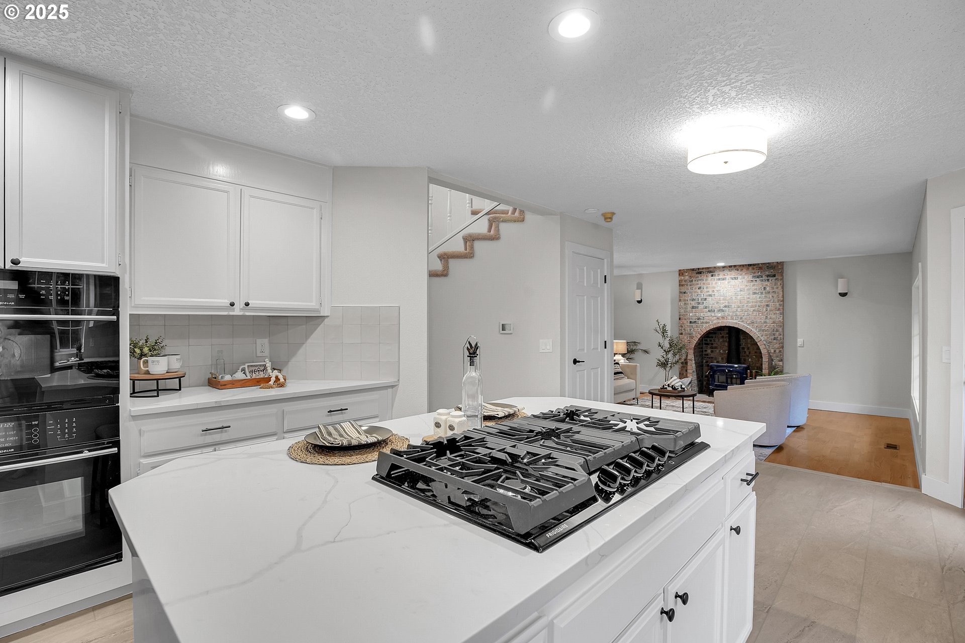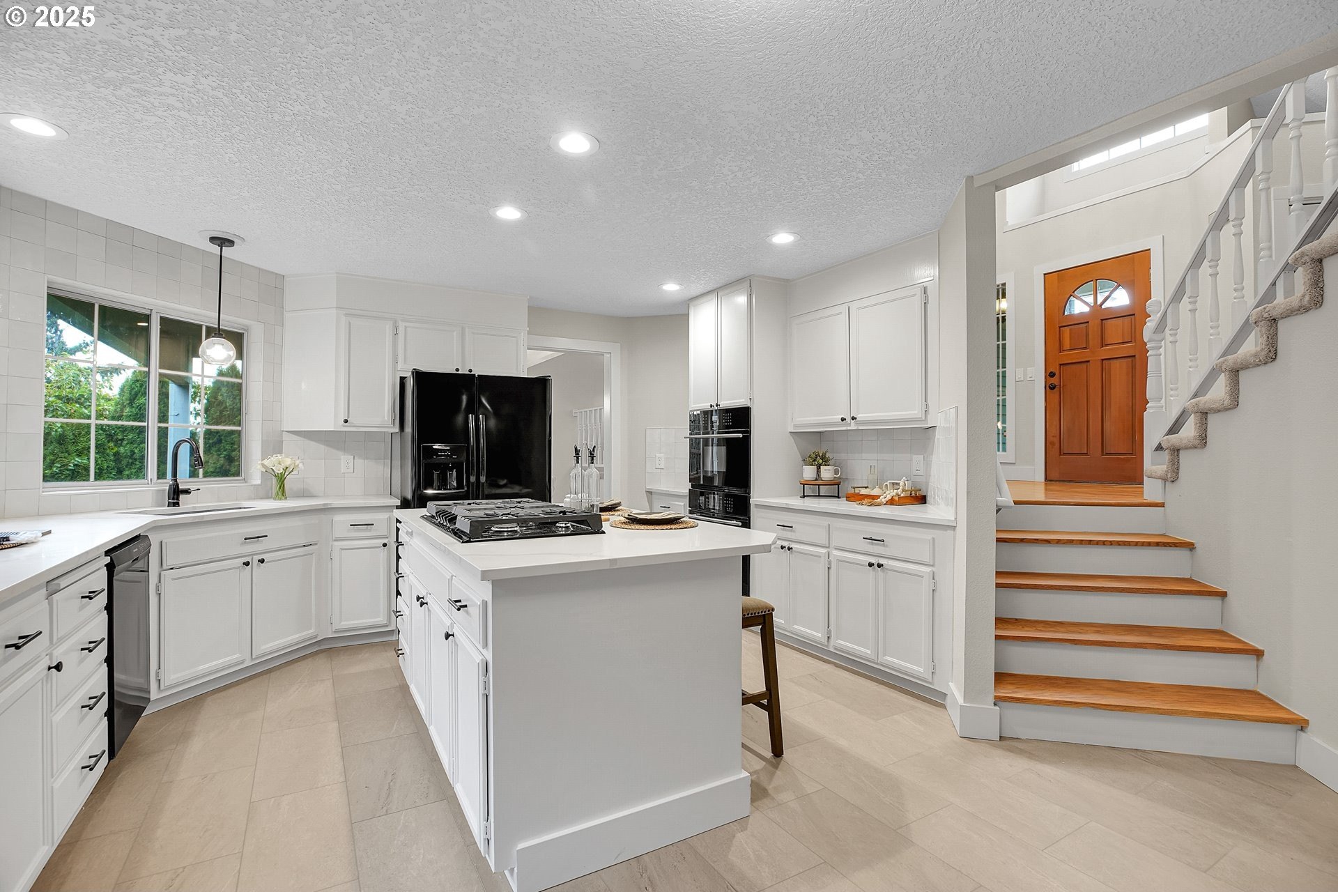 Located atop Cooper Mountain Natural Area, this stunning Barberry Heights home offers space, light, and flexibility with picturesque views from its perch above the valley. Fresh interior paint, new millwork, brand-new carpet, and original hardwoods bring a clean, refreshed feel throughout. Large windows fill the home with natural light and connect the interior to its tree-lined surroundings. The spacious kitchen features quartz countertops, a double oven, and generous counter space, flowing easily into the dining and family areas for comfortable everyday living. A separate formal living room adds flexibility for entertaining or quiet relaxation. The primary suite includes a jetted tub and walk-in shower, while the dedicated laundry room adds convenience. Gas furnace and AC provide year-round comfort, and the oversized garage offers ample space for storage or projects. An unfinished basement with exterior access is ideal for future expansion, a workshop, or private storage. Peaceful and private, this property sits close to parks, shops, and schools, blending convenience with a sense of calm.