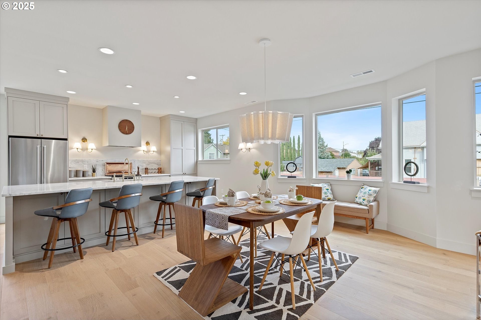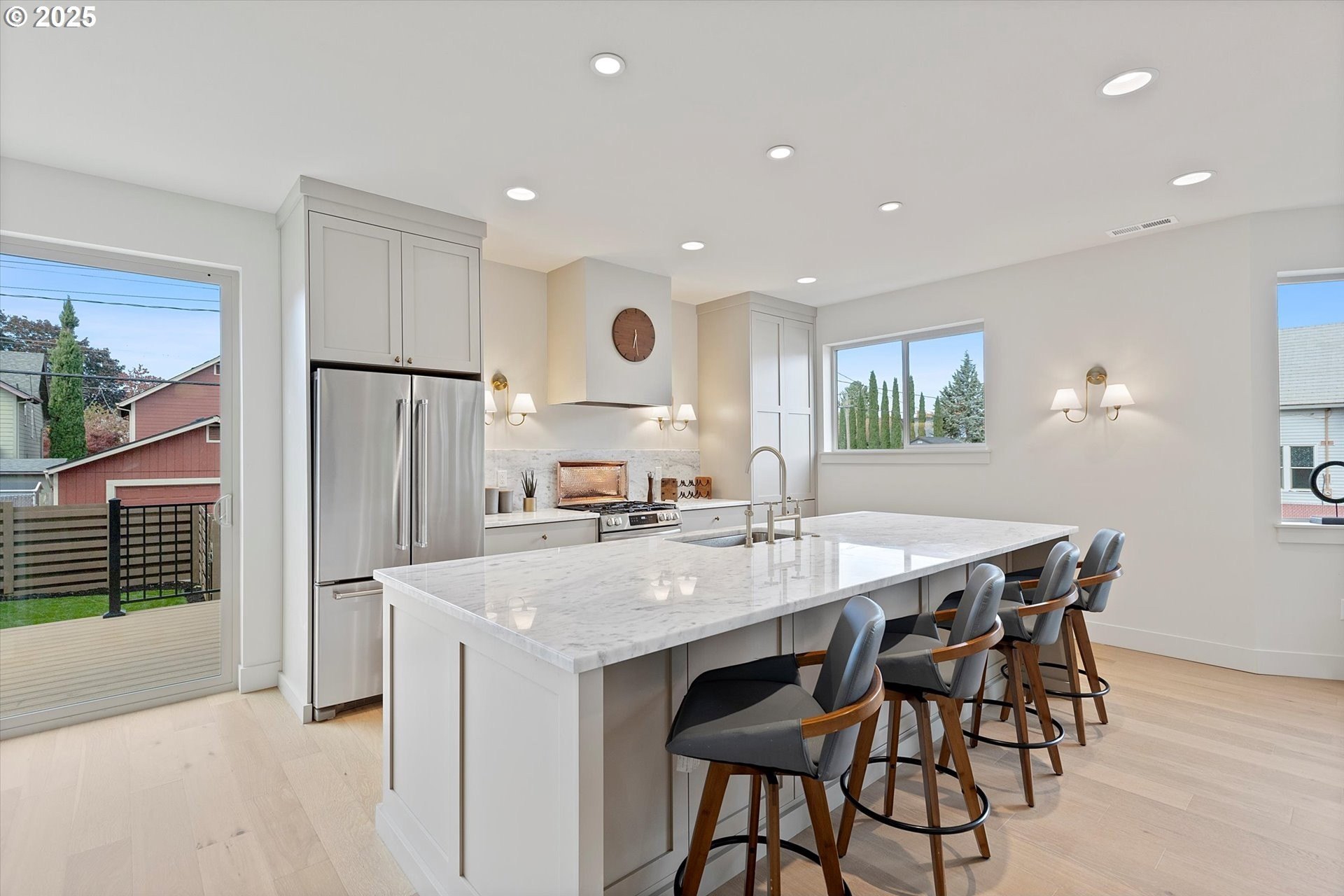 Welcome to this sophisticated rebuild in the coveted Boise–Eliot neighborhood!This stunning home was completely rebuilt from the ground up and showcases modern design, luxurious finishes, and thoughtful functionality throughout. With 4 bedrooms, an office, 3.5 baths, and a finished basement featuring soaring 8-foot ceilings, this residence offers the perfect balance of comfort and style.Step inside to an inviting living room centered around a custom plaster fireplace, seamlessly flowing into an open-concept kitchen designed for both everyday living and entertaining. The chef’s kitchen boasts extensive custom cabinetry, elegant marble countertops, and a butler’s pantry with a hidden appliance bar for a clean, streamlined look.Just off the main level, a spacious office provides the ideal work-from-home setup, paired with a show-stopping half bath that’s sure to impress. Upstairs, the primary suite is truly spa-like — featuring a luxurious, expansive bathroom and generous closet space. Two additional large bedrooms and a stylish shared bath complete the upper floor.Downstairs, the fully finished basement offers endless flexibility — perfect for a media room, guest suite, or fitness area.Additional highlights include off-street parking, EV wiring for your electric vehicle, and a large rear deck overlooking a beautifully landscaped backyard.All of this in an unbeatable location — just blocks from the vibrant restaurants and shops on N Mississippi and N Williams, with easy access to transit and nearby freeways for quick connectivity throughout the city.