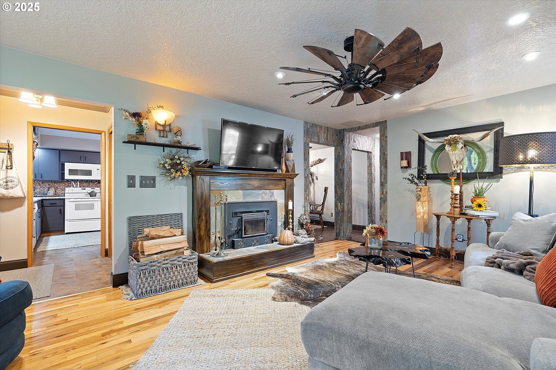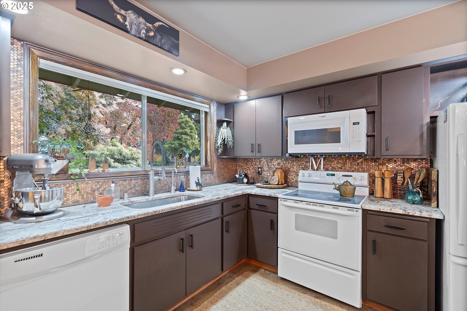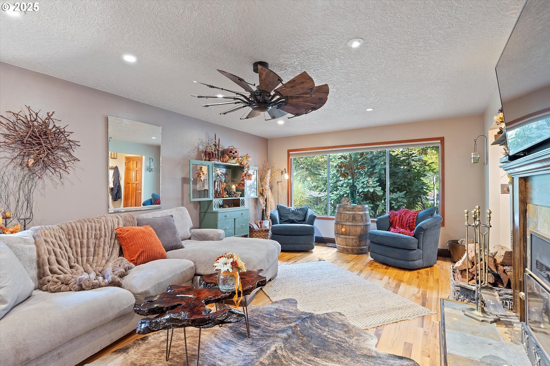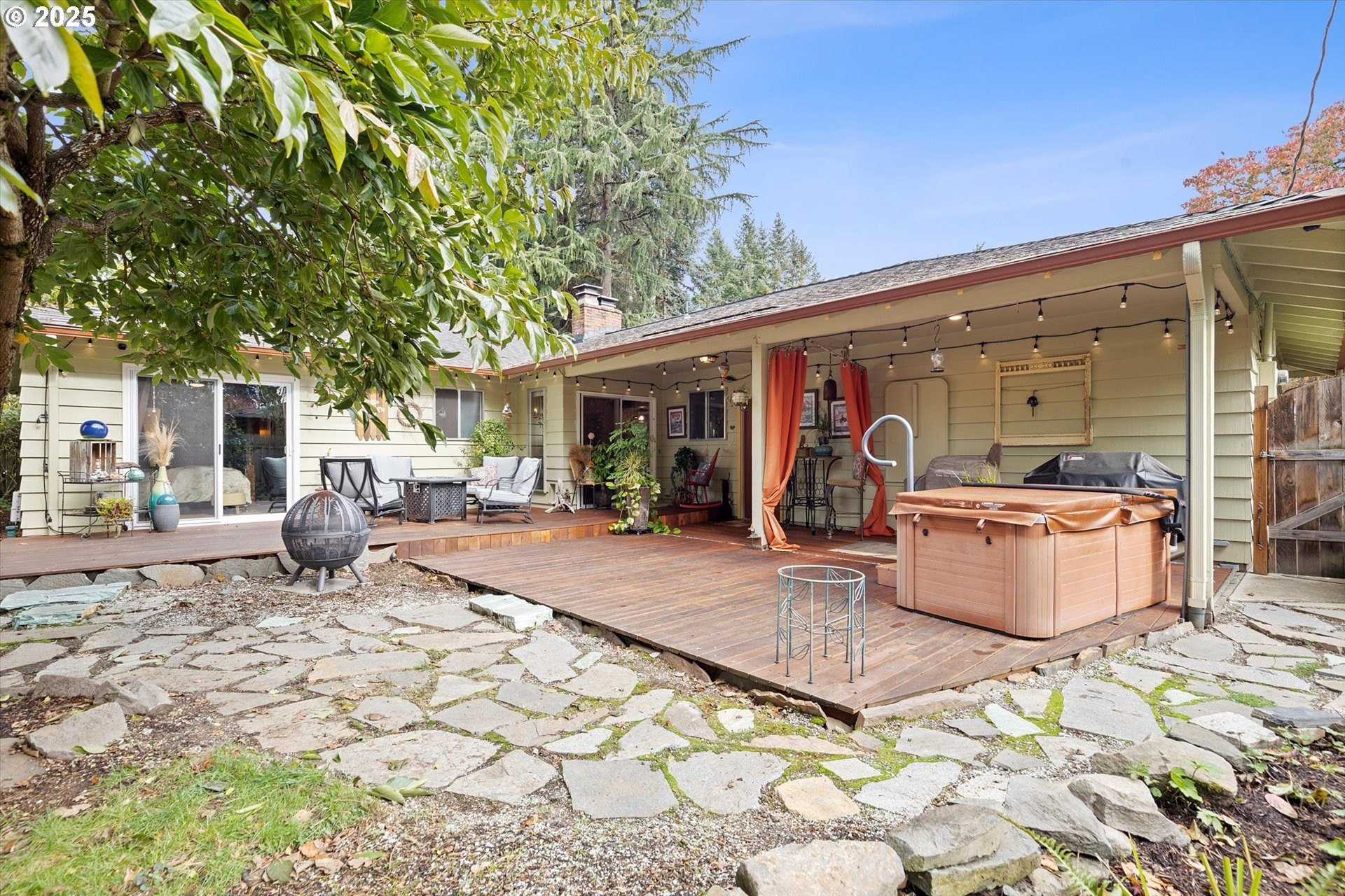 Discover this beautifully maintained single-level home in the tranquil NW Lincoln neighborhood. Situated on a quiet dead-end street, this inviting property offers convenient access to the picturesque Burnt Bridge Creek Trail. Inside, you'll be welcomed by a warm and comfortable atmosphere featuring two fireplaces - one in the open concept kitchen and dining area, and another in the cozy family room. A large picture window fills the family room with natural light and offers serene views of the lush front yard. The kitchen is ideal for entertaining, with a well designed layout that flows effortlessly to the spacious backyard patio. The primary bedroom overlooks the peaceful backyard and includes a private en-suite bathroom for added convenience. Step outside into your own private retreat. The fully fenced backyard showcases mature landscaping, a sprinkler system, fruit trees, large patio, and a relaxing hot tub - perfect for entertaining and unwinding in nature. With a heat pump and forced air system, this home provides year-round comfort. OPEN HOUSE 11/02/25 FROM 12:00-2:00