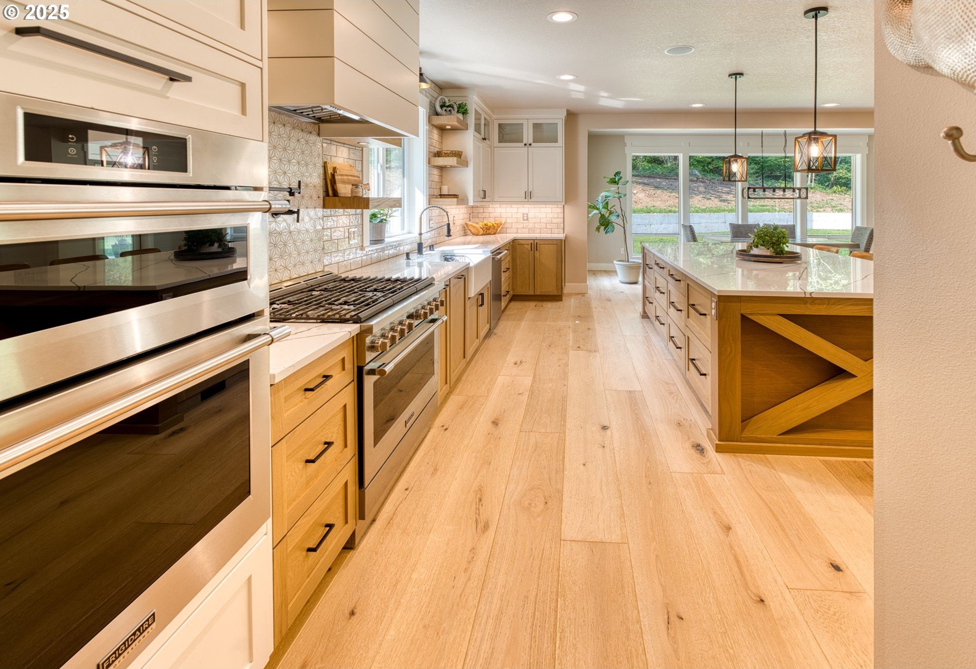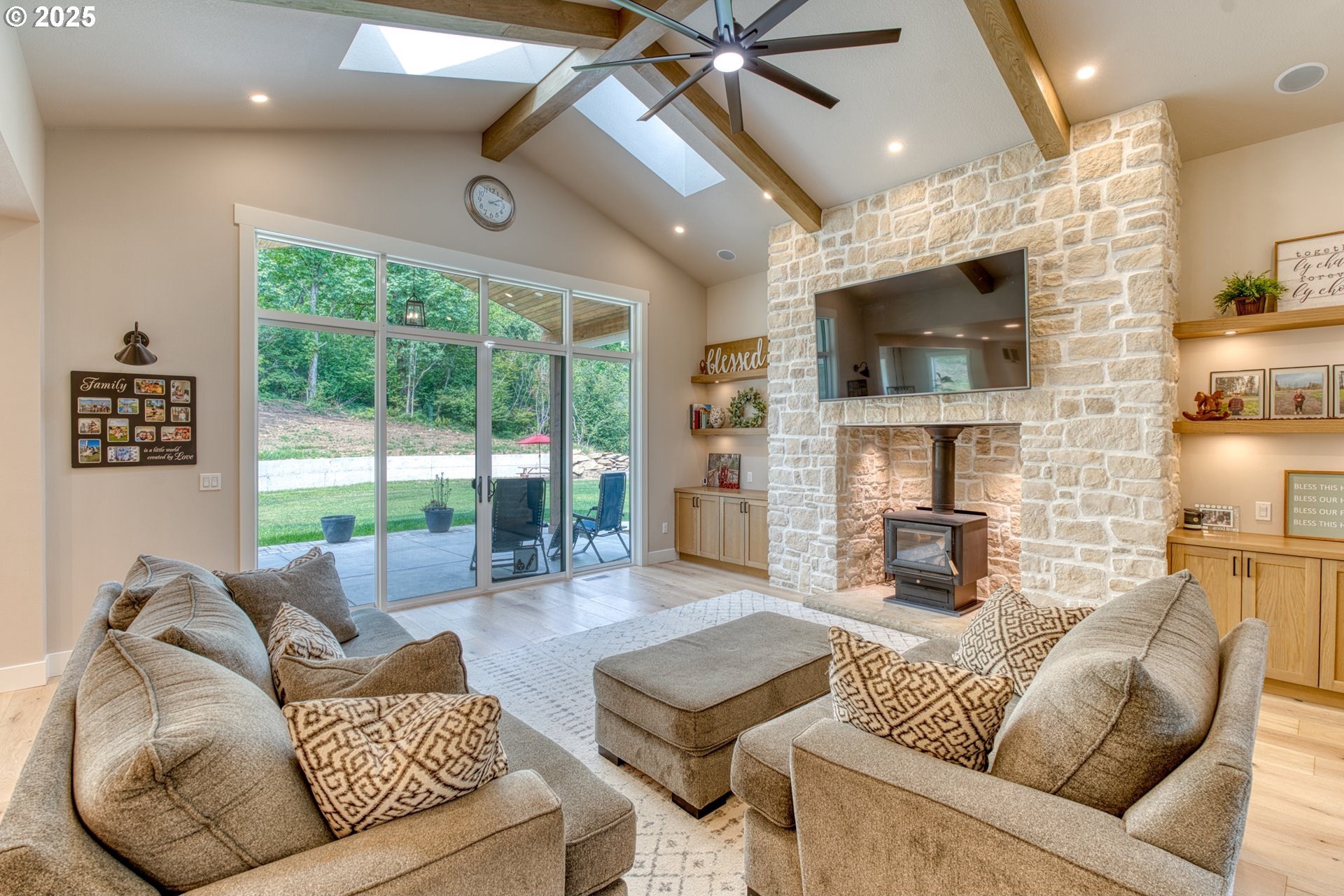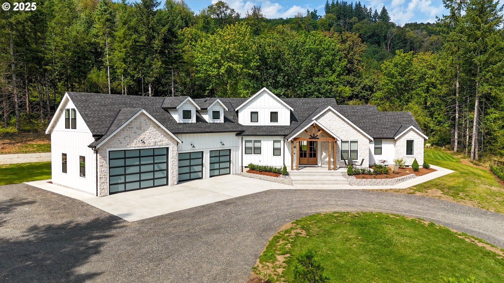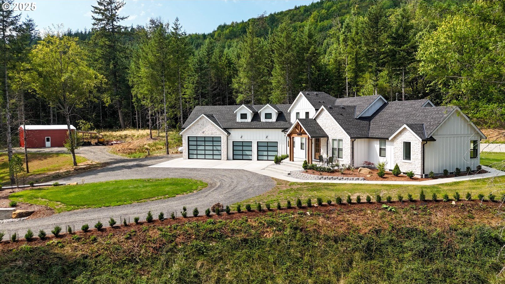 Private & secluded, gated 20-acre property, 20 min from town, Stunning & inspiring Custom-built Farmhouse! Nice Layout w/ open great room w/ wood Burning stove & Vaulted ceilings and Open large windowed doors that open onto extensive cover patio, Open Concept Kitchen & spacious dining room w/butler’s pantry & good size pantry, features high-end appliances, quartz counters, double oven, Hardwood floors throughout all house, Heated tile floors in all baths, Primary bedroom on main level w/ coffered ceilings, fireplace, dual sinks, soaking tub, nice tiled shower & great size walk-in closet, 5 zoned HVAC system, central vac, secondary ventilation system, Den/office w/built in desk & cabinets , 2 roomy bedrooms w/walk in closets, Roomy and spacious bonus room w/sink & cabinets also w/plumbed and pre wired for ADU option, laundry room w/cabinets, sink & laundry chute, 4 car garage w/fast car charger, garage heater, Backup generator, very private property w/ATV trails throughout the property, night lights throughout, Four streams w/two year around, 35 year forest w/one hundred year old mixed trees, Lawn sprinkler system, Shop & Barn w/power, Fire pit & Playground and more! Truly one of a kind!