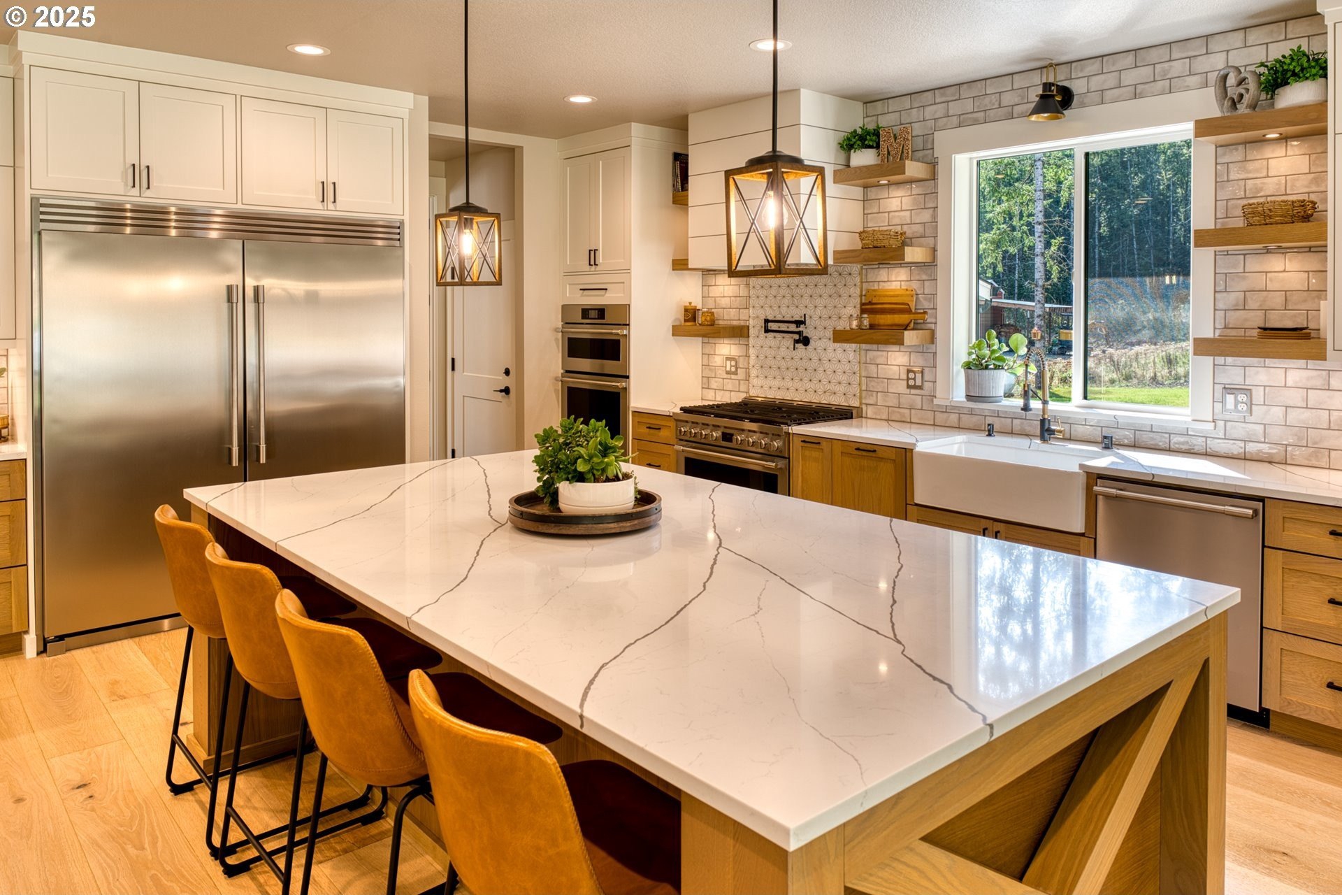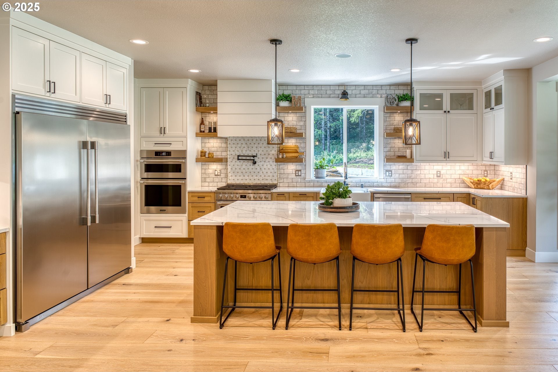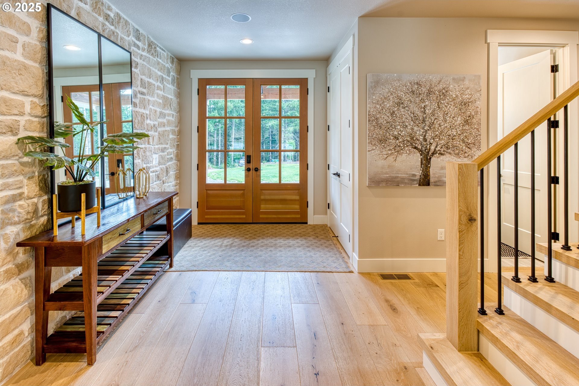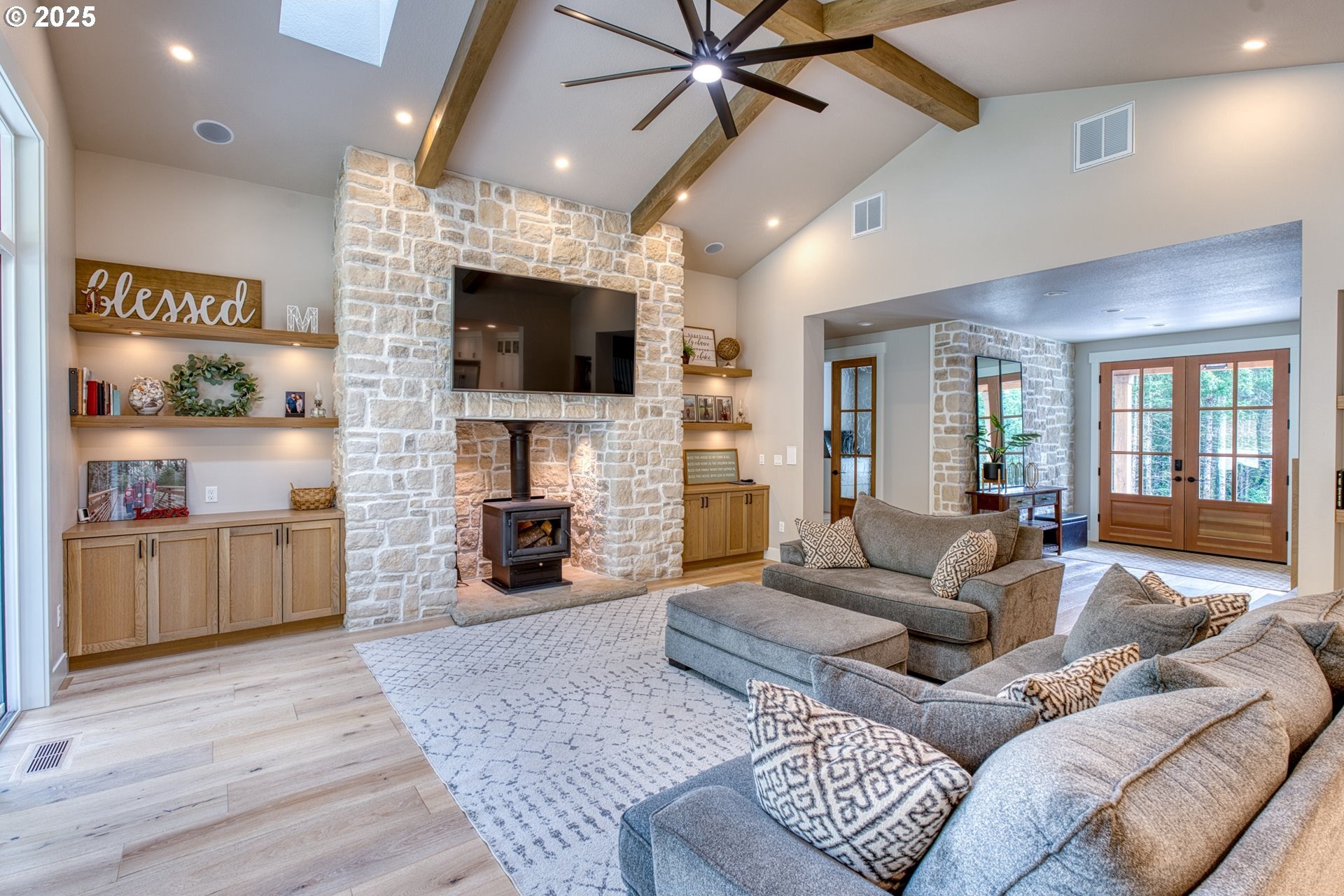 Private & secluded, gated 20-acre property, 20 min from town, Stunning & inspiring Custom-built Farmhouse! Nice Layout w/ open great room w/ wood Burning stove & Vaulted ceilings and Open large windowed doors that open onto extensive cover patio, Open Concept Kitchen & spacious dining room w/butler’s pantry & good size pantry, features high-end appliances, quartz counters, double oven, Hardwood floors throughout all house, Heated tile floors in all baths, Primary bedroom on main level w/ coffered ceilings, fireplace, dual sinks, soaking tub, nice tiled shower & great size walk-in closet, 5 zoned HVAC system, central vac, secondary ventilation system, Den/office w/built in desk & cabinets , 2 roomy bedrooms w/walk in closets, Roomy and spacious bonus room w/sink & cabinets also w/plumbed and pre wired for ADU option, laundry room w/cabinets, sink & laundry chute, 4 car garage w/fast car charger, garage heater, Backup generator, very private property w/ATV trails throughout the property, night lights throughout, Four streams w/two year around, 35 year forest w/one hundred year old mixed trees, Lawn sprinkler system, Shop & Barn w/power, Fire pit & Playground and more! Truly one of a kind!